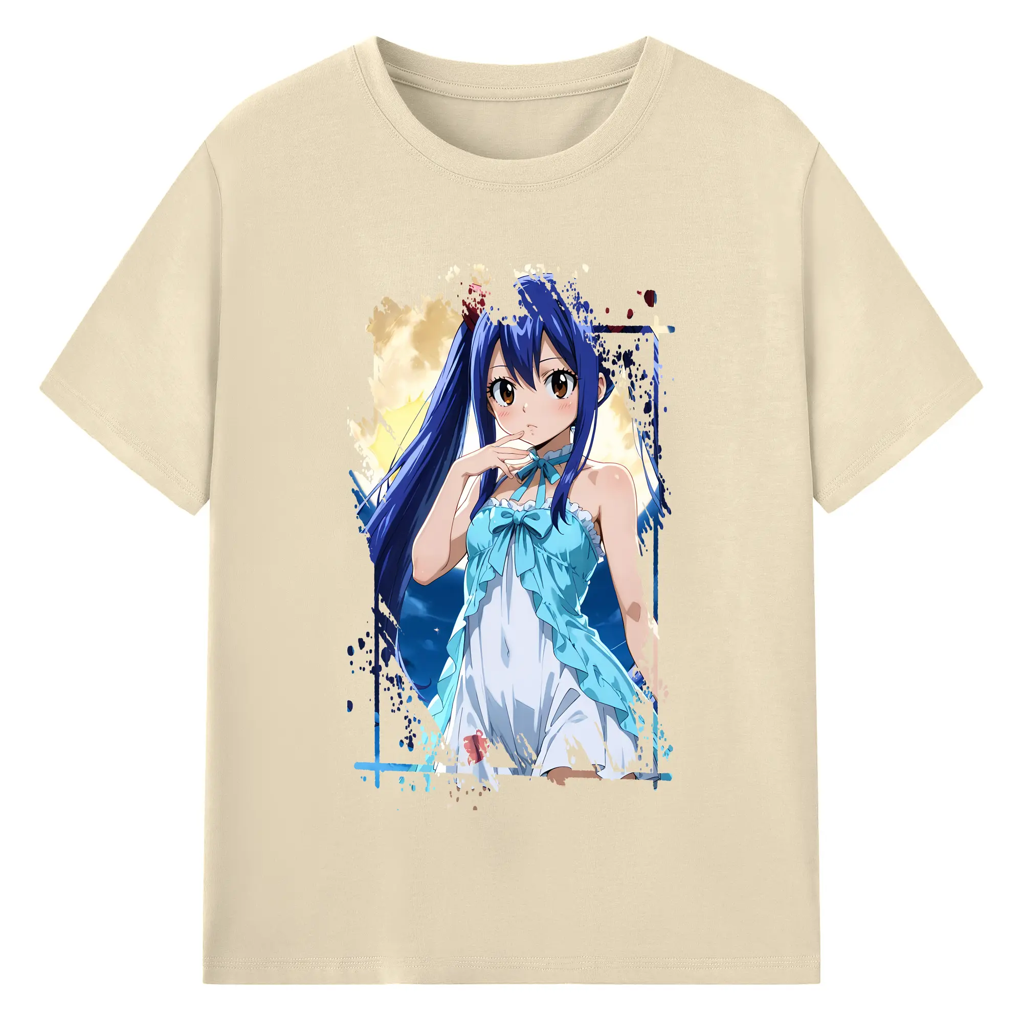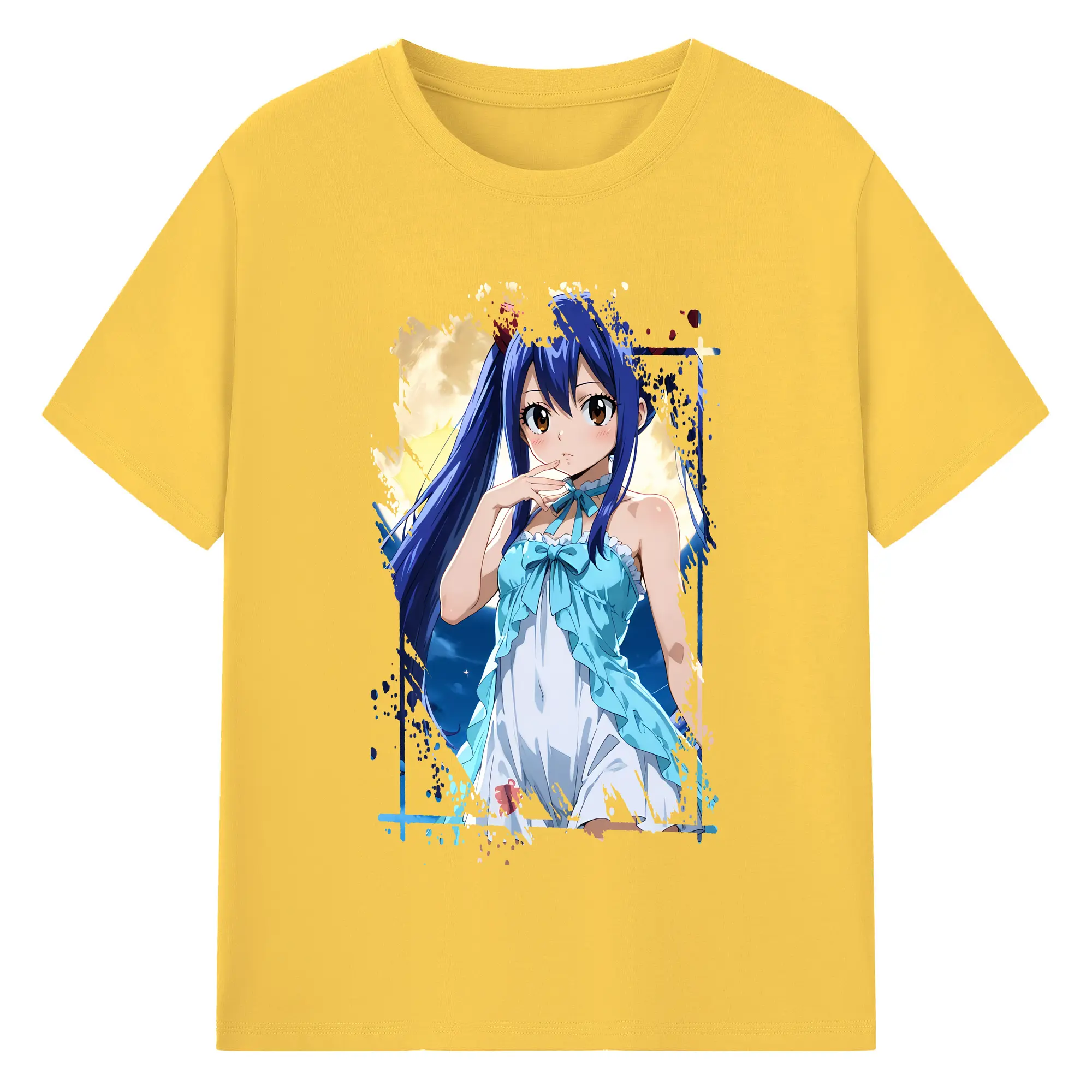 フェアリーテイル グッズ ウェンディ・マーベル - 綿100% ヴィンテージ風 半袖Tシャツ ・ フロントプリント ・ 柔らか肌触り ・ 通気性 快適 ・ スポーツ カジュアル 外出用
