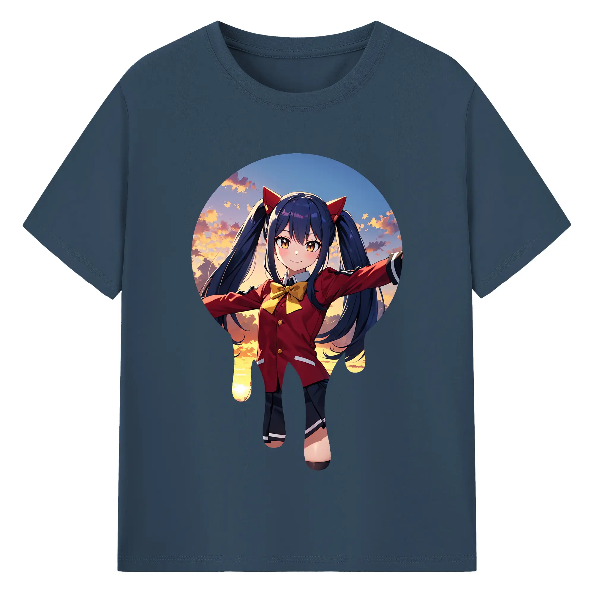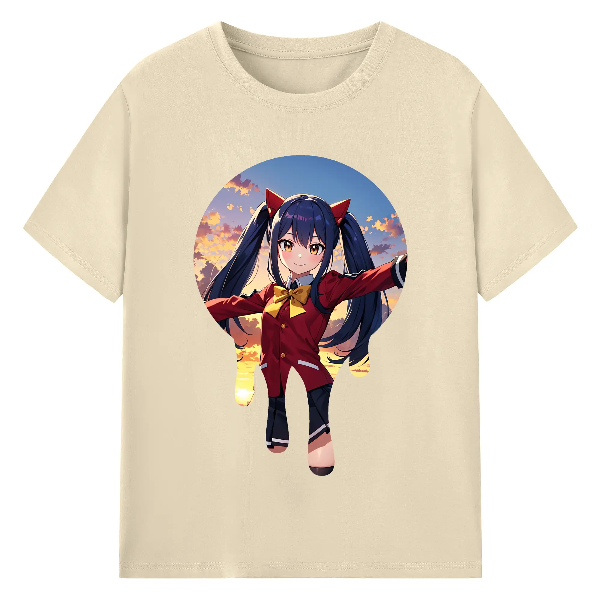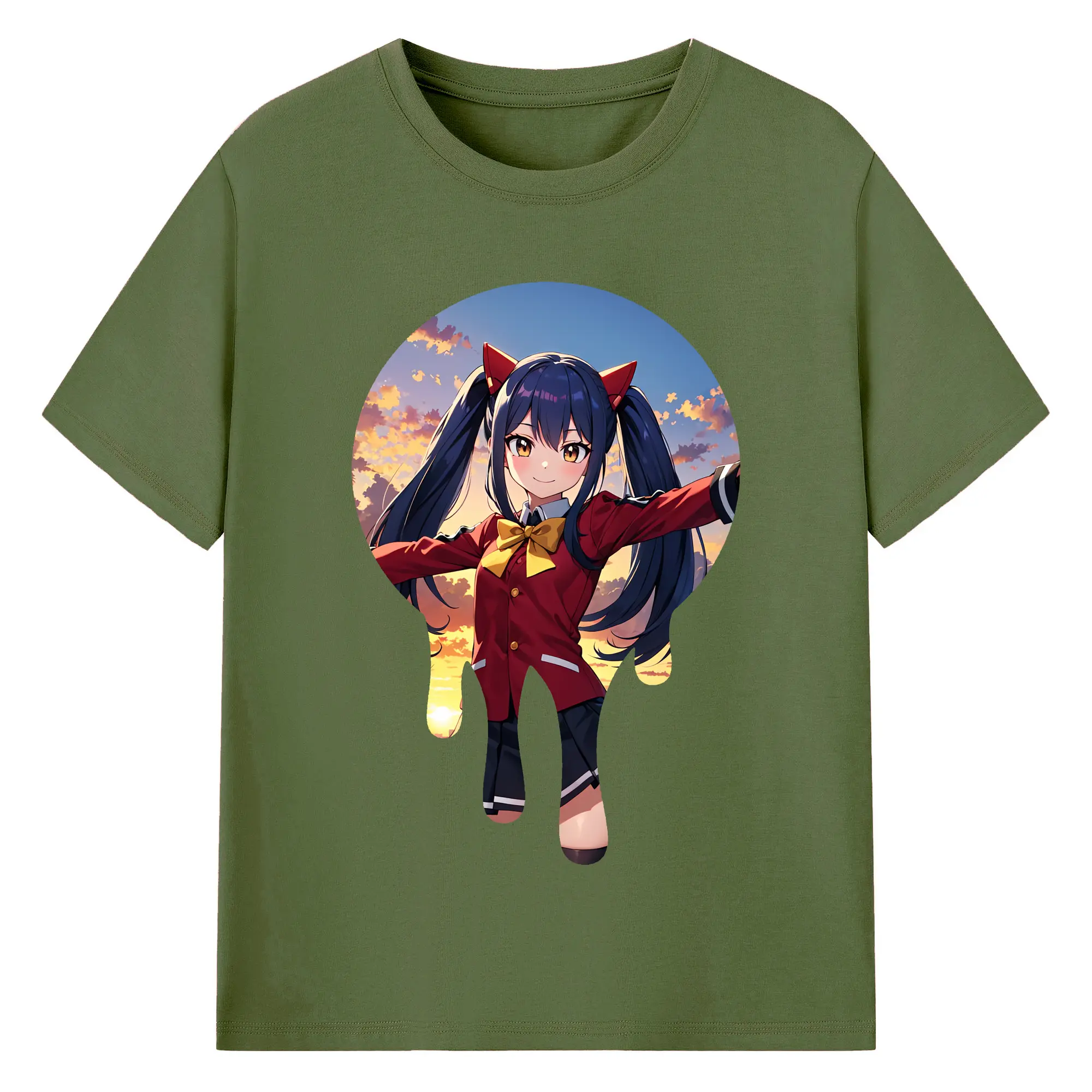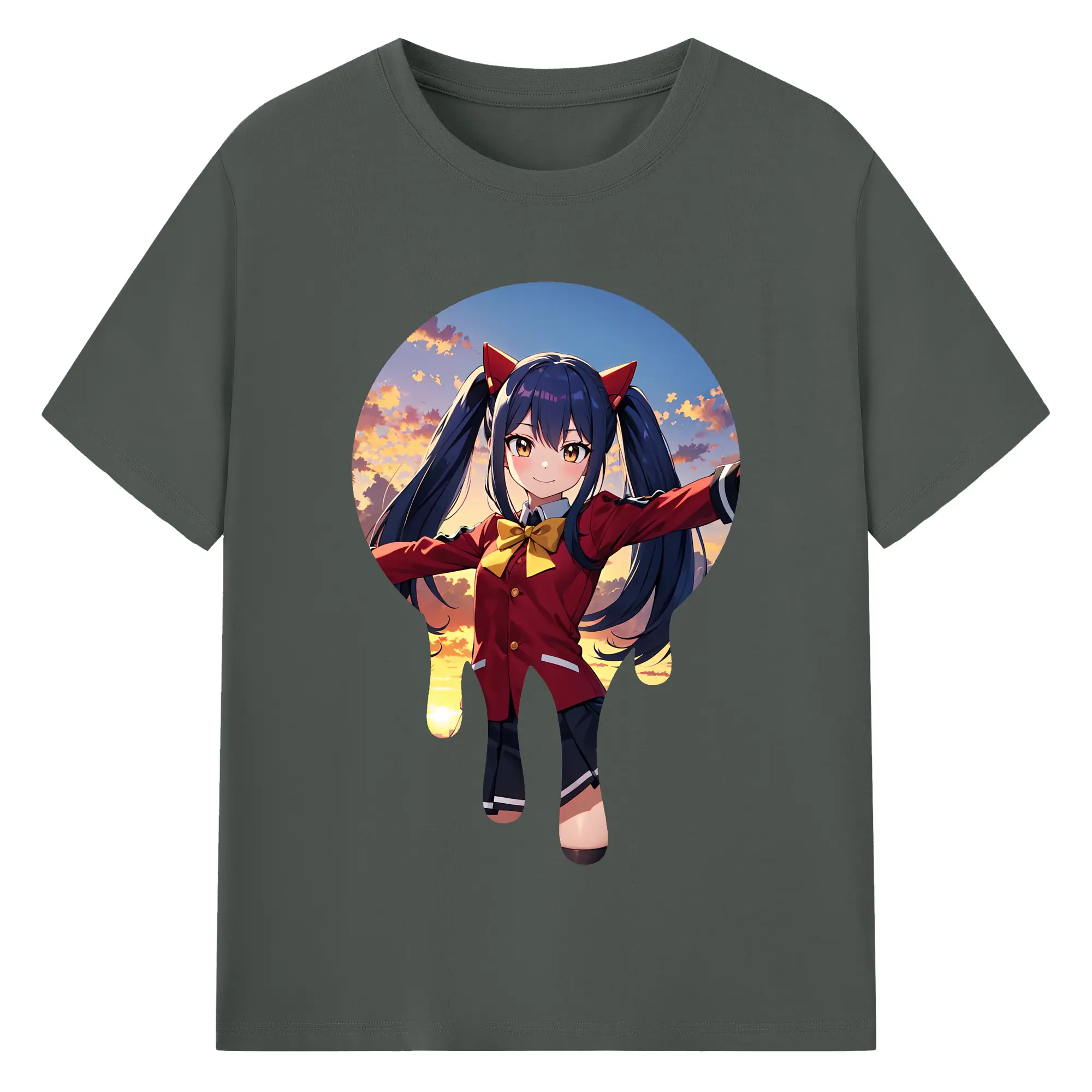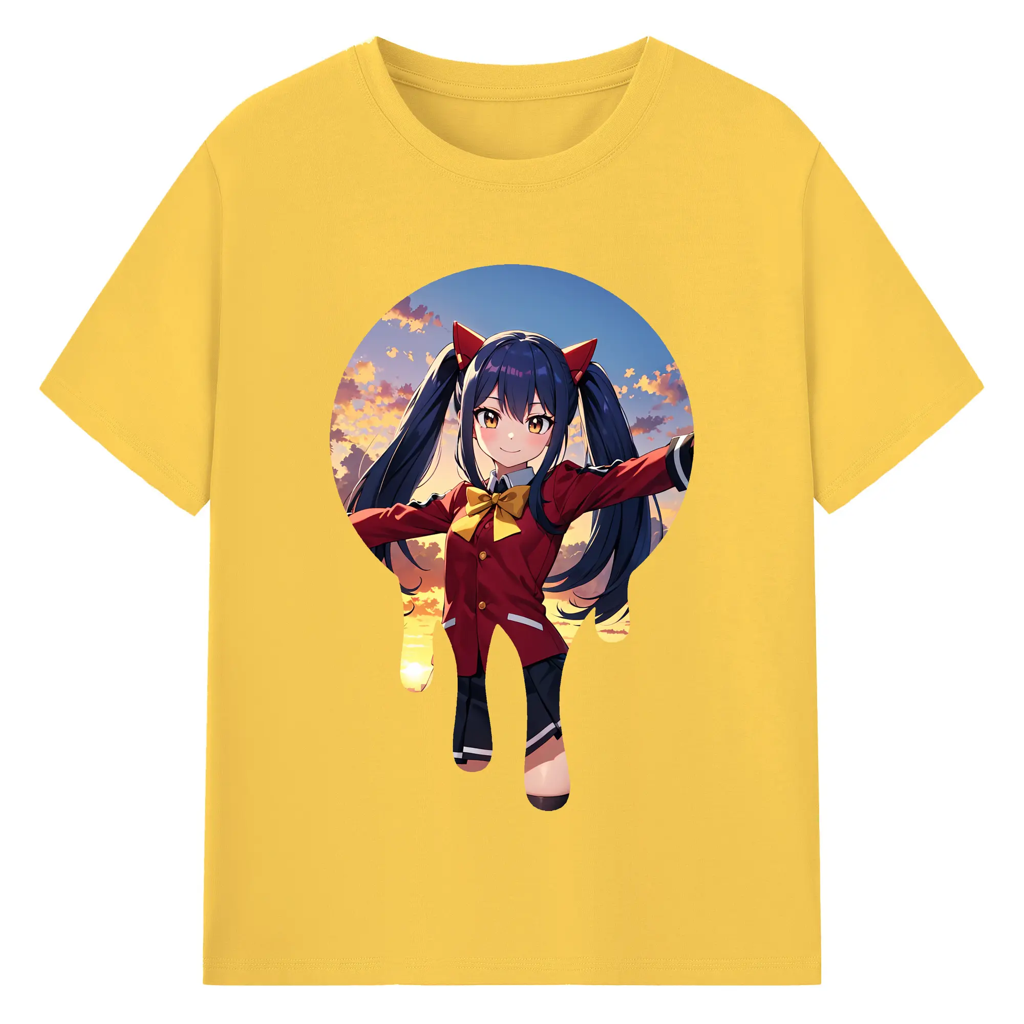 フェアリーテイル グッズ ウェンディ・マーベル - 綿100% ヴィンテージ風 半袖Tシャツ ・ フロントプリント ・ 柔らか肌触り ・ 通気性 快適 ・ スポーツ カジュアル 外出用