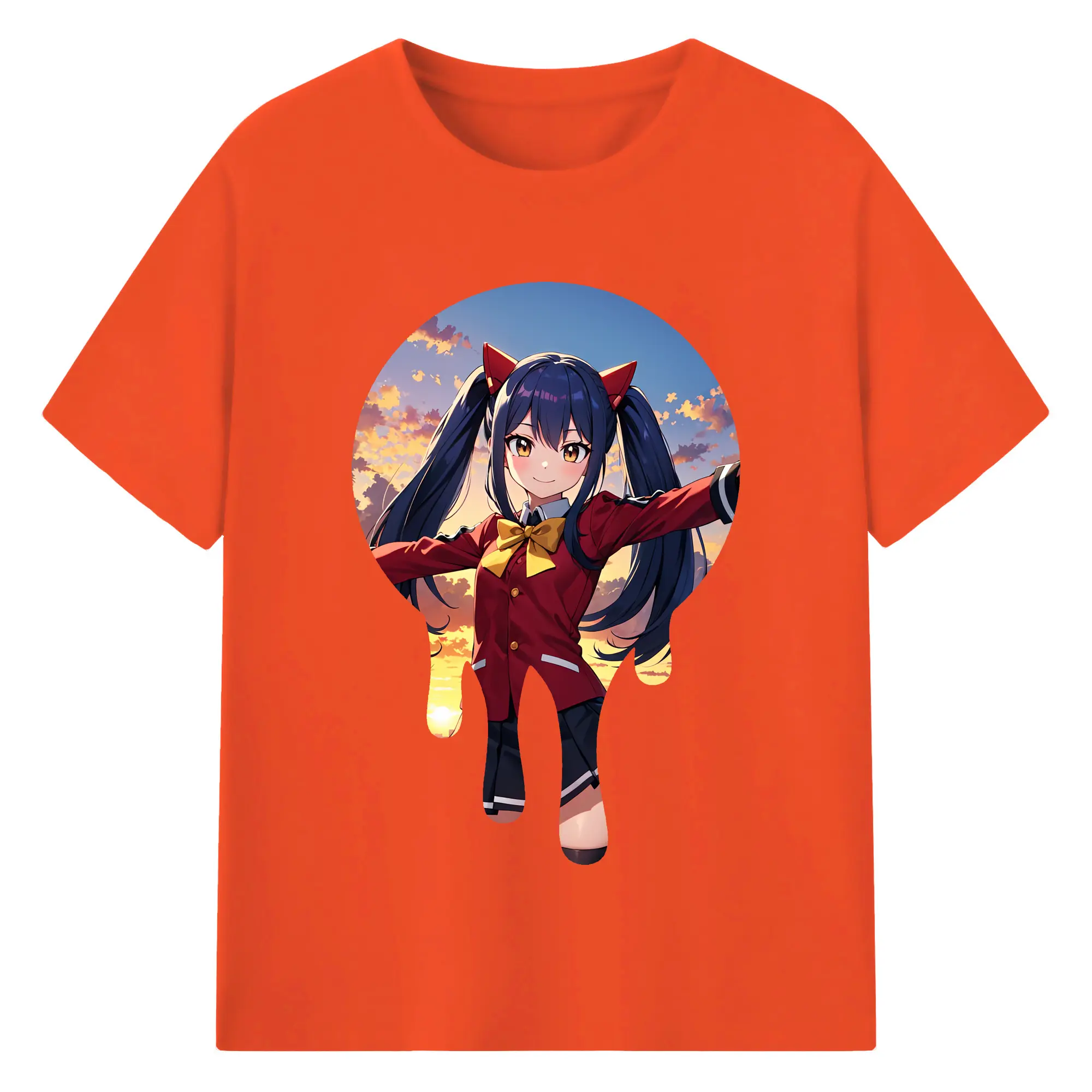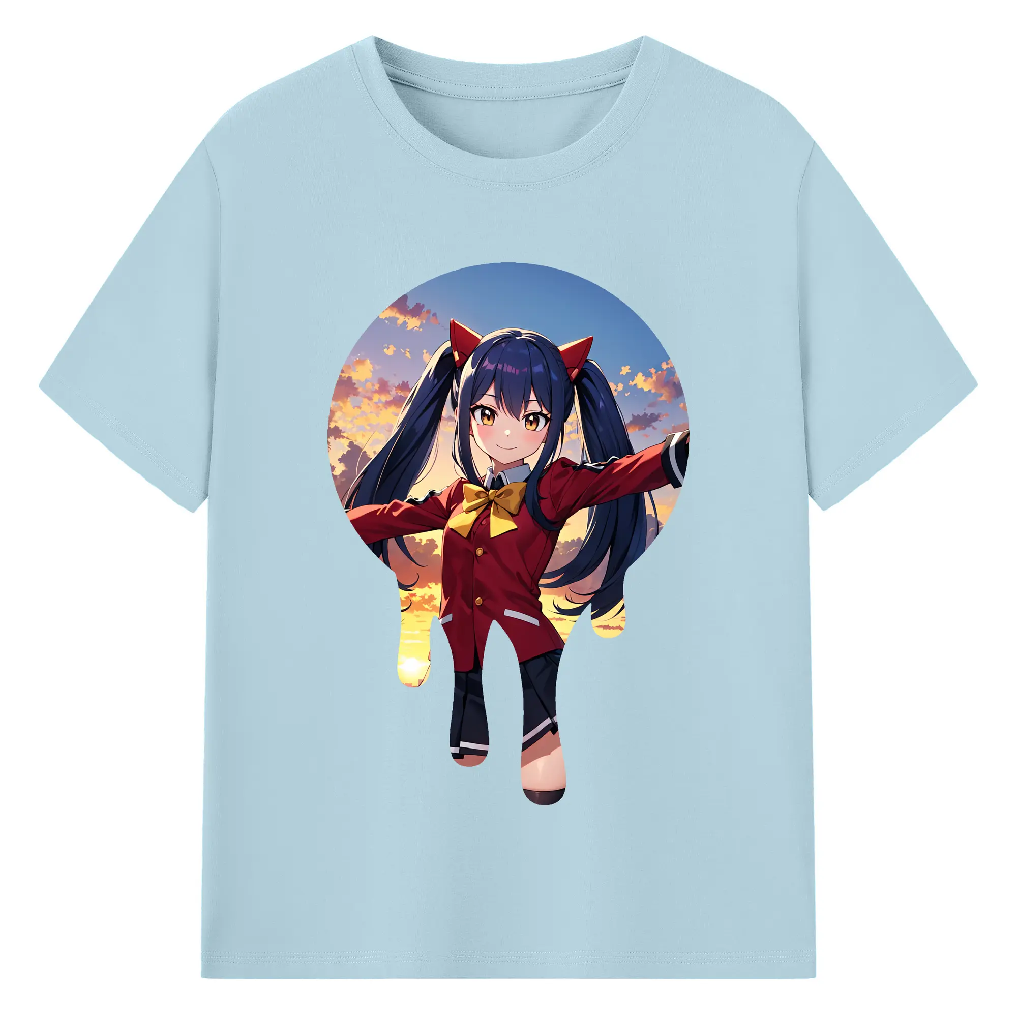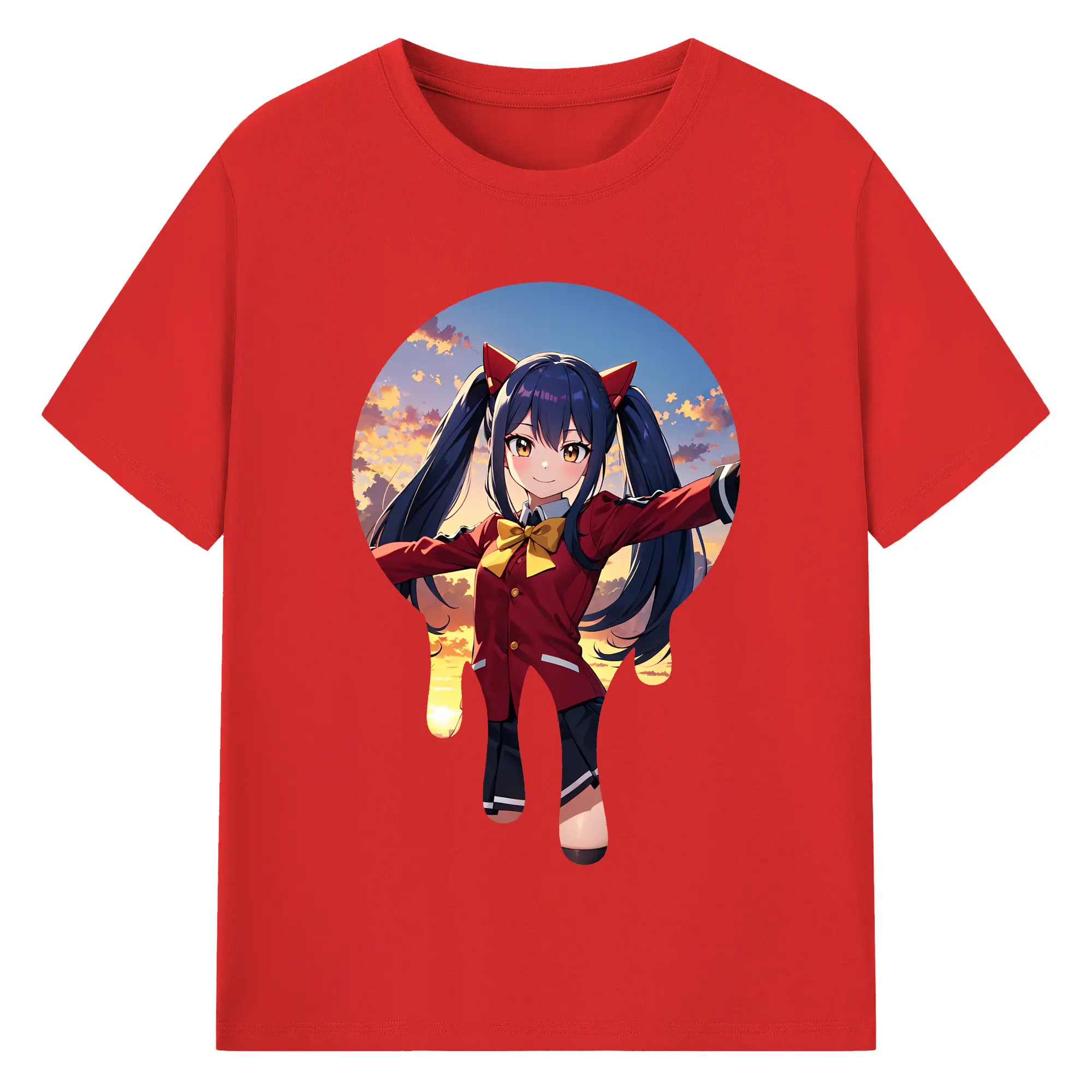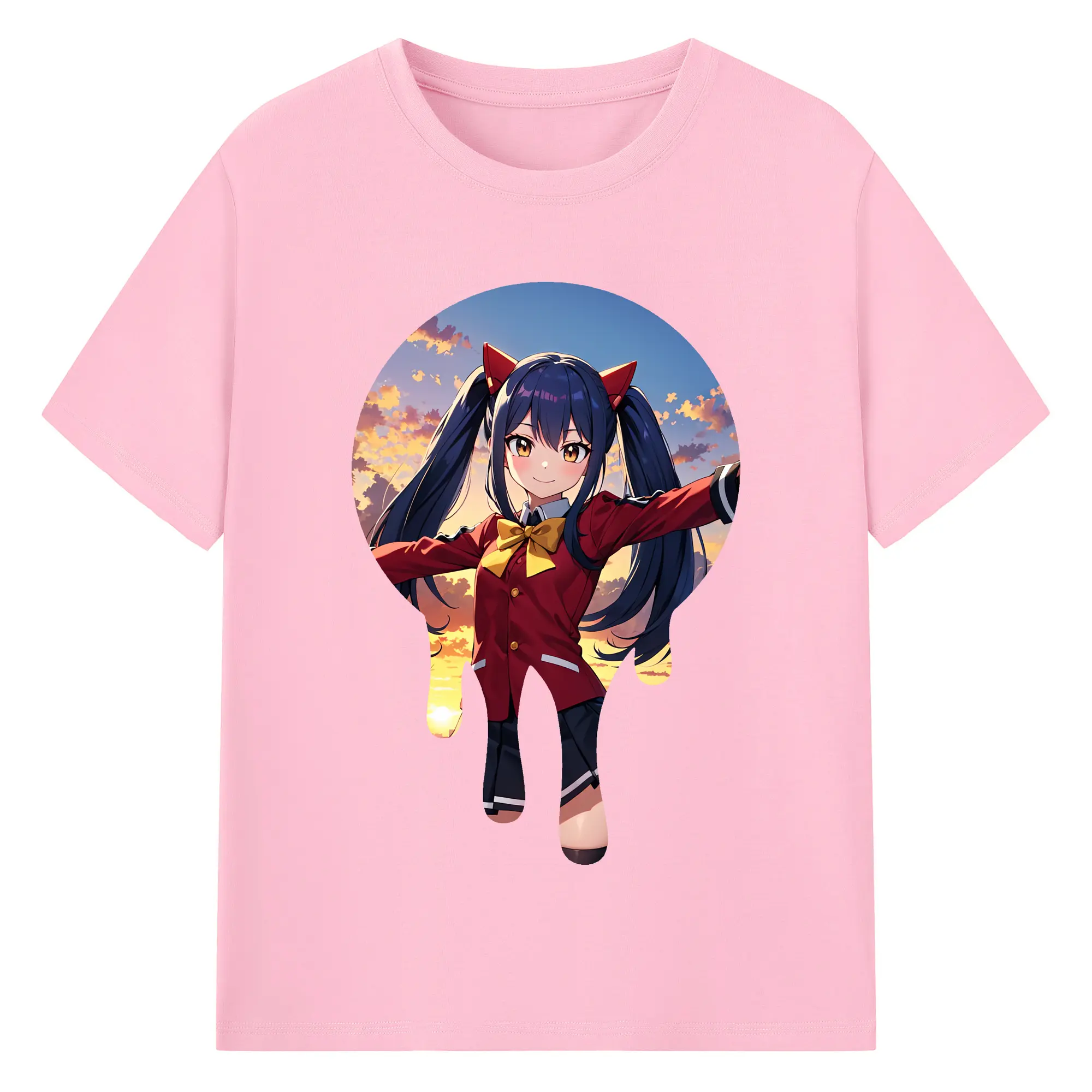 フェアリーテイル グッズ ウェンディ・マーベル - 綿100% 半袖Tシャツ ・ バックプリント ・ 快適 通気性 ・ 日常使い 散歩 スポーツ用
