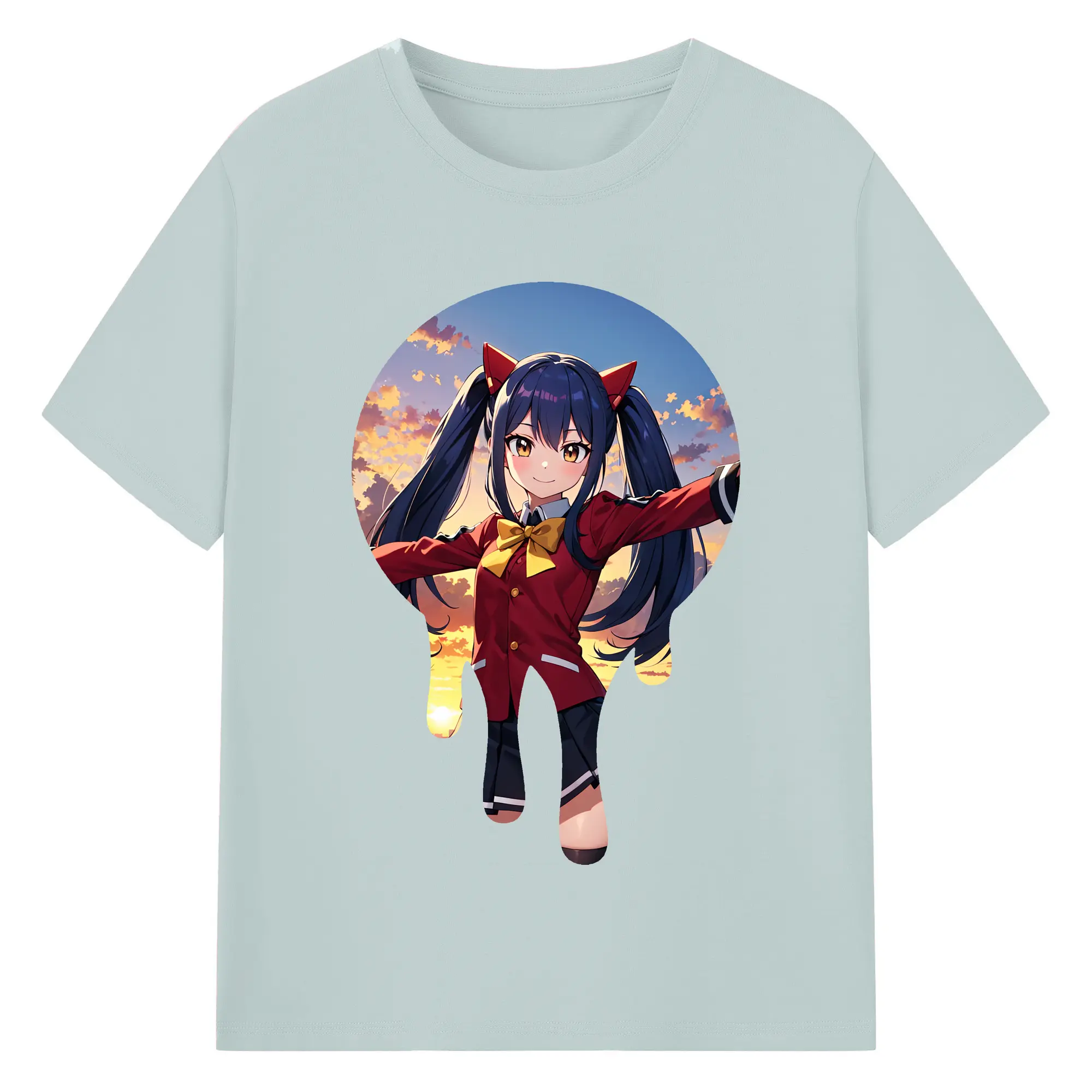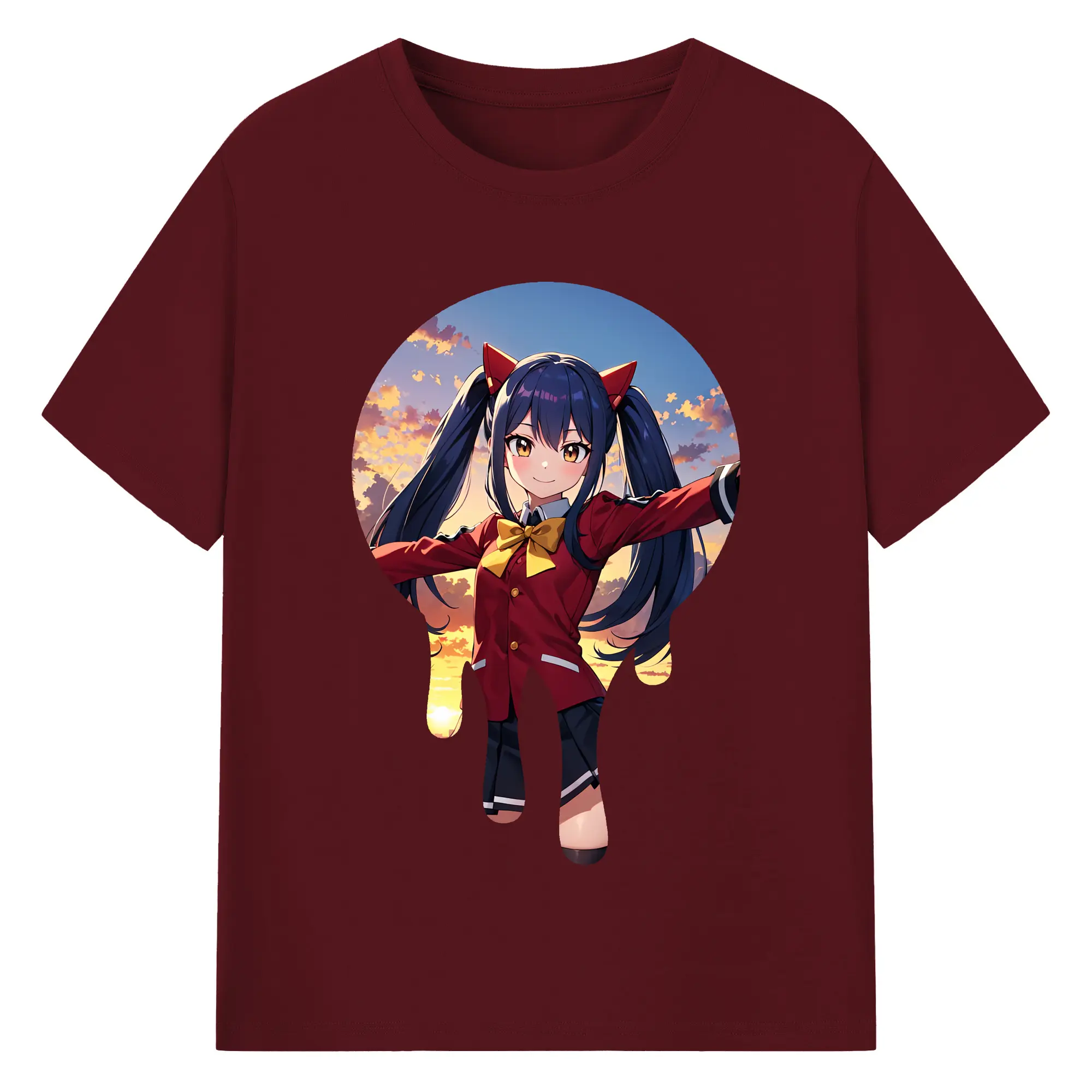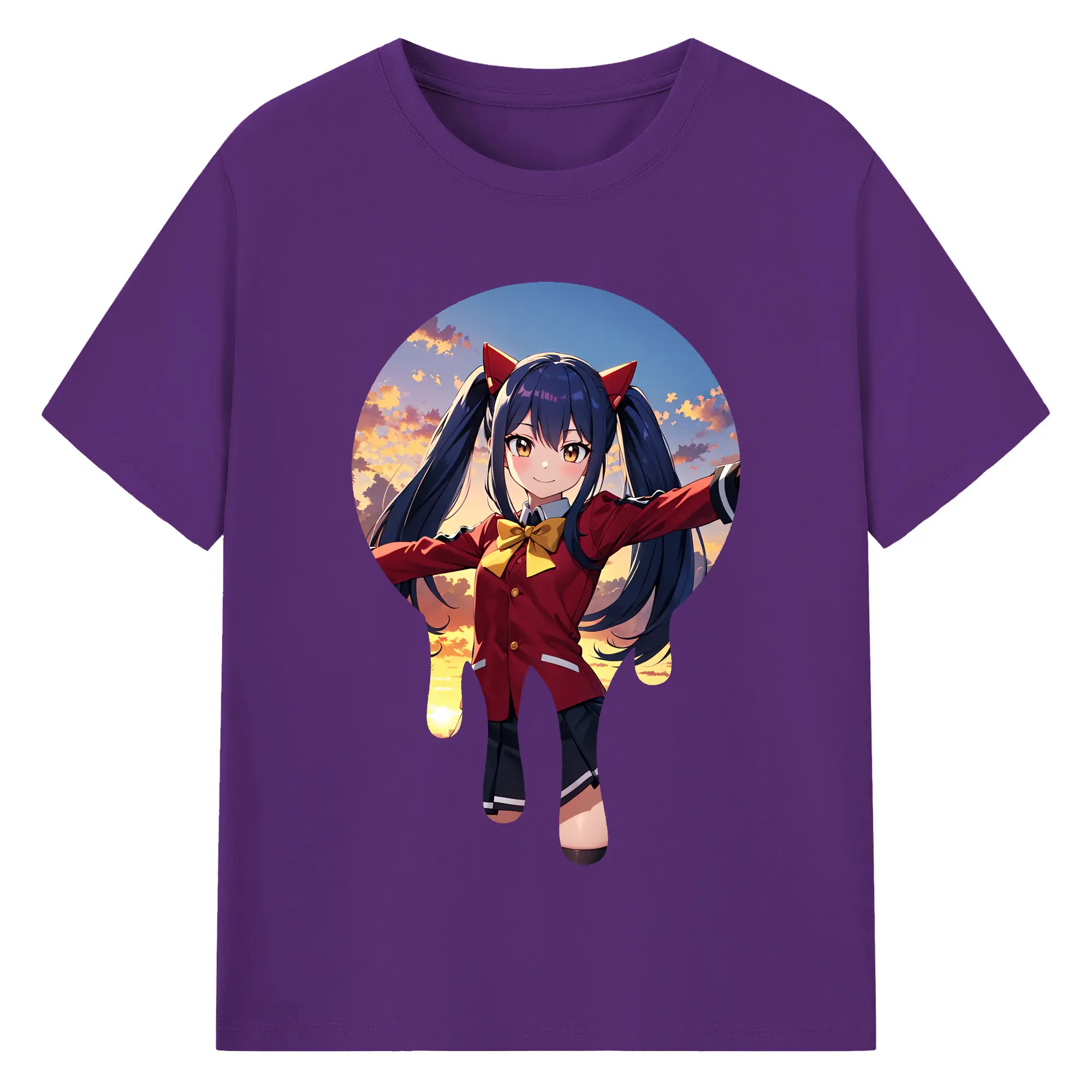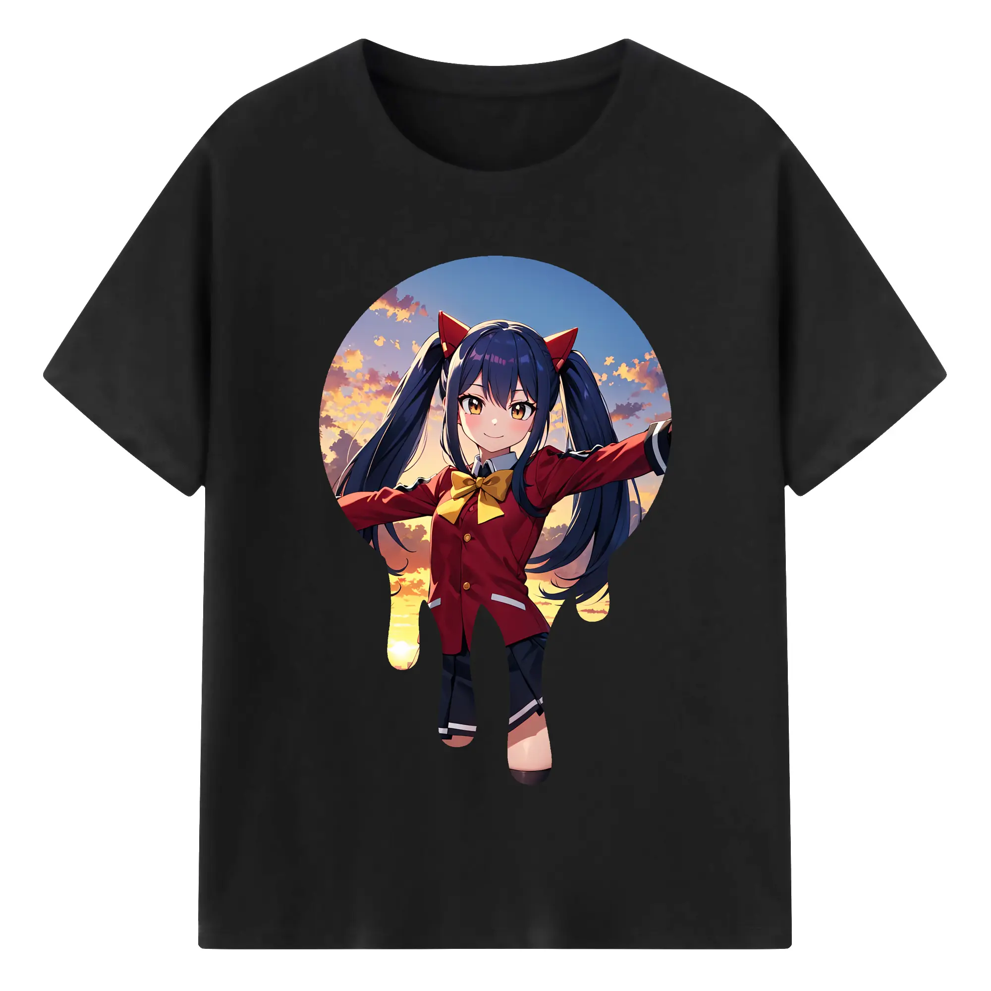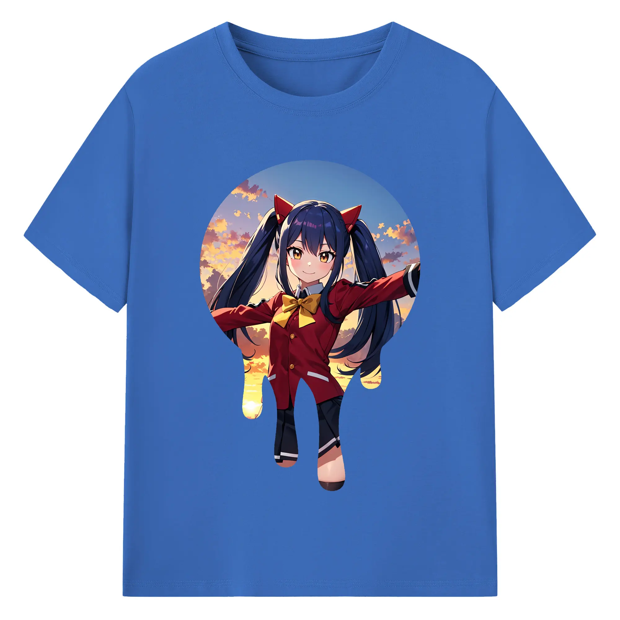 フェアリーテイル グッズ ウェンディ・マーベル - 綿100% 半袖Tシャツ ・ バックプリント ・ 快適 通気性 ・ 日常使い 散歩 スポーツ用