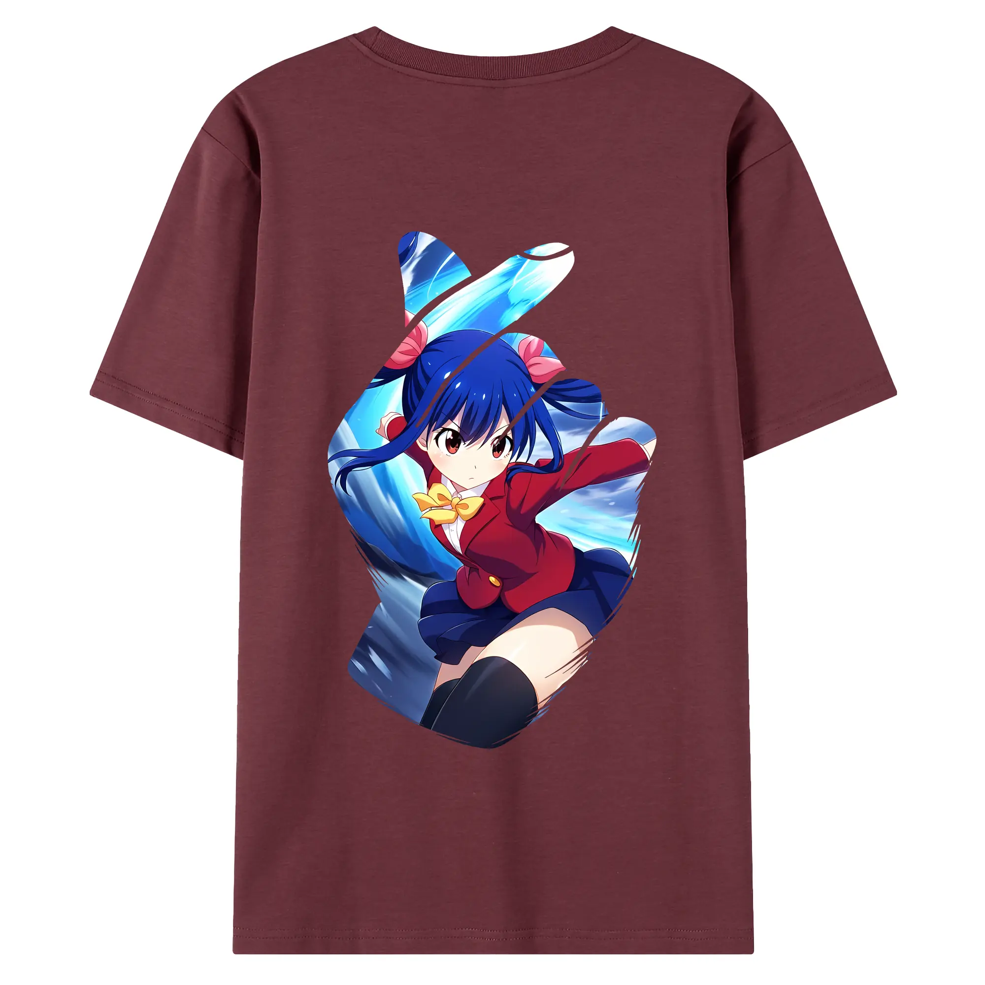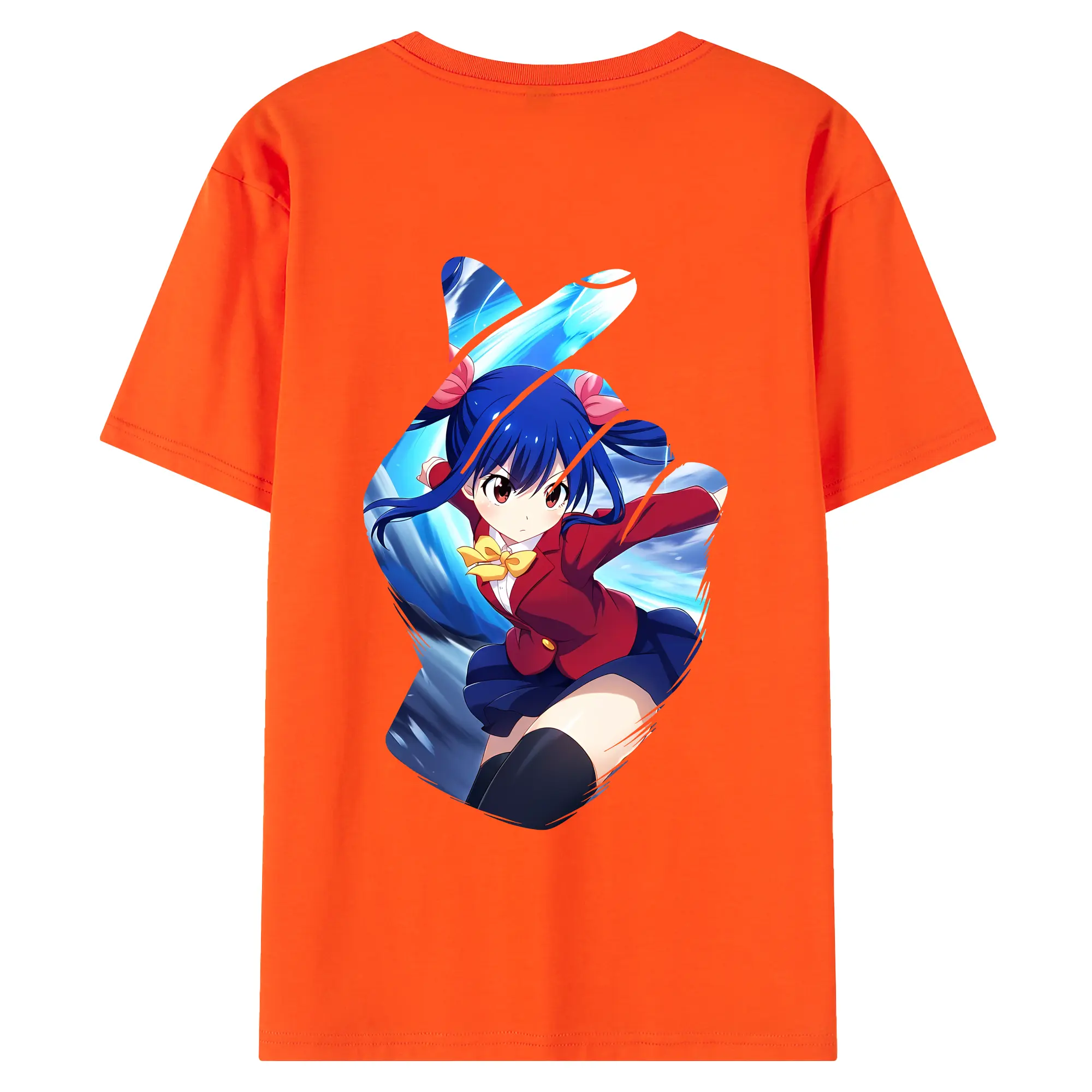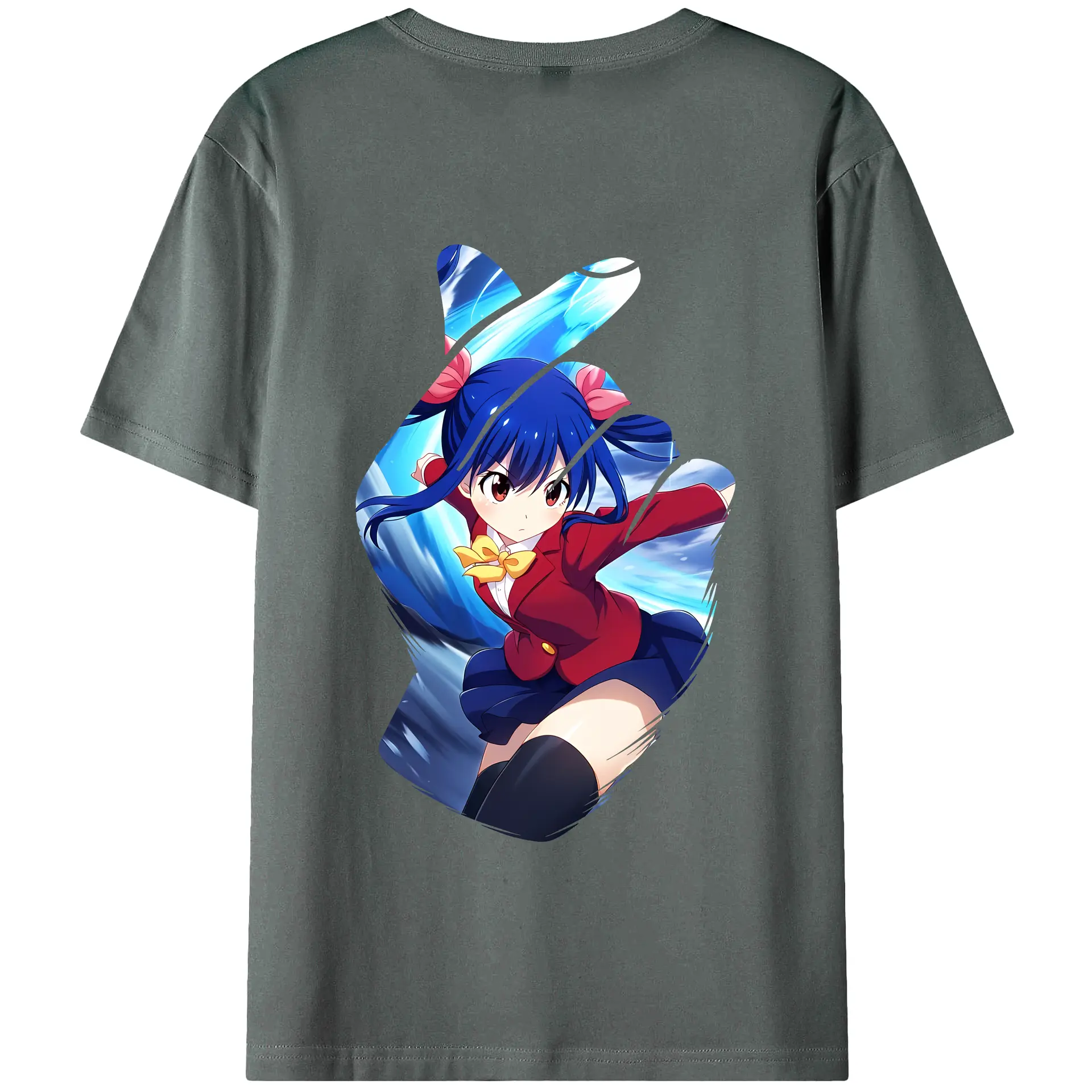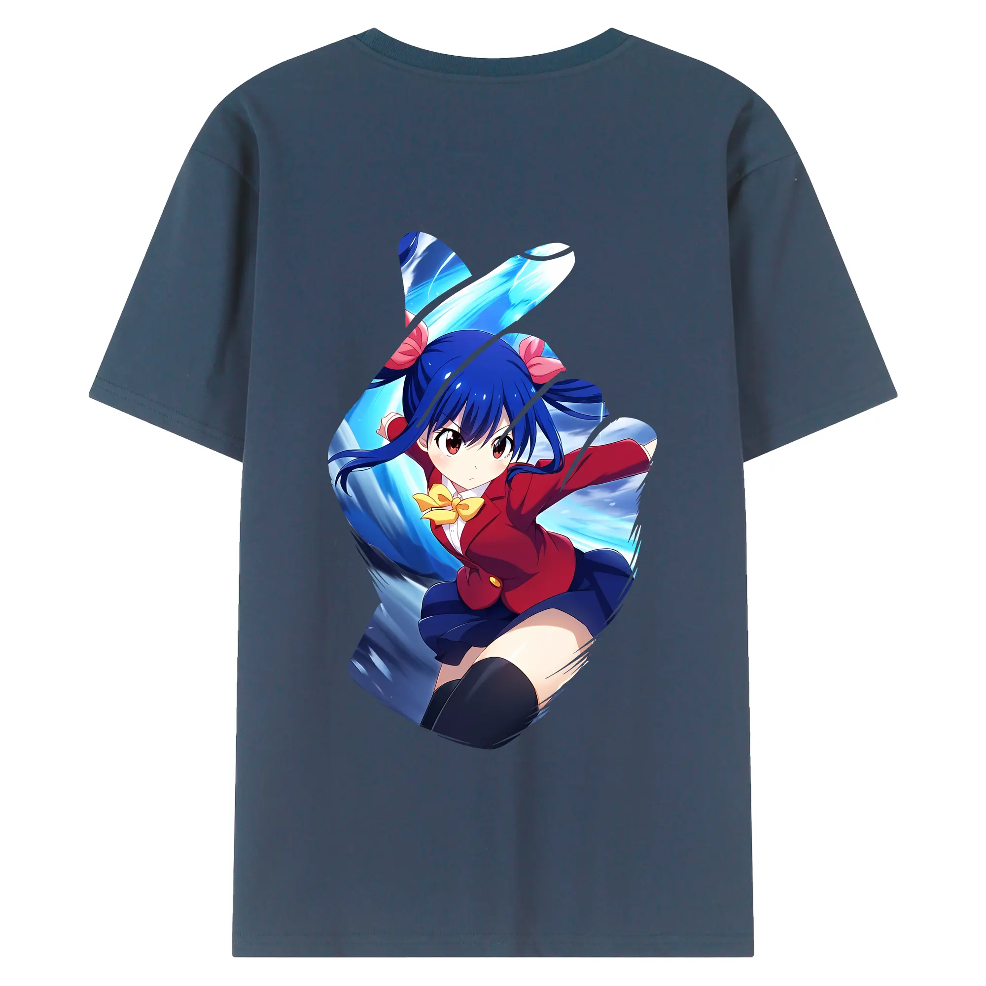 フェアリーテイル グッズ ウェンディ・マーベル - 綿100% ヴィンテージ風 半袖Tシャツ ・ 背面プリント ・ 柔らか肌触り ・ 通気性 快適 ・ スポーツ カジュアル 外出用