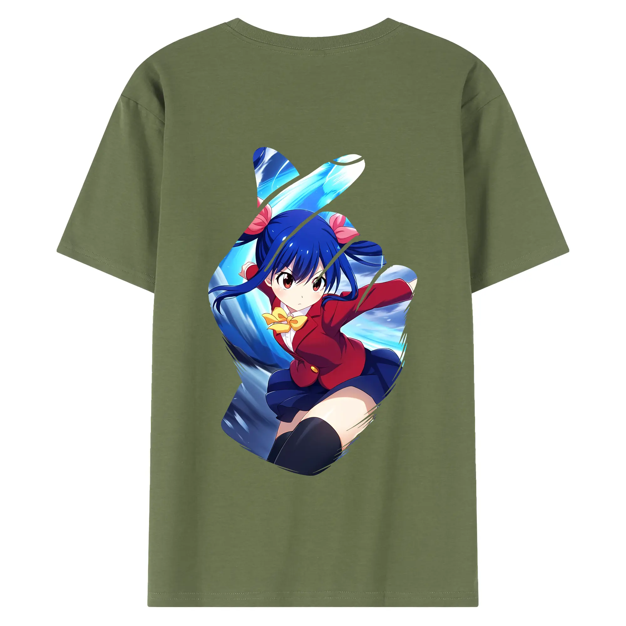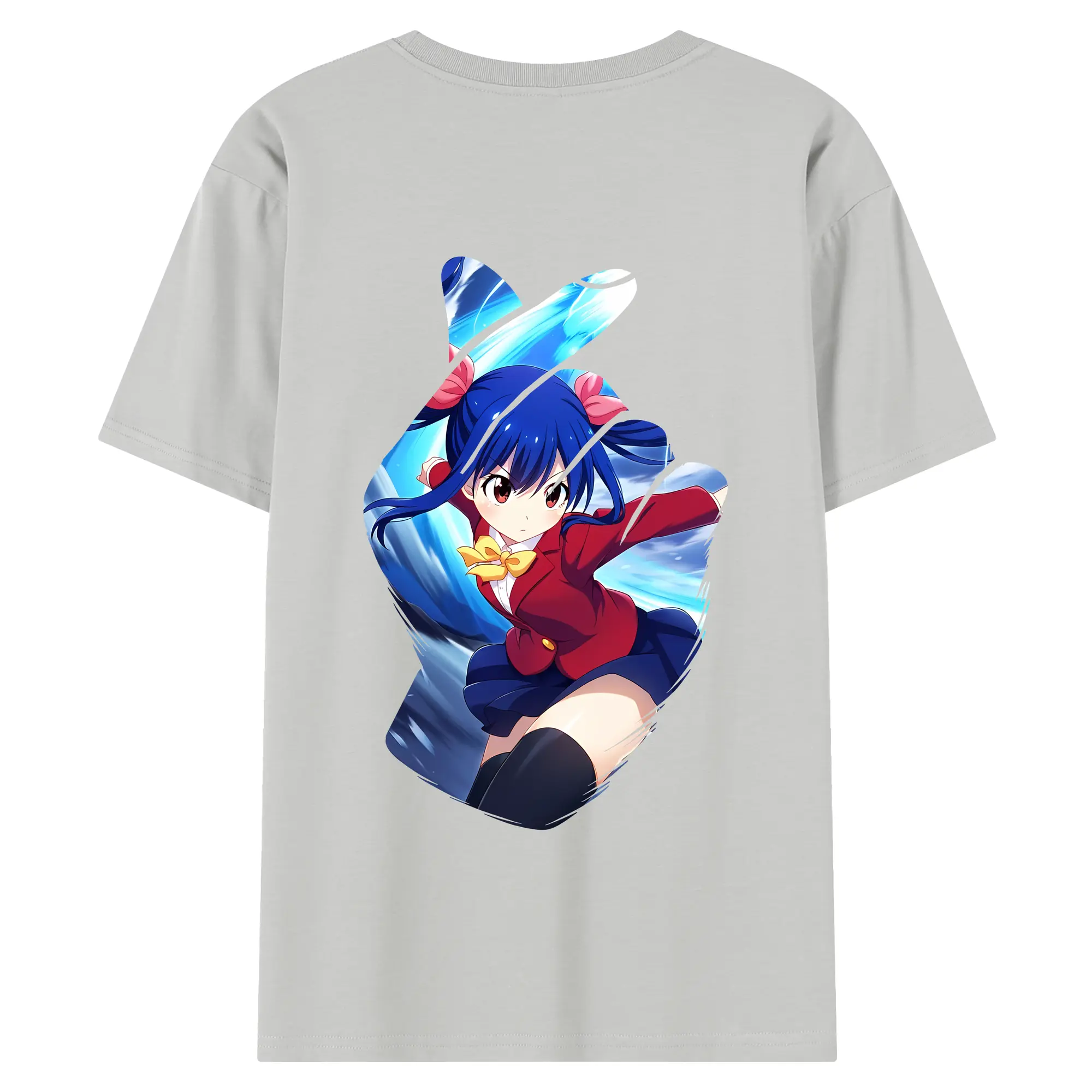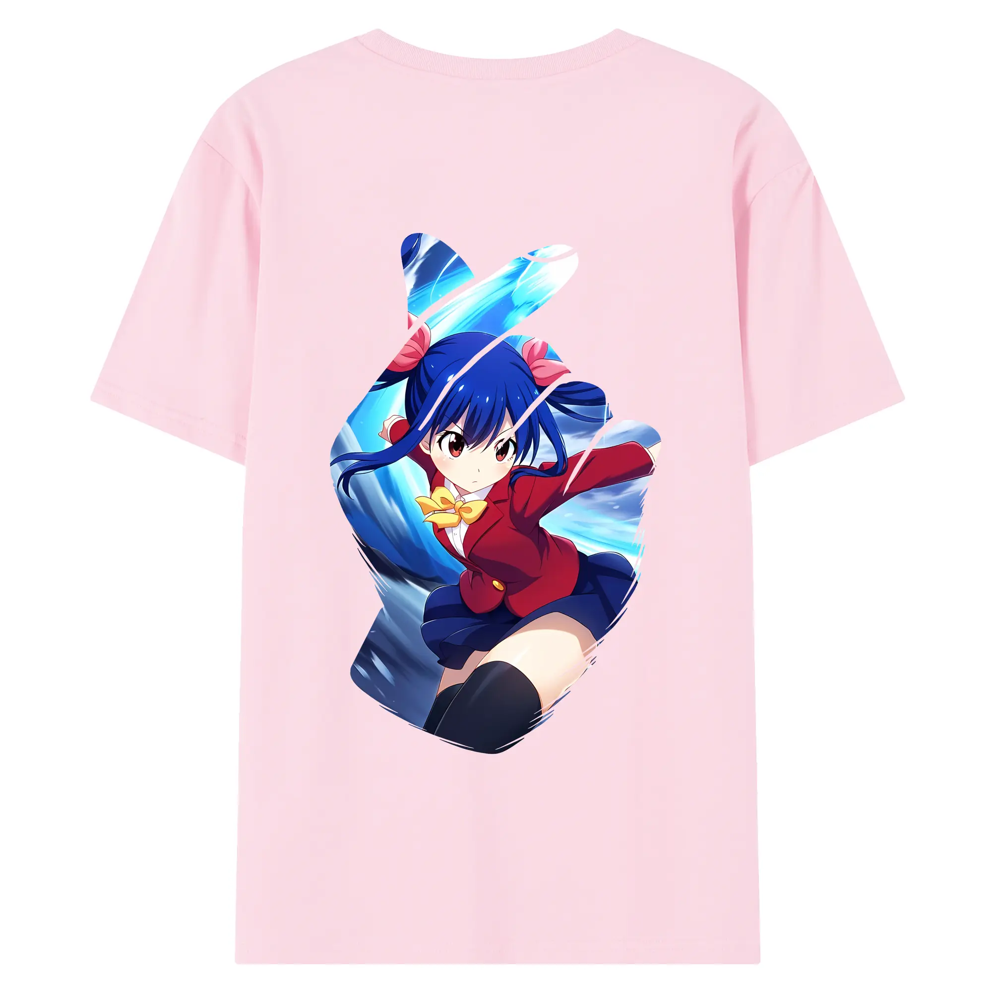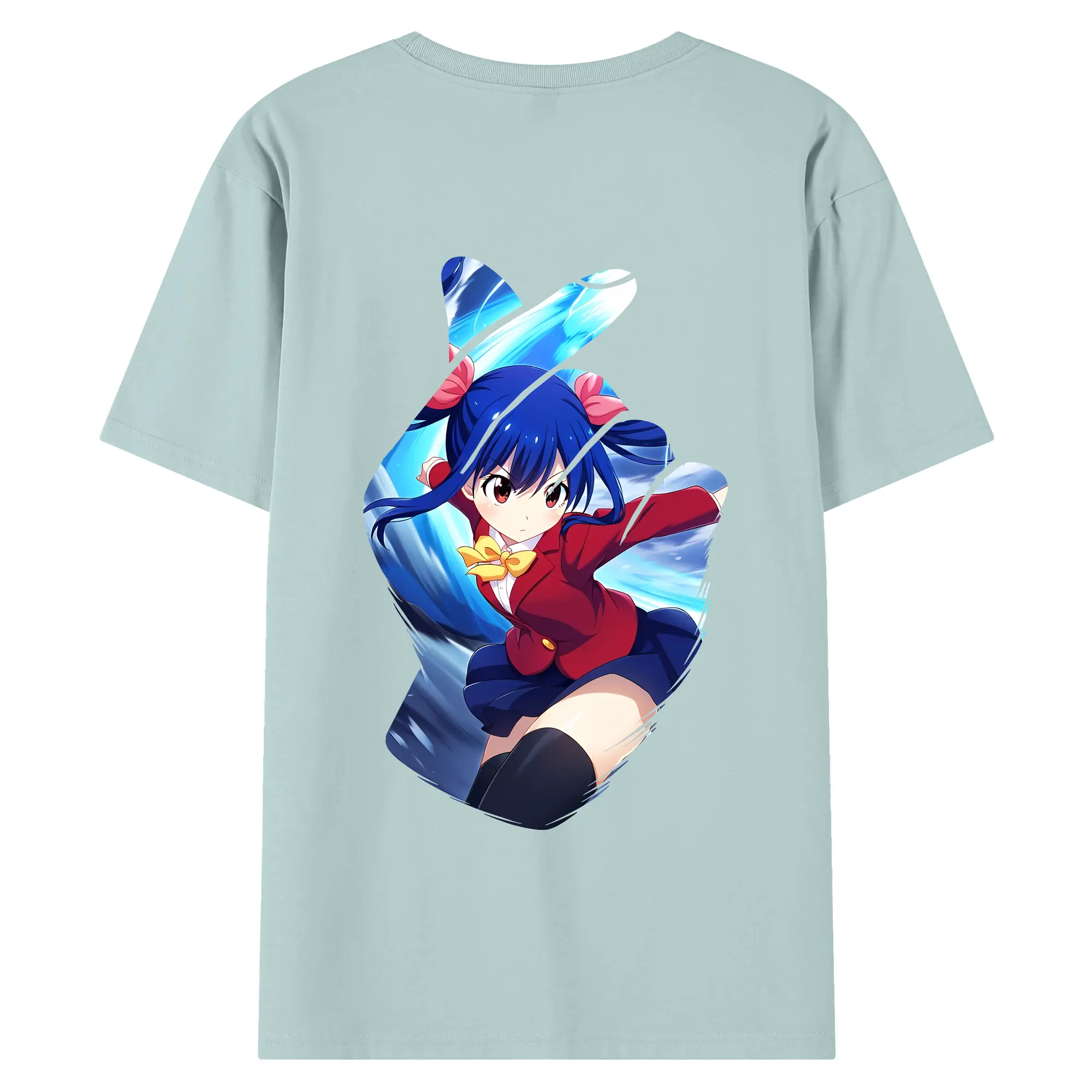フェアリーテイル グッズ ウェンディ・マーベル - 綿100% ヴィンテージ風 半袖Tシャツ ・ 背面プリント ・ 柔らか肌触り ・ 通気性 快適 ・ スポーツ カジュアル 外出用