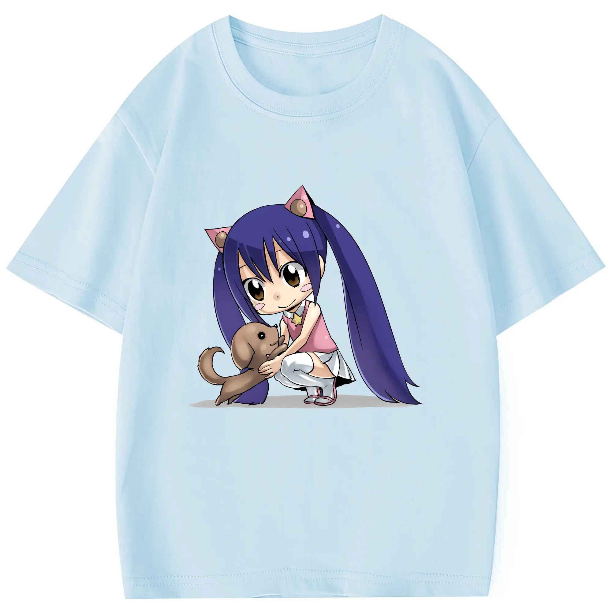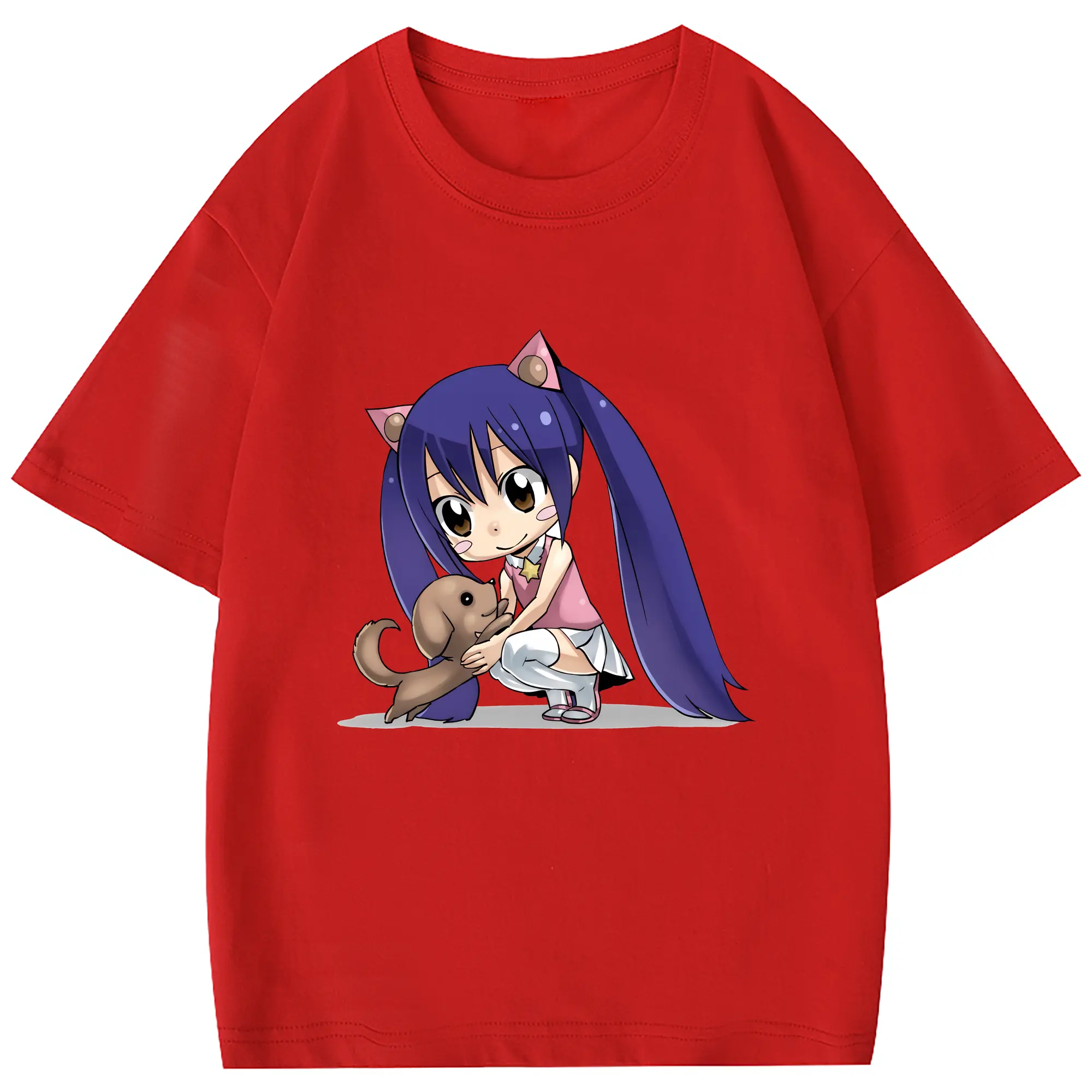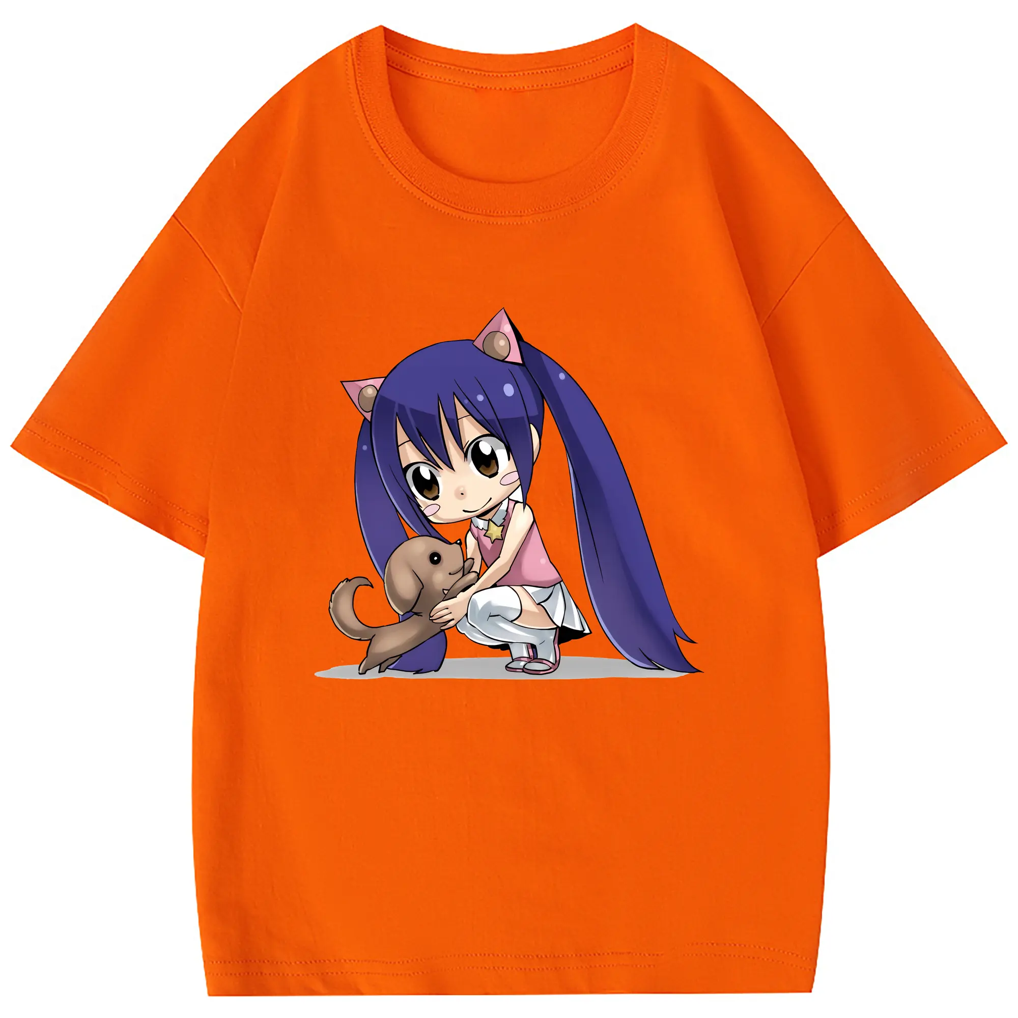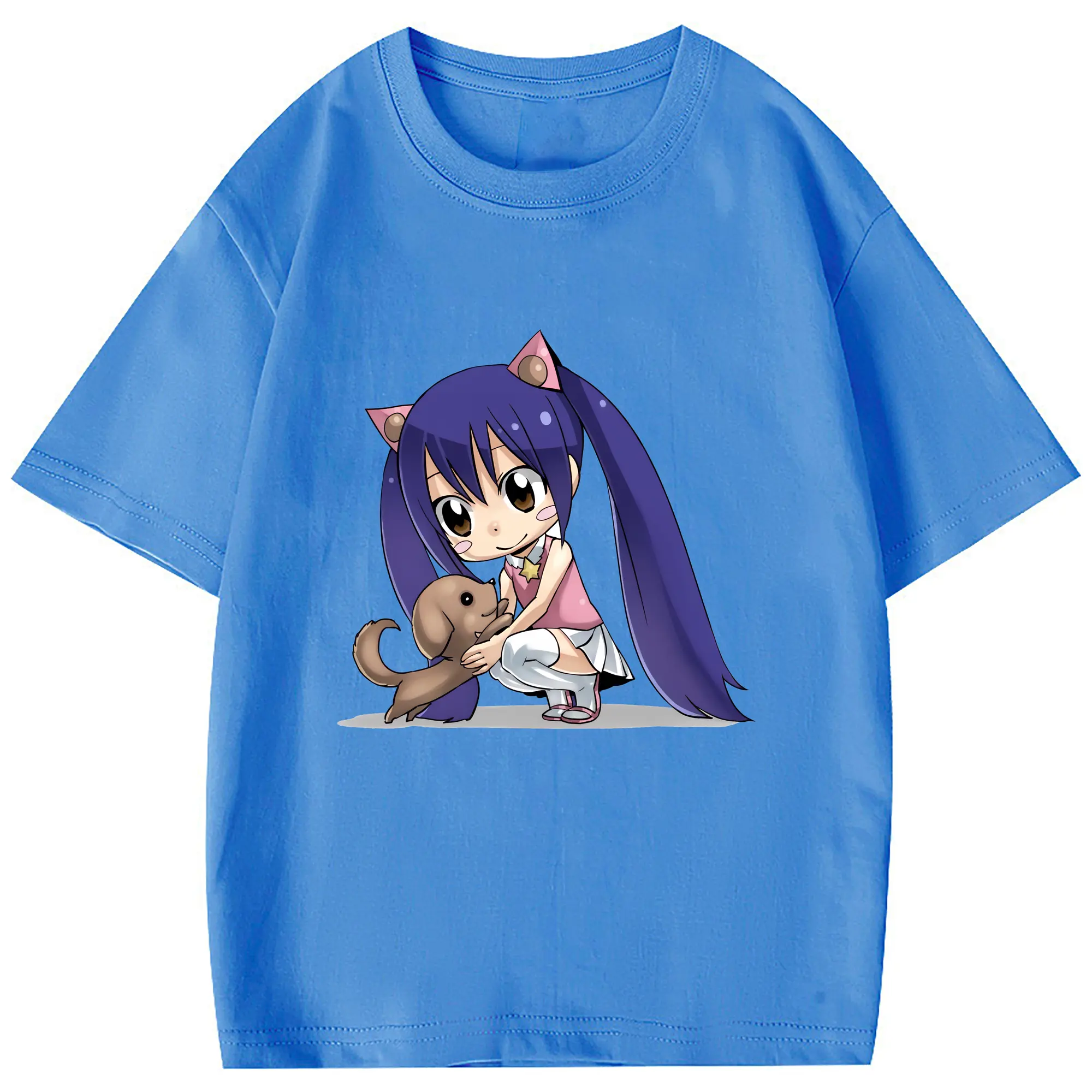 フェアリーテイル グッズ ウェンディ・マーベル - 綿100% 半袖Tシャツ ・ フロントプリント ・ 快適 通気性 ・ 日常使い 散歩 スポーツ用