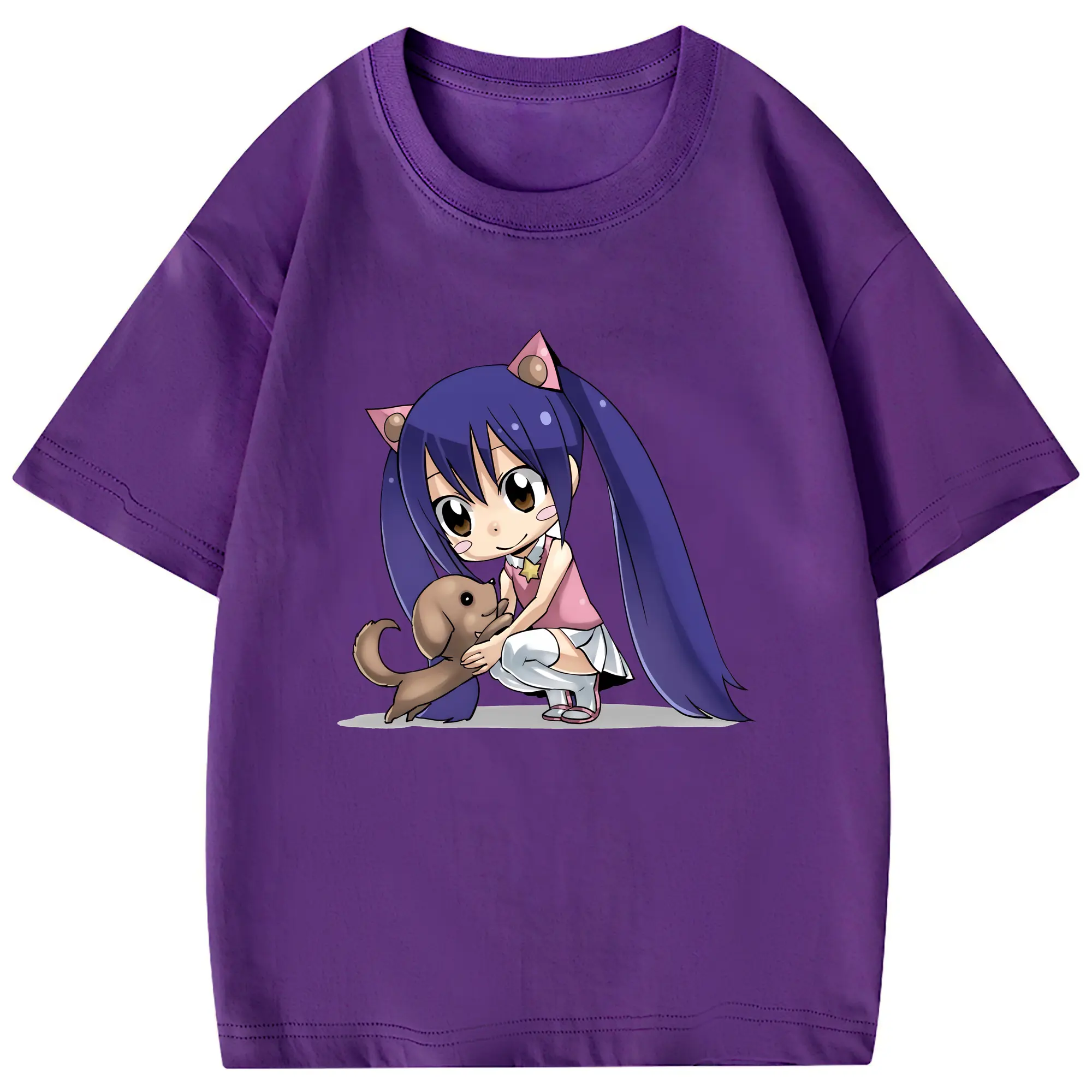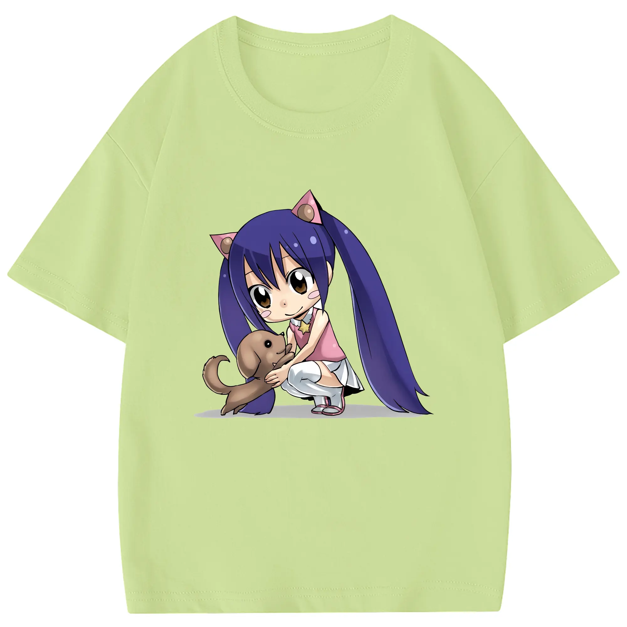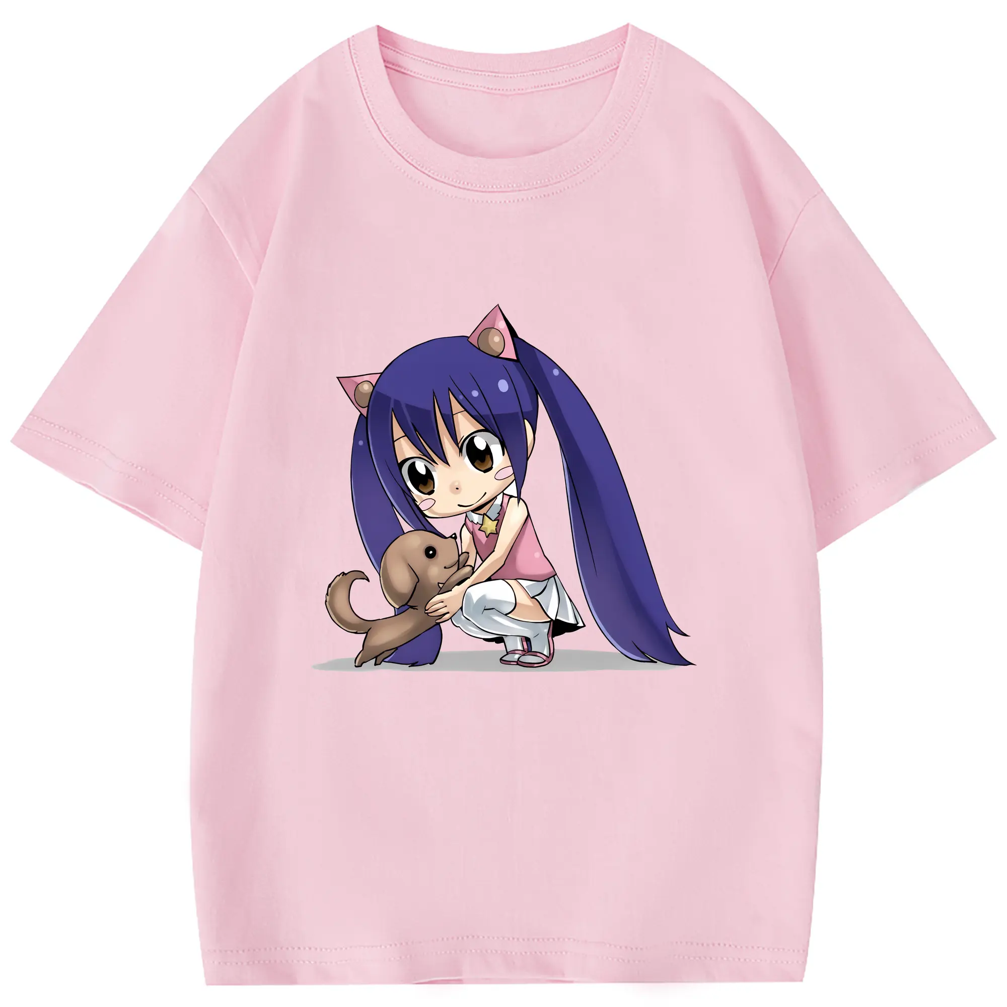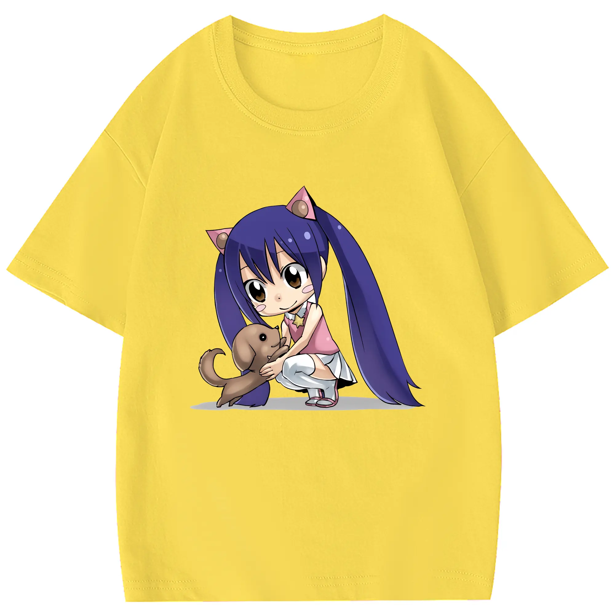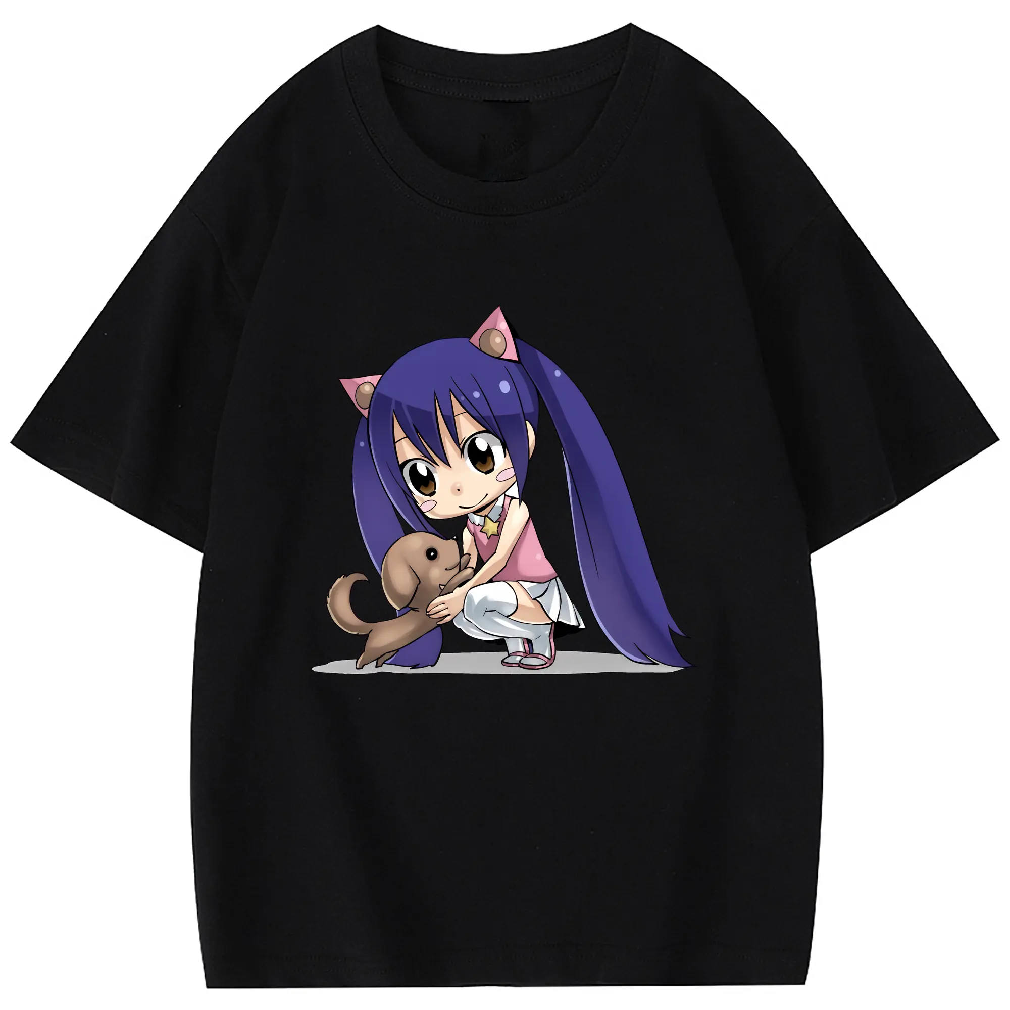フェアリーテイル グッズ ウェンディ・マーベル - 綿100% 半袖Tシャツ ・ フロントプリント ・ 快適 通気性 ・ 日常使い 散歩 スポーツ用
