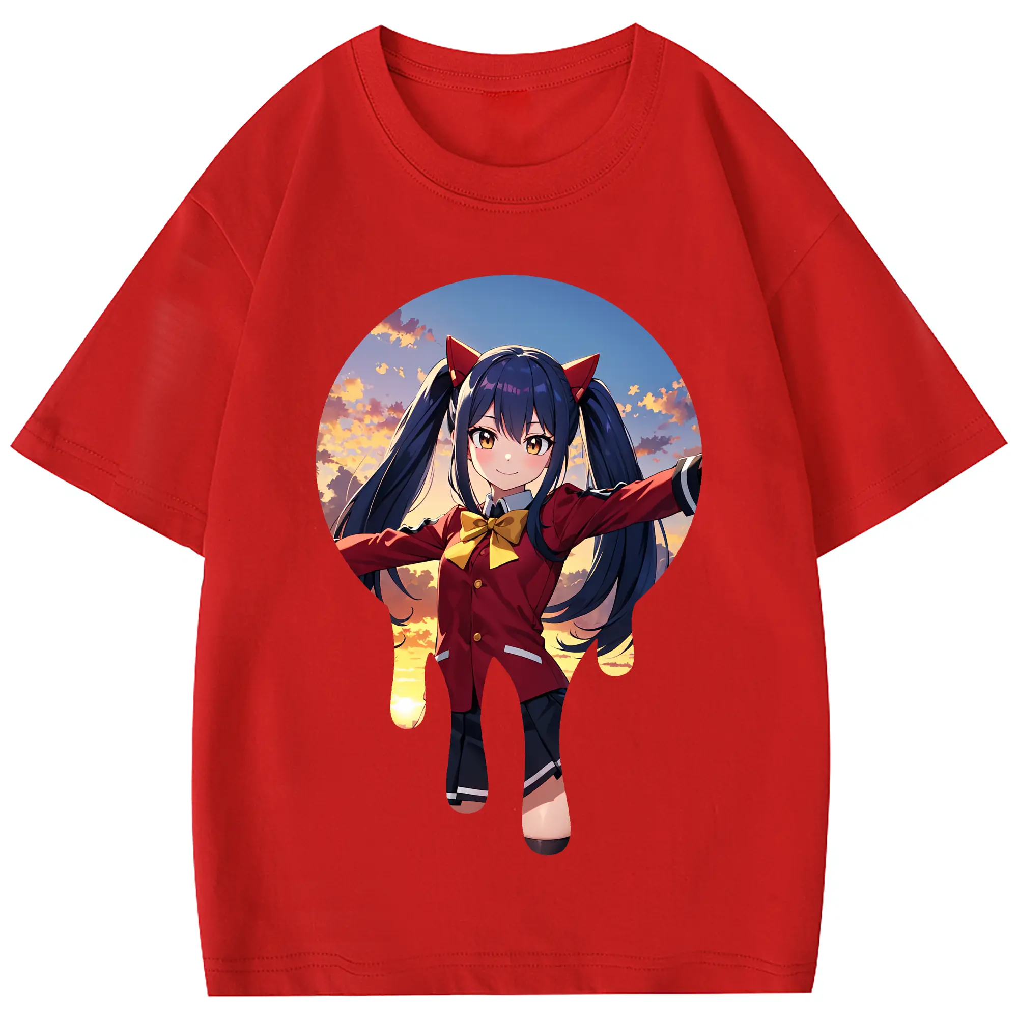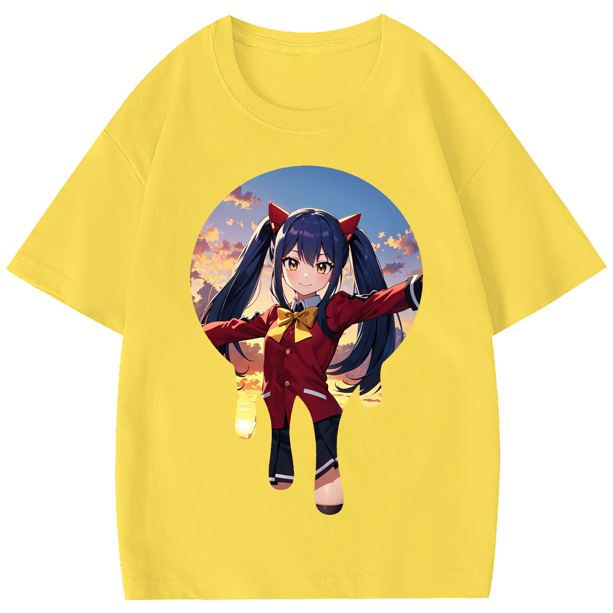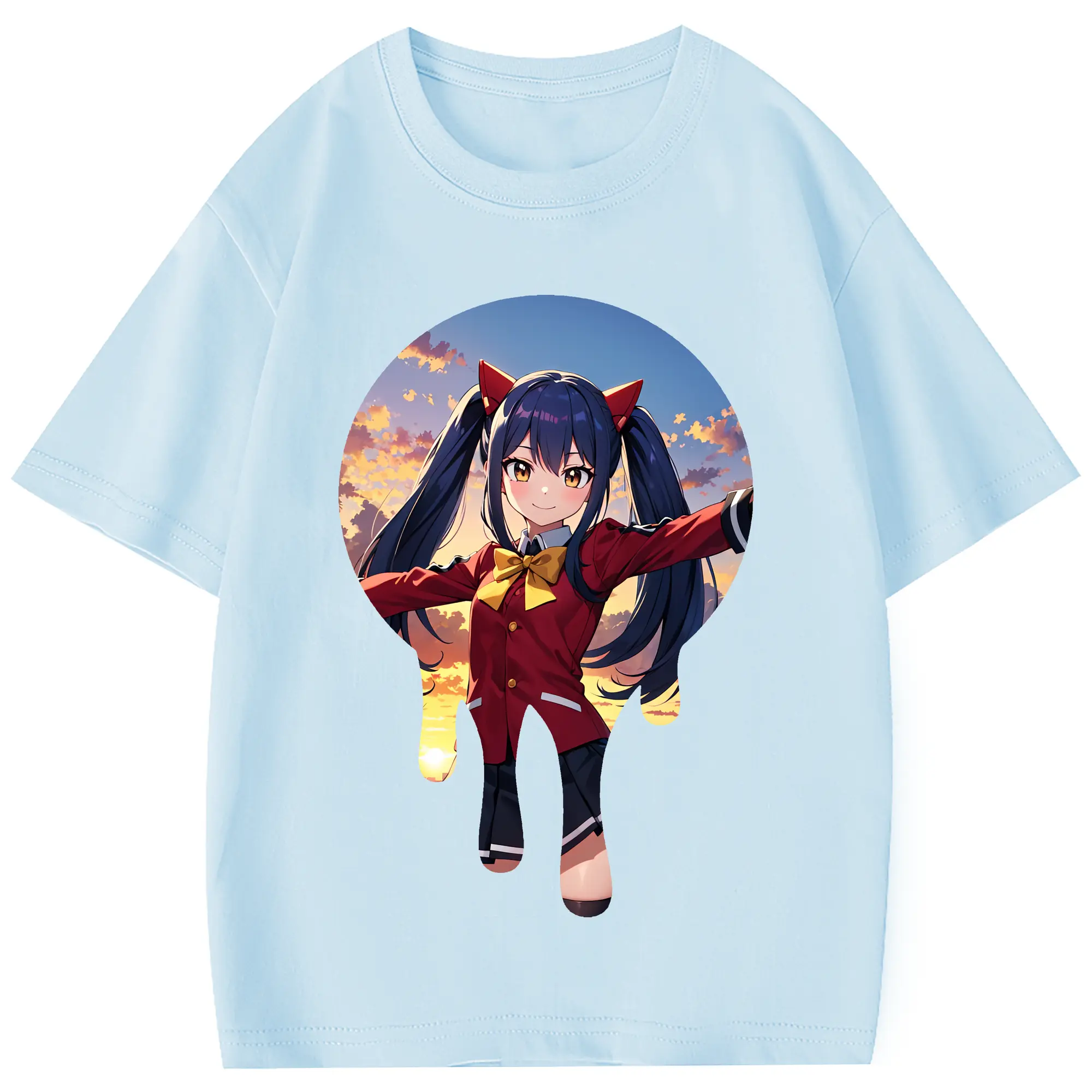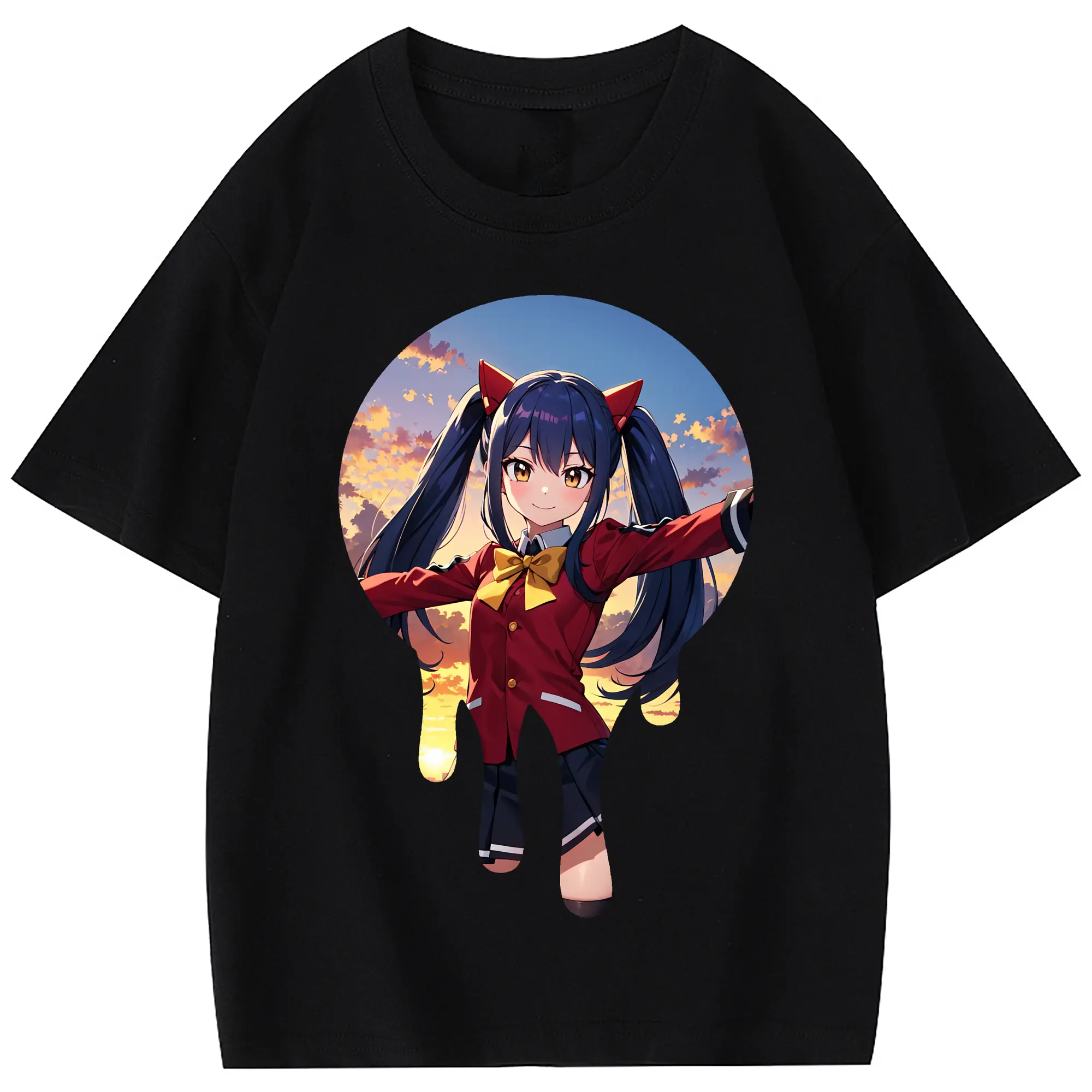 フェアリーテイル グッズ ウェンディ・マーベル - 綿100% 半袖Tシャツ ・ フロントプリント ・ 快適 通気性 ・ 日常使い 散歩 スポーツ用