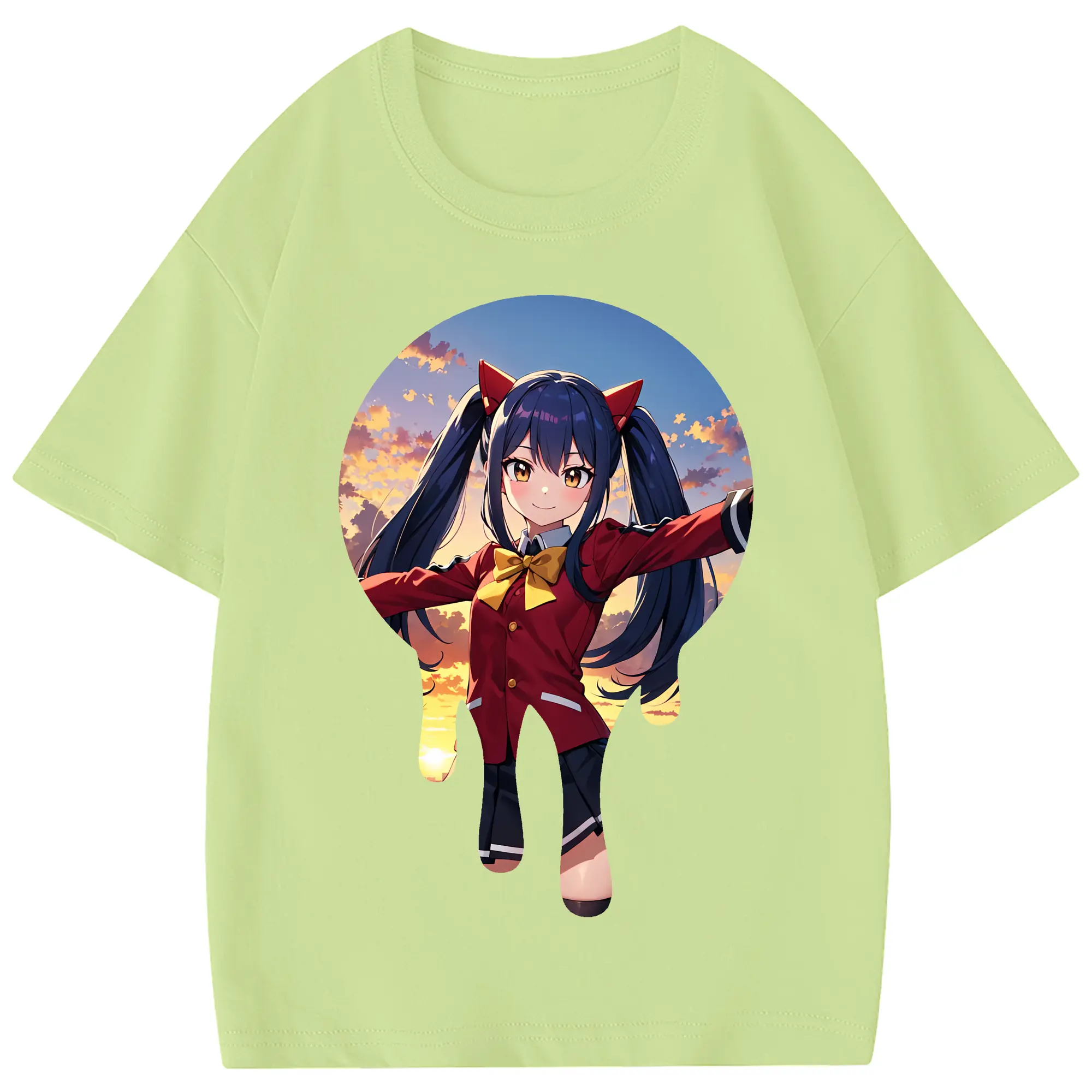 フェアリーテイル グッズ ウェンディ・マーベル - 綿100% ヴィンテージ風 半袖Tシャツ ・ フロントプリント ・ 柔らか肌触り ・ 通気性 快適 ・ スポーツ カジュアル 外出用