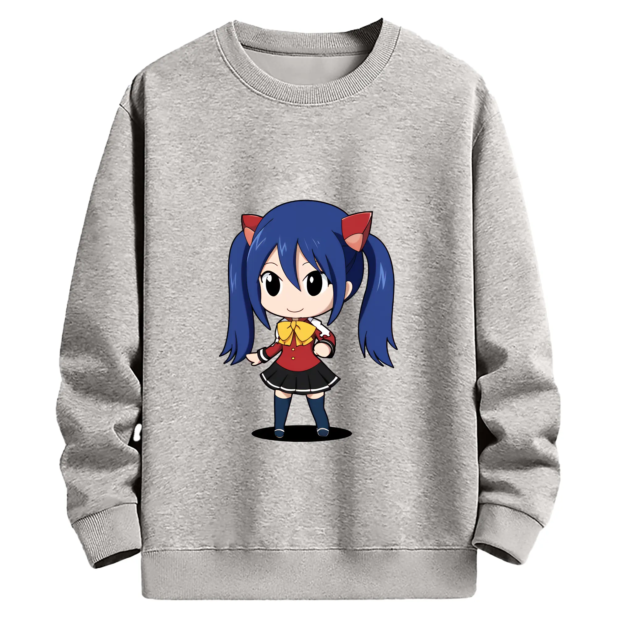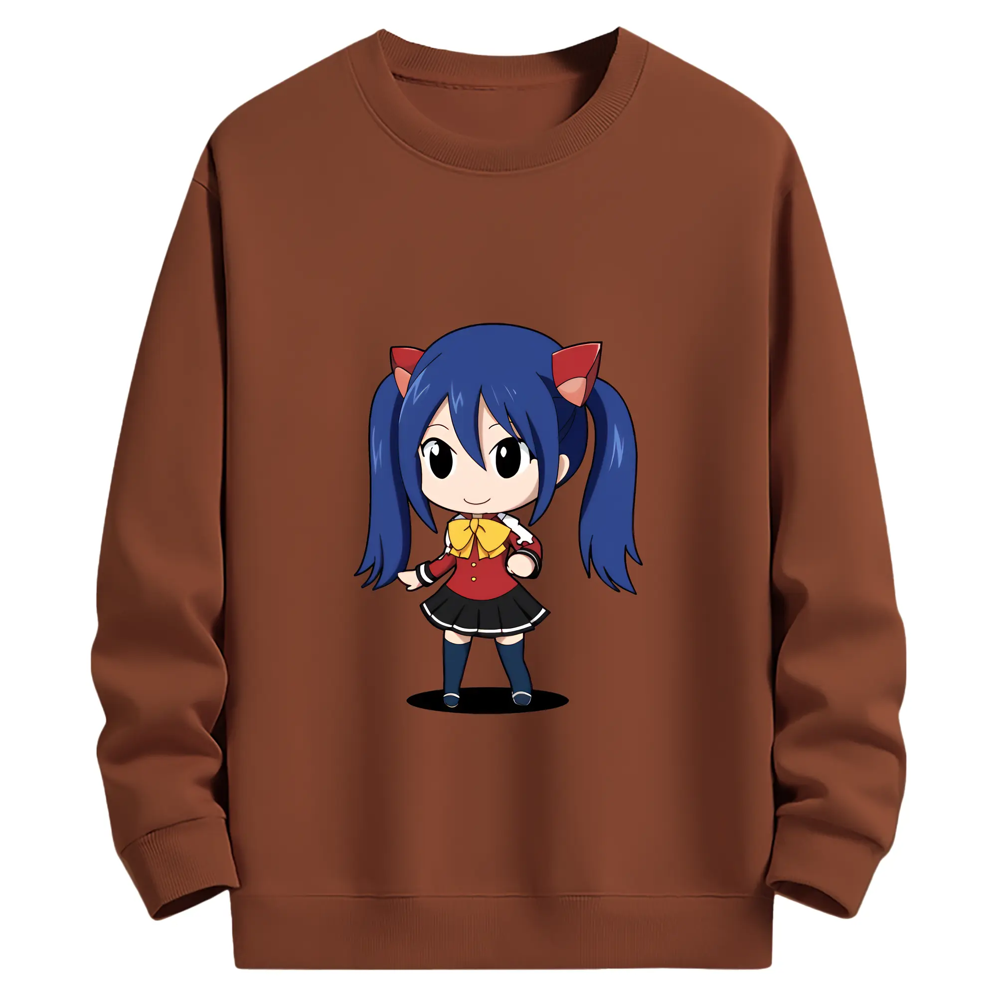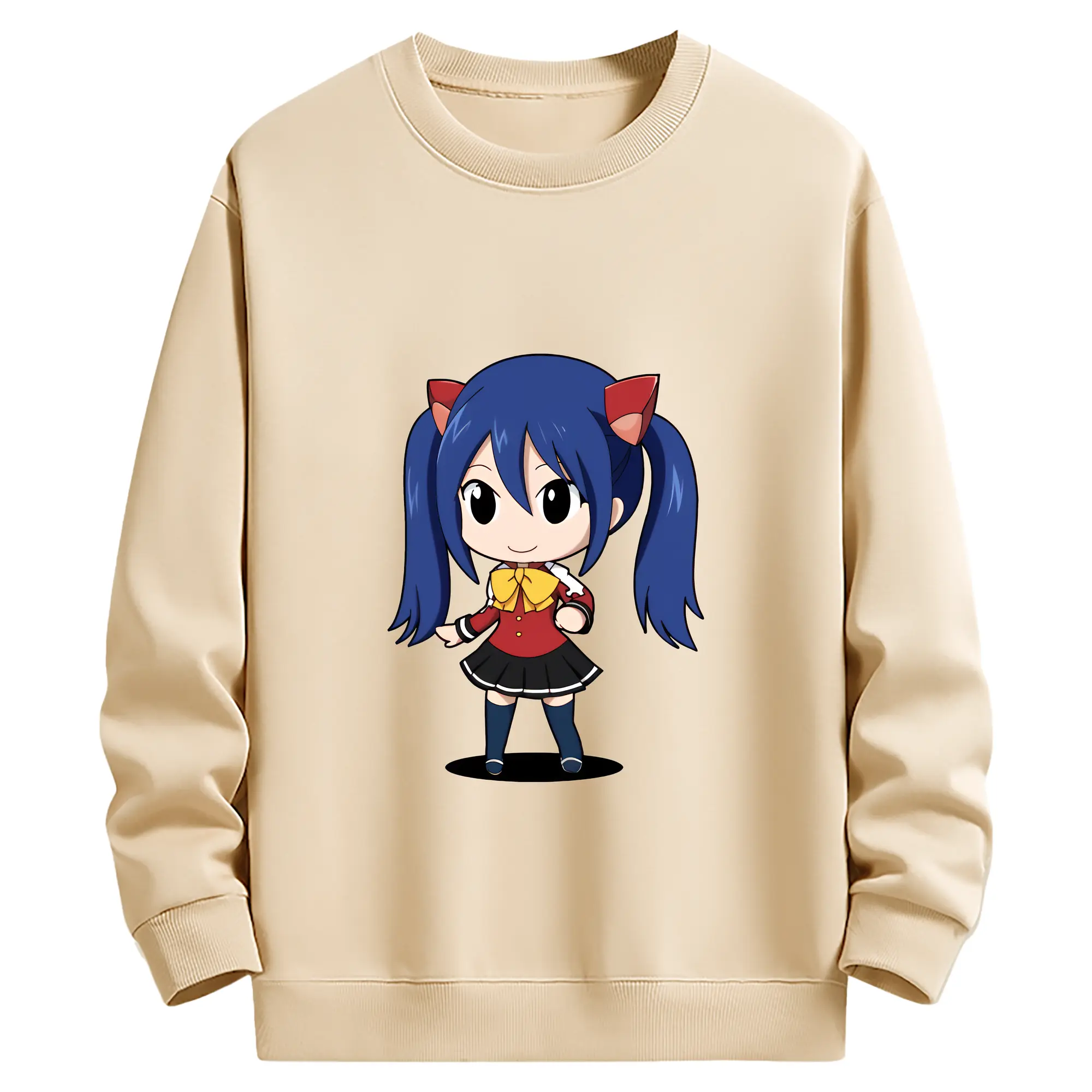 フェアリーテイル グッズ ウェンディ・マーベル - 薄手 クルーネック スウェット 裏毛260g · ポリエステル 春秋向け カジュアル 男女兼用 · トレーナー デイリー スポーツ 散歩に最適