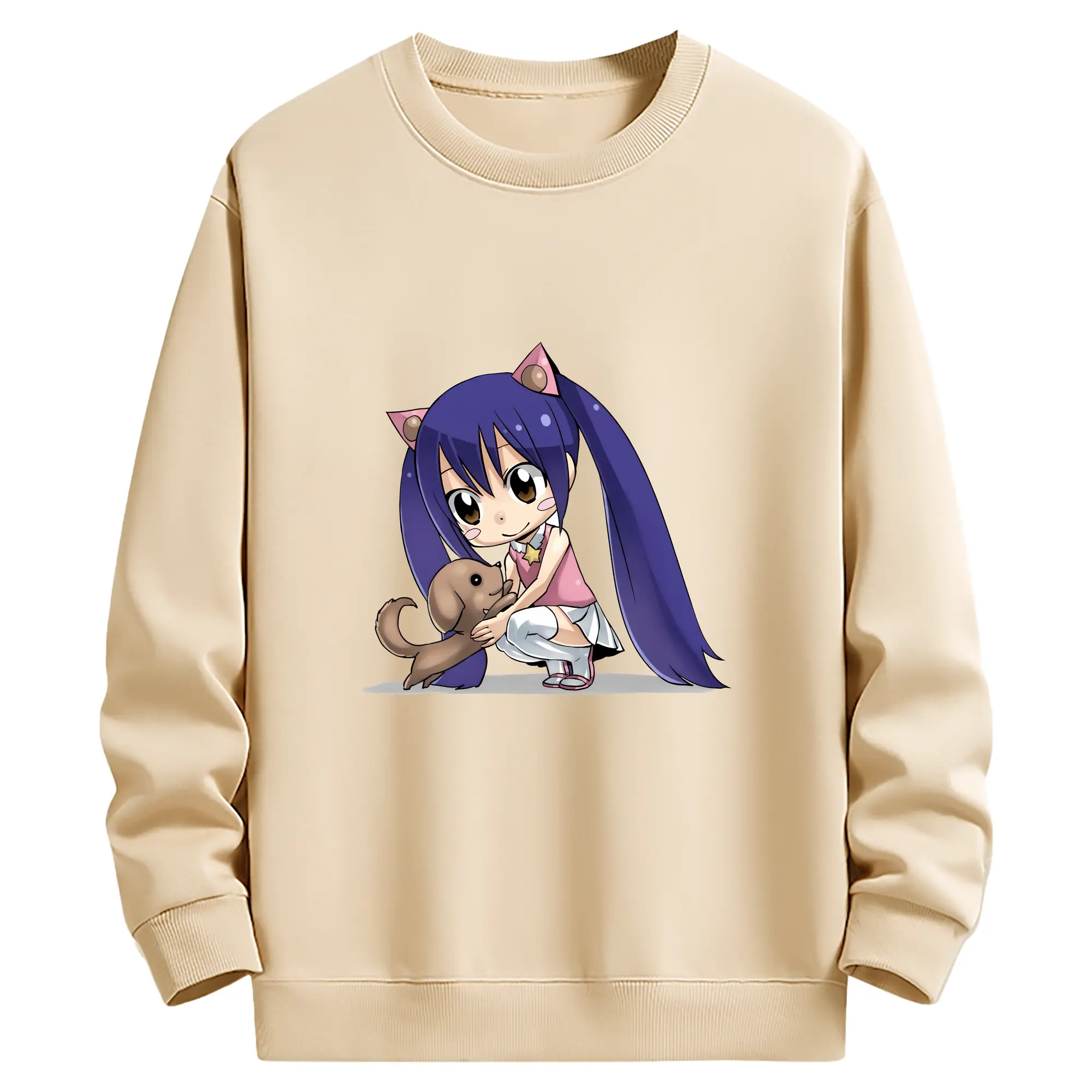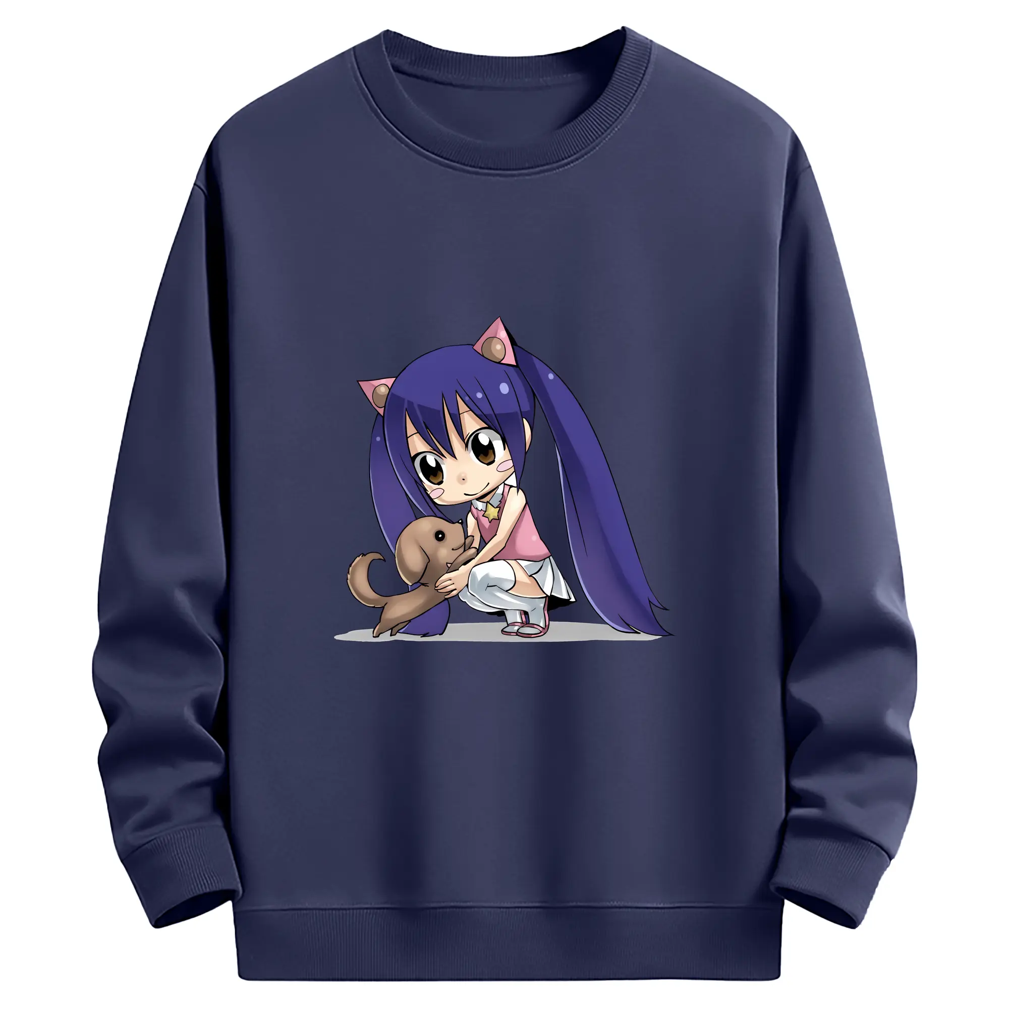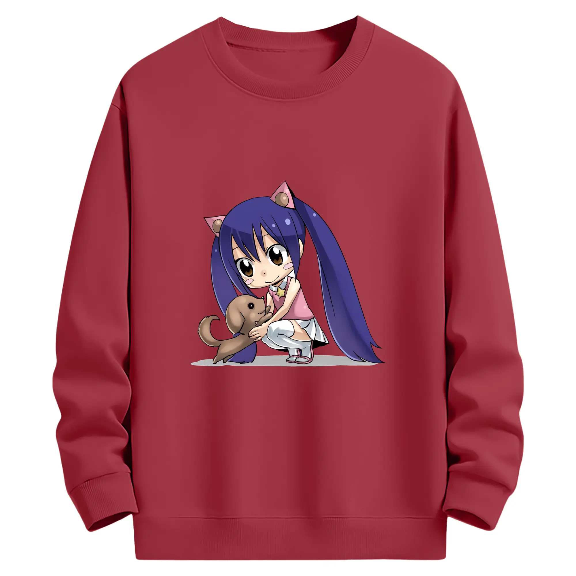 フェアリーテイル グッズ ウェンディ・マーベル - 薄手 クルーネック スウェット 裏毛260g · ポリエステル 春秋向け カジュアル 男女兼用 · トレーナー デイリー スポーツ 散歩に最適
