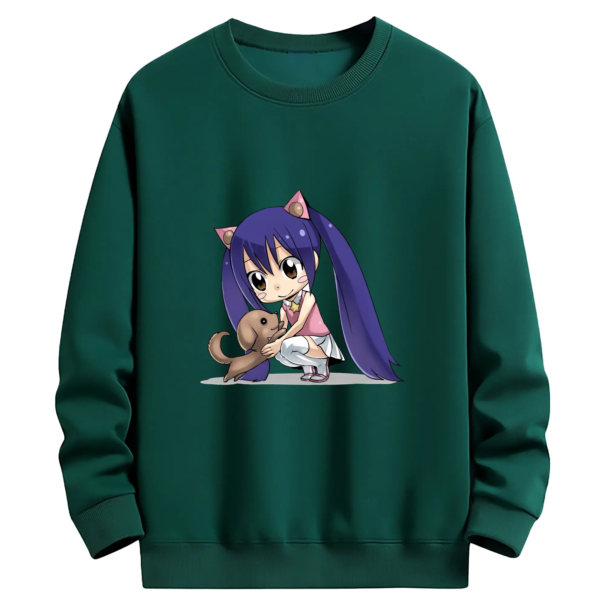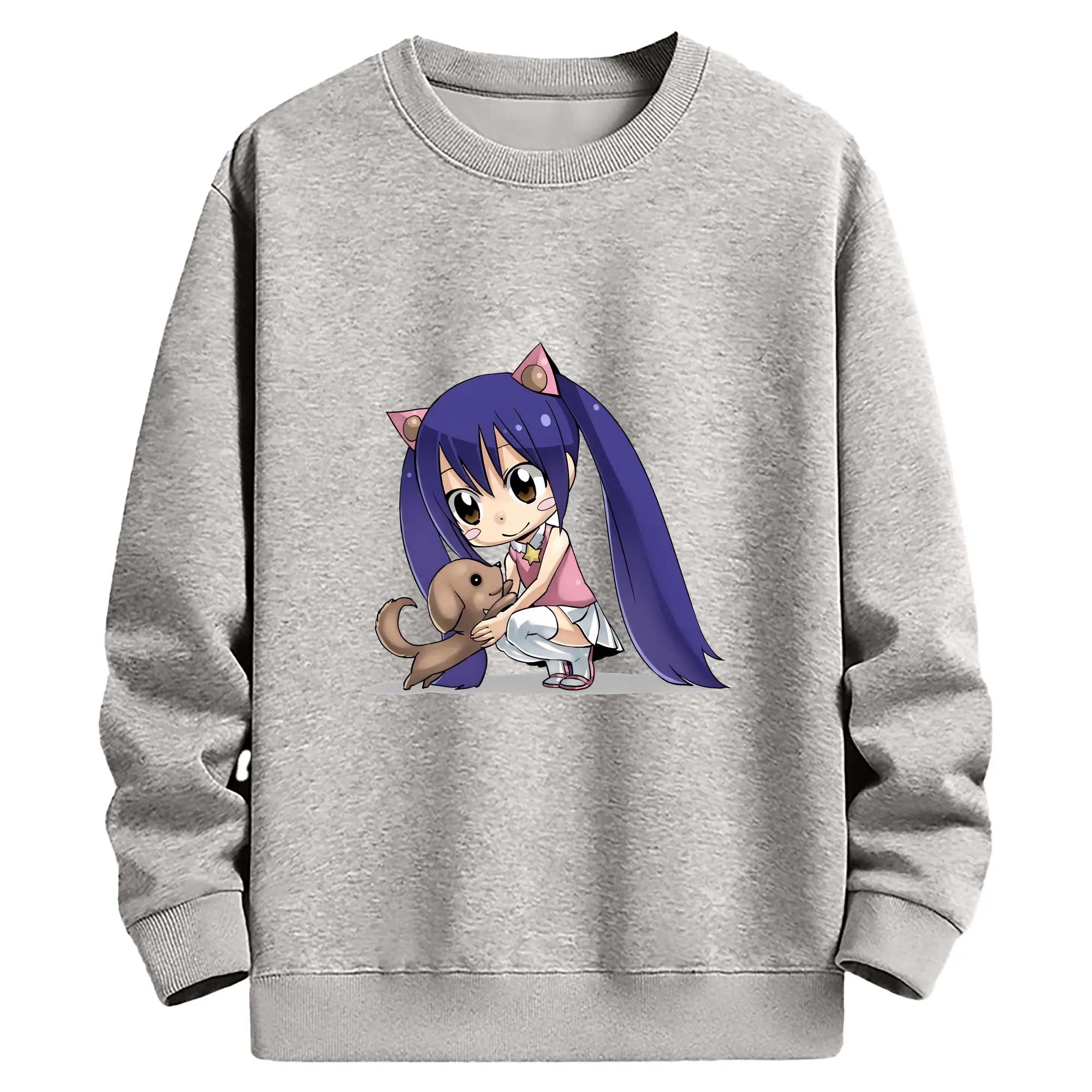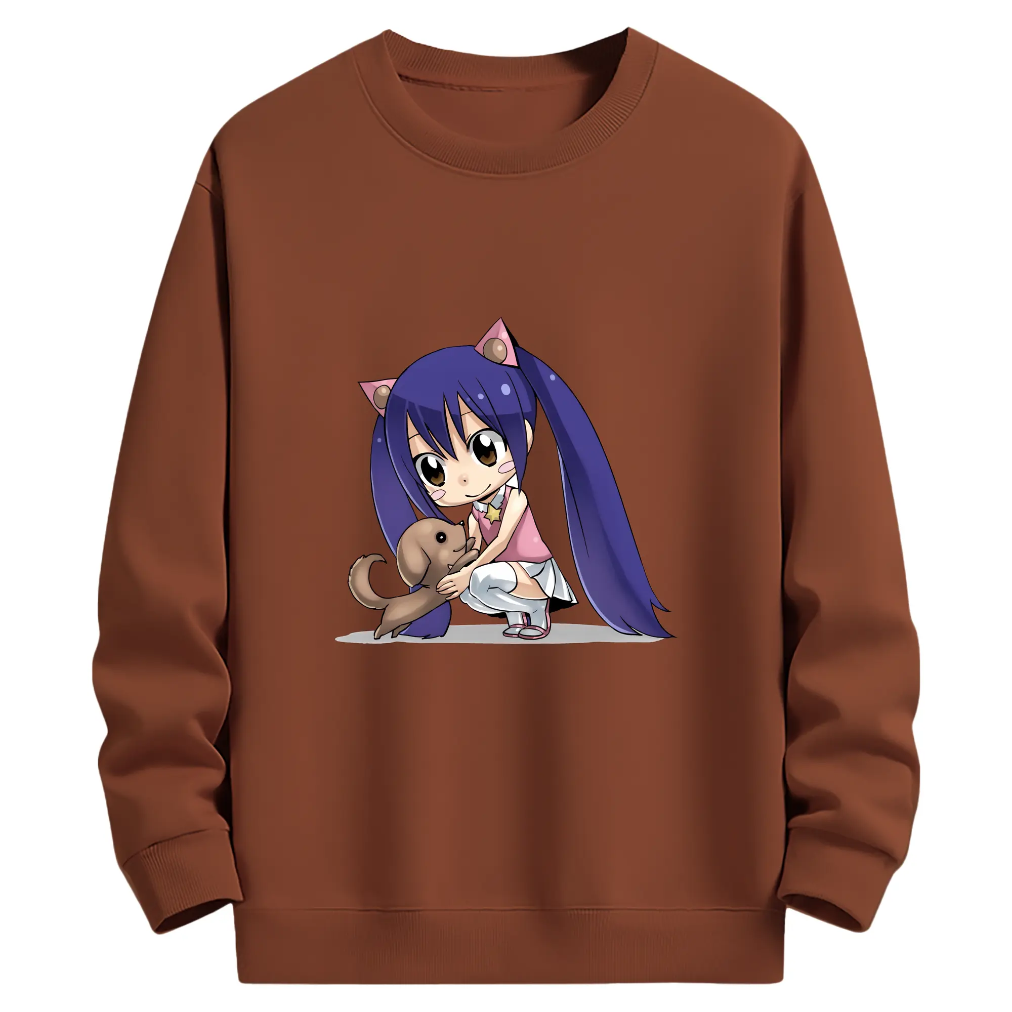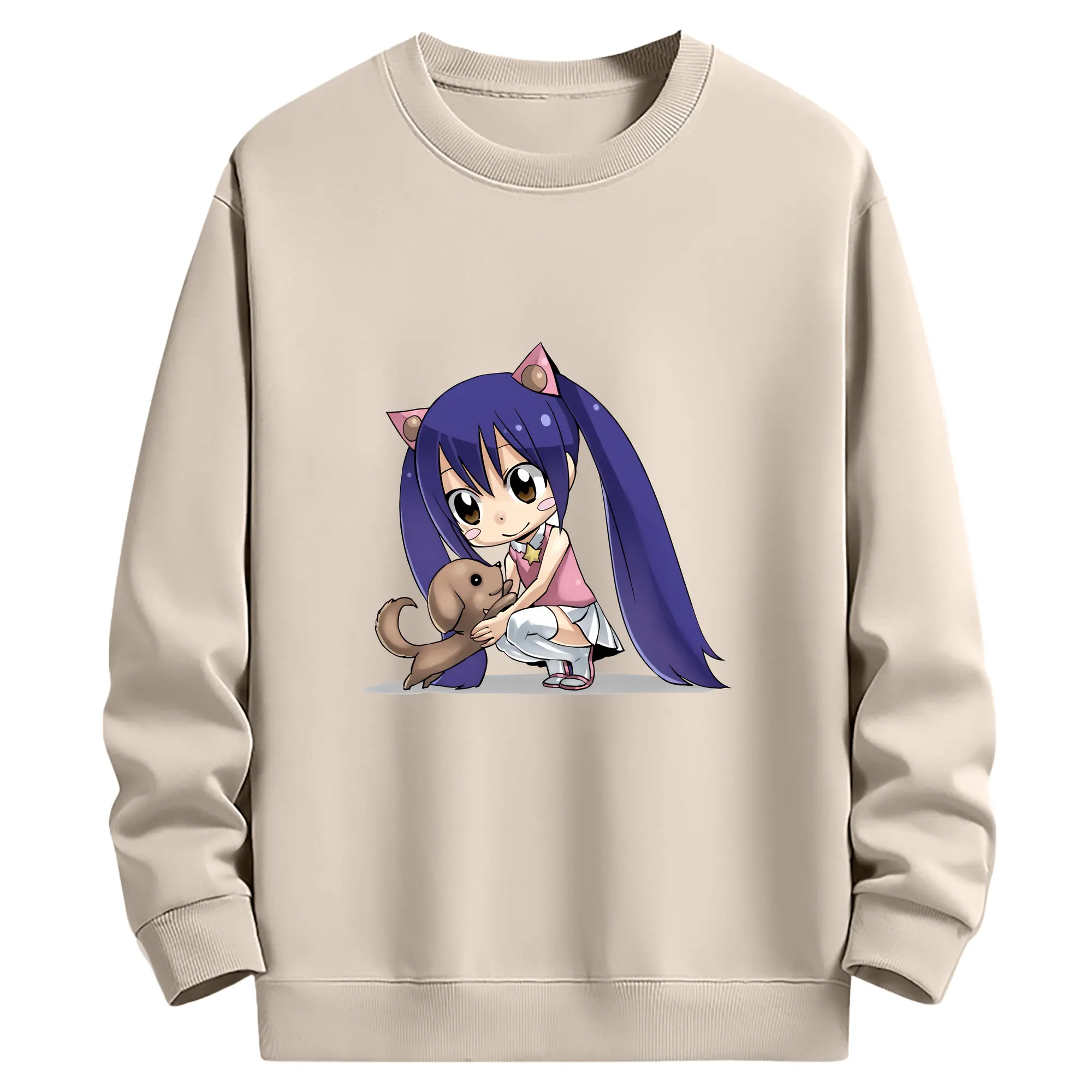 フェアリーテイル グッズ ウェンディ・マーベル - 薄手 クルーネック スウェット 裏毛260g · ポリエステル 春秋向け カジュアル 男女兼用 · トレーナー デイリー スポーツ 散歩に最適