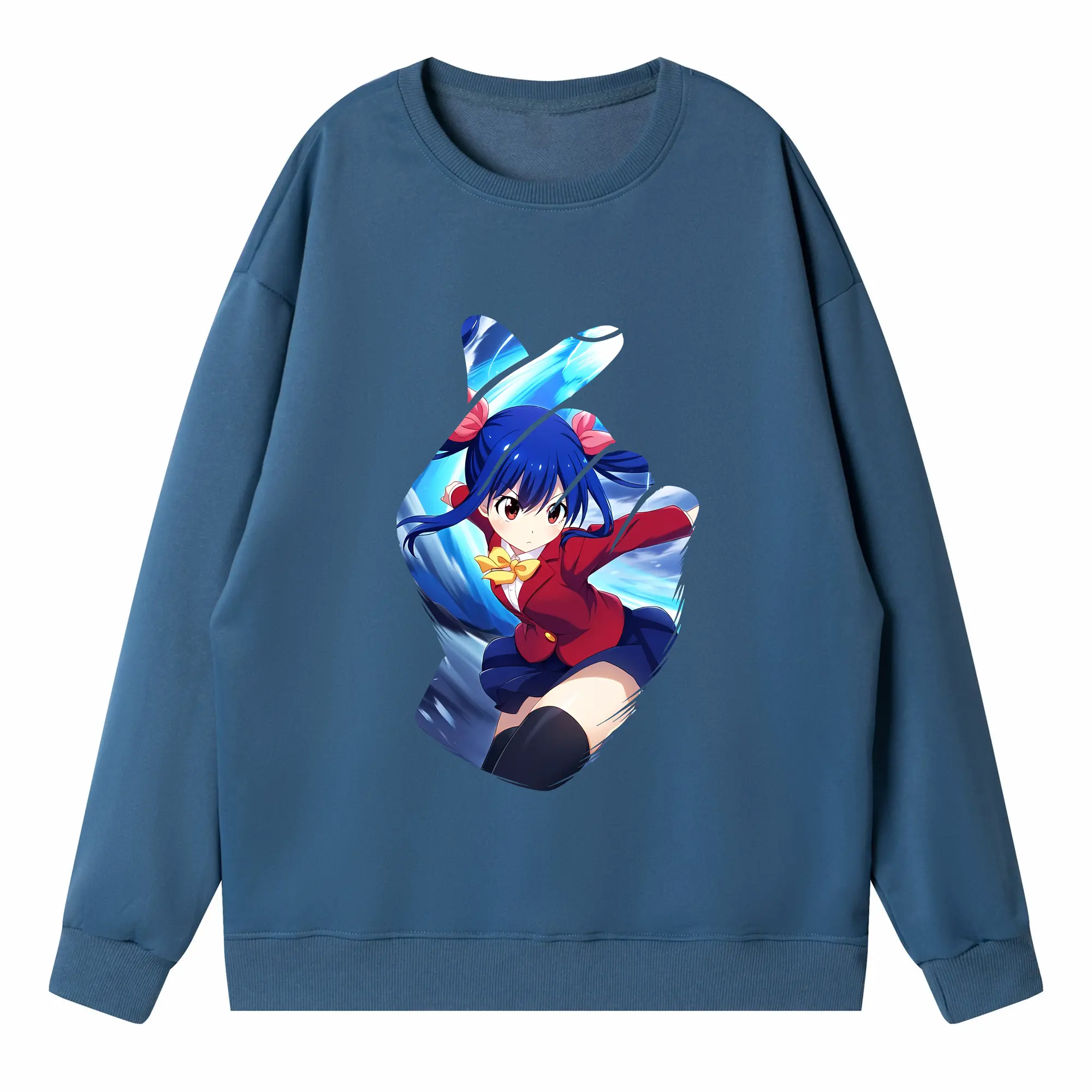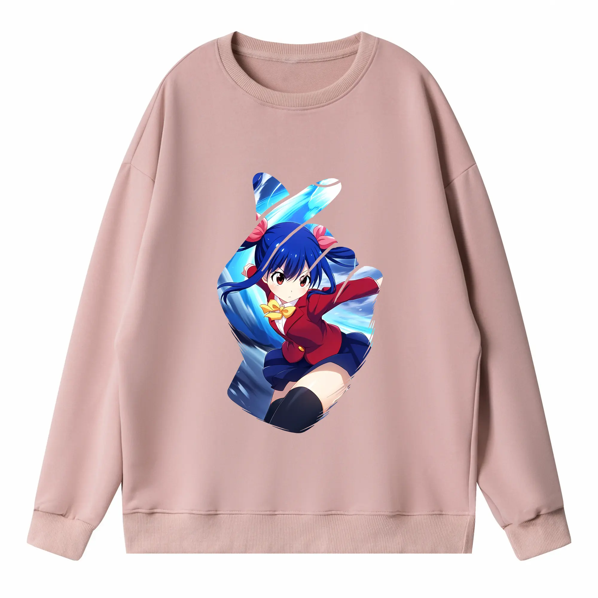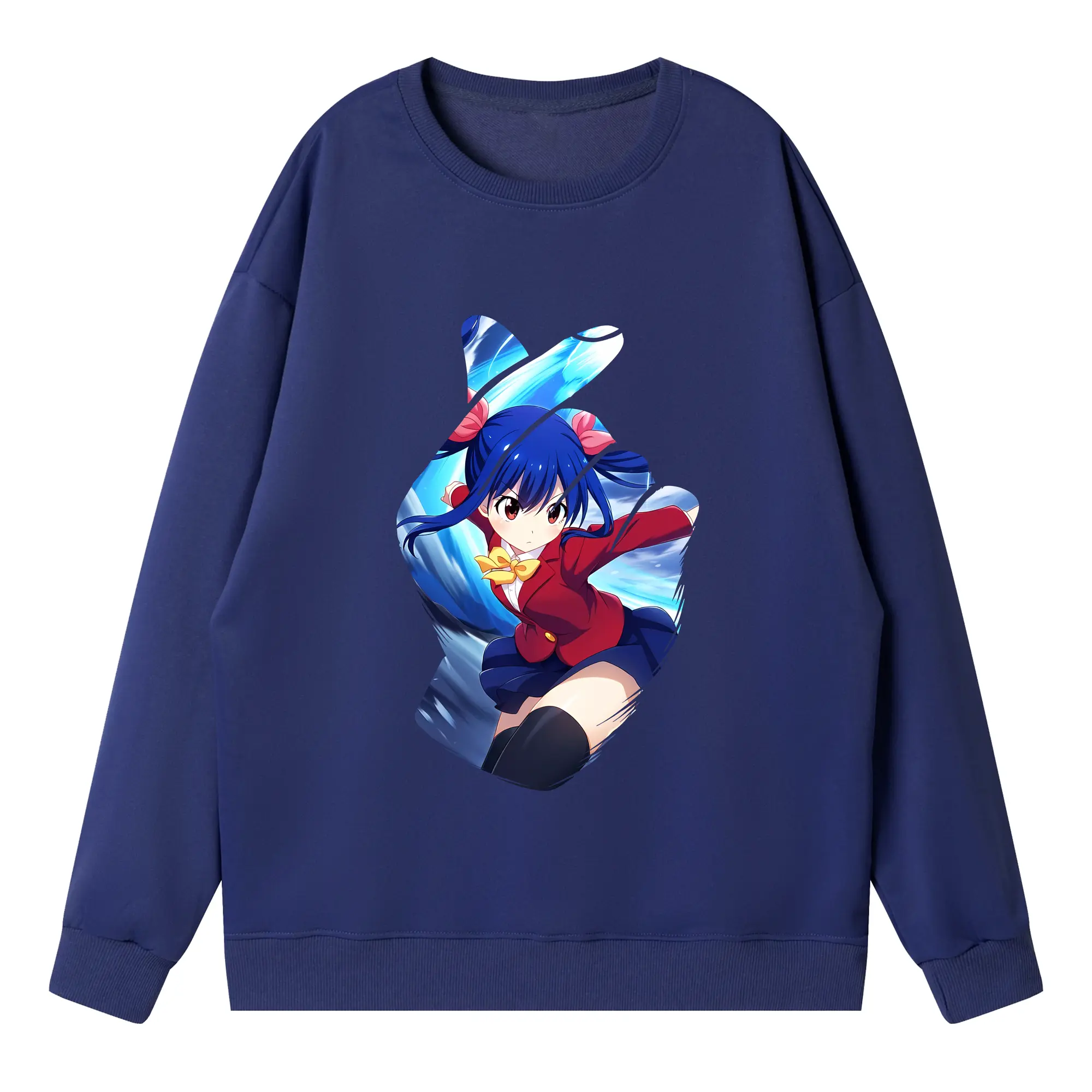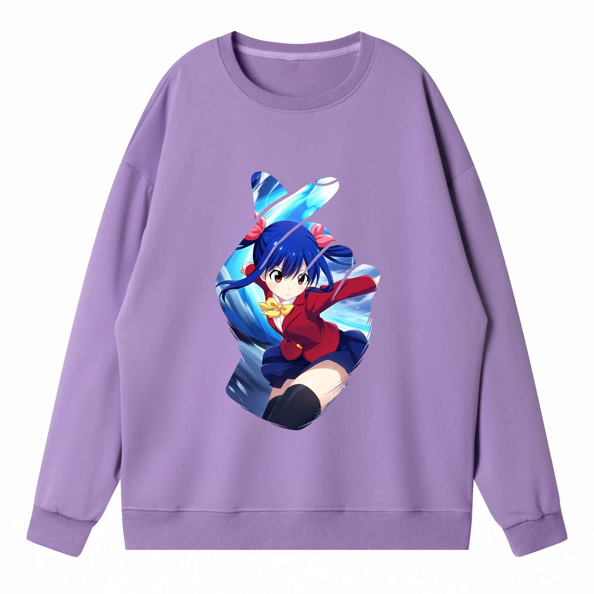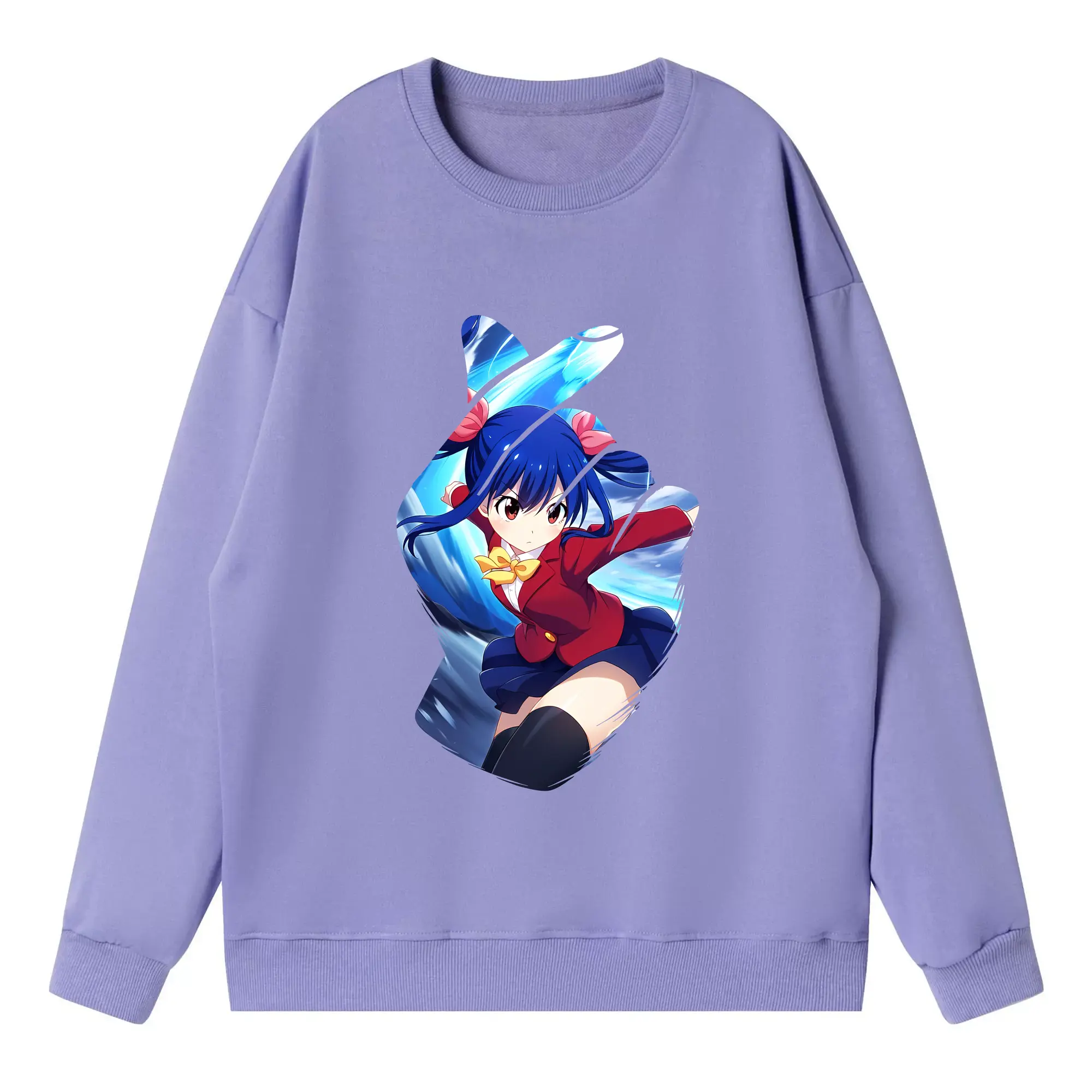 フェアリーテイル グッズ ウェンディ・マーベル - 高品質 クルーネック スウェット ・ コットン59% ポリエステル41% ・ ユニセックス 長袖 トレーナー ・ カジュアル デイリー スポーツ 散歩用