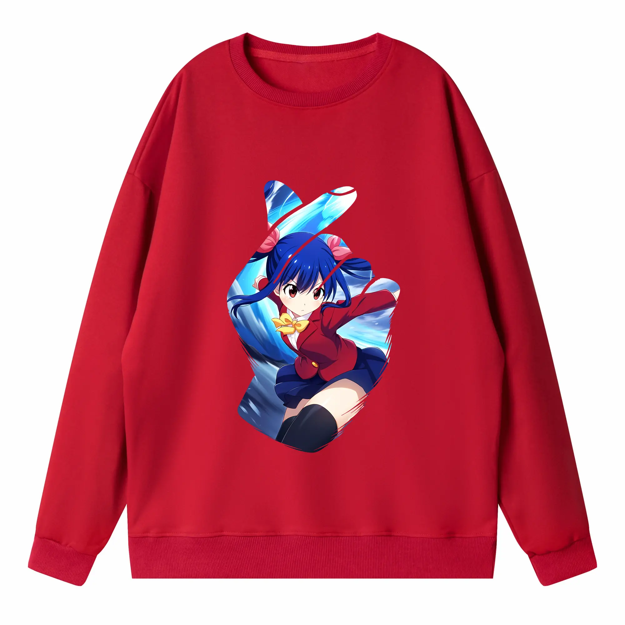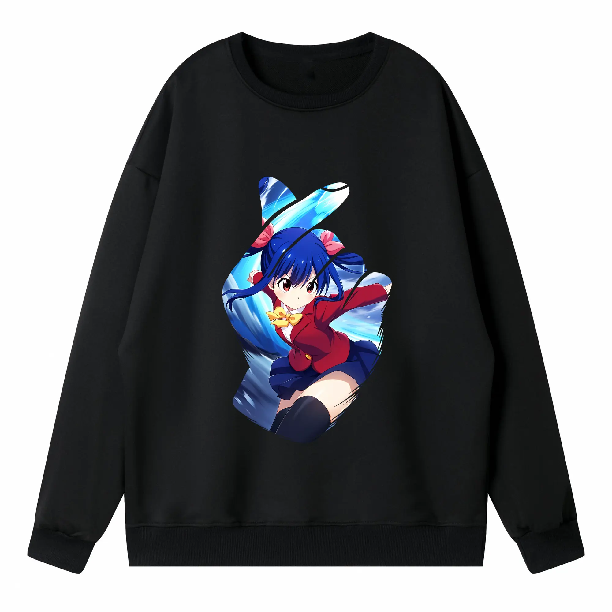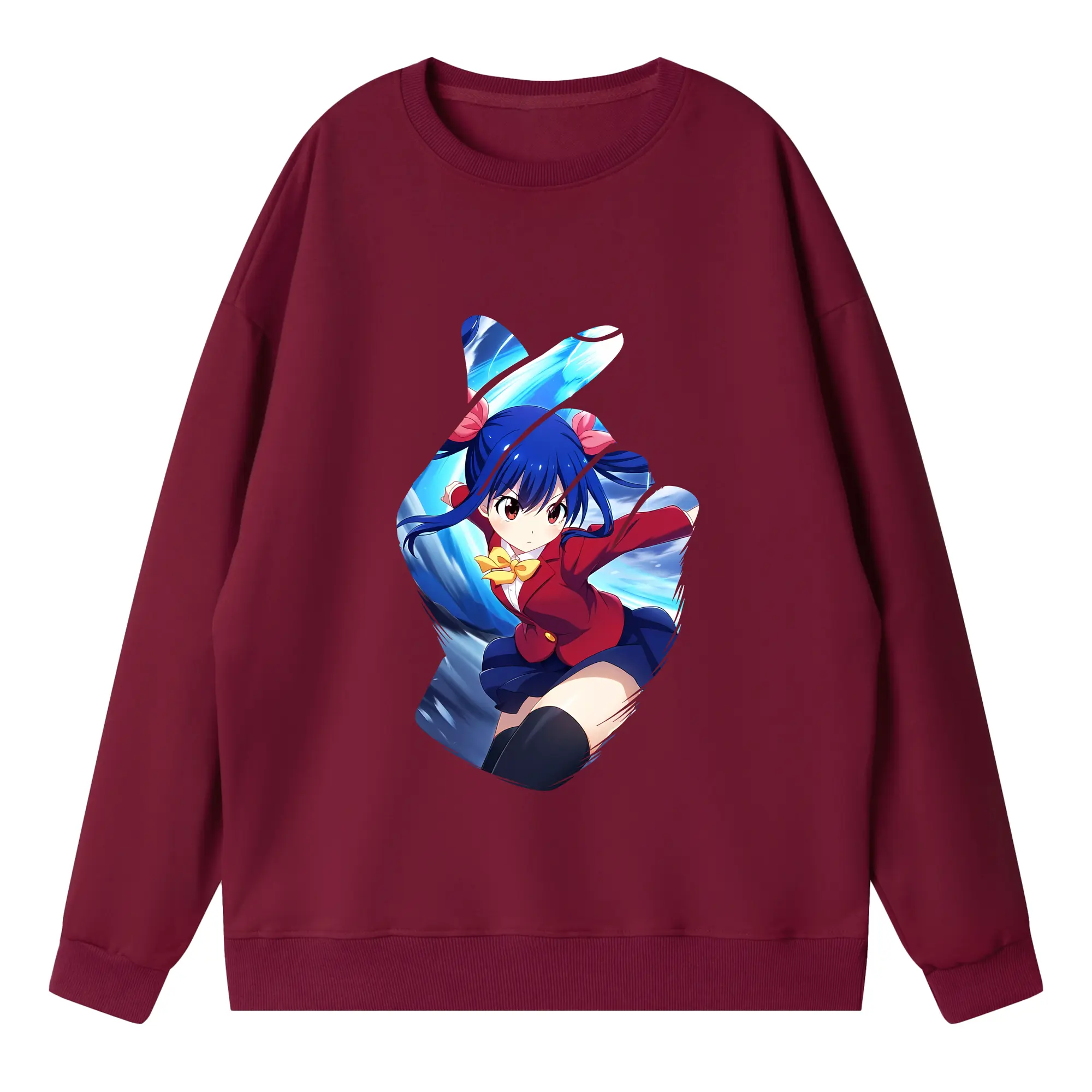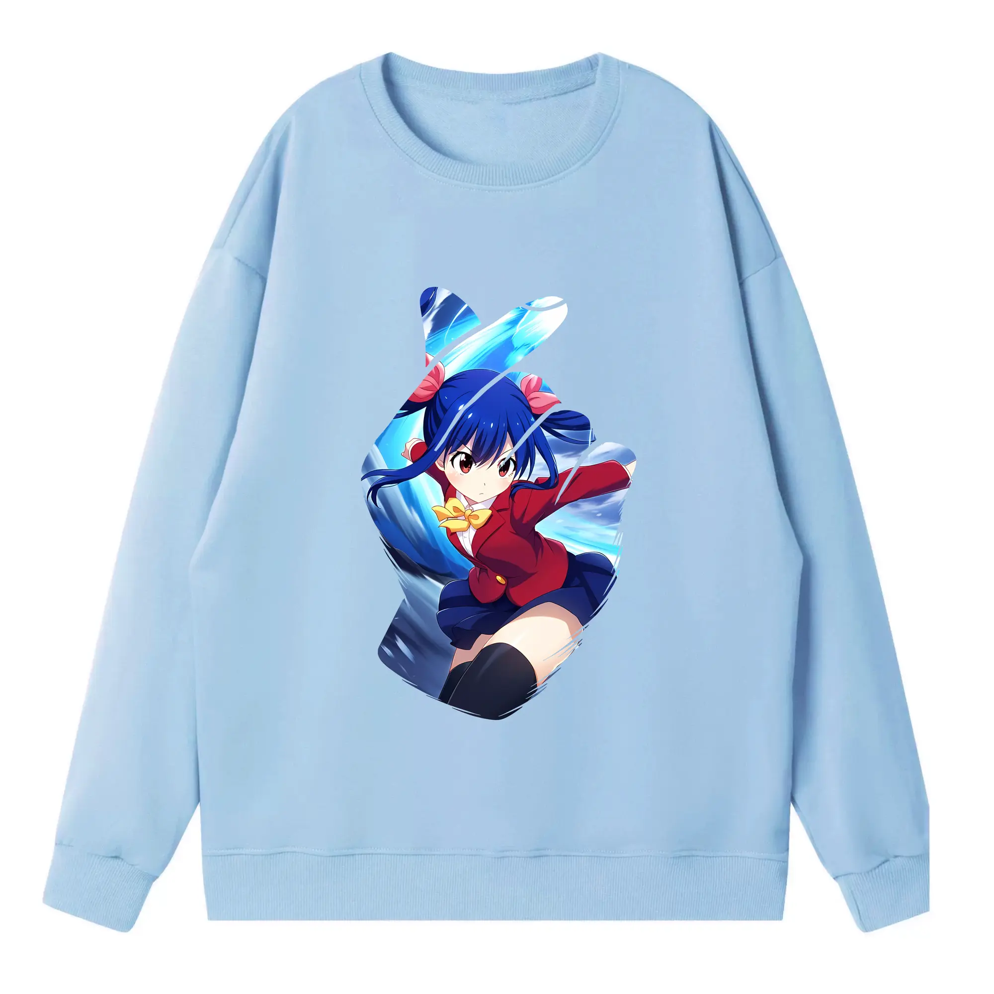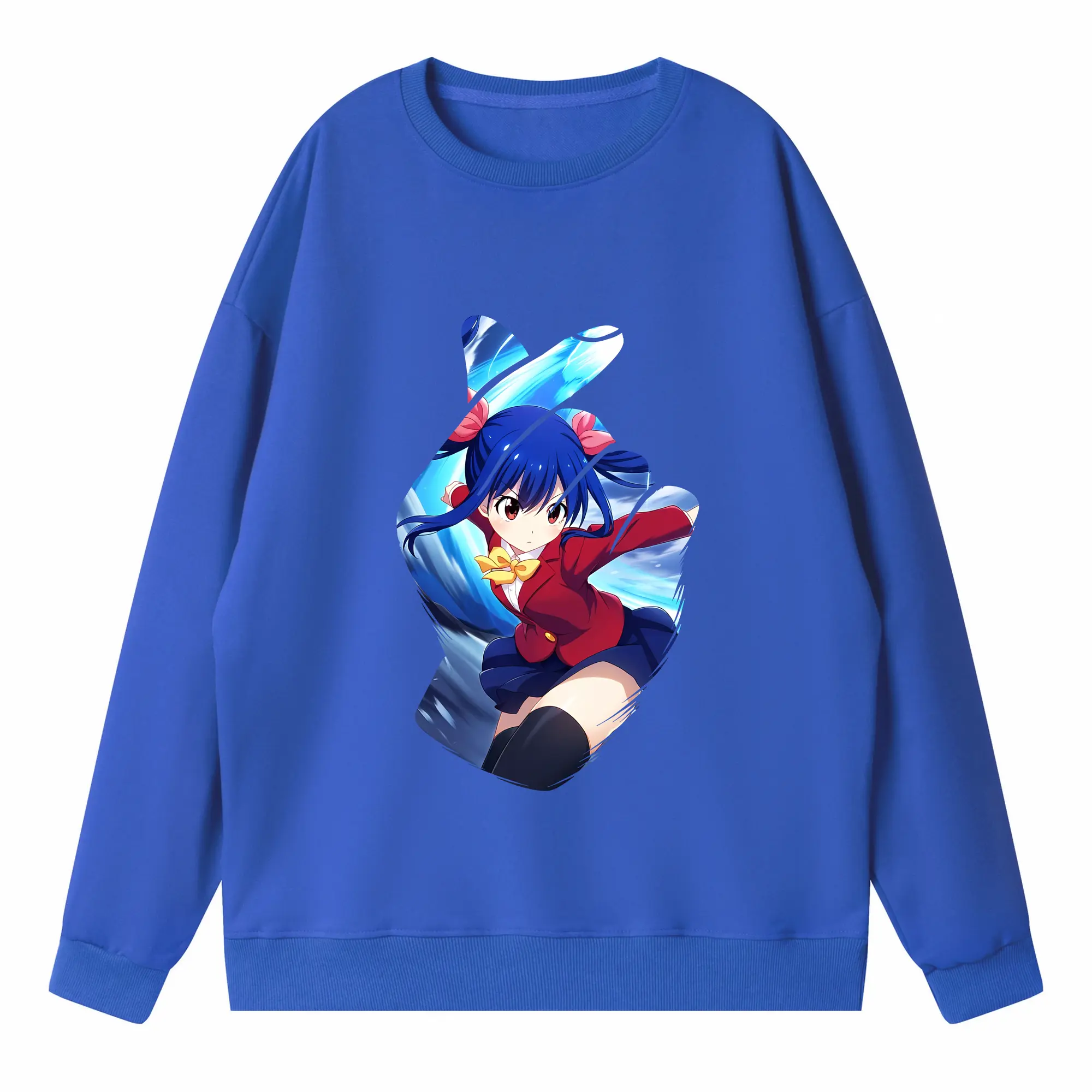 フェアリーテイル グッズ ウェンディ・マーベル - 高品質 クルーネック スウェット ・ コットン59% ポリエステル41% ・ ユニセックス 長袖 トレーナー ・ カジュアル デイリー スポーツ 散歩用
