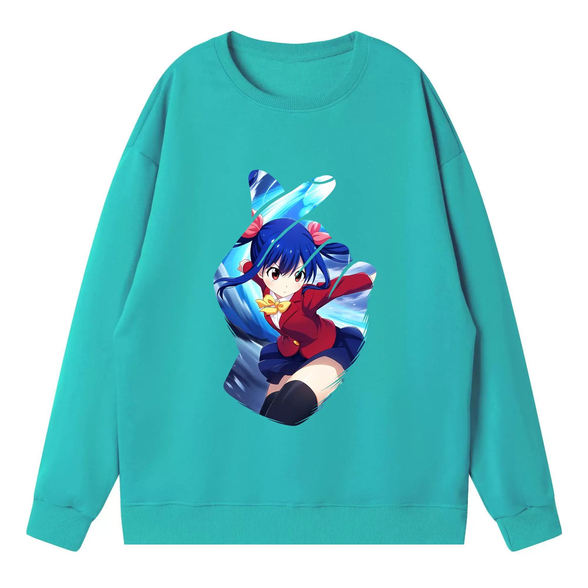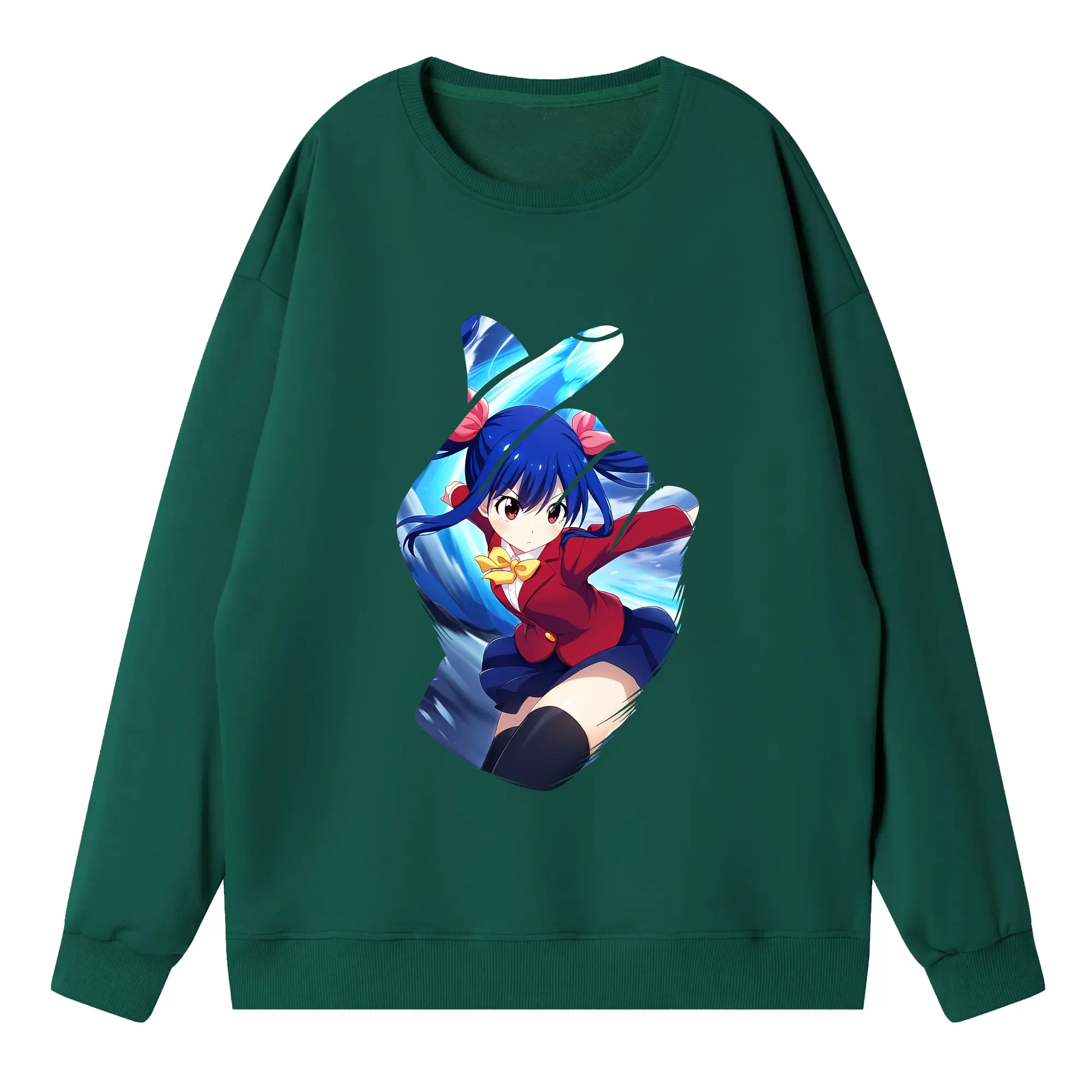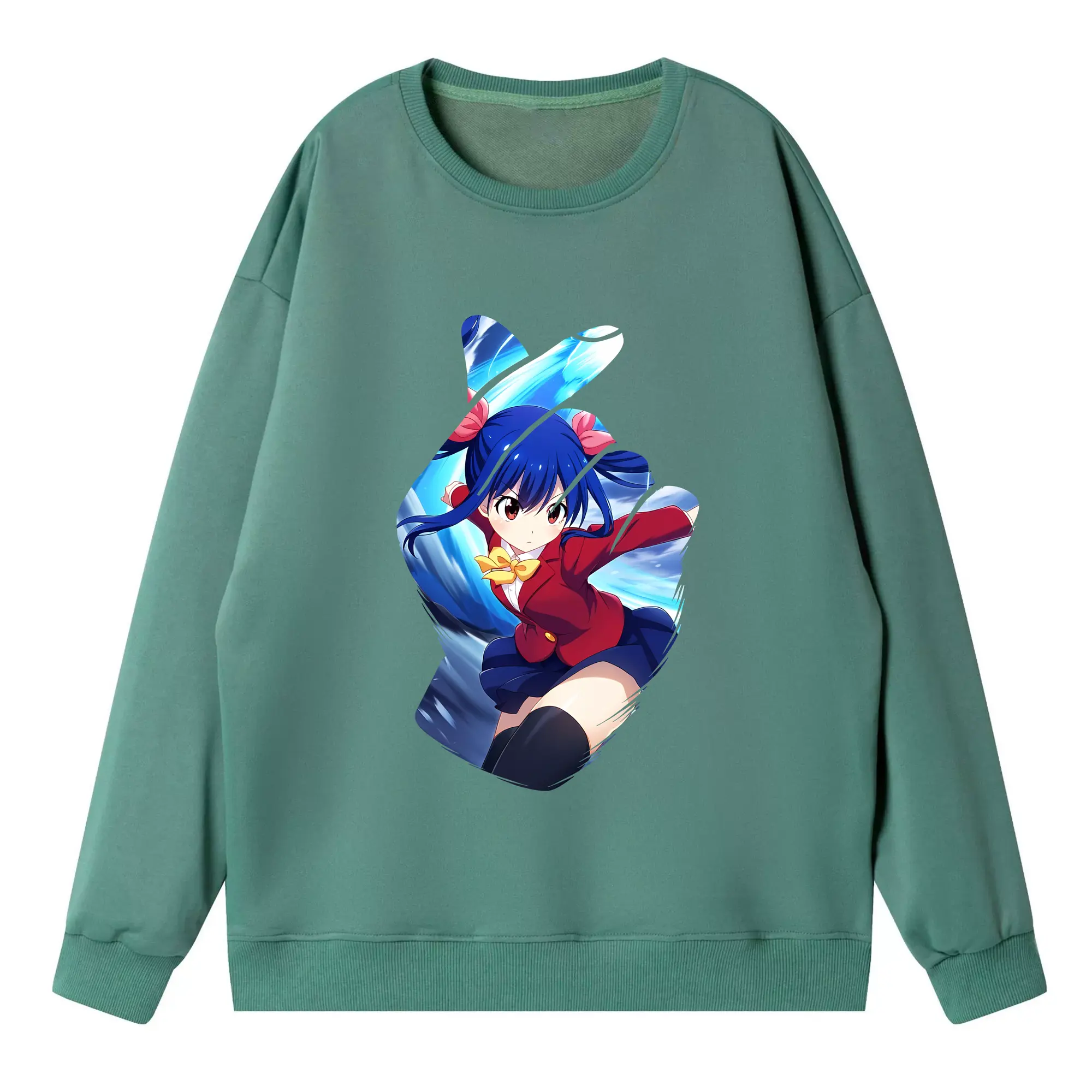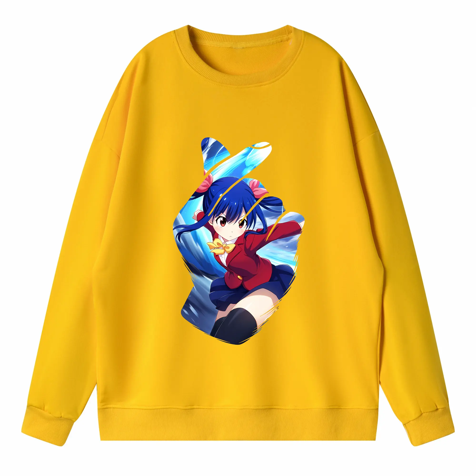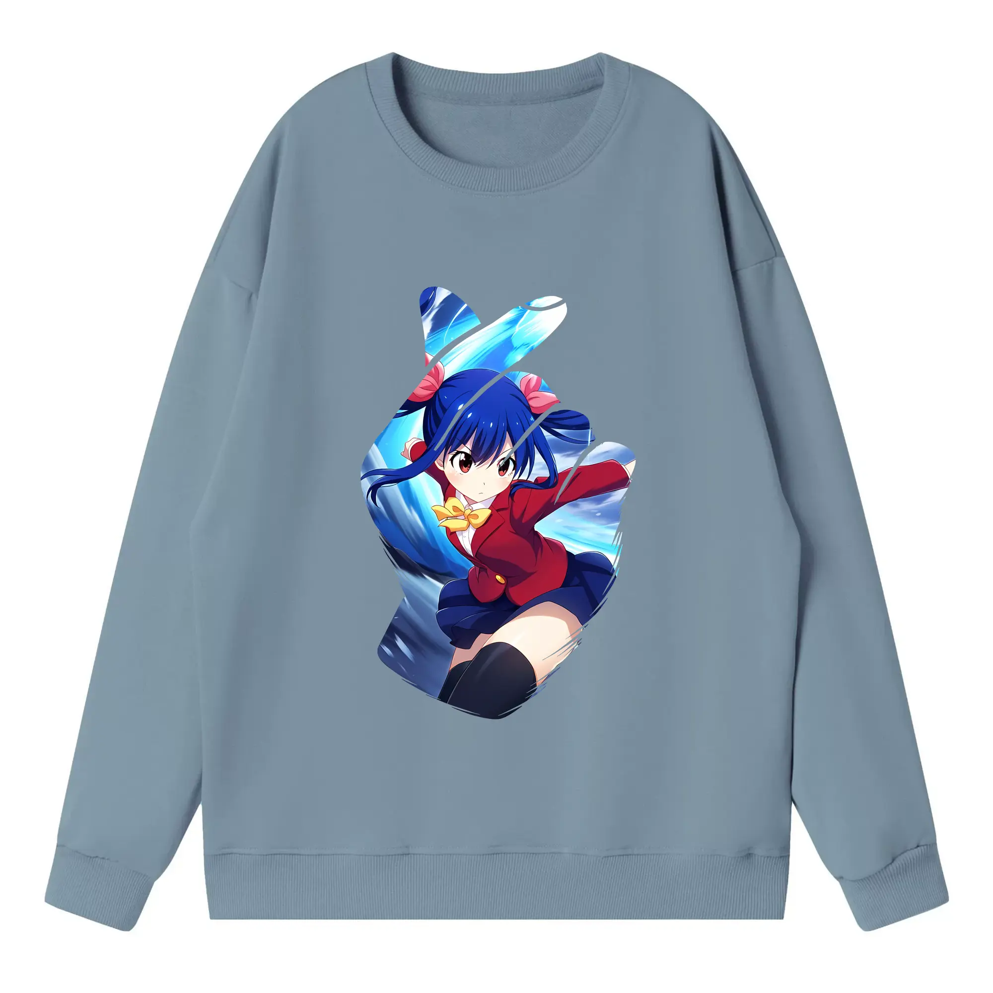 フェアリーテイル グッズ ウェンディ・マーベル - 高品質 クルーネック スウェット ・ コットン59% ポリエステル41% ・ ユニセックス 長袖 トレーナー ・ カジュアル デイリー スポーツ 散歩用