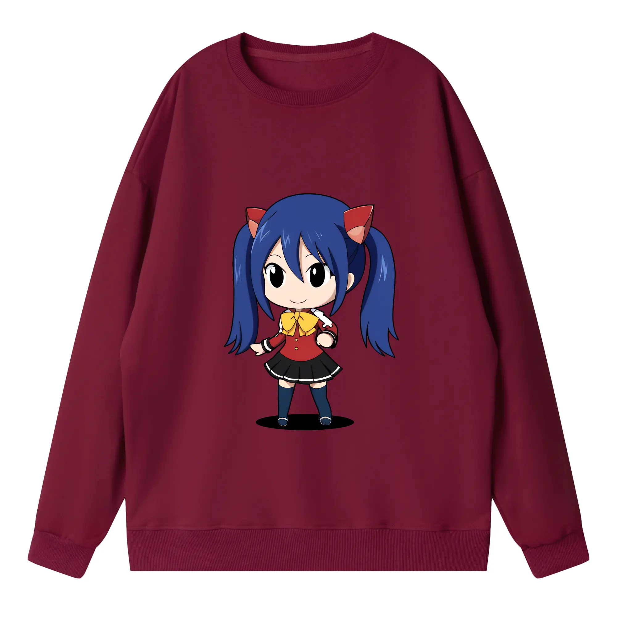 フェアリーテイル グッズ ウェンディ・マーベル - 高品質 クルーネック スウェット ・ コットン59% ポリエステル41% ・ ユニセックス 長袖 トレーナー ・ カジュアル デイリー スポーツ 散歩用