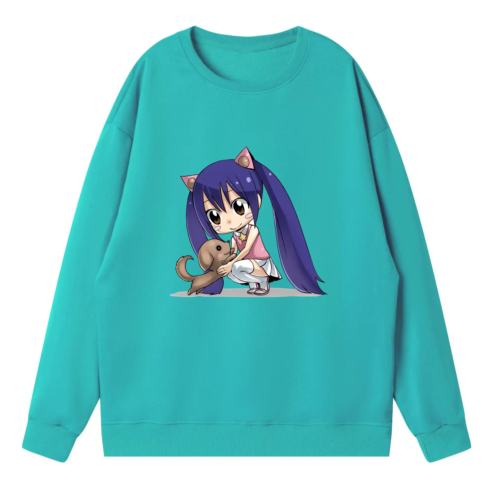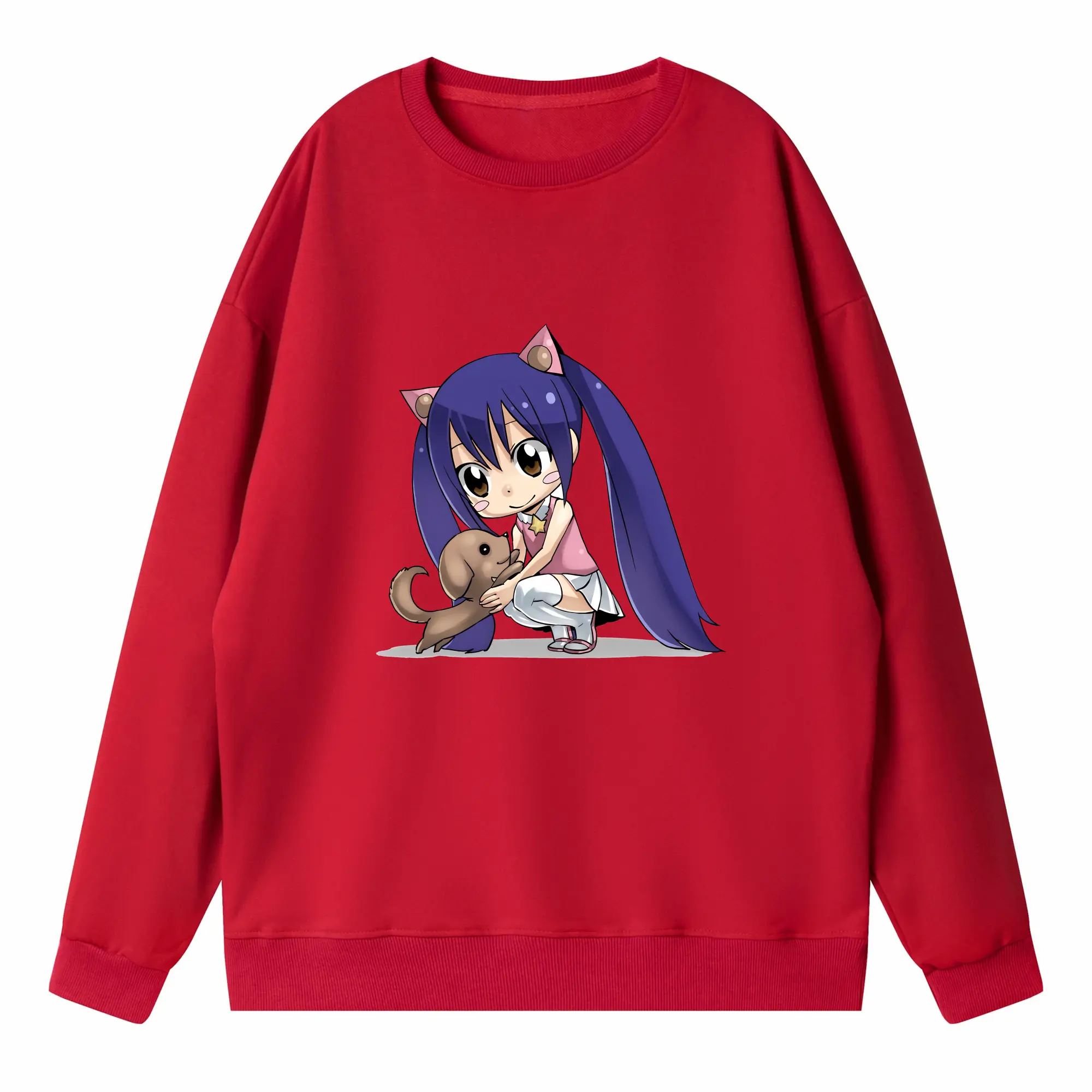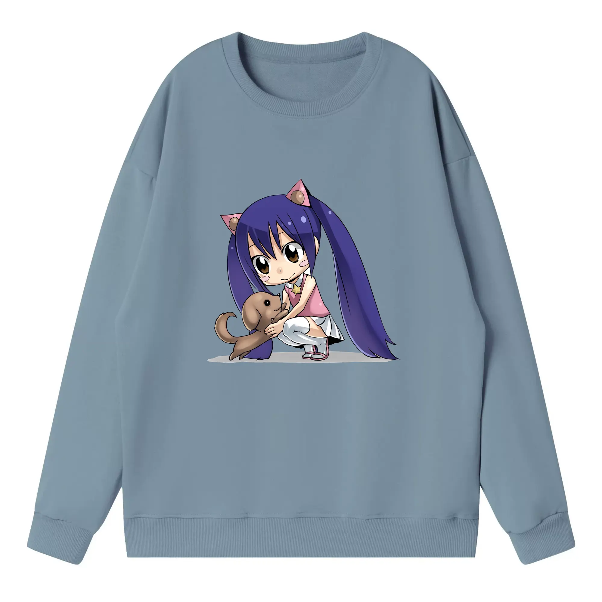 フェアリーテイル グッズ ウェンディ・マーベル - 高品質 クルーネック スウェット ・ コットン59% ポリエステル41% ・ ユニセックス 長袖 トレーナー ・ カジュアル デイリー スポーツ 散歩用