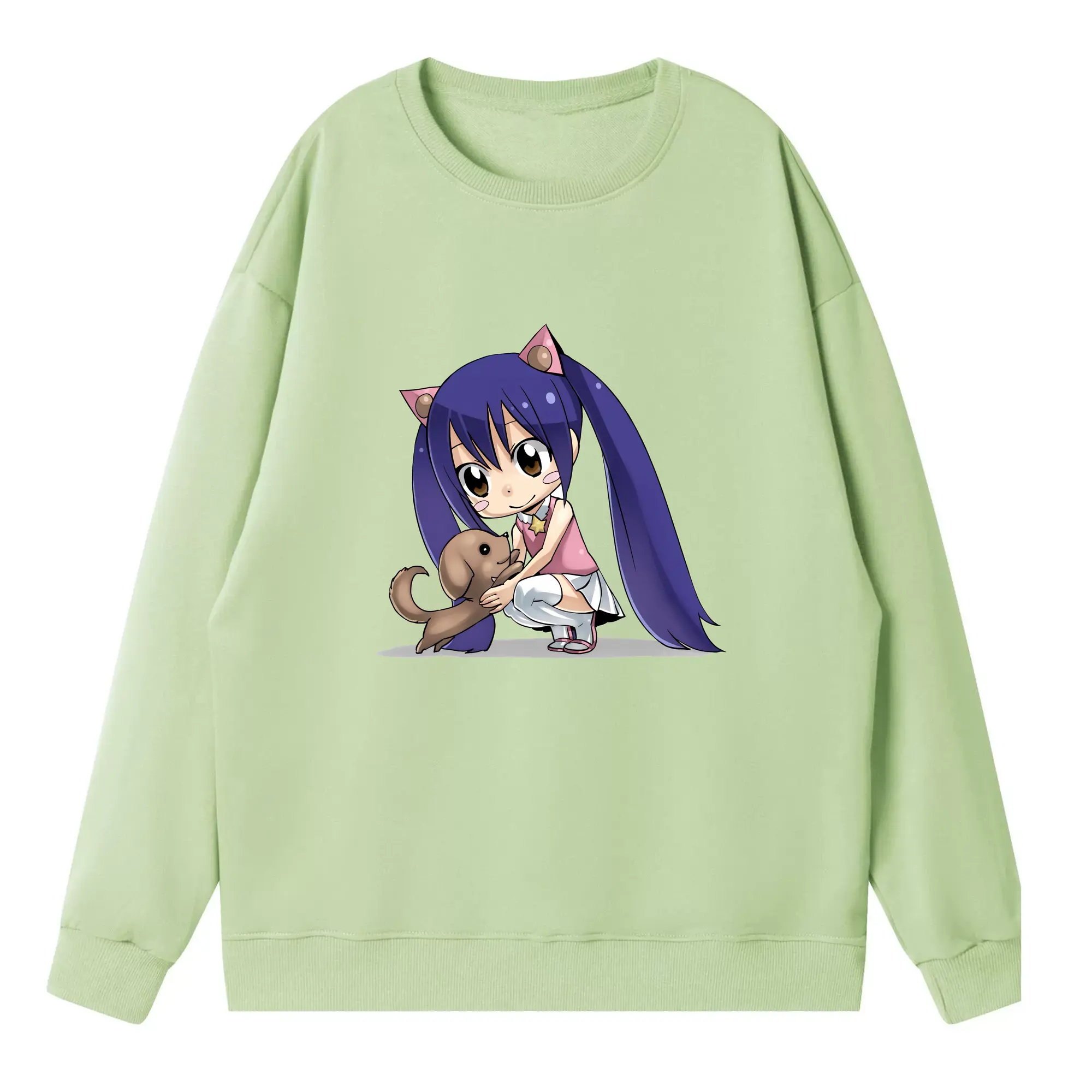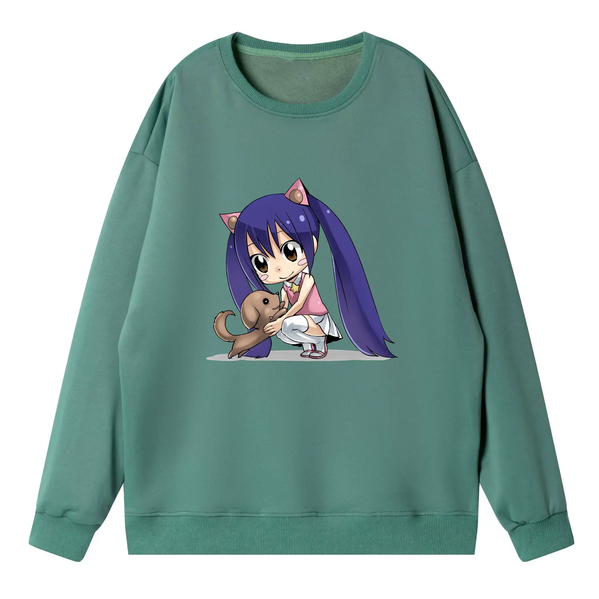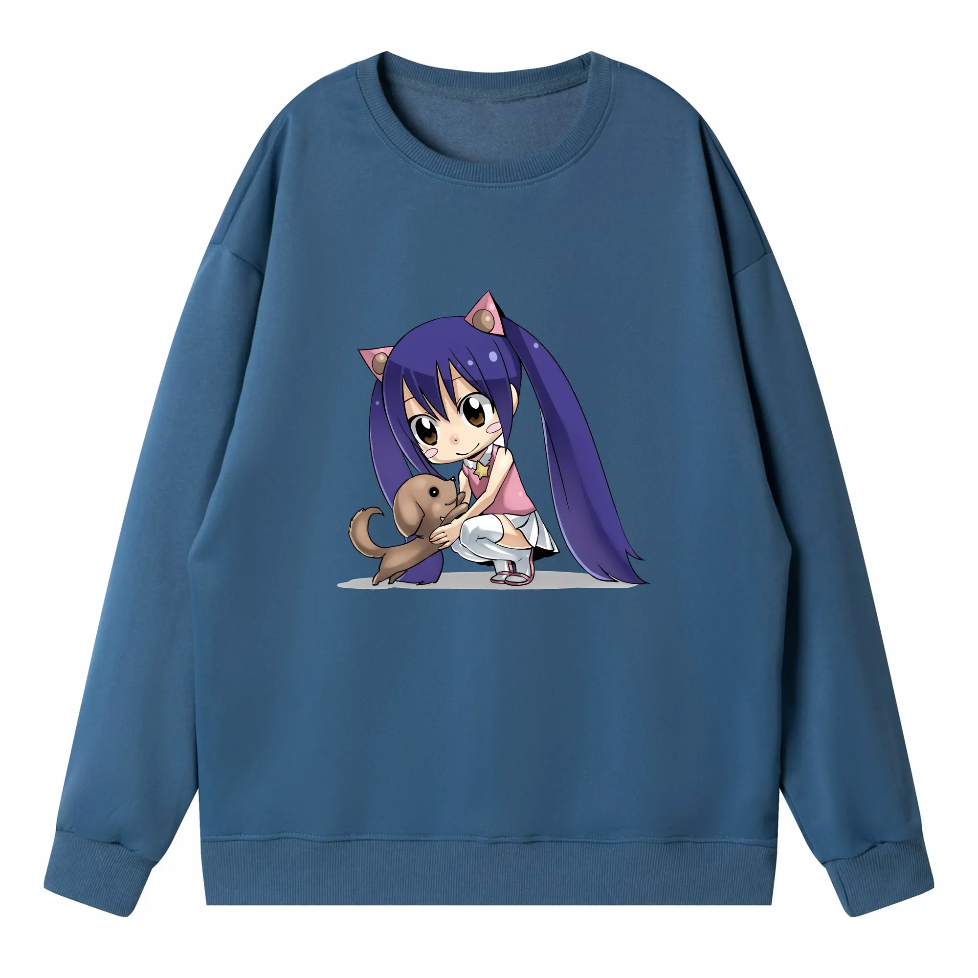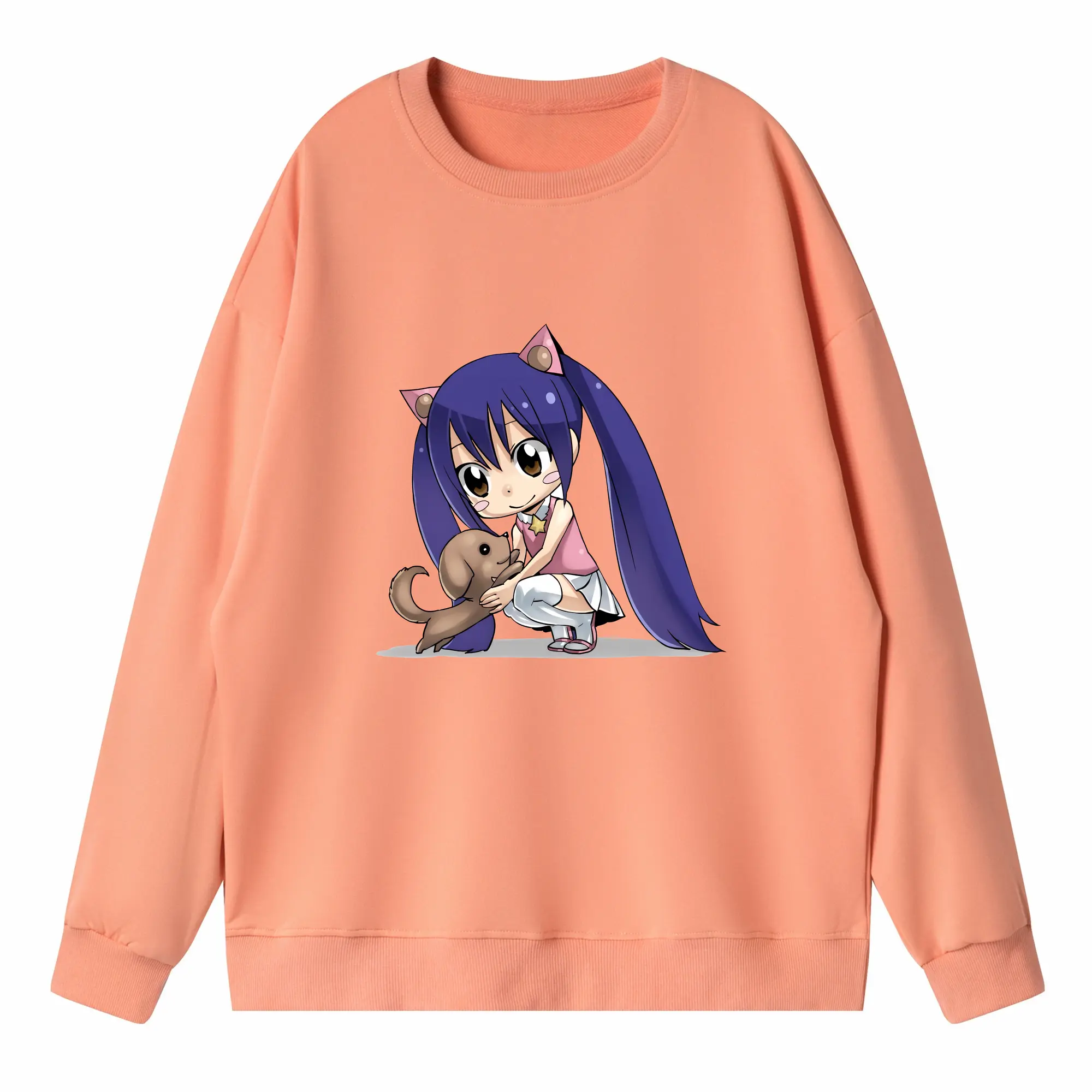 フェアリーテイル グッズ ウェンディ・マーベル - 高品質 クルーネック スウェット ・ コットン59% ポリエステル41% ・ ユニセックス 長袖 トレーナー ・ カジュアル デイリー スポーツ 散歩用