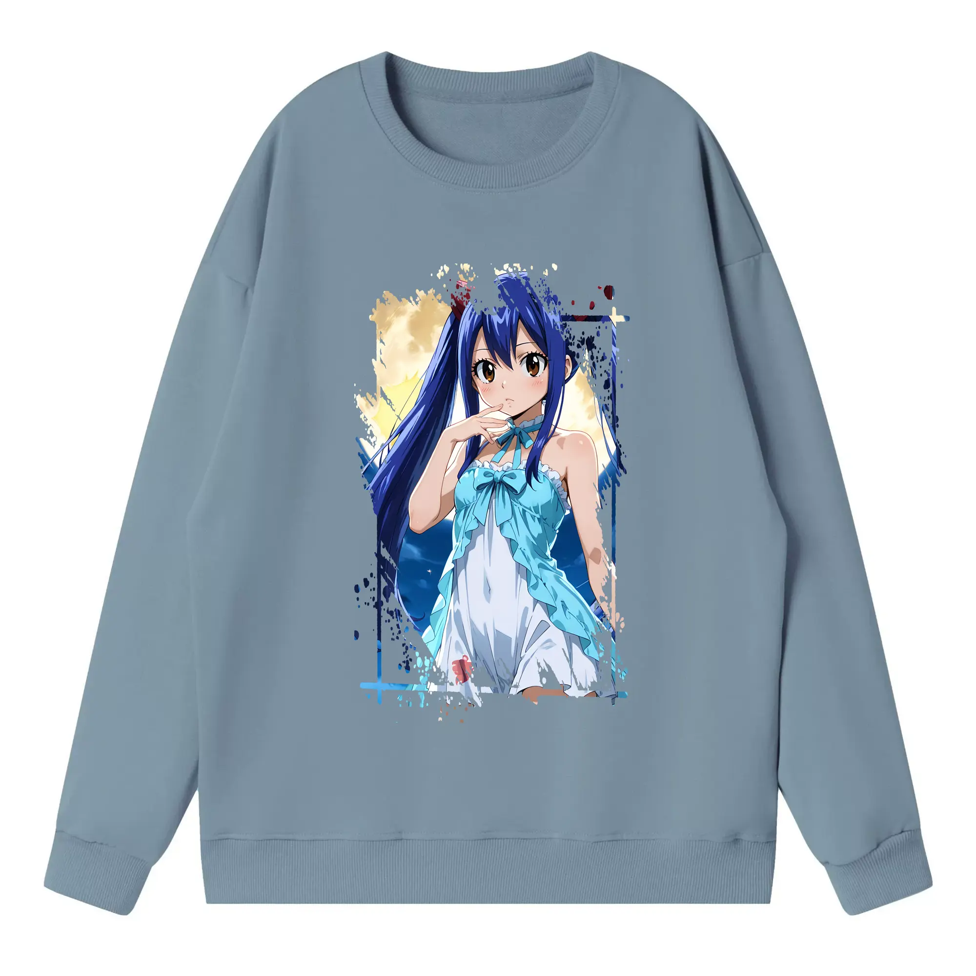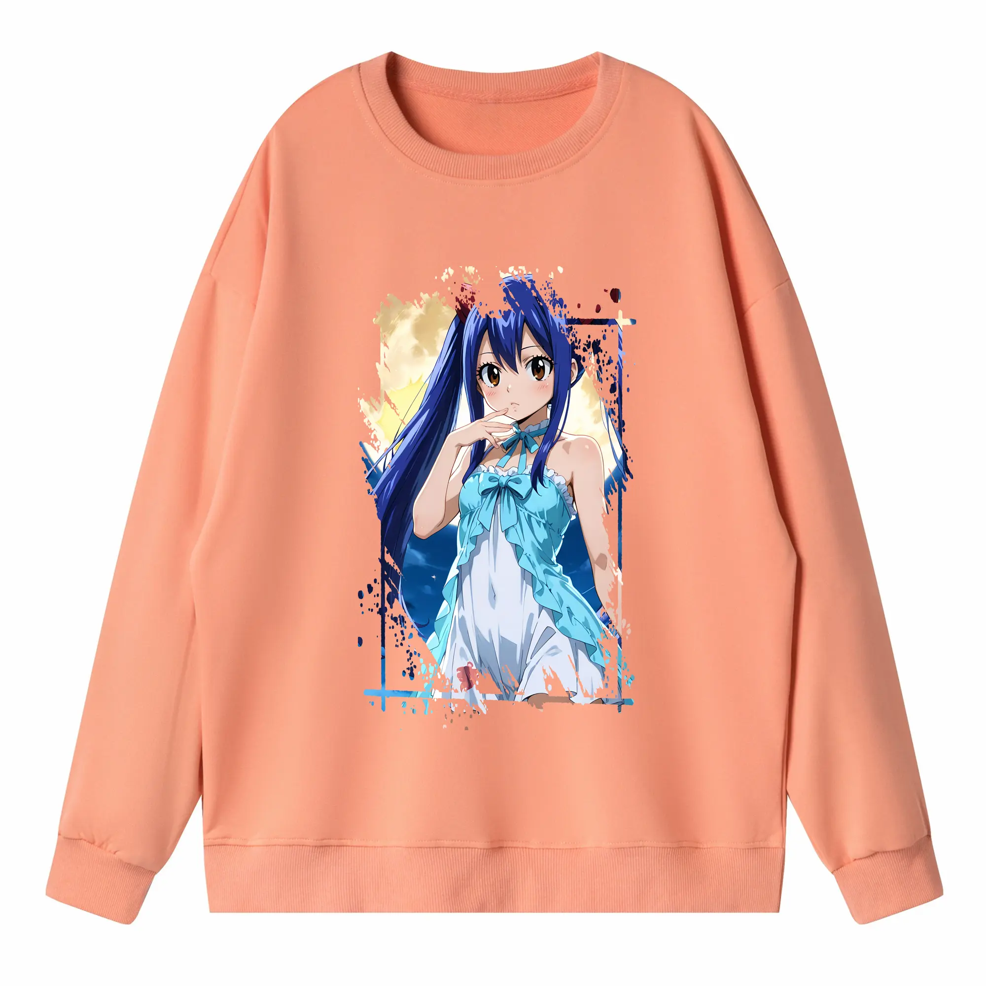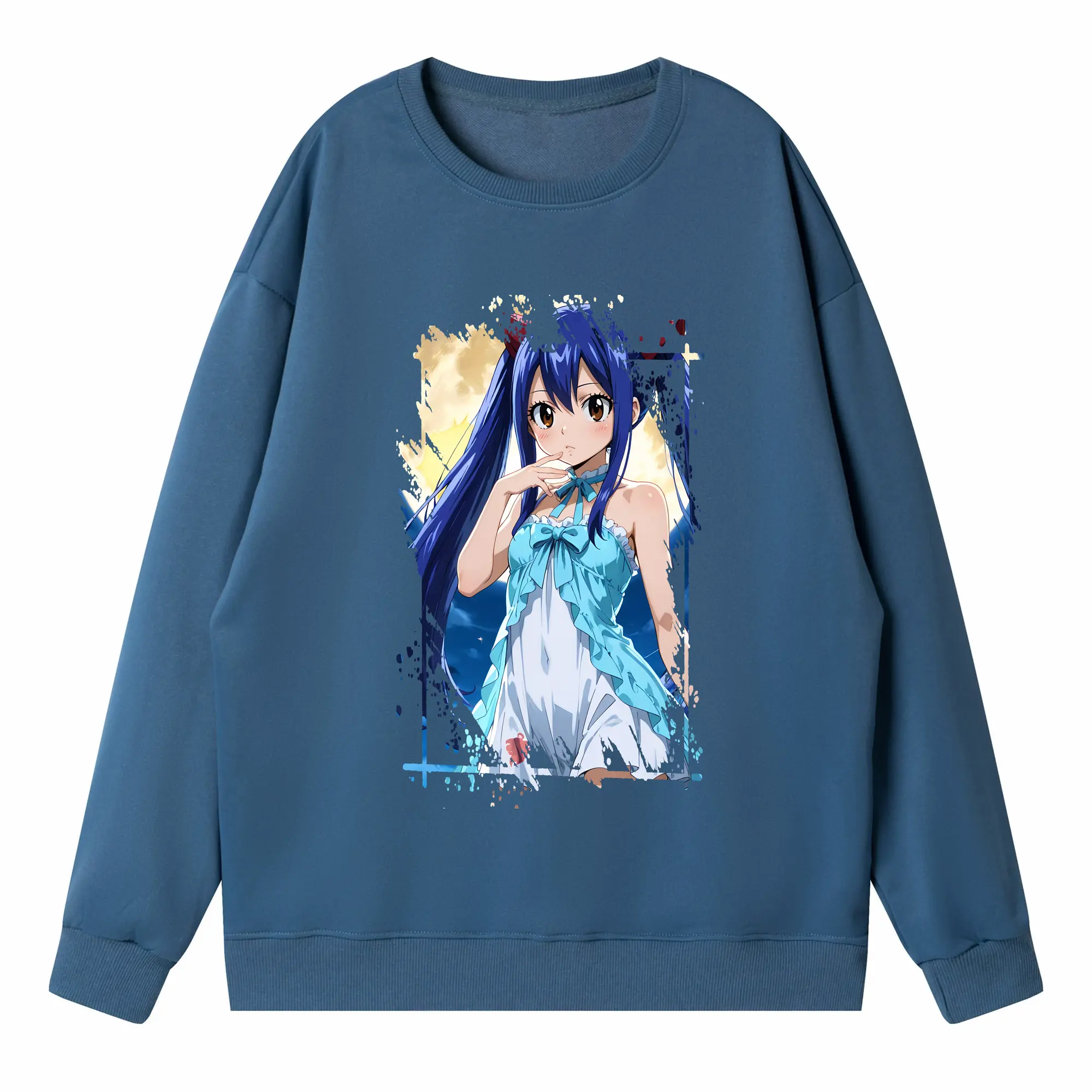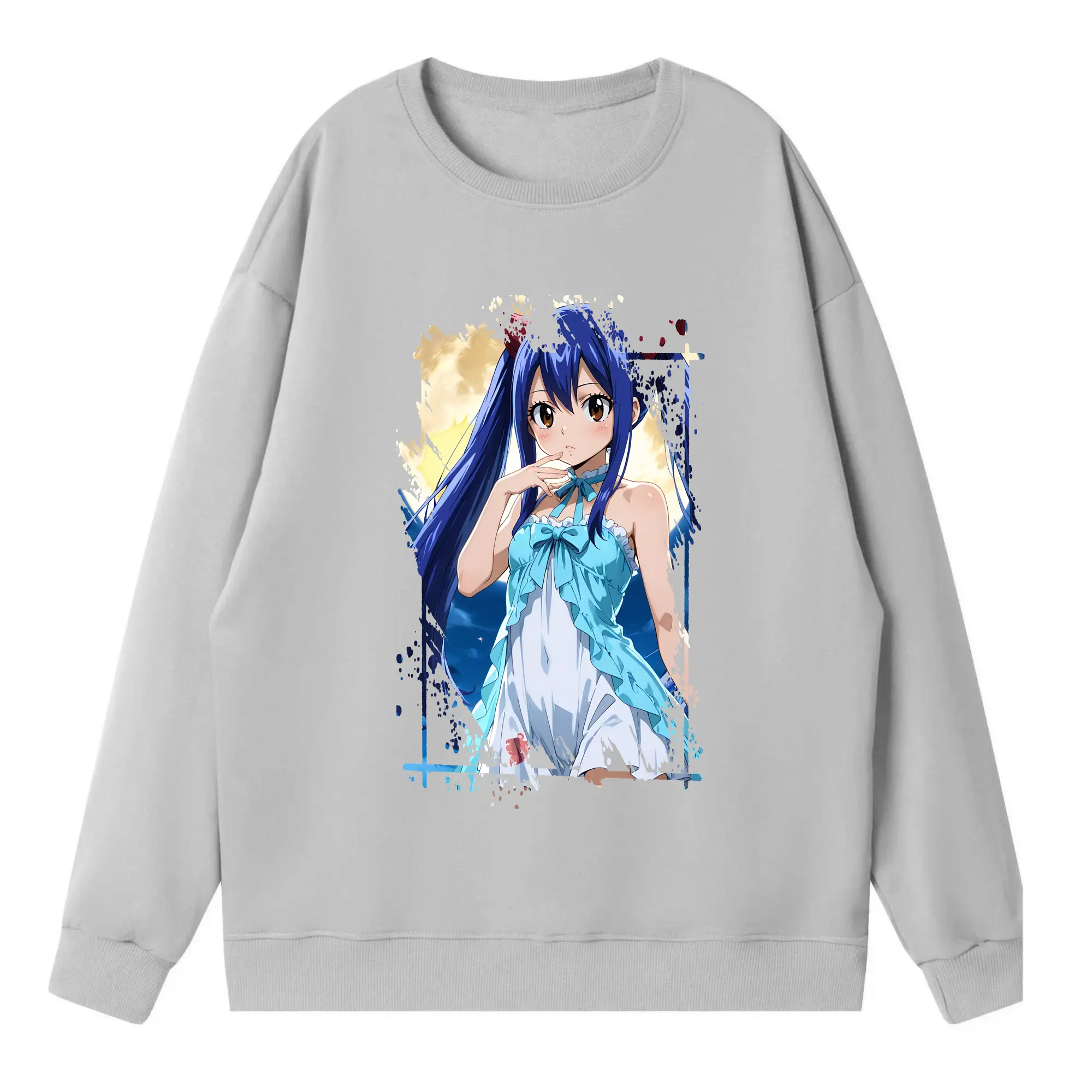 フェアリーテイル グッズ ウェンディ・マーベル - 高品質 クルーネック スウェット ・ コットン59% ポリエステル41% ・ ユニセックス 長袖 トレーナー ・ カジュアル デイリー スポーツ 散歩用