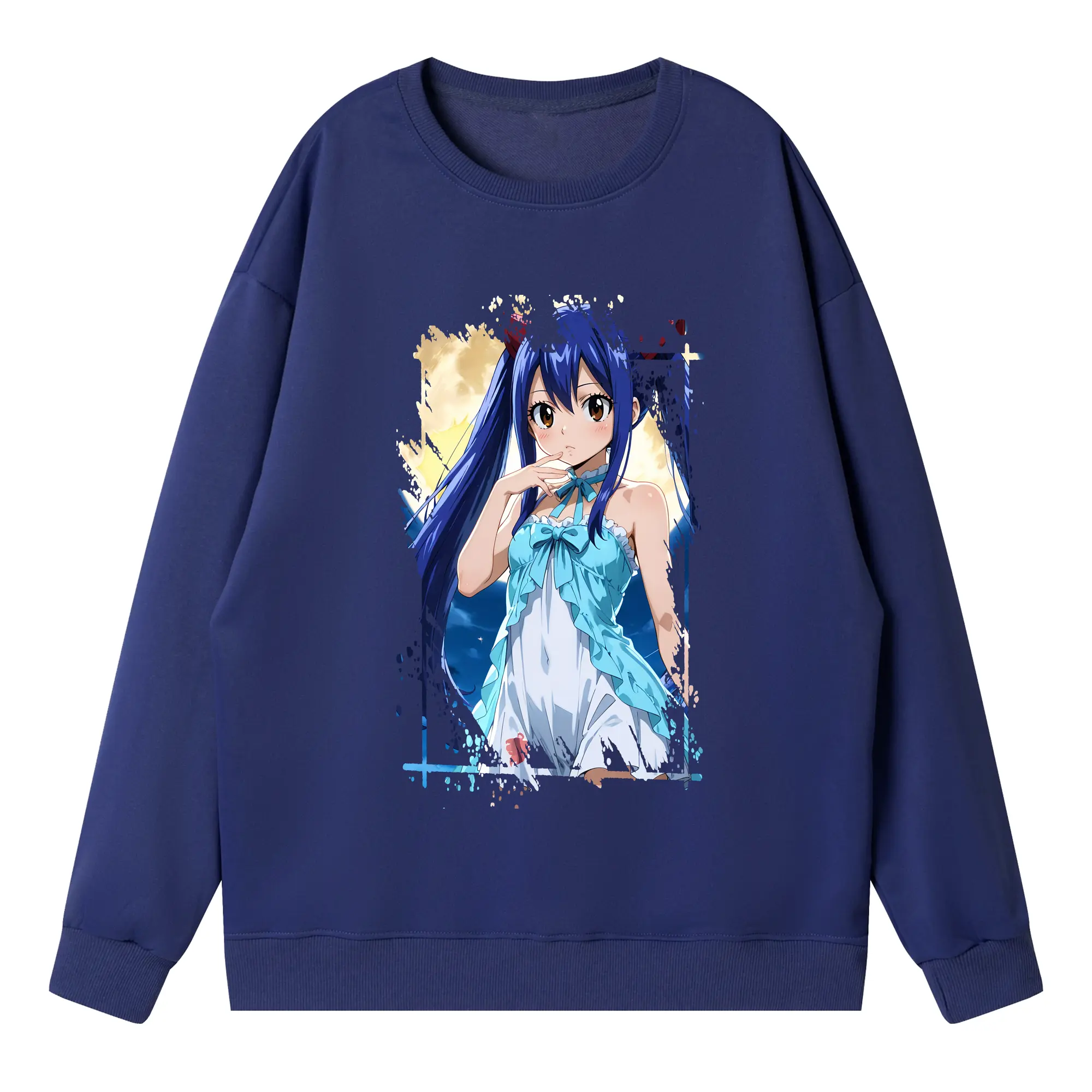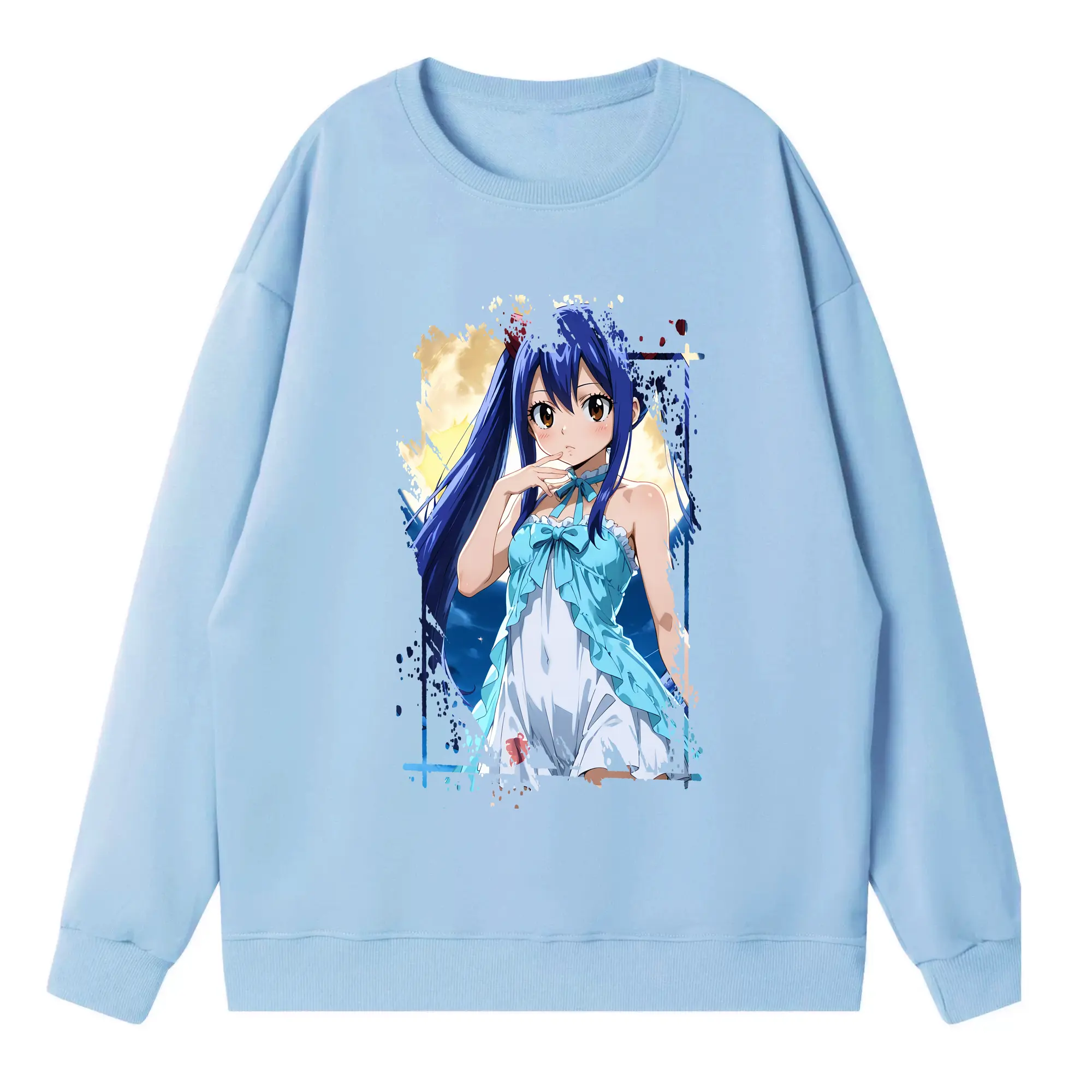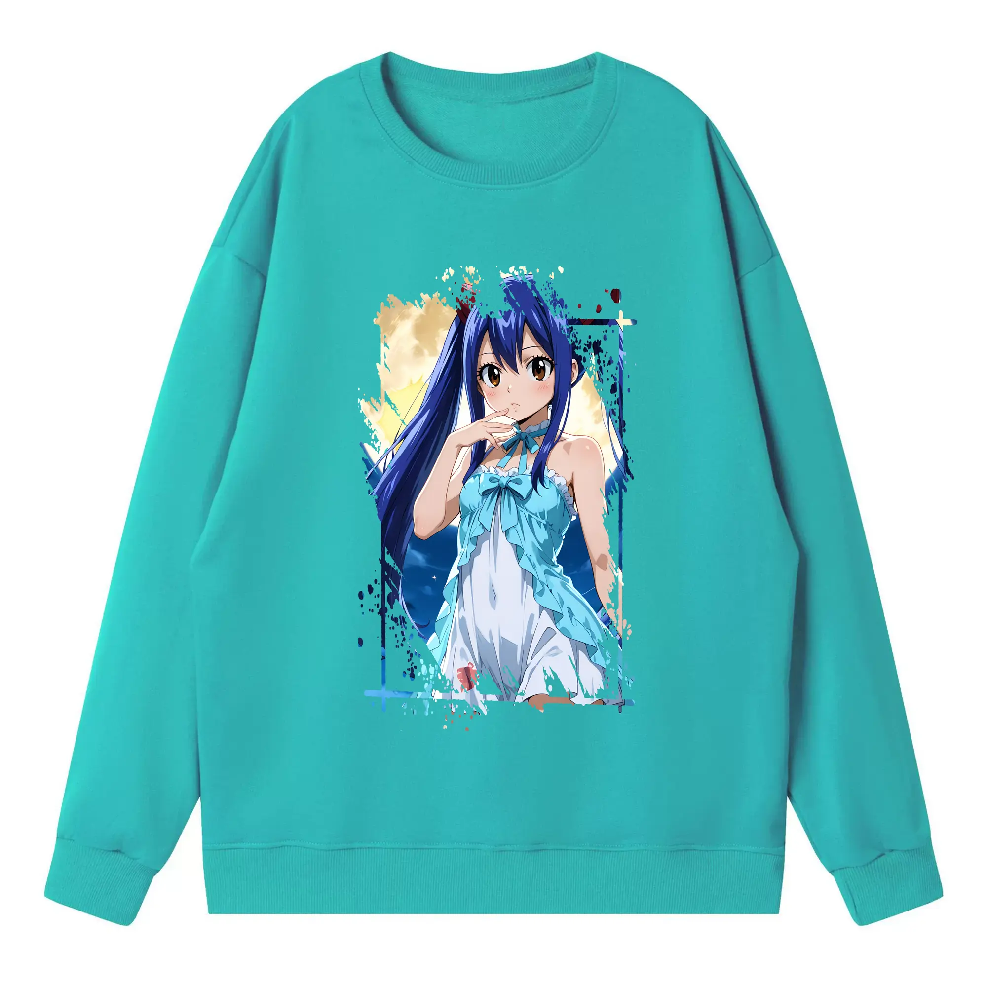 フェアリーテイル グッズ ウェンディ・マーベル - 高品質 クルーネック スウェット ・ コットン59% ポリエステル41% ・ ユニセックス 長袖 トレーナー ・ カジュアル デイリー スポーツ 散歩用