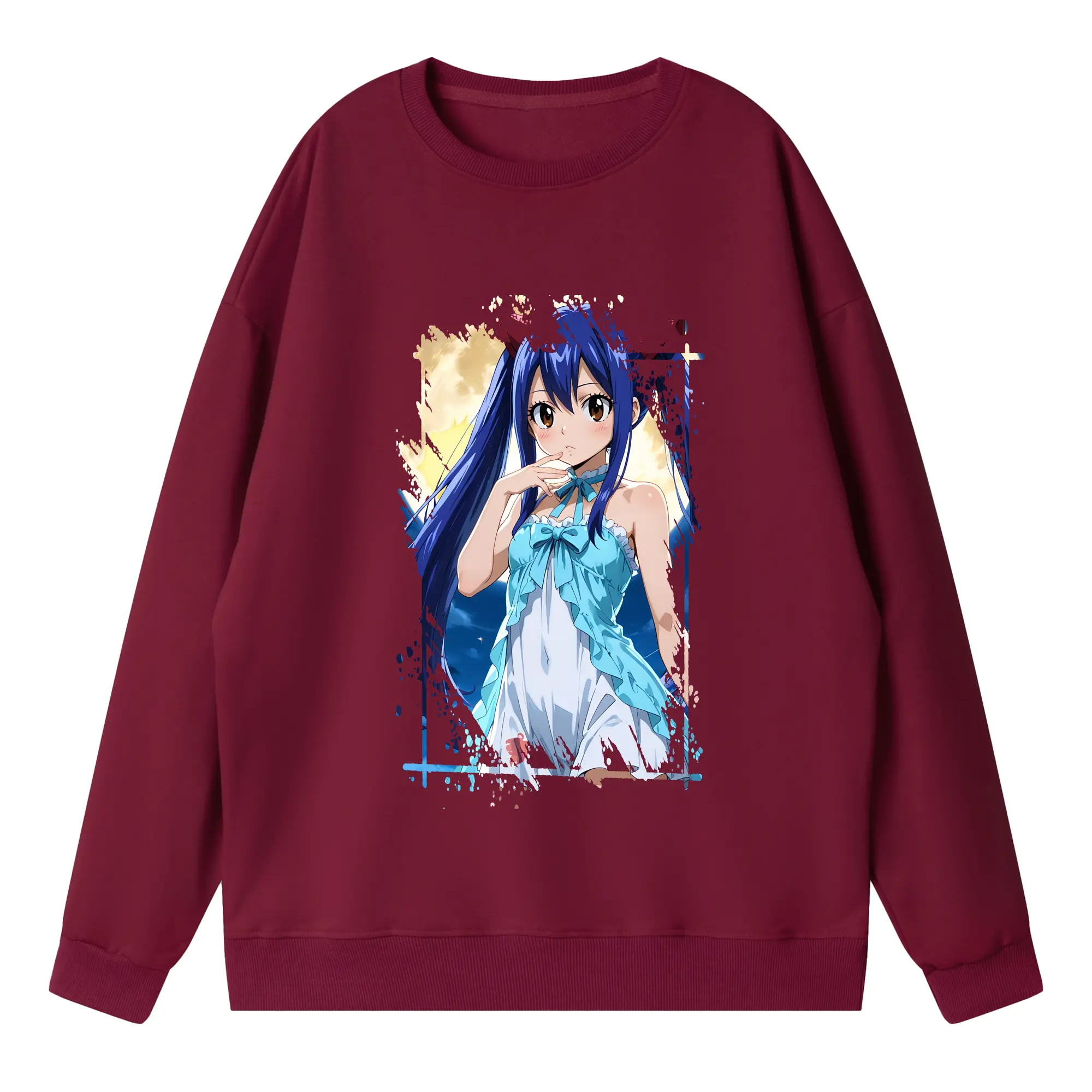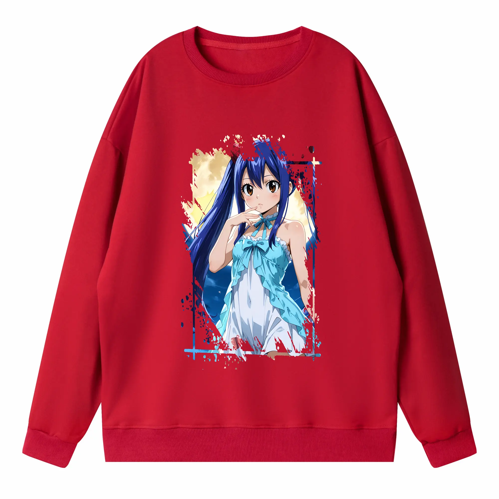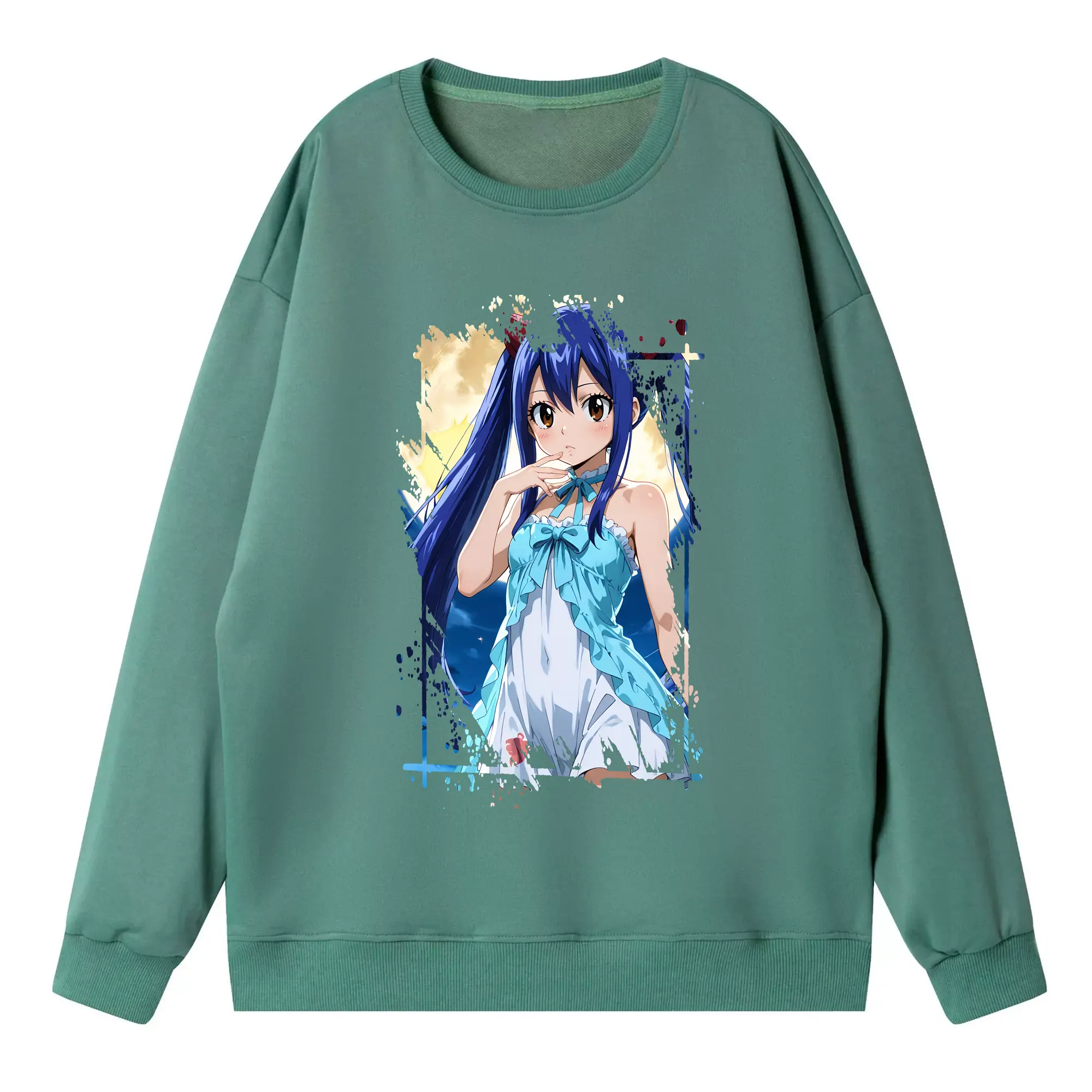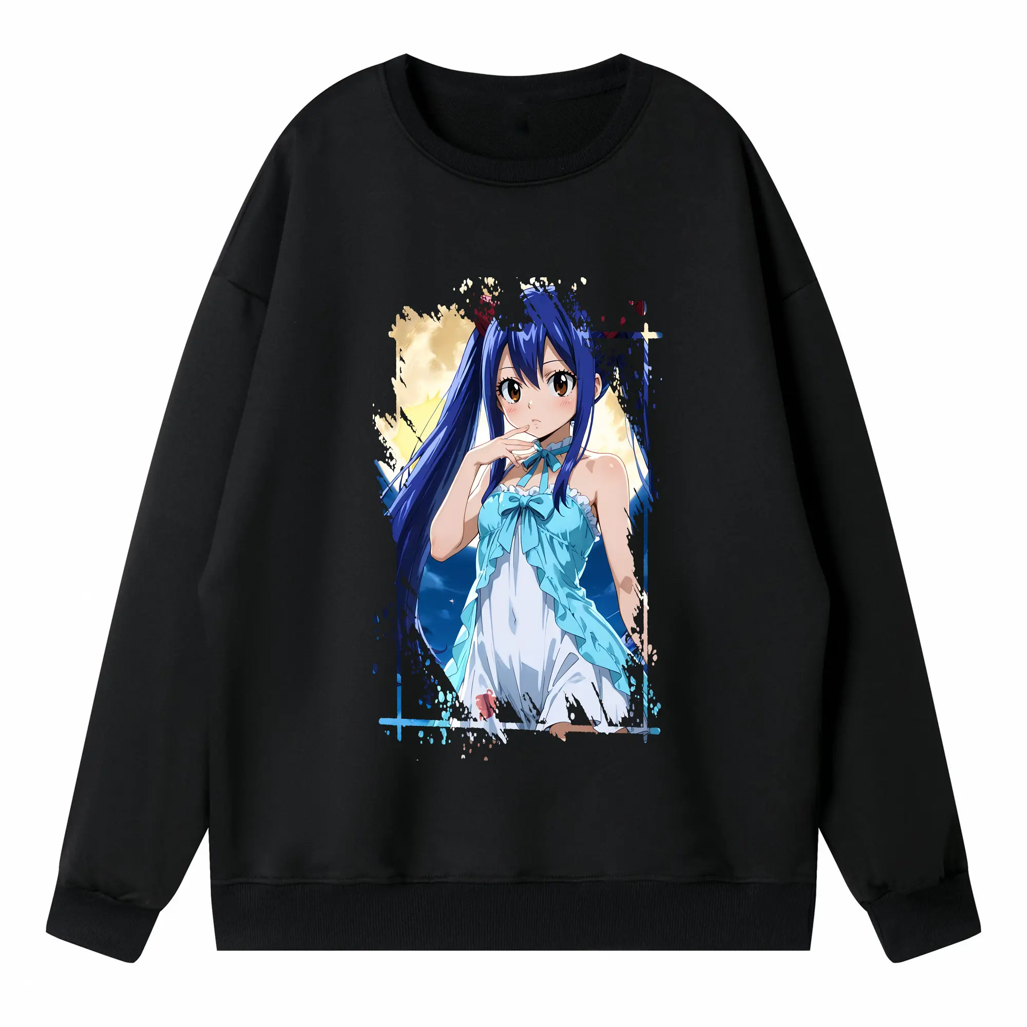 フェアリーテイル グッズ ウェンディ・マーベル - 高品質 クルーネック スウェット ・ コットン59% ポリエステル41% ・ ユニセックス 長袖 トレーナー ・ カジュアル デイリー スポーツ 散歩用