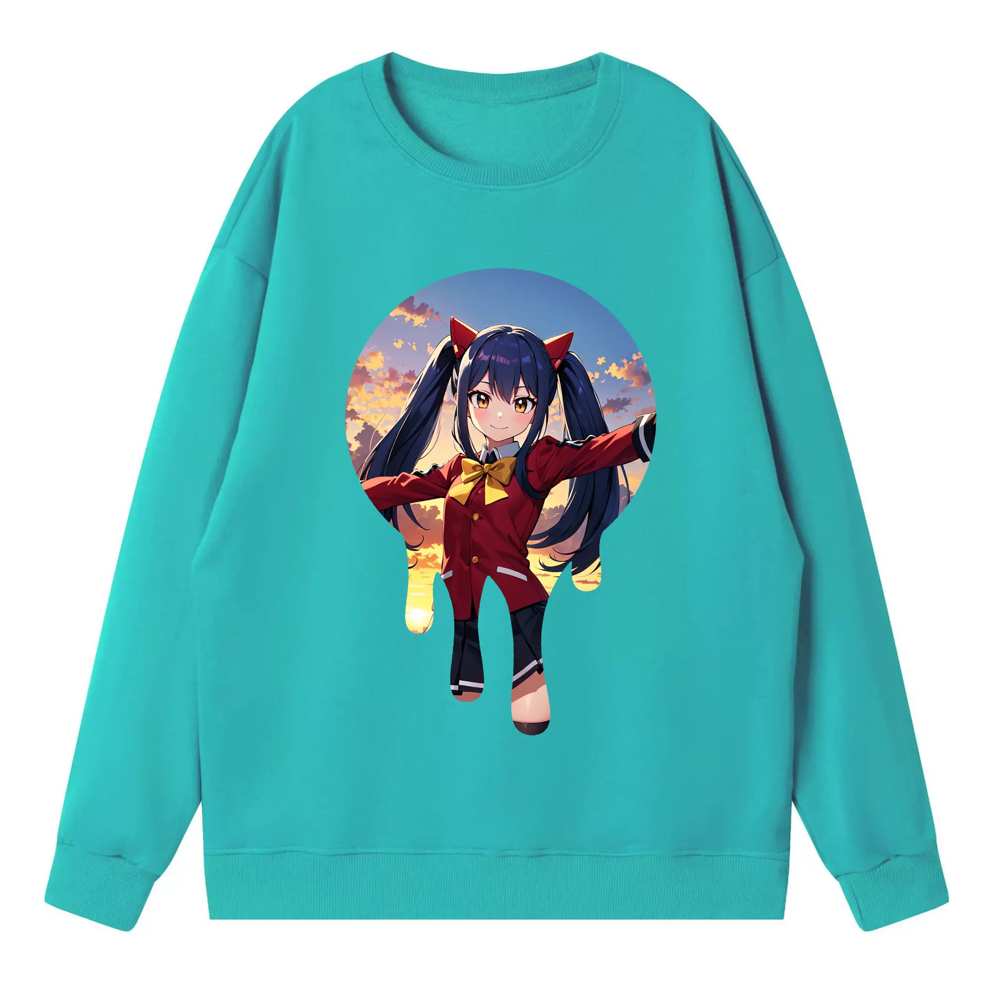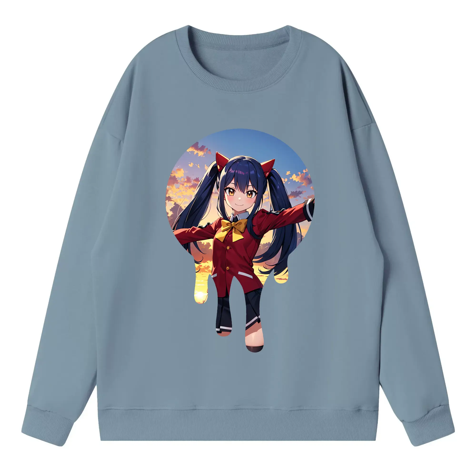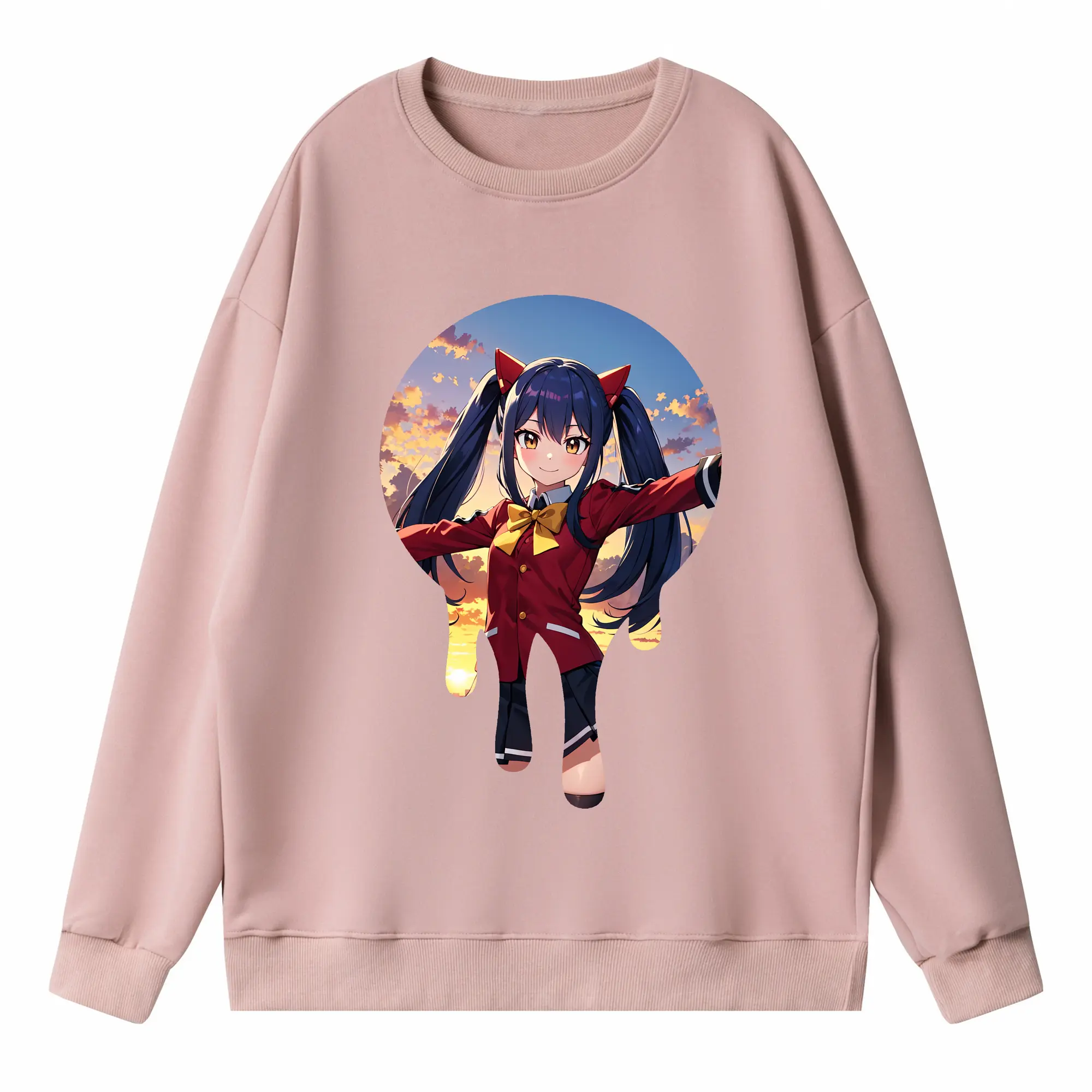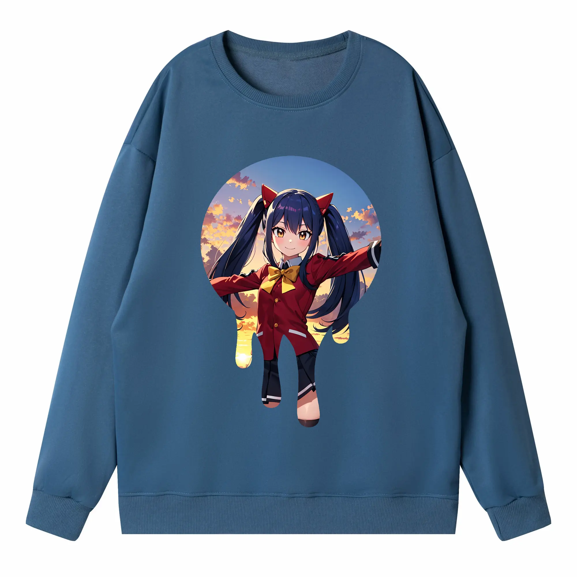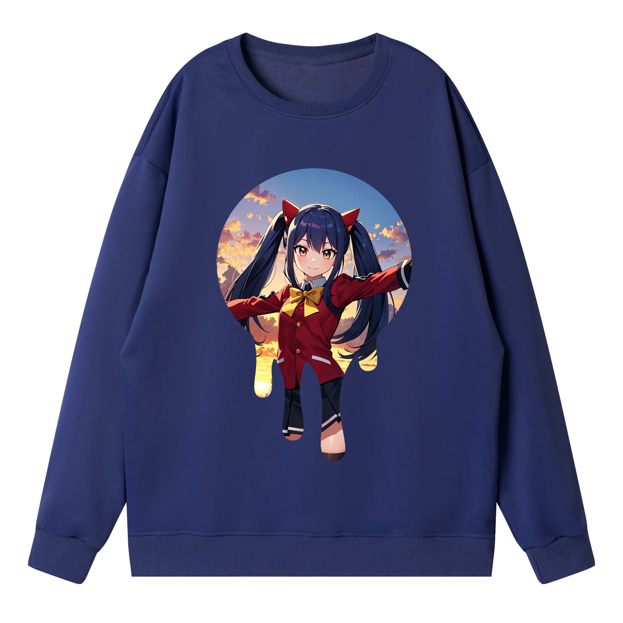 フェアリーテイル グッズ ウェンディ・マーベル - 高品質 クルーネック スウェット ・ コットン59% ポリエステル41% ・ ユニセックス 長袖 トレーナー ・ カジュアル デイリー スポーツ 散歩用