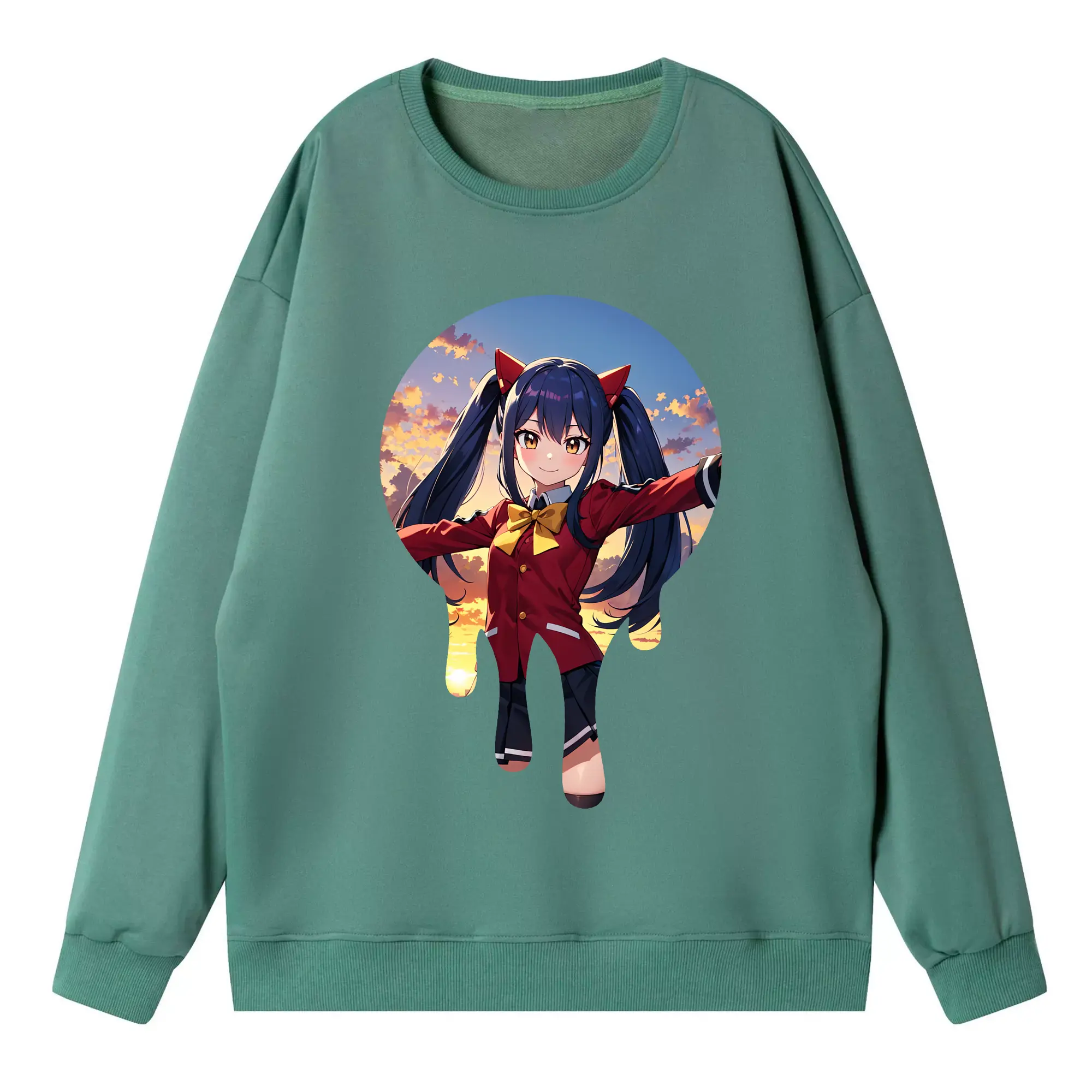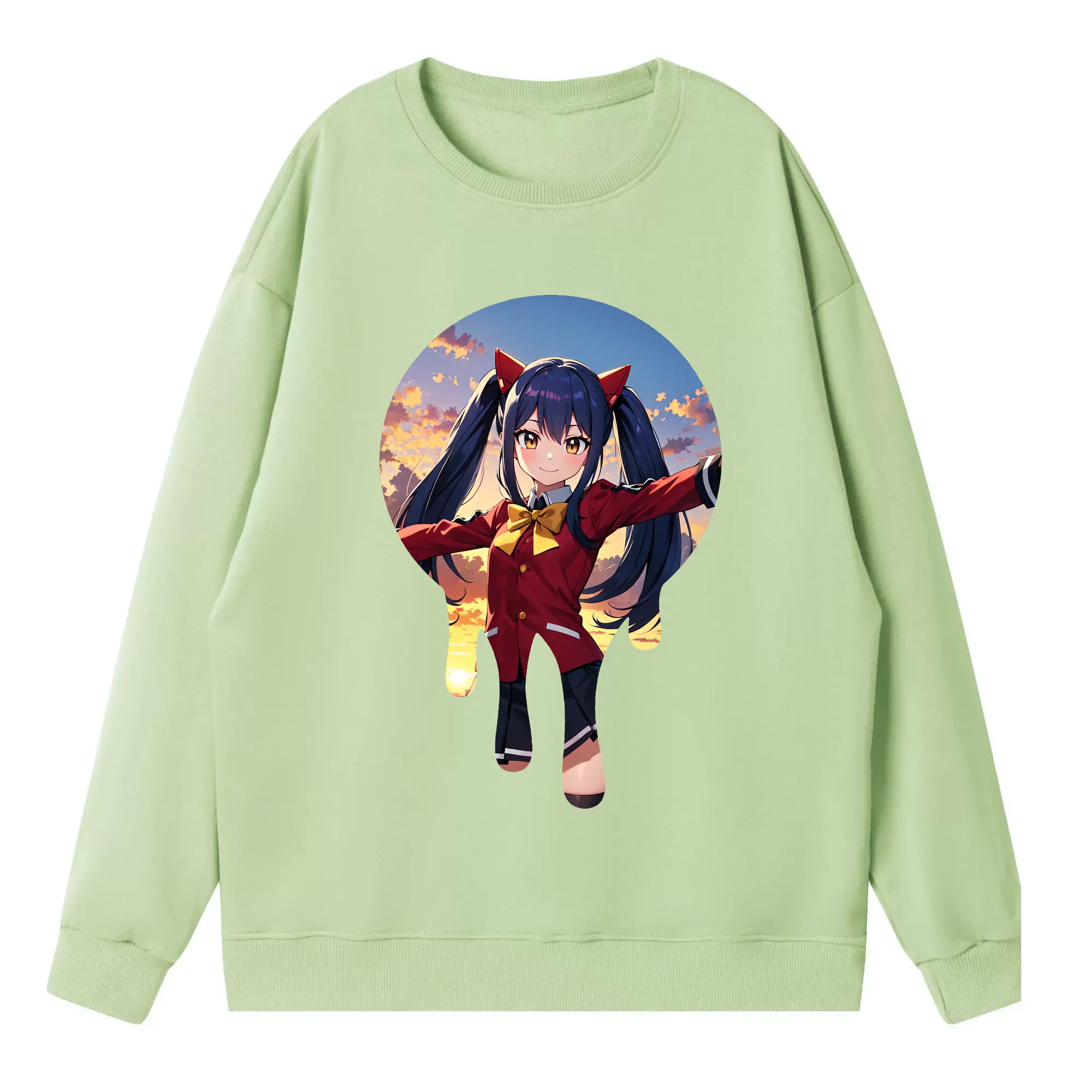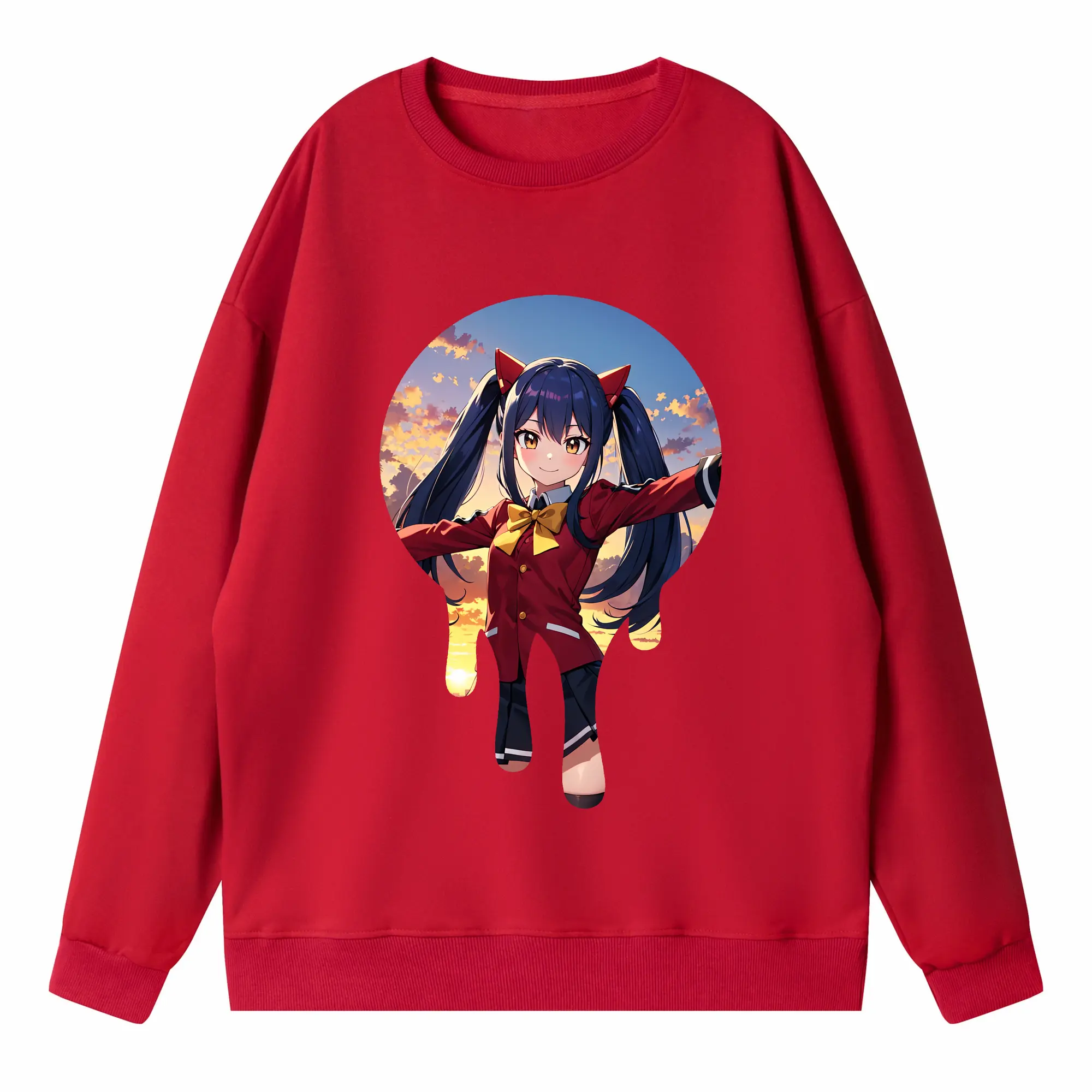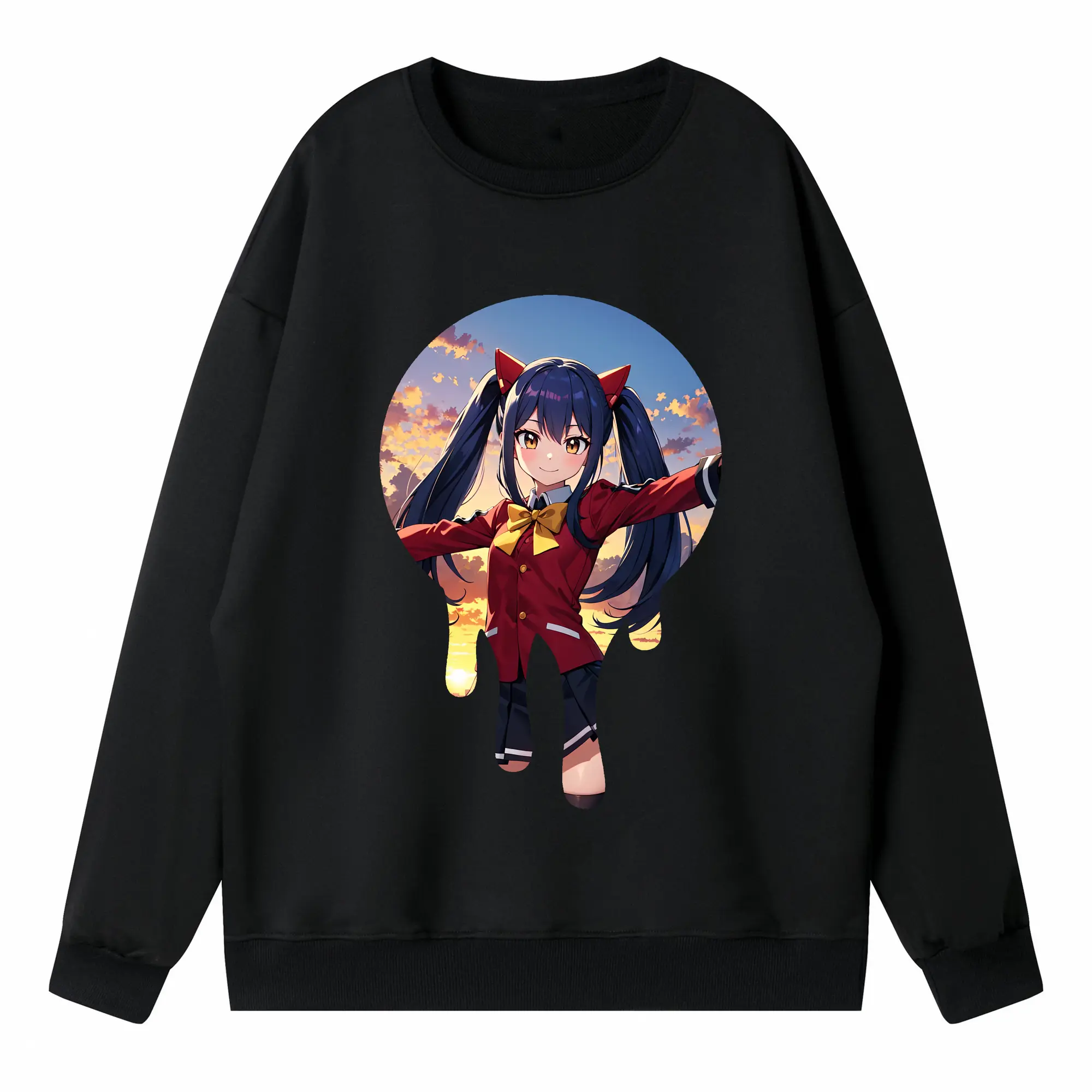フェアリーテイル グッズ ウェンディ・マーベル - 高品質 クルーネック スウェット ・ コットン59% ポリエステル41% ・ ユニセックス 長袖 トレーナー ・ カジュアル デイリー スポーツ 散歩用