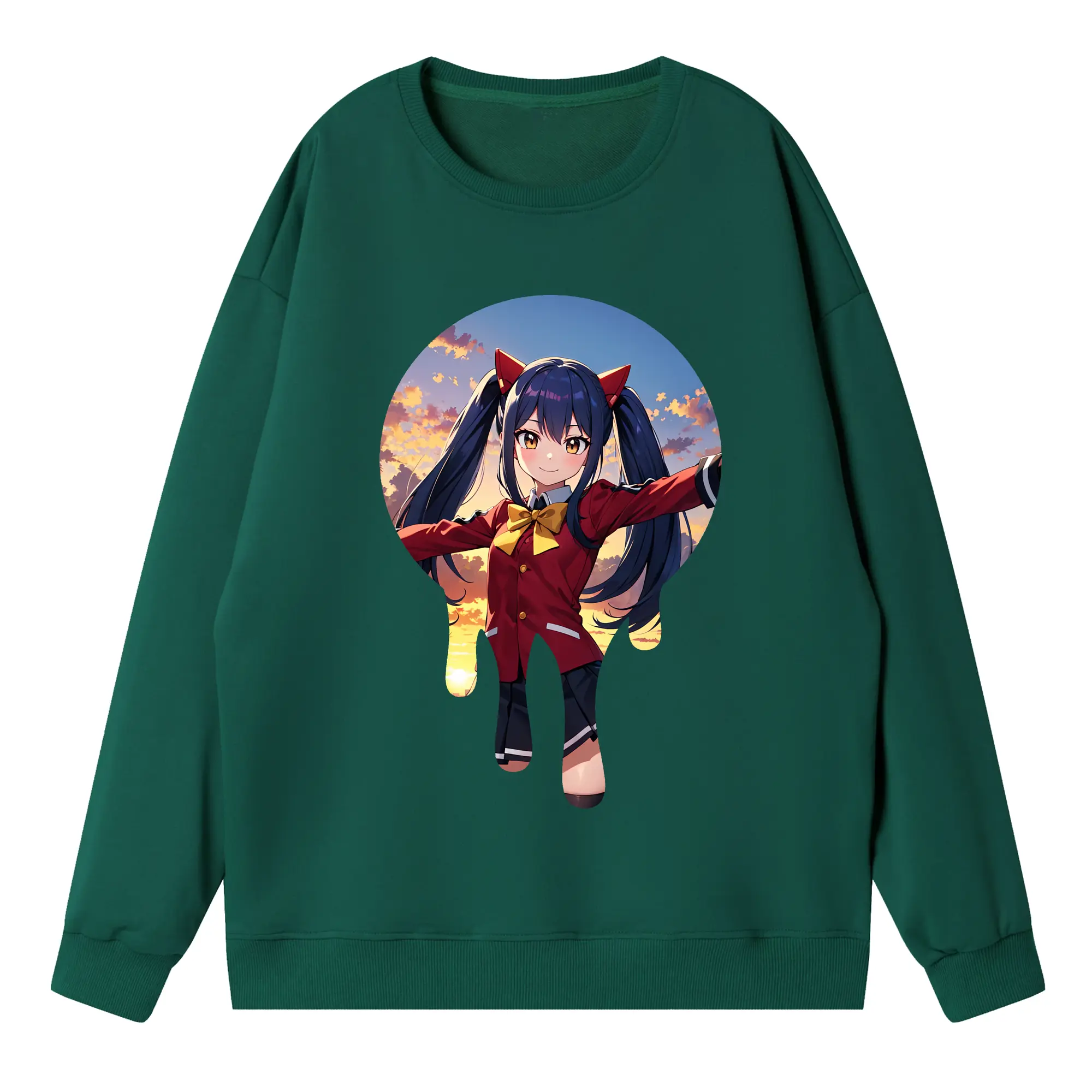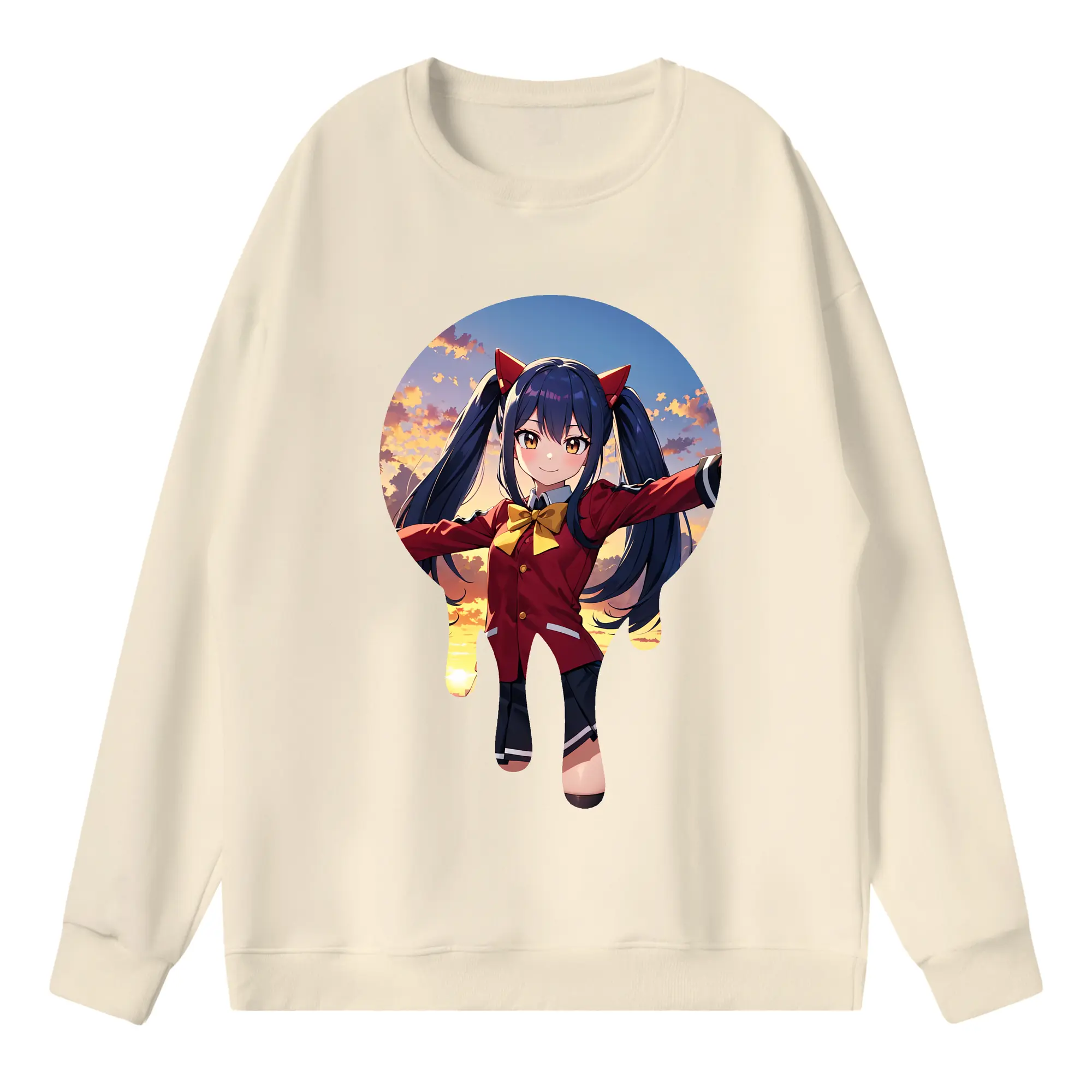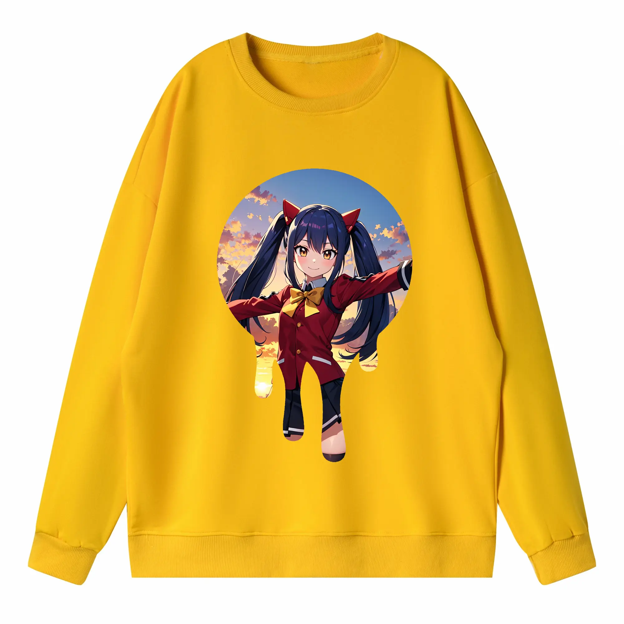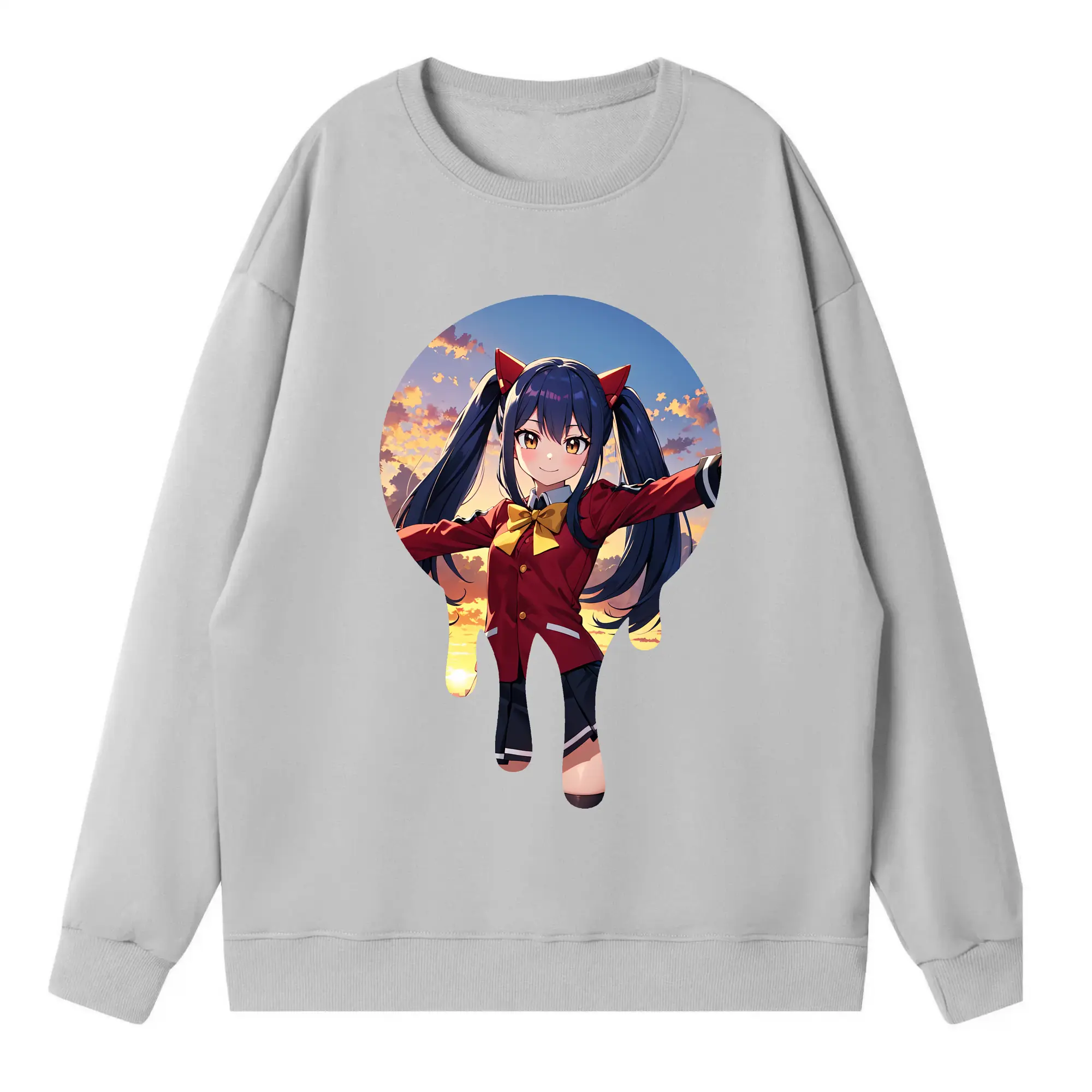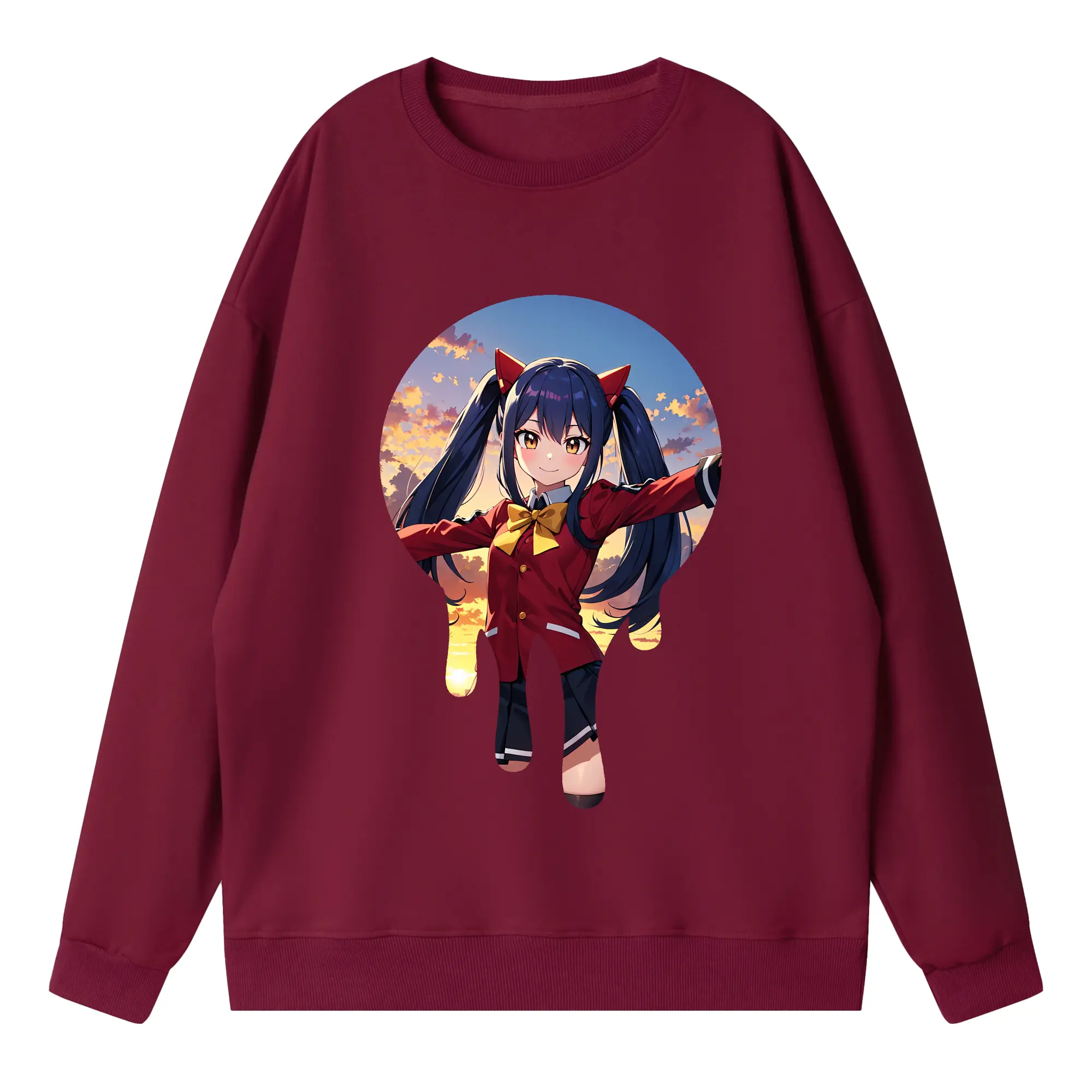フェアリーテイル グッズ ウェンディ・マーベル - 高品質 クルーネック スウェット ・ コットン59% ポリエステル41% ・ ユニセックス 長袖 トレーナー ・ カジュアル デイリー スポーツ 散歩用