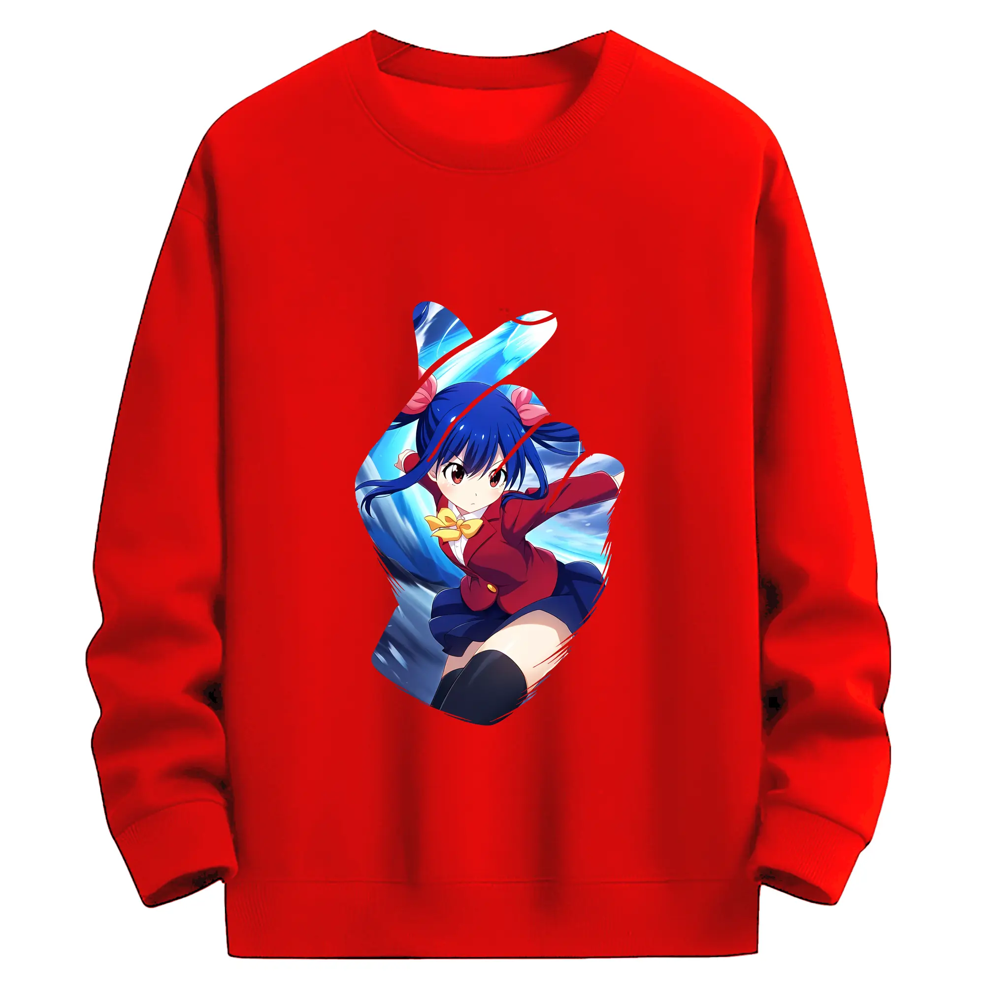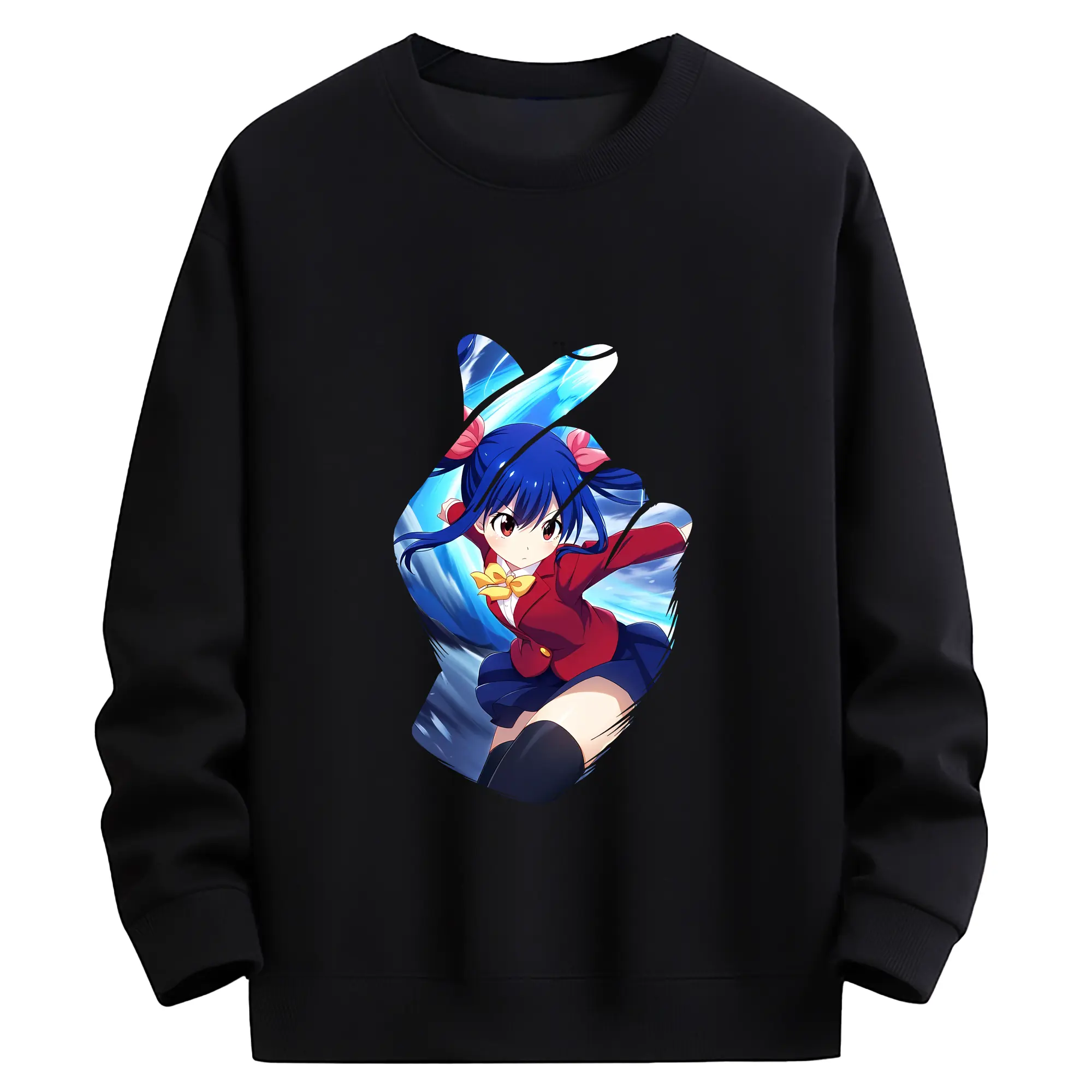 フェアリーテイル グッズ ウェンディ・マーベル - 高品質 クルーネック スウェット ・ コットン59% ポリエステル41% ・ ユニセックス 長袖 トレーナー ・ カジュアル デイリー スポーツ 散歩用