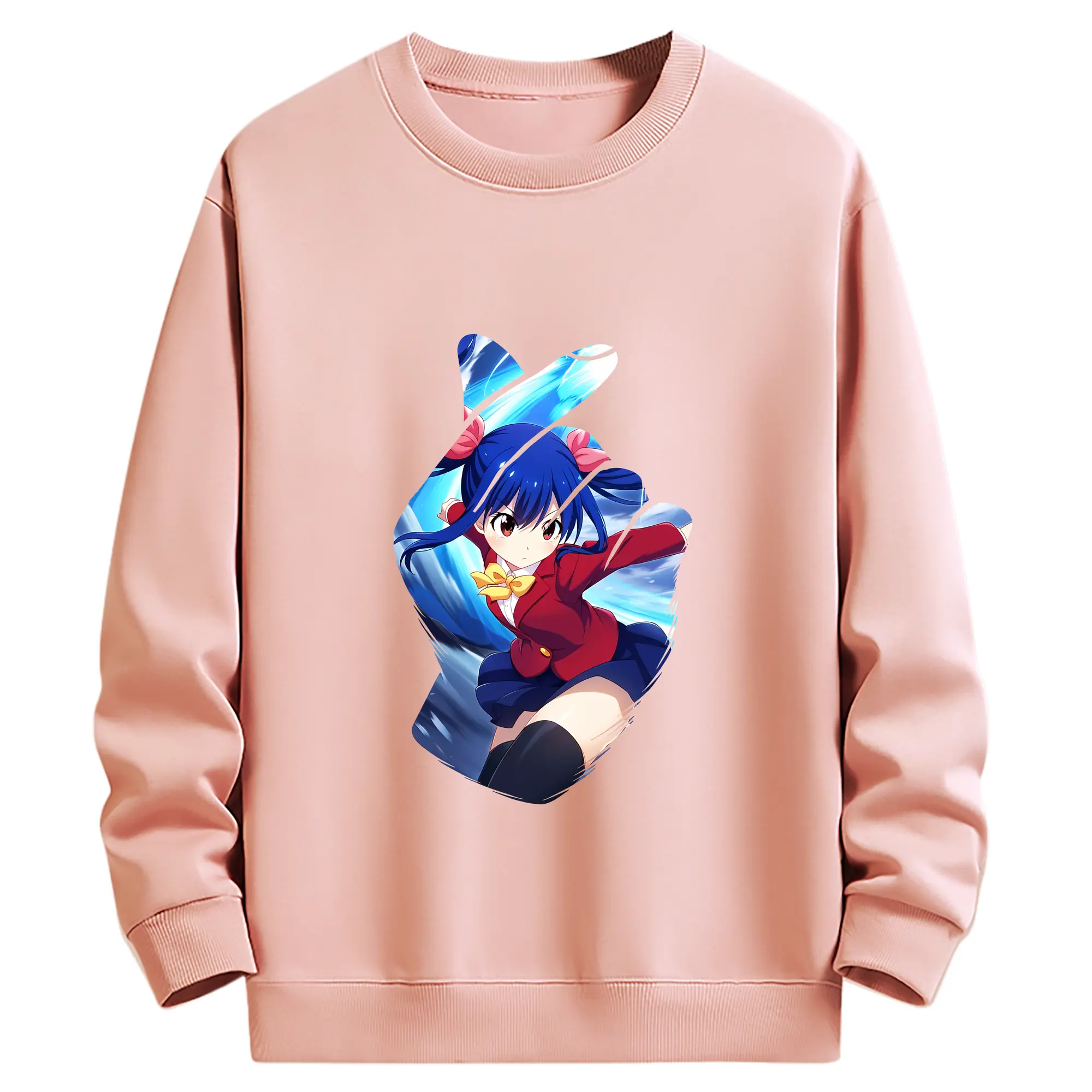 フェアリーテイル グッズ ウェンディ・マーベル - 薄手 クルーネック スウェット 裏毛260g · ポリエステル 春秋向け カジュアル 男女兼用 · トレーナー デイリー スポーツ 散歩に最適