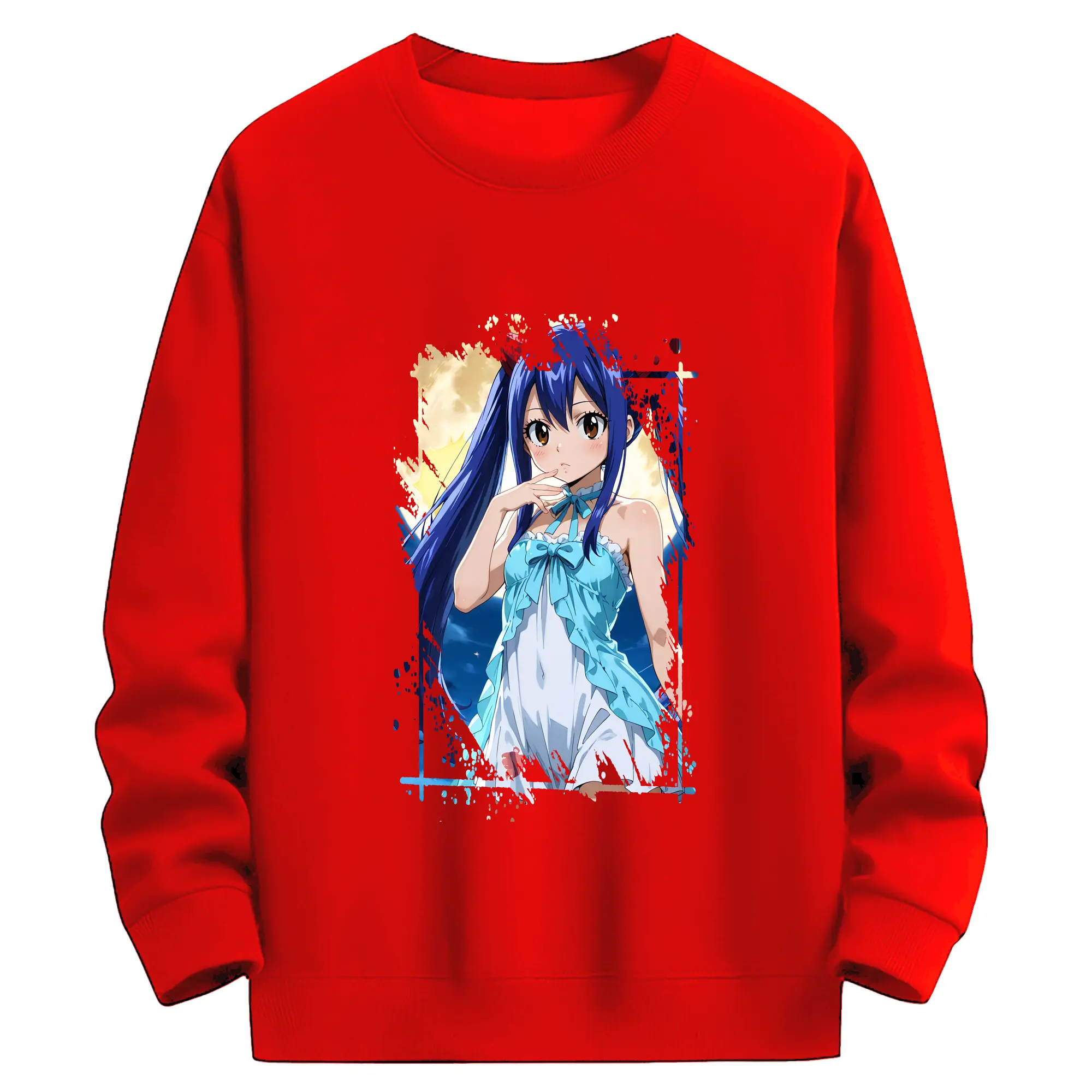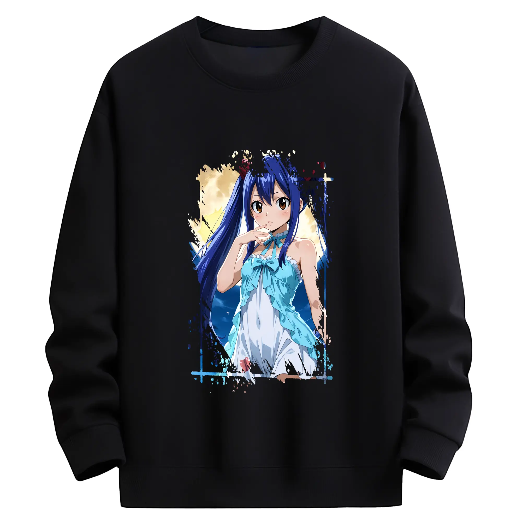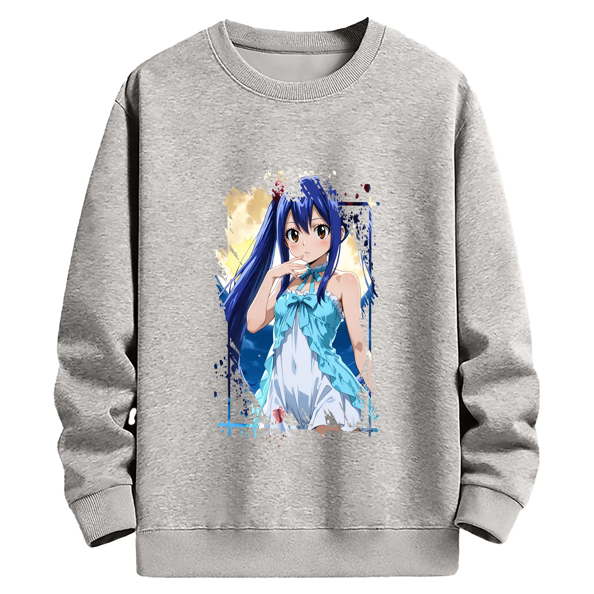 フェアリーテイル グッズ ウェンディ・マーベル - 高品質 クルーネック スウェット ・ コットン59% ポリエステル41% ・ ユニセックス 長袖 トレーナー ・ カジュアル デイリー スポーツ 散歩用