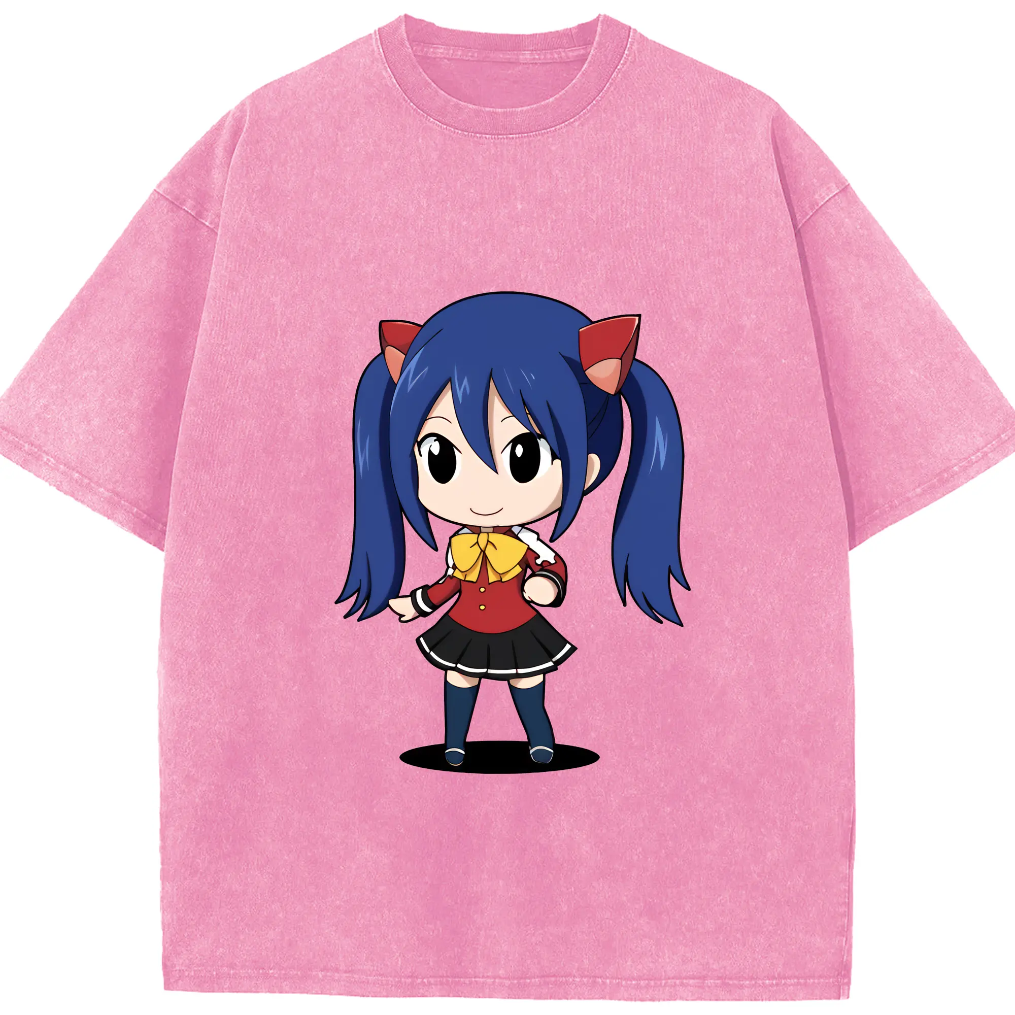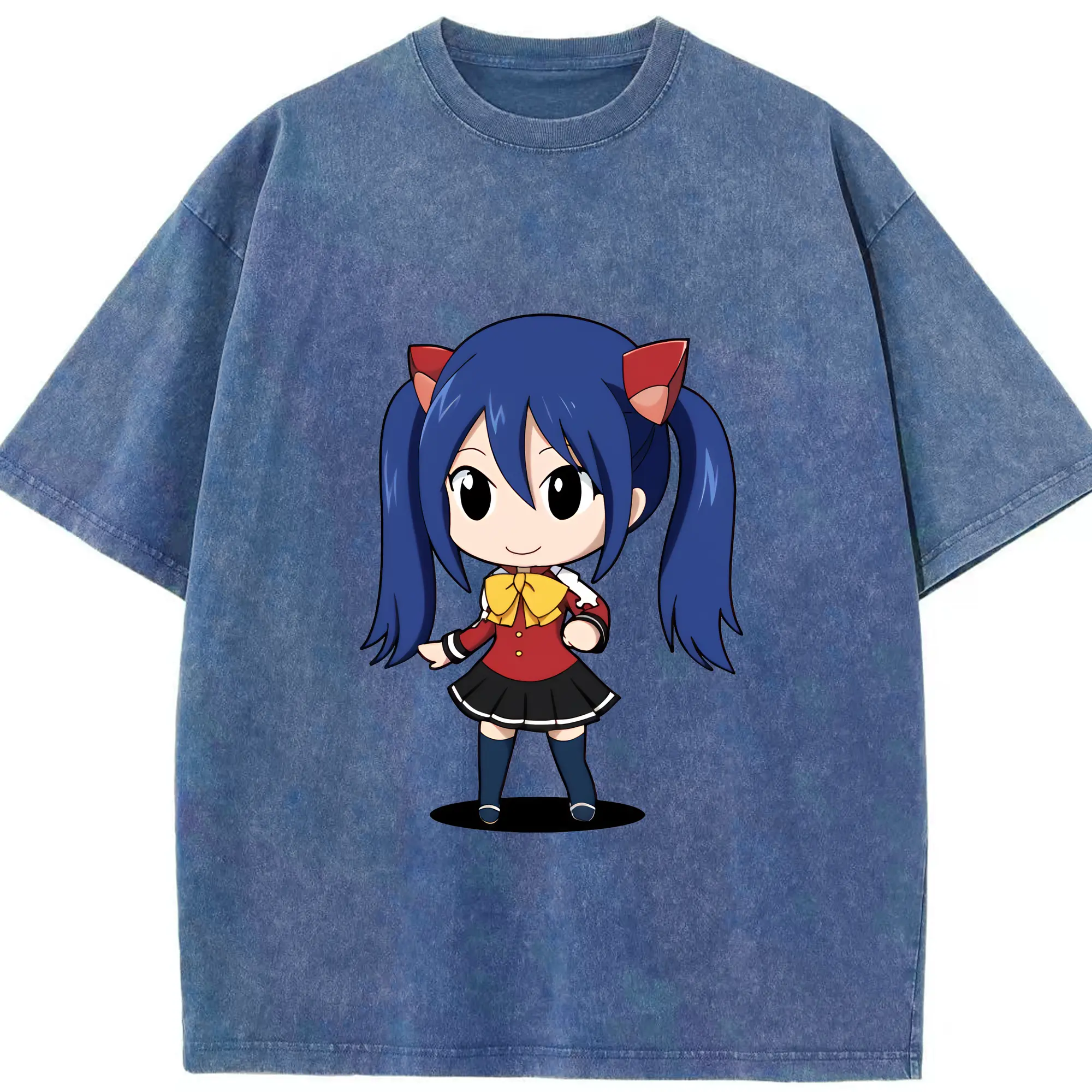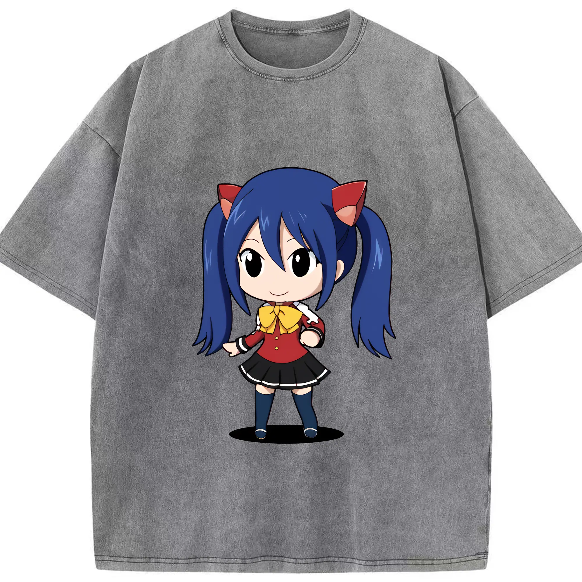 フェアリーテイル グッズ ウェンディ・マーベル - 綿100% ヴィンテージ風 半袖Tシャツ ・ 背面プリント ・ 柔らか肌触り ・ 通気性 快適 ・ スポーツ カジュアル 外出用