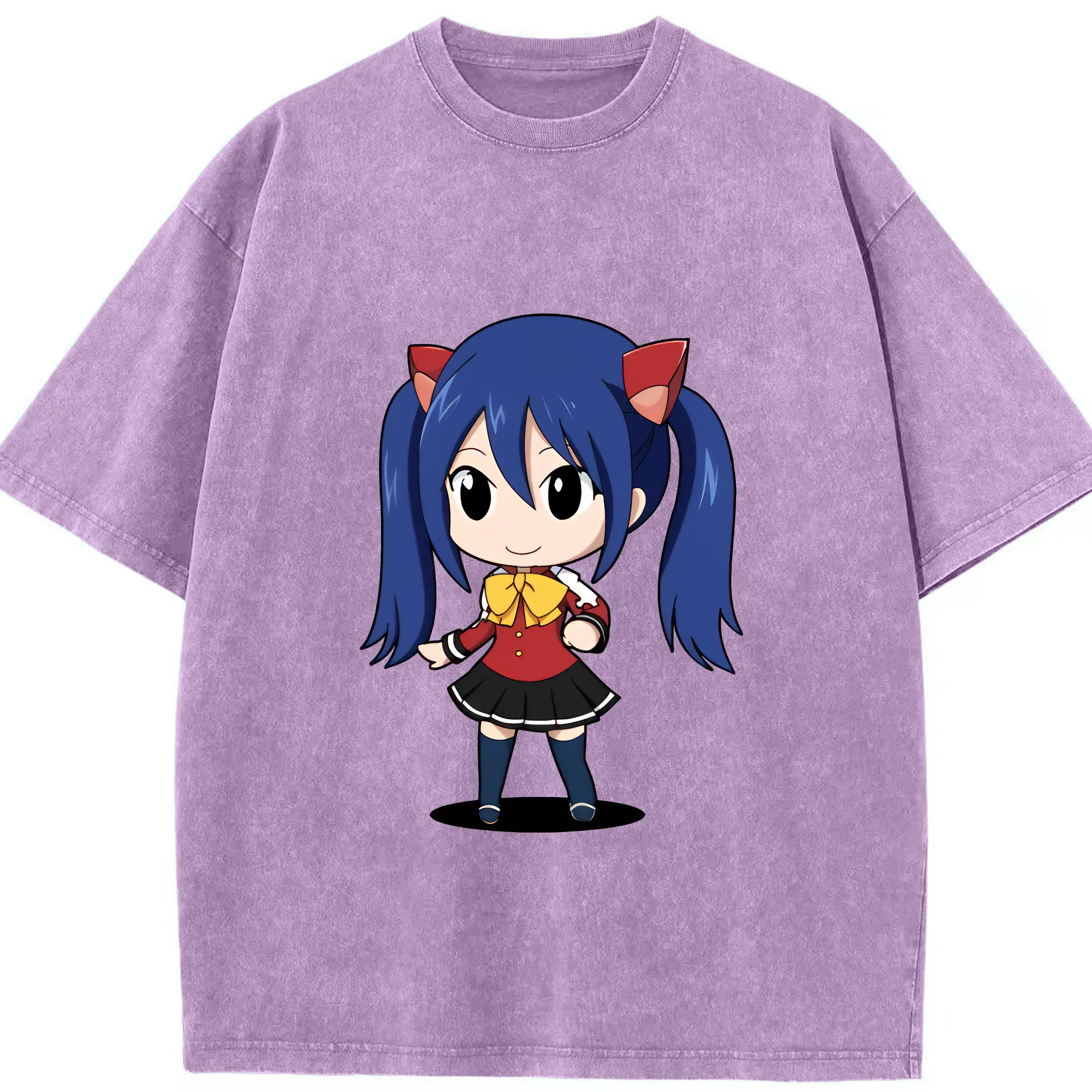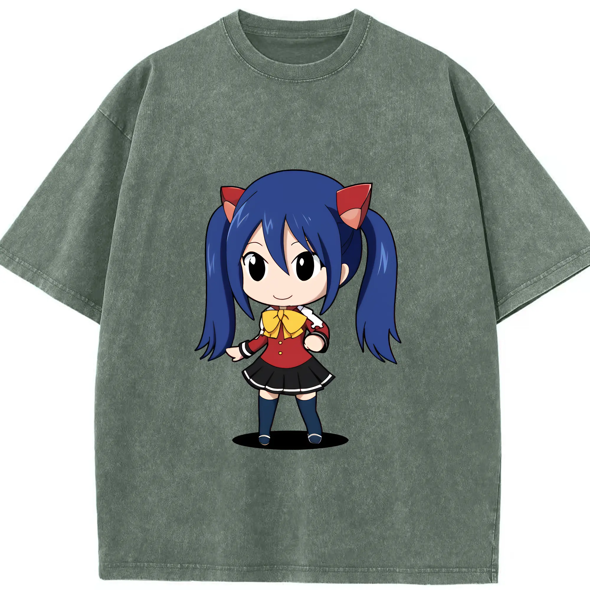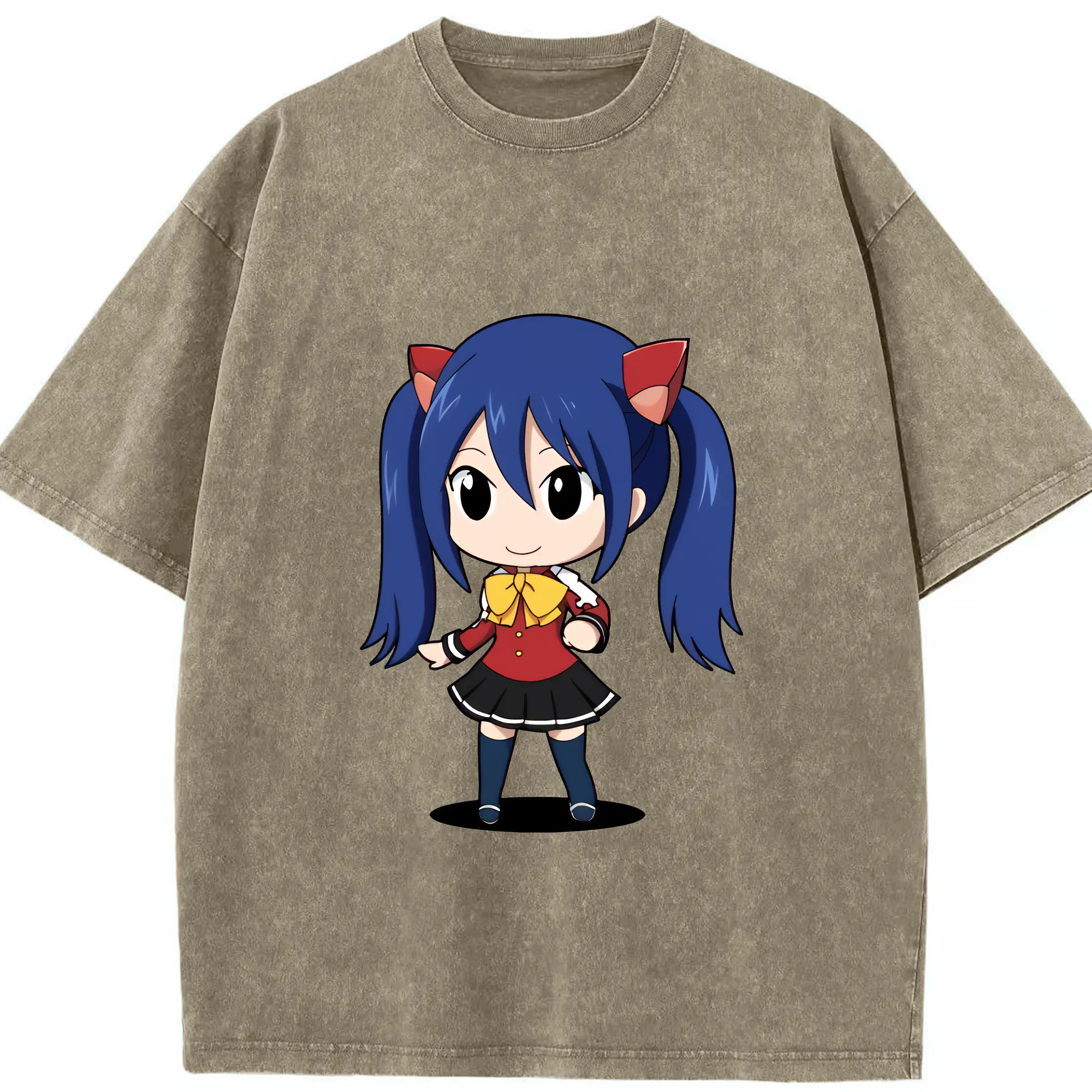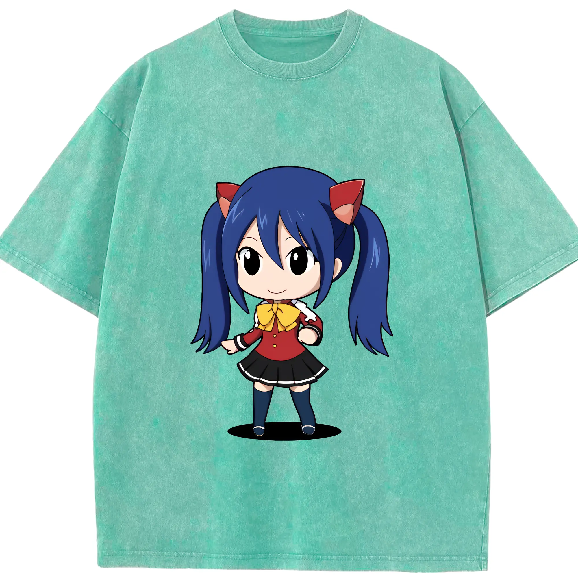 フェアリーテイル グッズ ウェンディ・マーベル - 綿100% ヴィンテージ風 半袖Tシャツ ・ 背面プリント ・ 柔らか肌触り ・ 通気性 快適 ・ スポーツ カジュアル 外出用