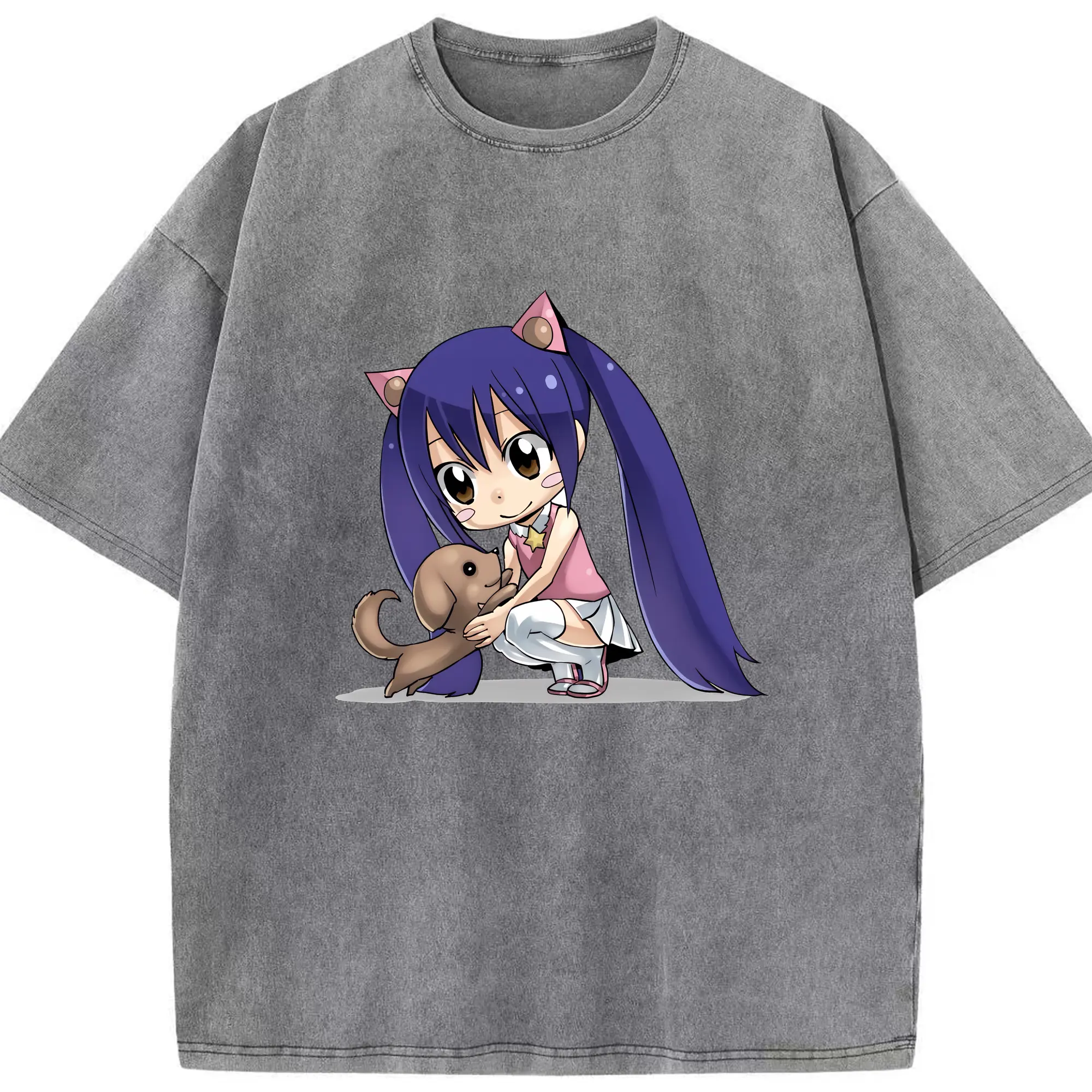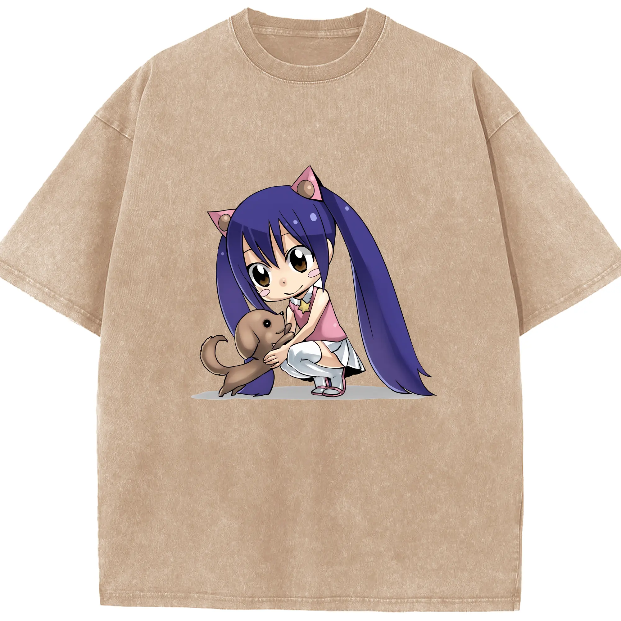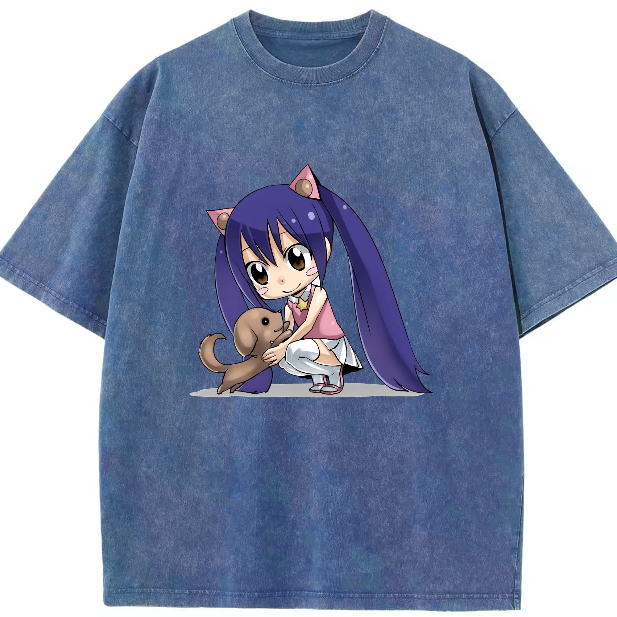 フェアリーテイル グッズ ウェンディ・マーベル - 綿100% ヴィンテージ風 半袖Tシャツ ・ 背面プリント ・ 柔らか肌触り ・ 通気性 快適 ・ スポーツ カジュアル 外出用