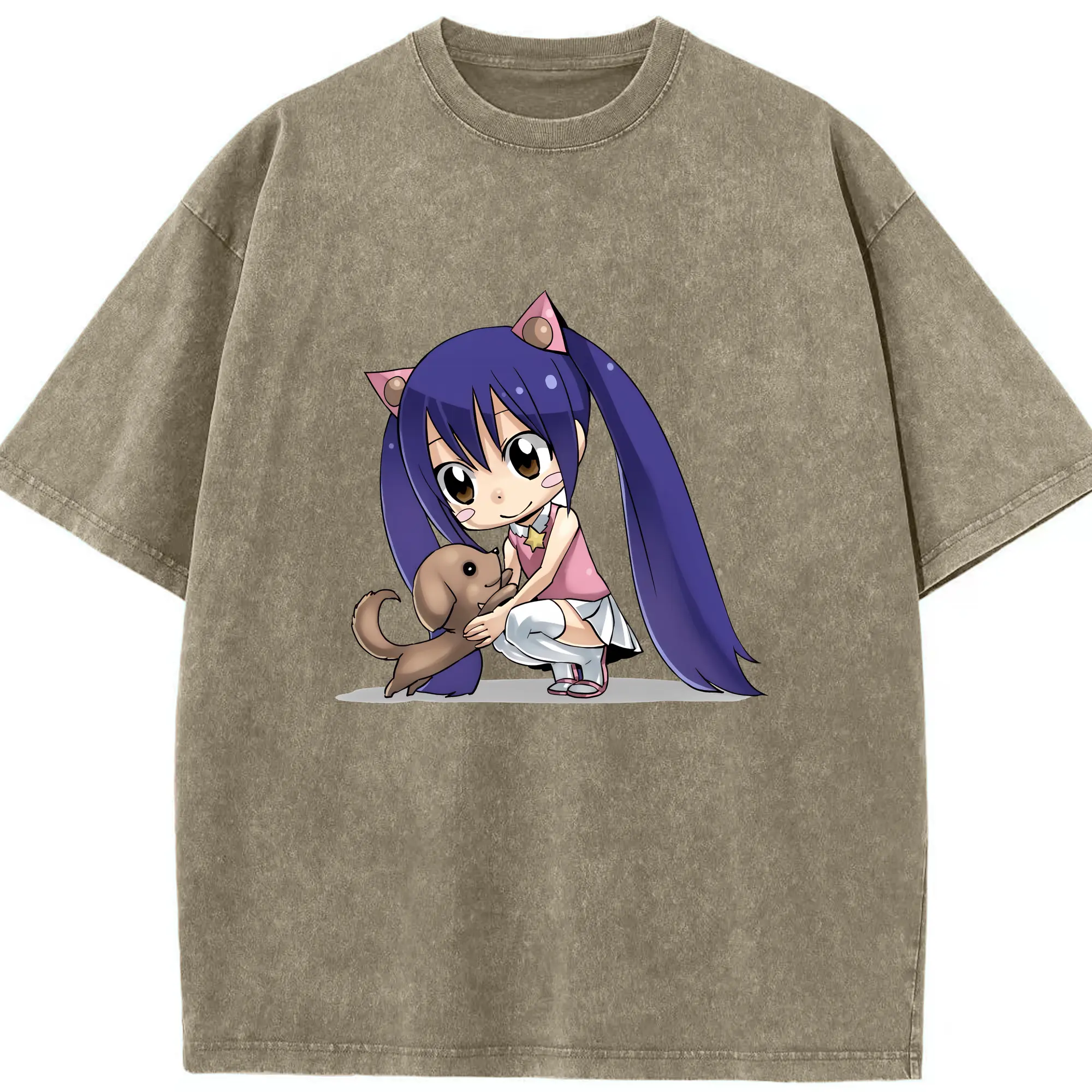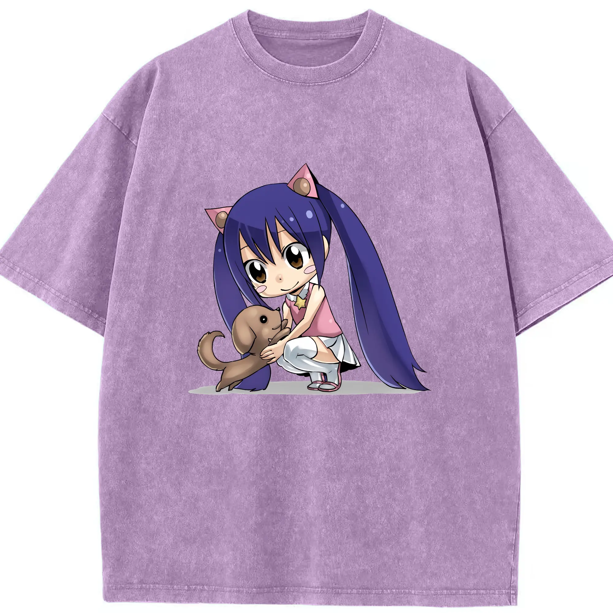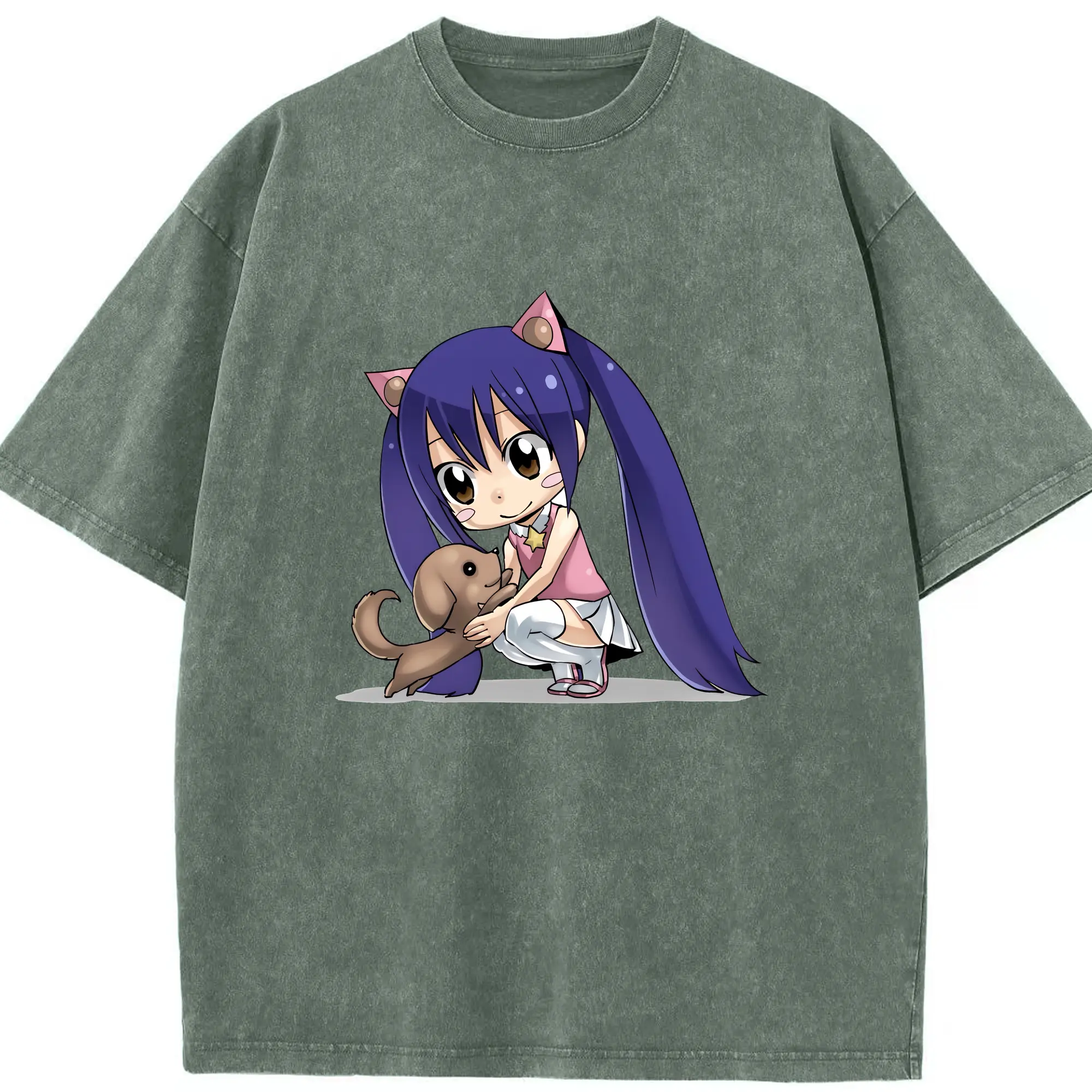 フェアリーテイル グッズ ウェンディ・マーベル - 綿100% ヴィンテージ風 半袖Tシャツ ・ 背面プリント ・ 柔らか肌触り ・ 通気性 快適 ・ スポーツ カジュアル 外出用