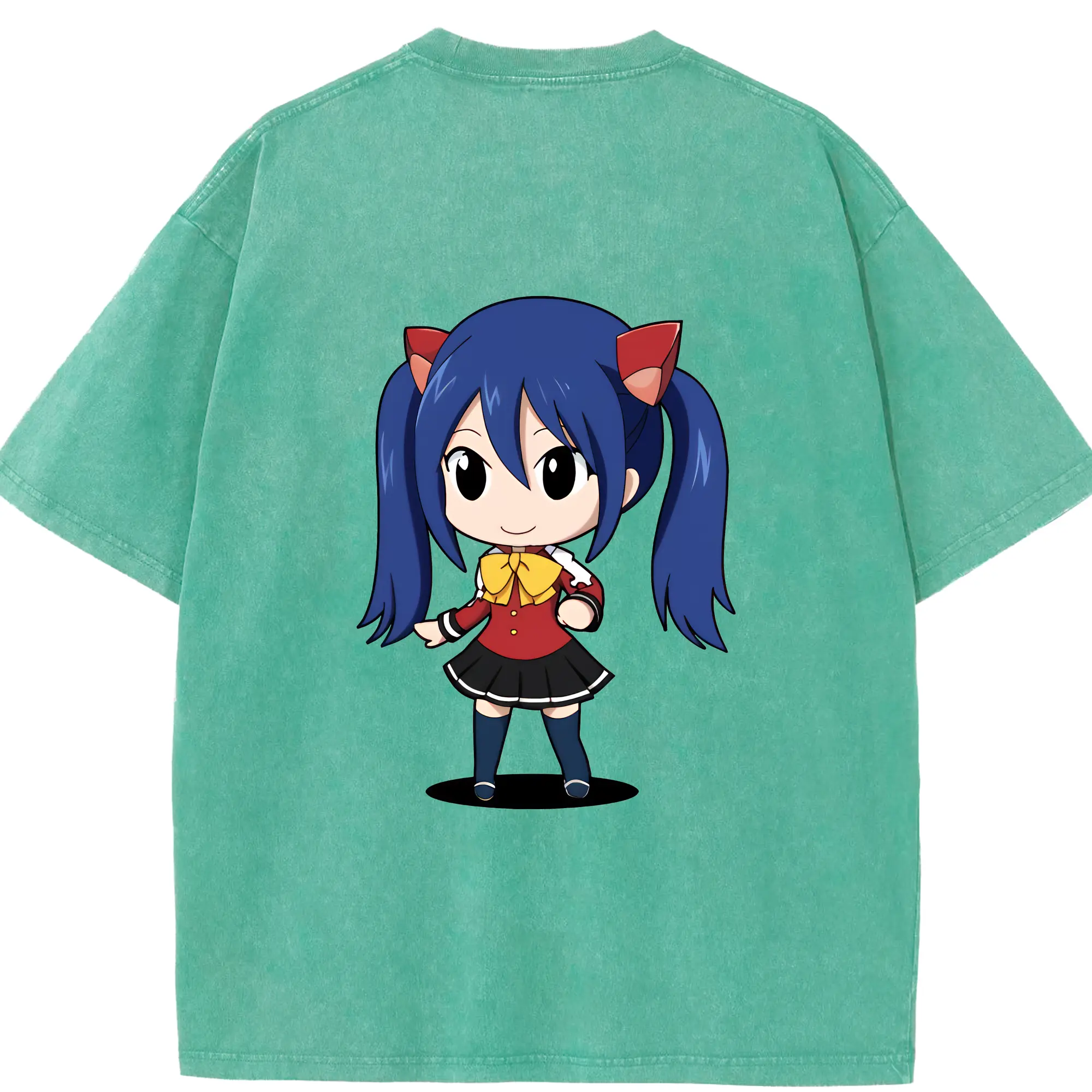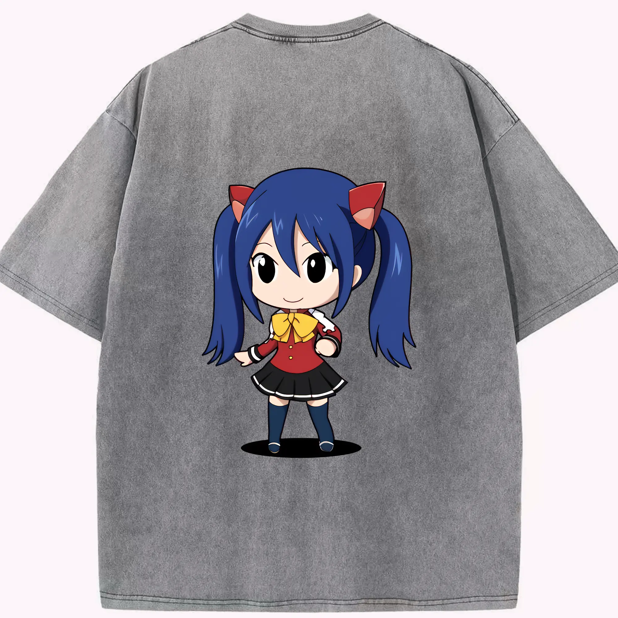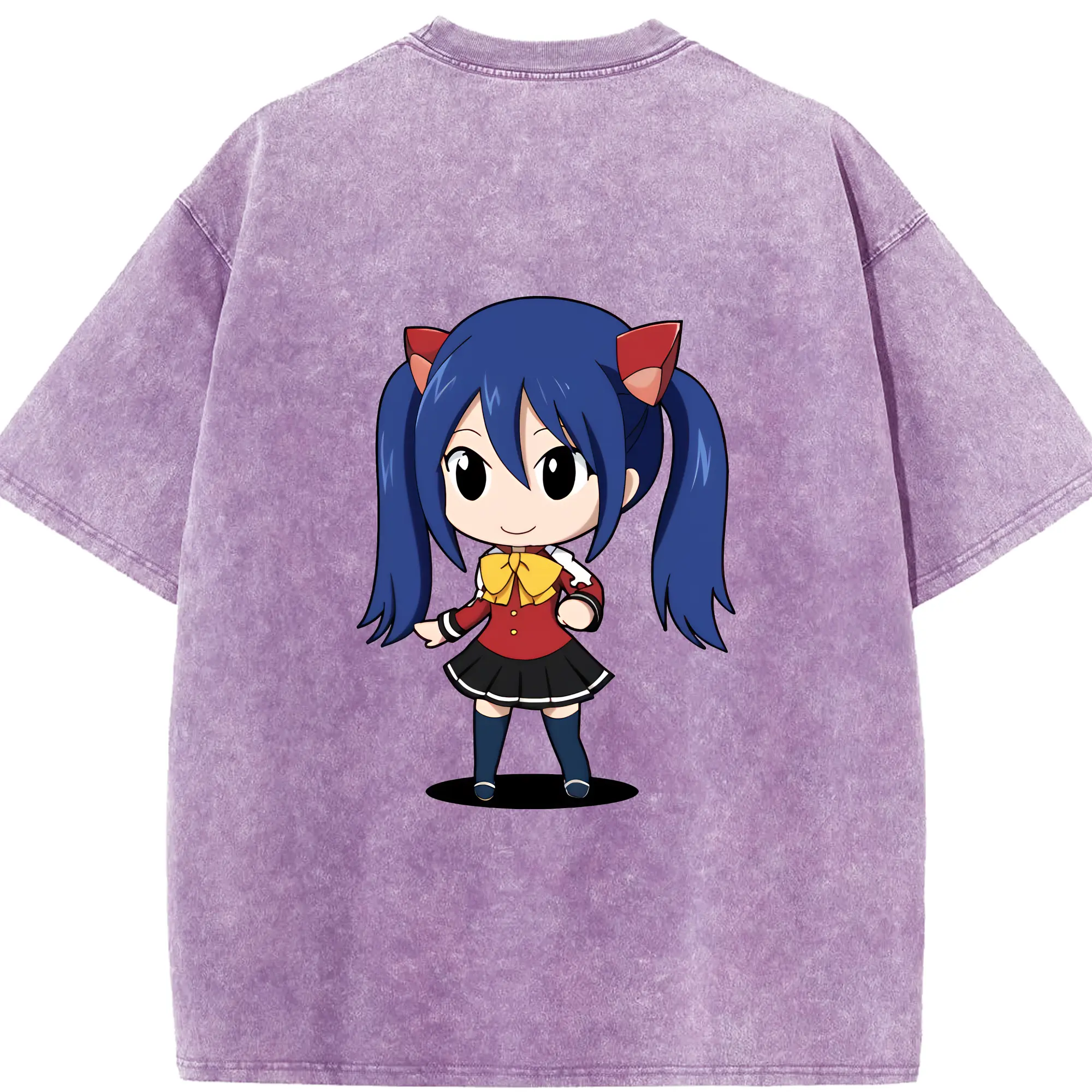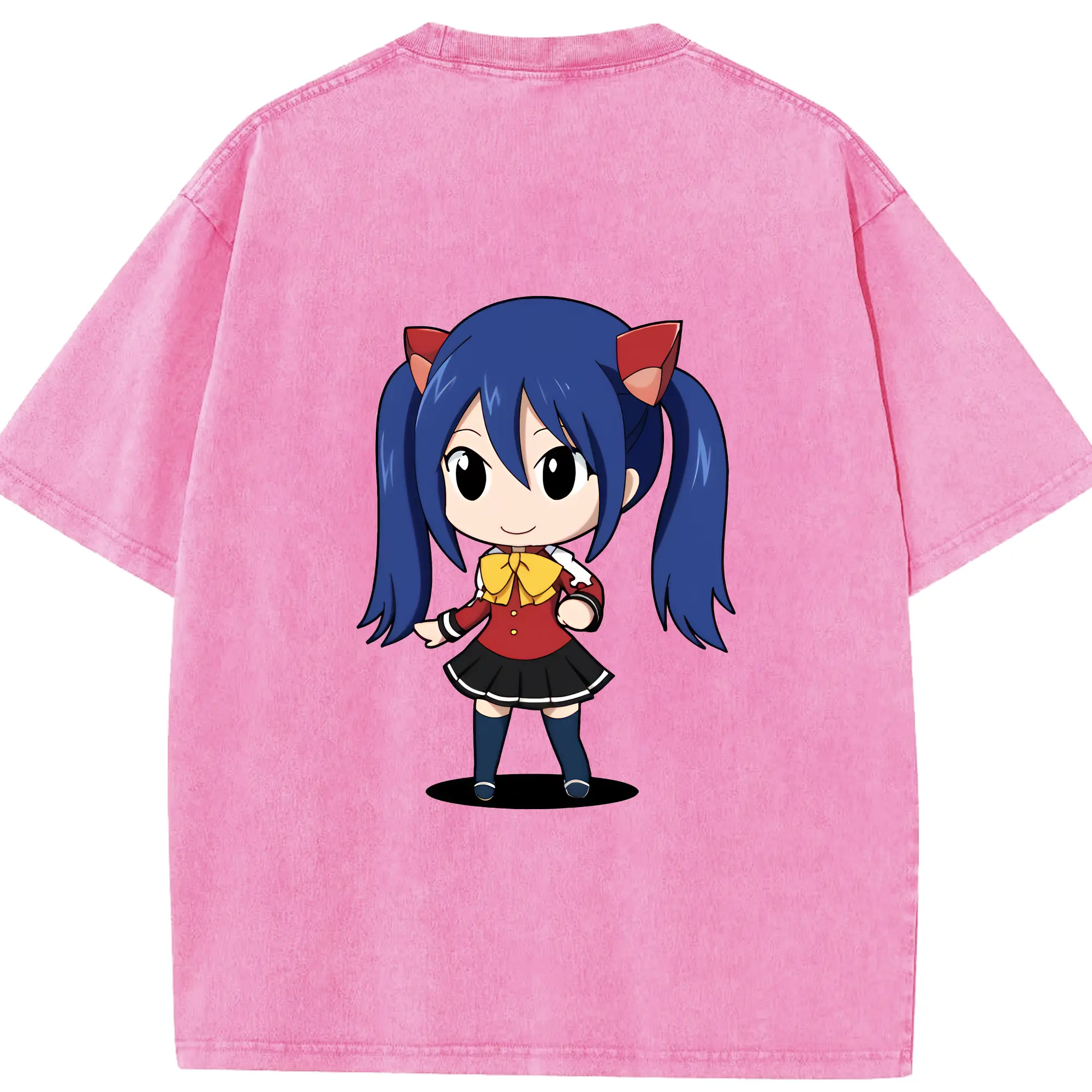 フェアリーテイル グッズ ウェンディ・マーベル - 綿100% ヴィンテージ風 半袖Tシャツ ・ フロントプリント ・ 柔らか肌触り ・ 通気性 快適 ・ スポーツ カジュアル 外出用