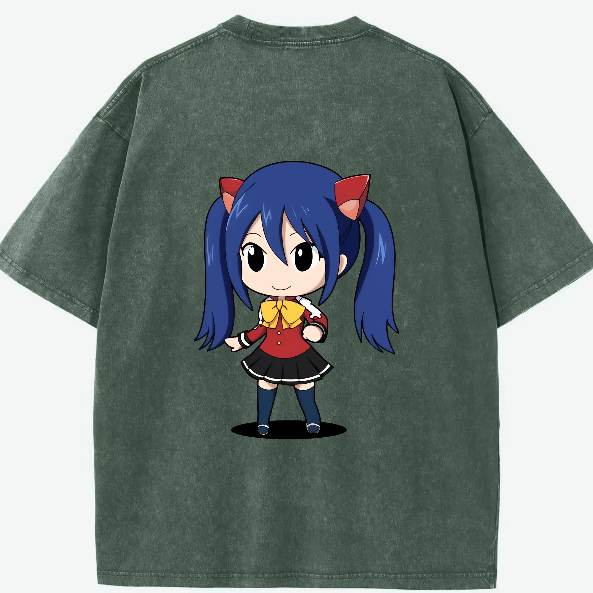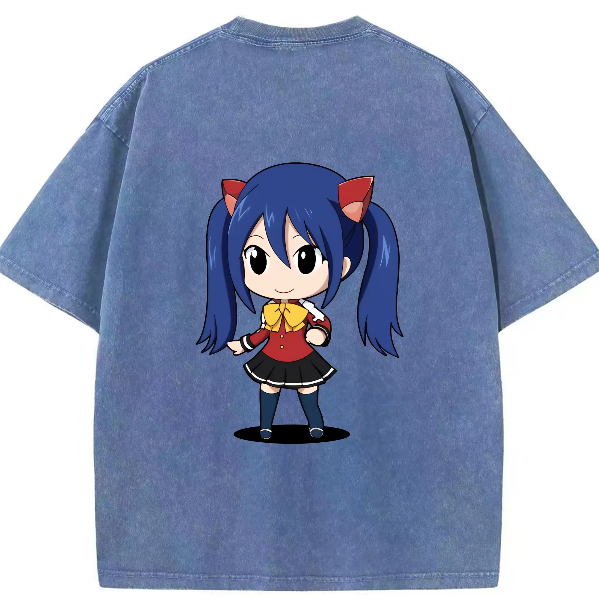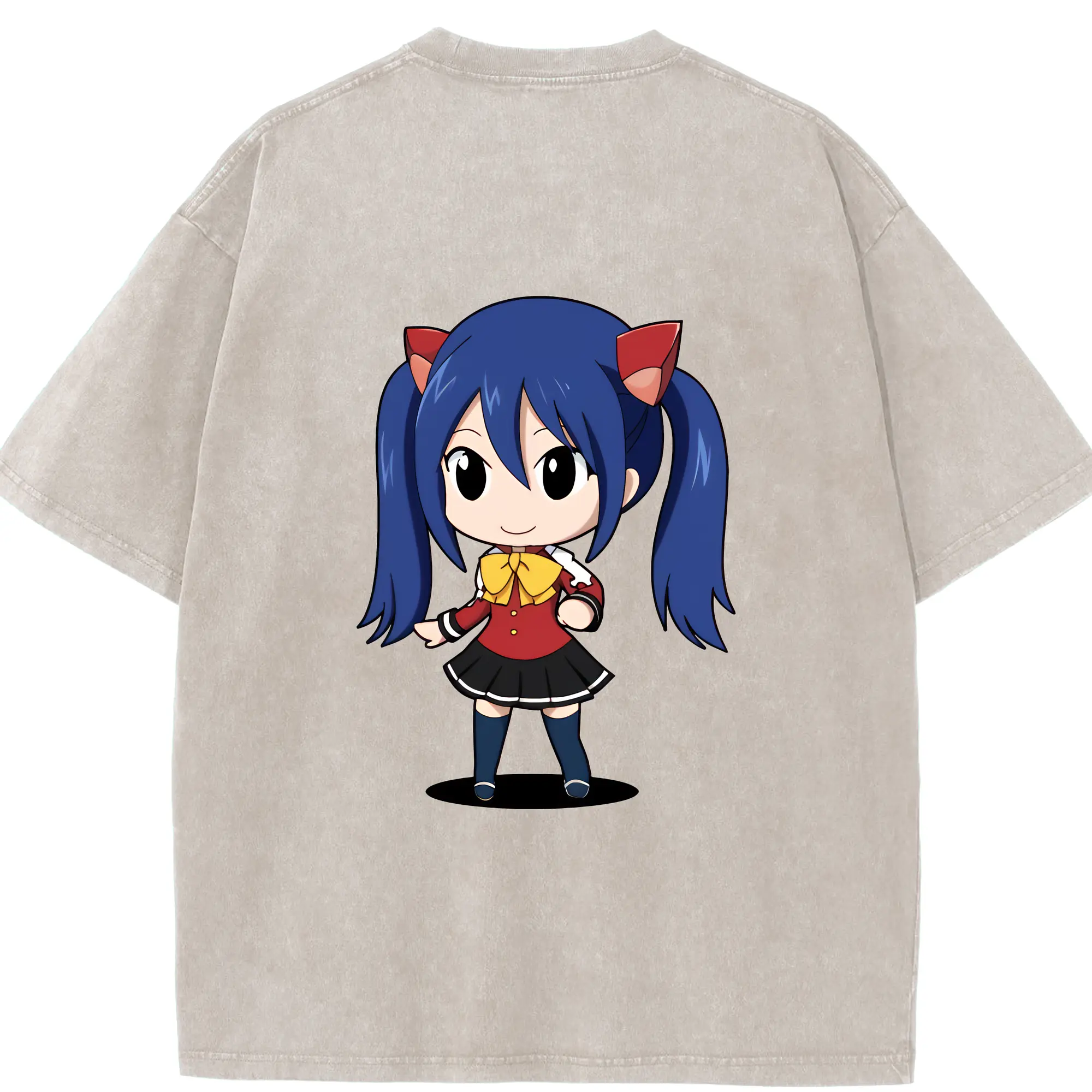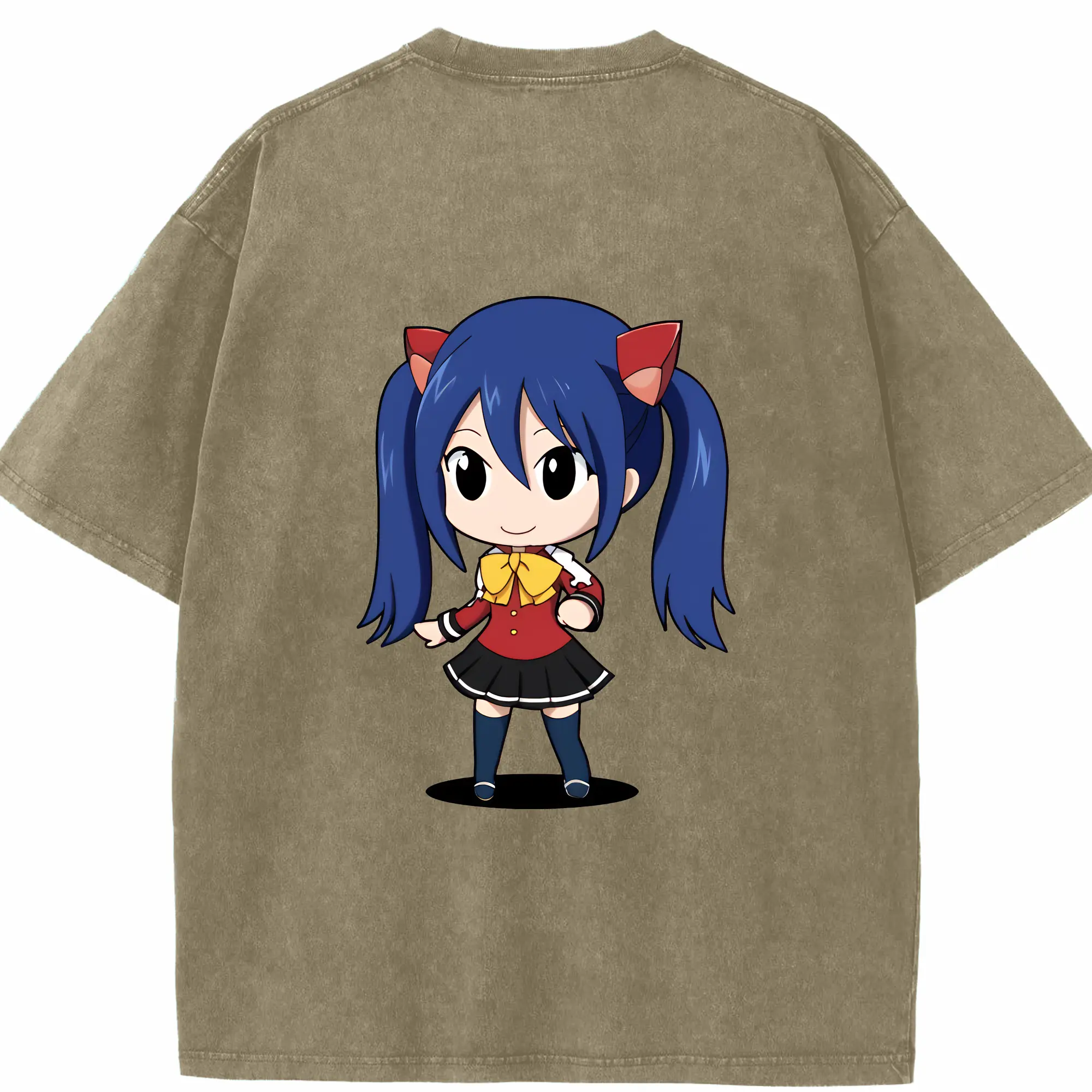 フェアリーテイル グッズ ウェンディ・マーベル - 綿100% ヴィンテージ風 半袖Tシャツ ・ フロントプリント ・ 柔らか肌触り ・ 通気性 快適 ・ スポーツ カジュアル 外出用