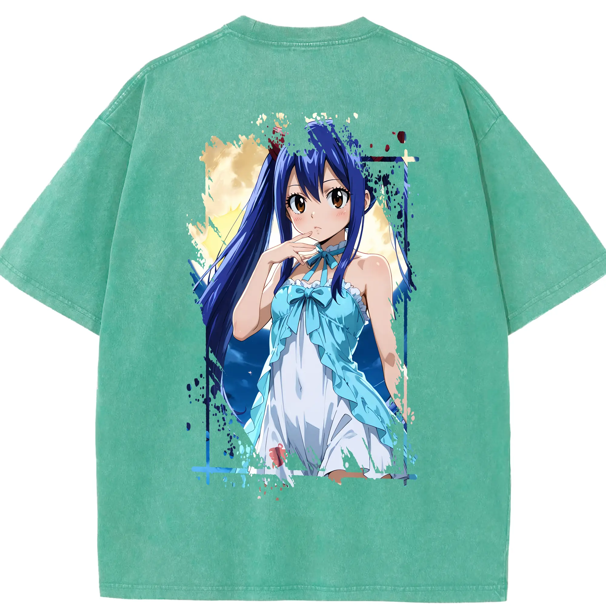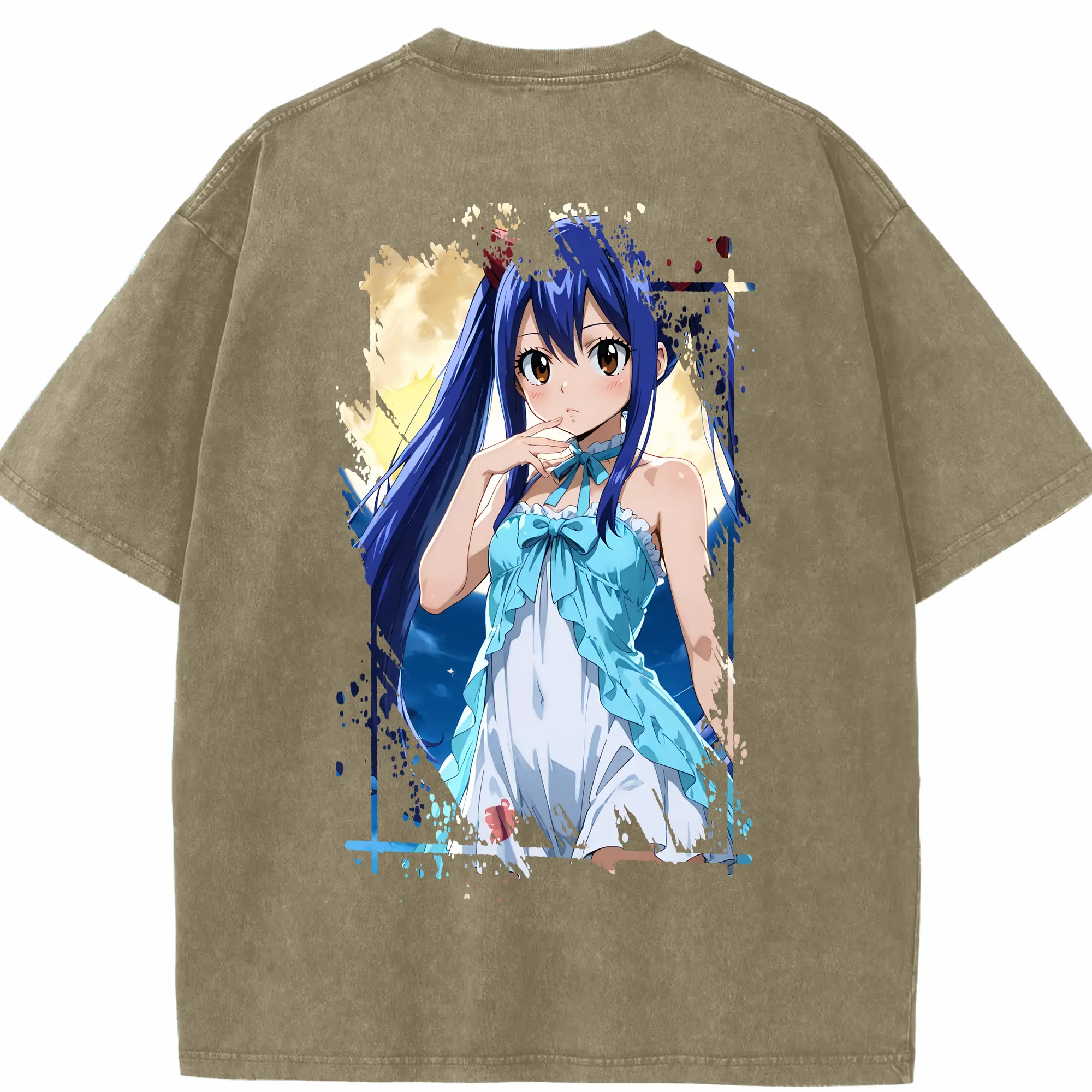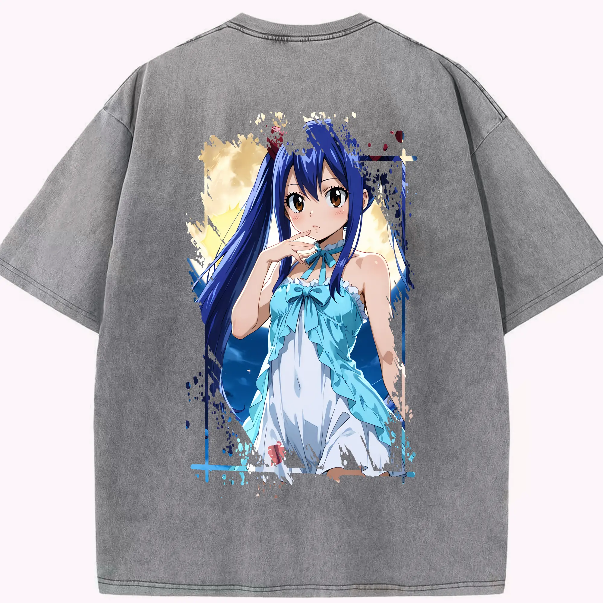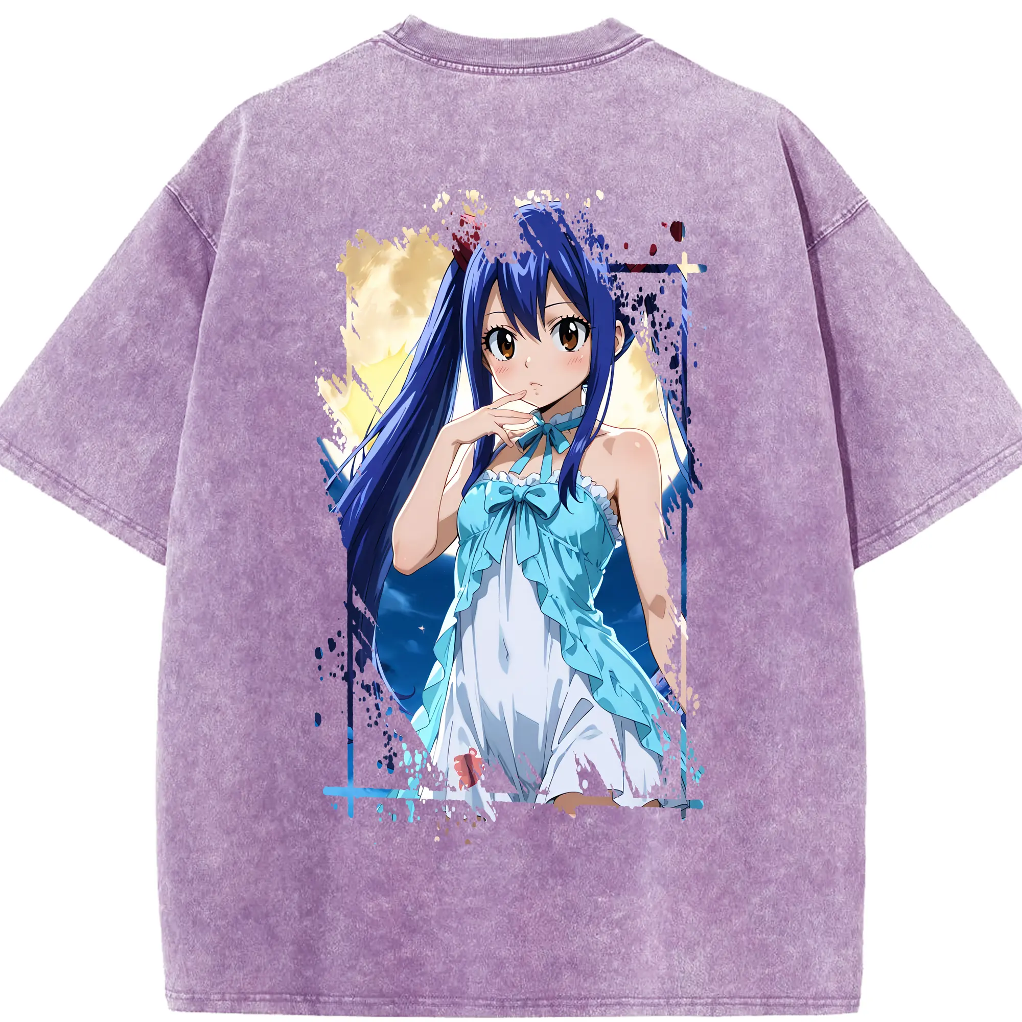 フェアリーテイル グッズ ウェンディ・マーベル - 綿100% ヴィンテージ風 半袖Tシャツ ・ フロントプリント ・ 柔らか肌触り ・ 通気性 快適 ・ スポーツ カジュアル 外出用