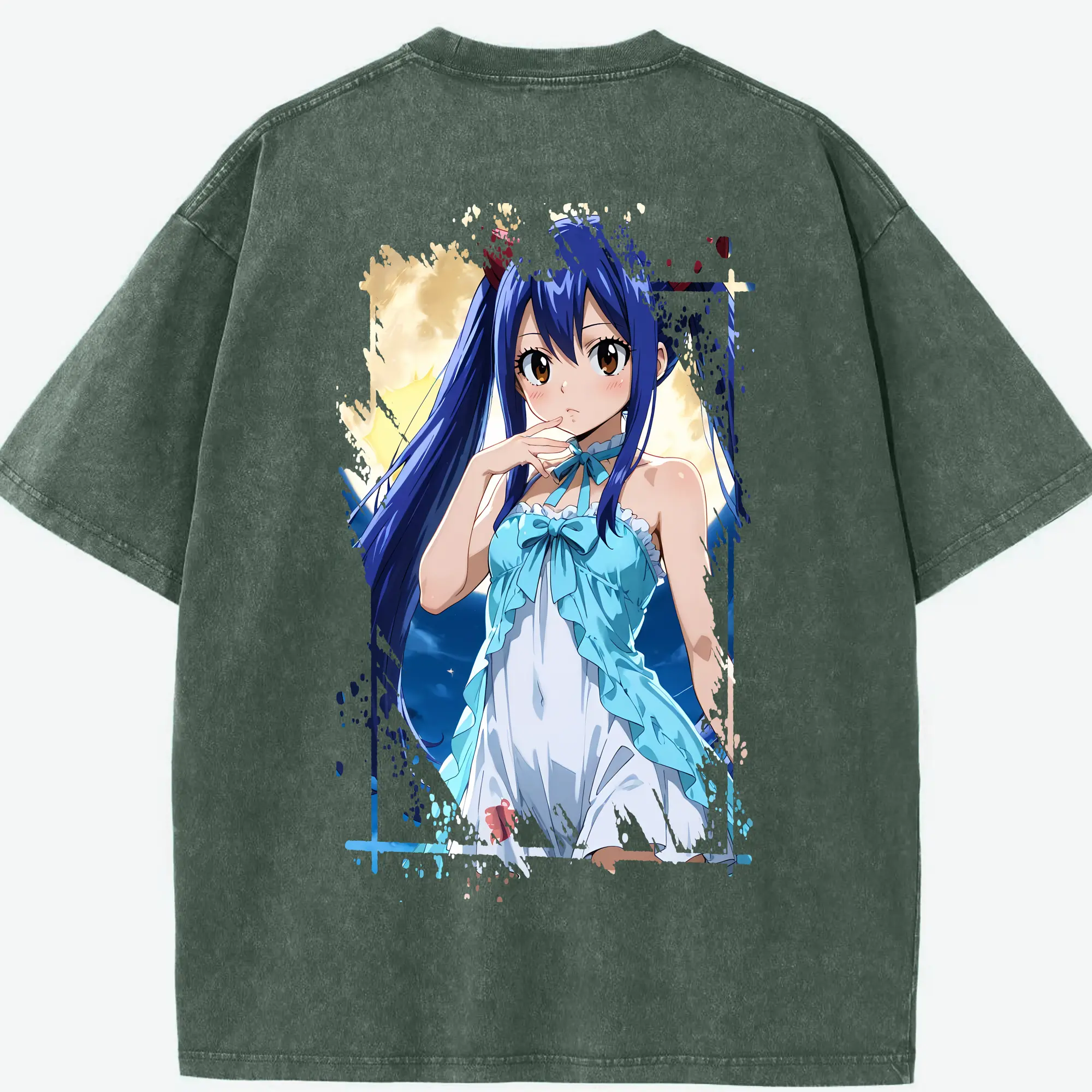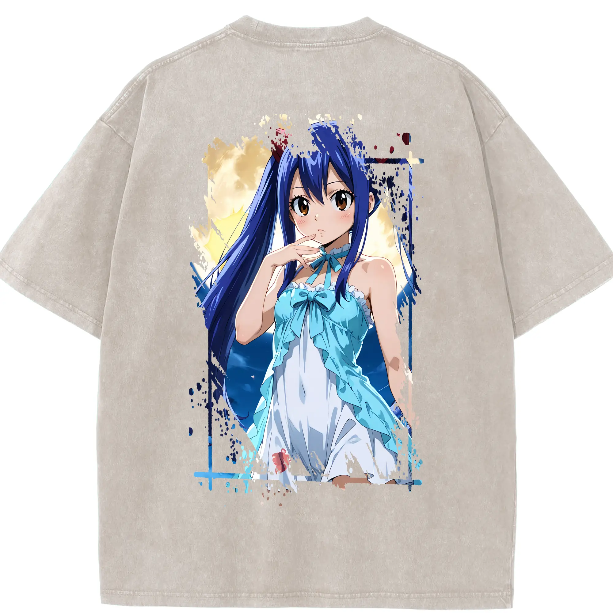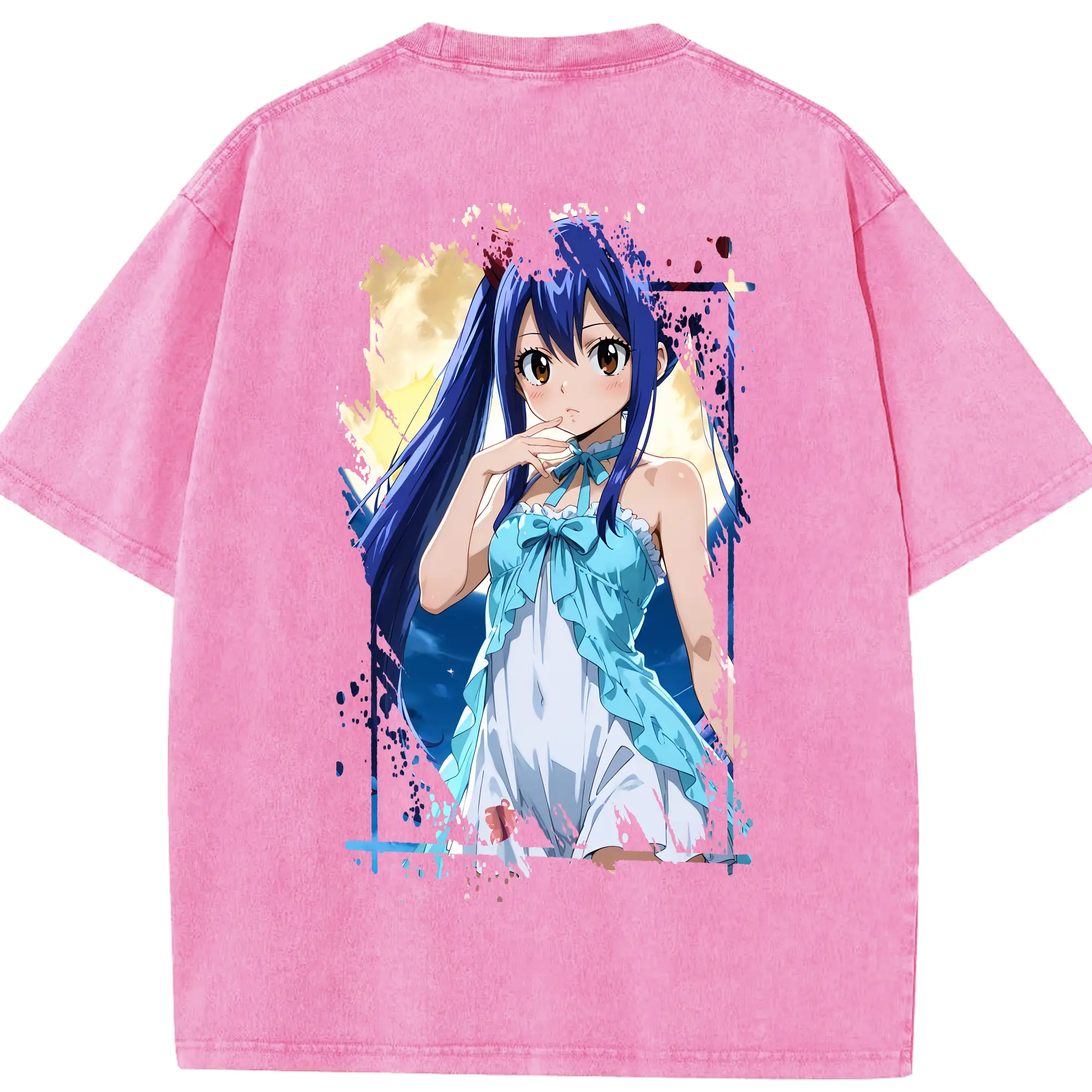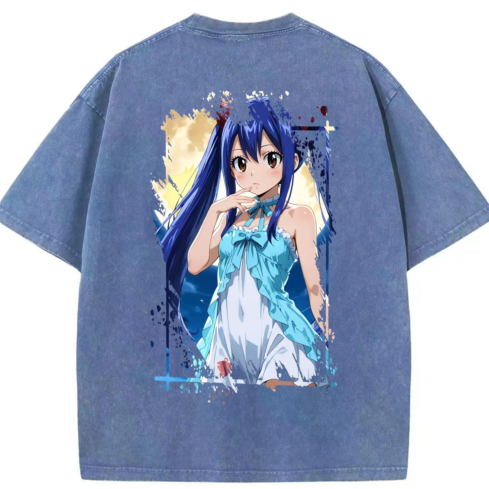 フェアリーテイル グッズ ウェンディ・マーベル - 綿100% ヴィンテージ風 半袖Tシャツ ・ フロントプリント ・ 柔らか肌触り ・ 通気性 快適 ・ スポーツ カジュアル 外出用