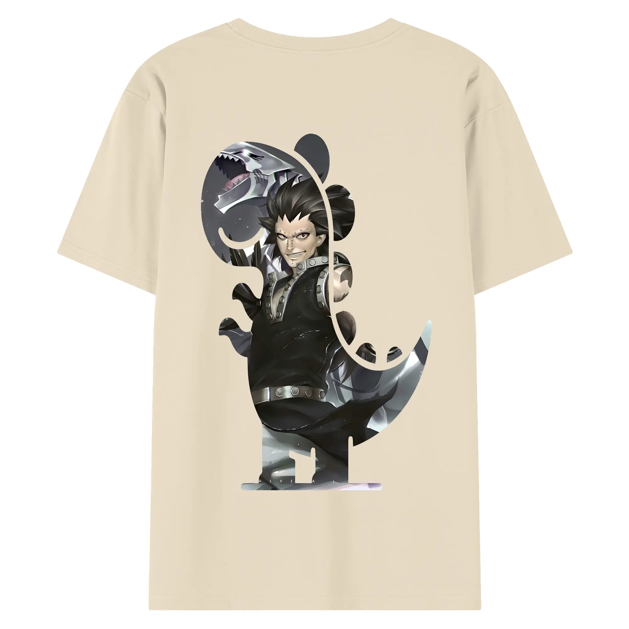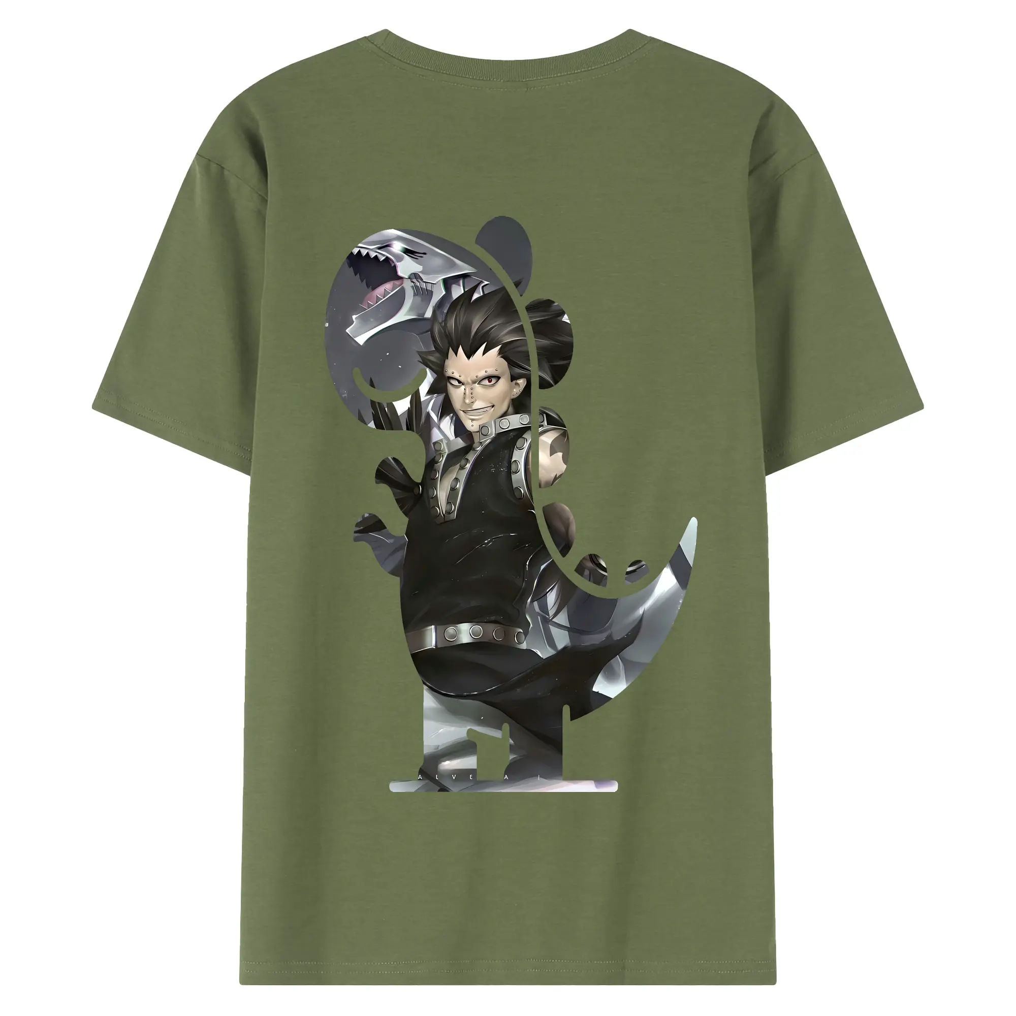フェアリーテイル グッズ ガジル・レッドフォックス - 綿100% ヴィンテージ風 半袖Tシャツ ・ 背面プリント ・ 柔らか肌触り ・ 通気性 快適 ・ スポーツ カジュアル 外出用