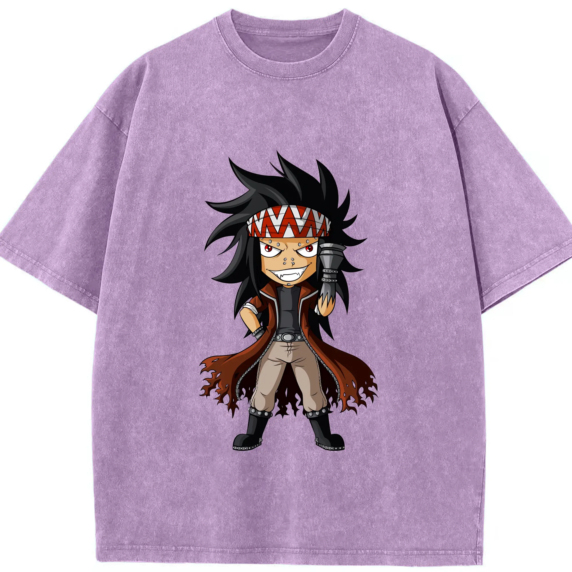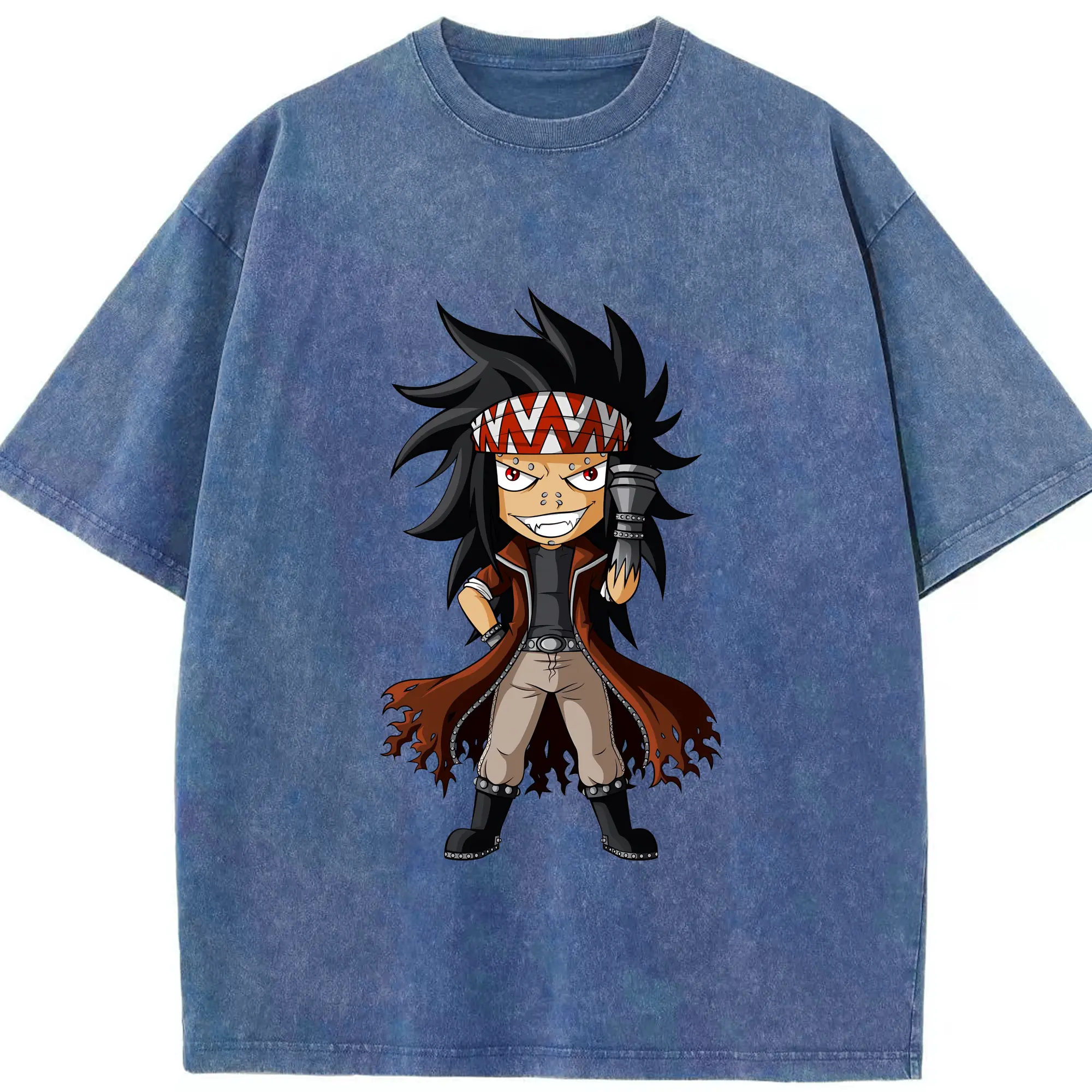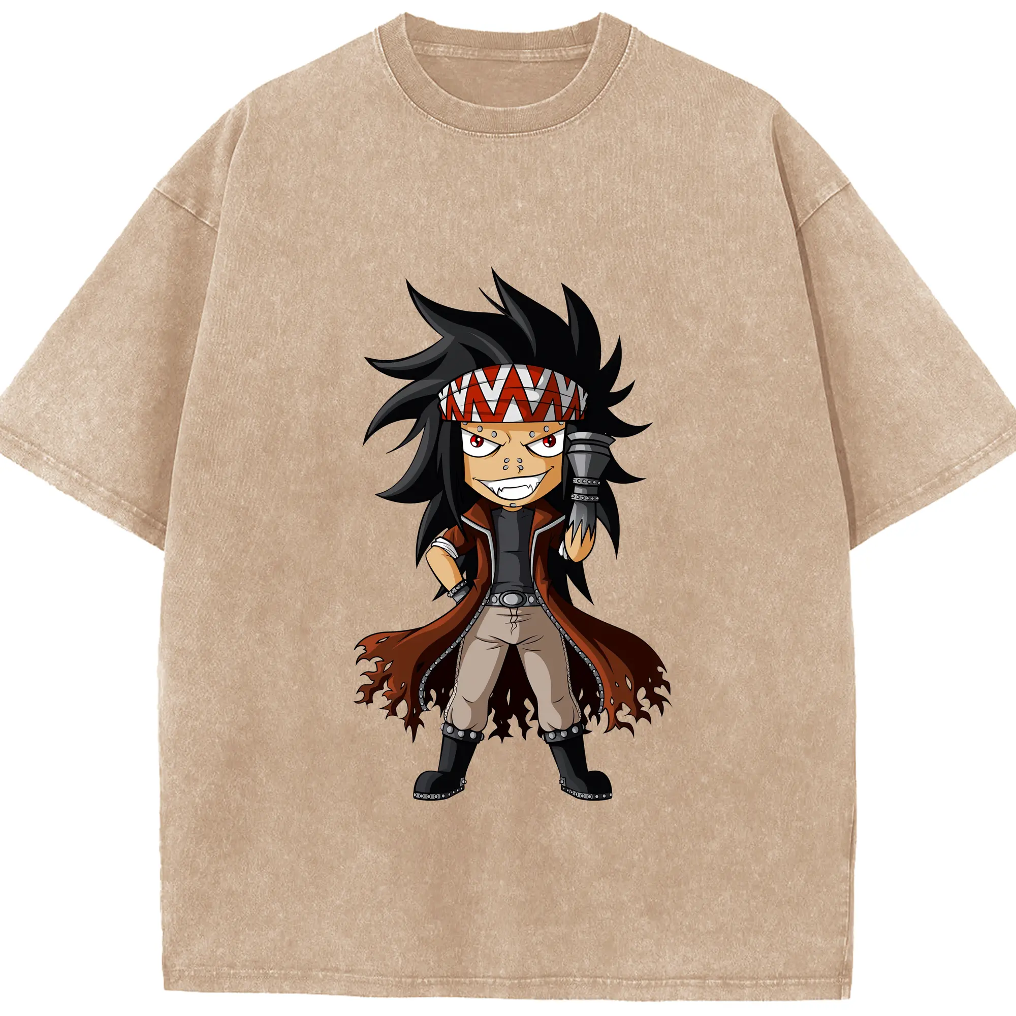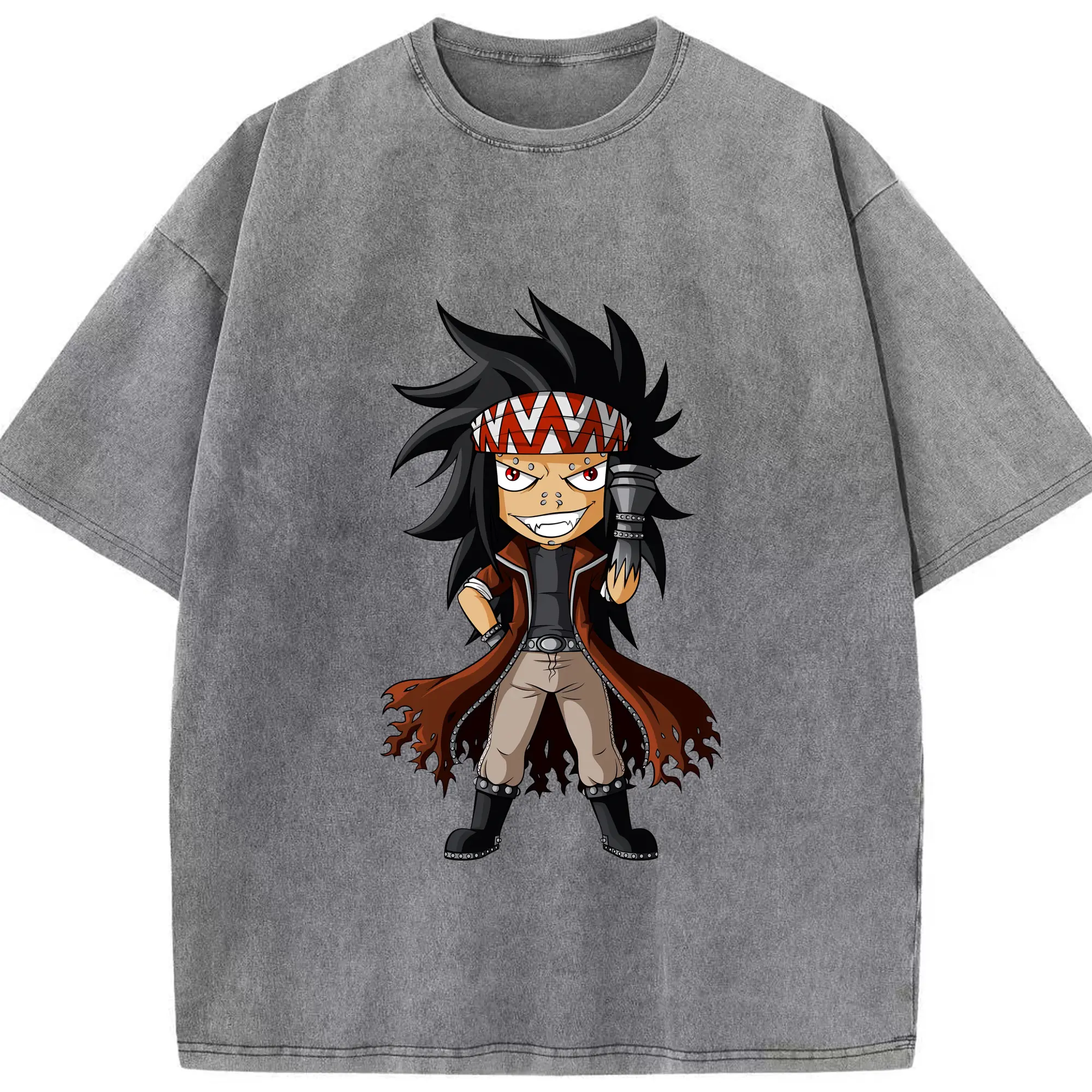 フェアリーテイル グッズ ガジル・レッドフォックス - 綿100% ヴィンテージ風 半袖Tシャツ ・ 背面プリント ・ 柔らか肌触り ・ 通気性 快適 ・ スポーツ カジュアル 外出用