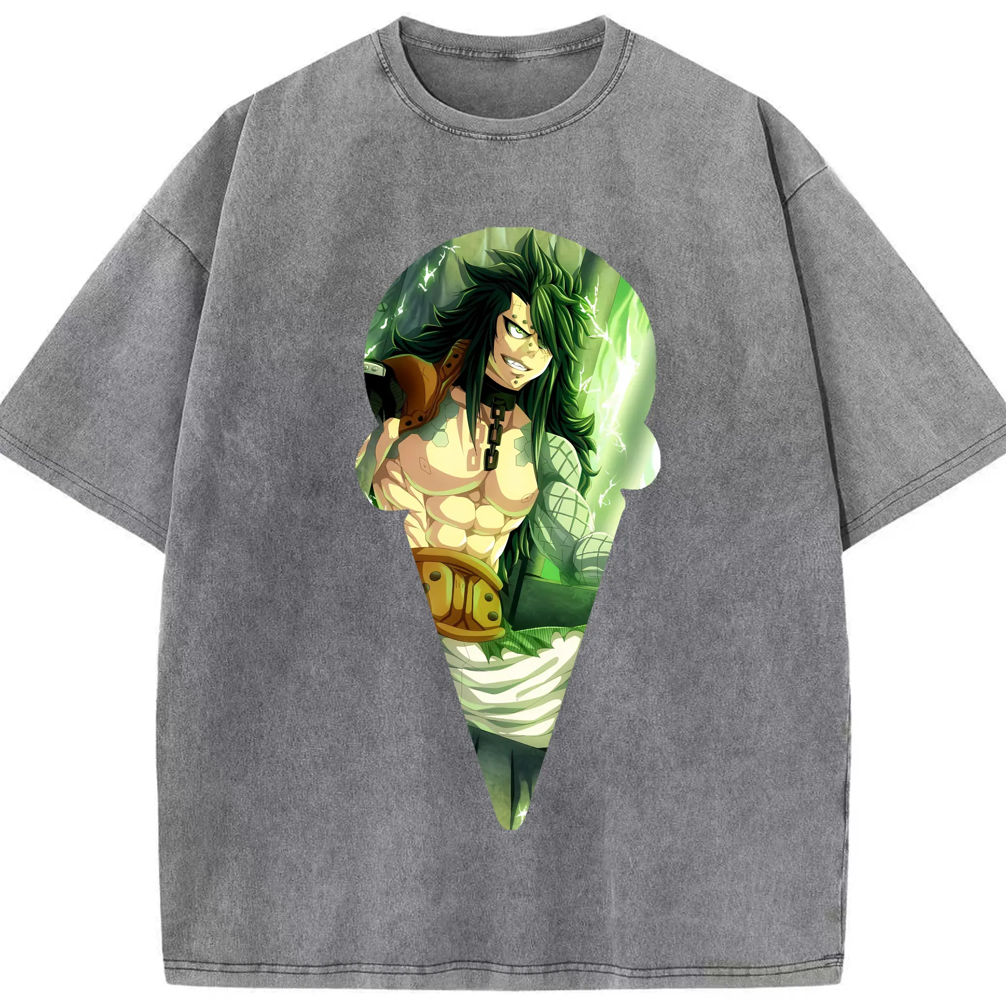フェアリーテイル グッズ ガジル・レッドフォックス - 綿100% ヴィンテージ風 半袖Tシャツ ・ 背面プリント ・ 柔らか肌触り ・ 通気性 快適 ・ スポーツ カジュアル 外出用