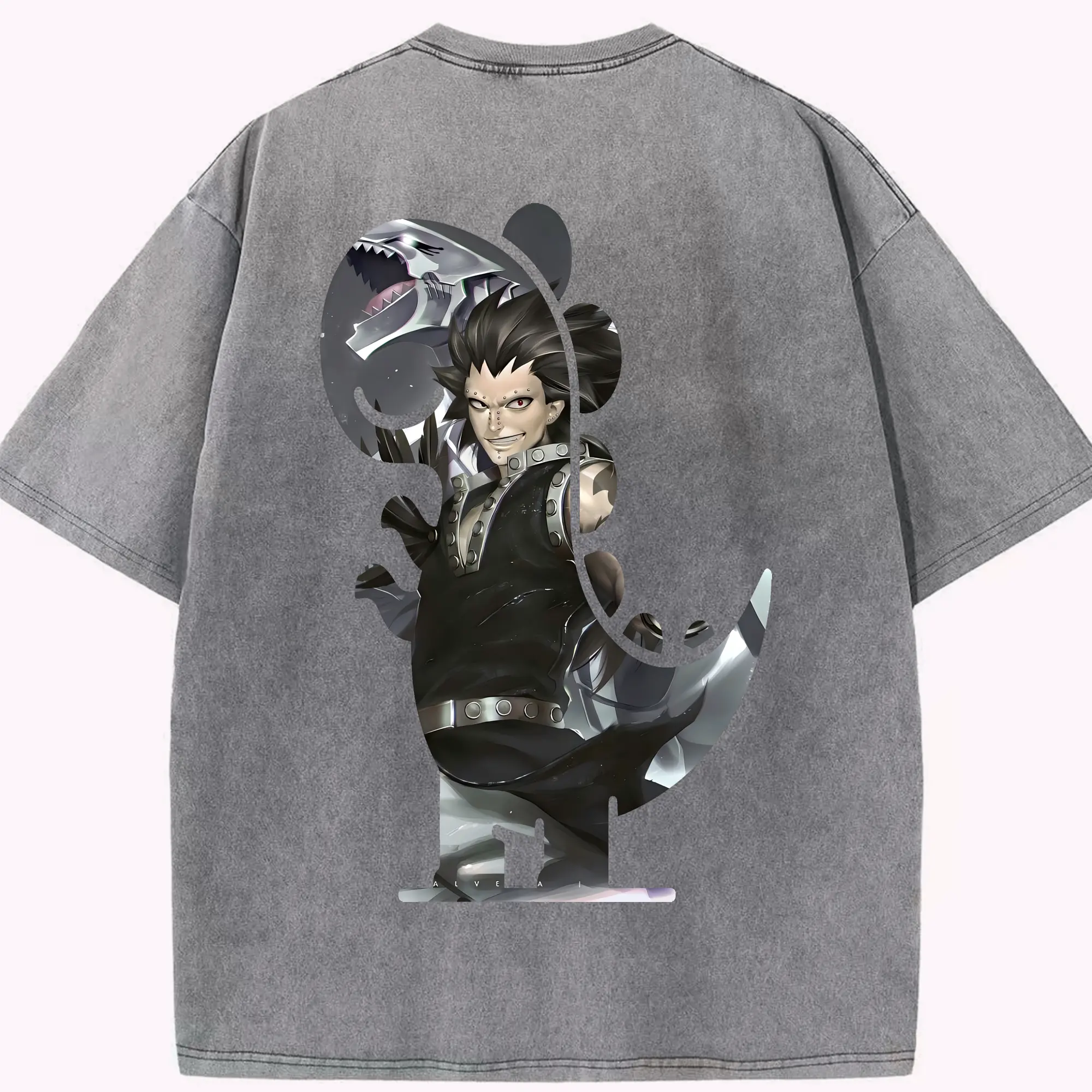 フェアリーテイル グッズ ガジル・レッドフォックス - 綿100% ヴィンテージ風 半袖Tシャツ ・ フロントプリント ・ 柔らか肌触り ・ 通気性 快適 ・ スポーツ カジュアル 外出用