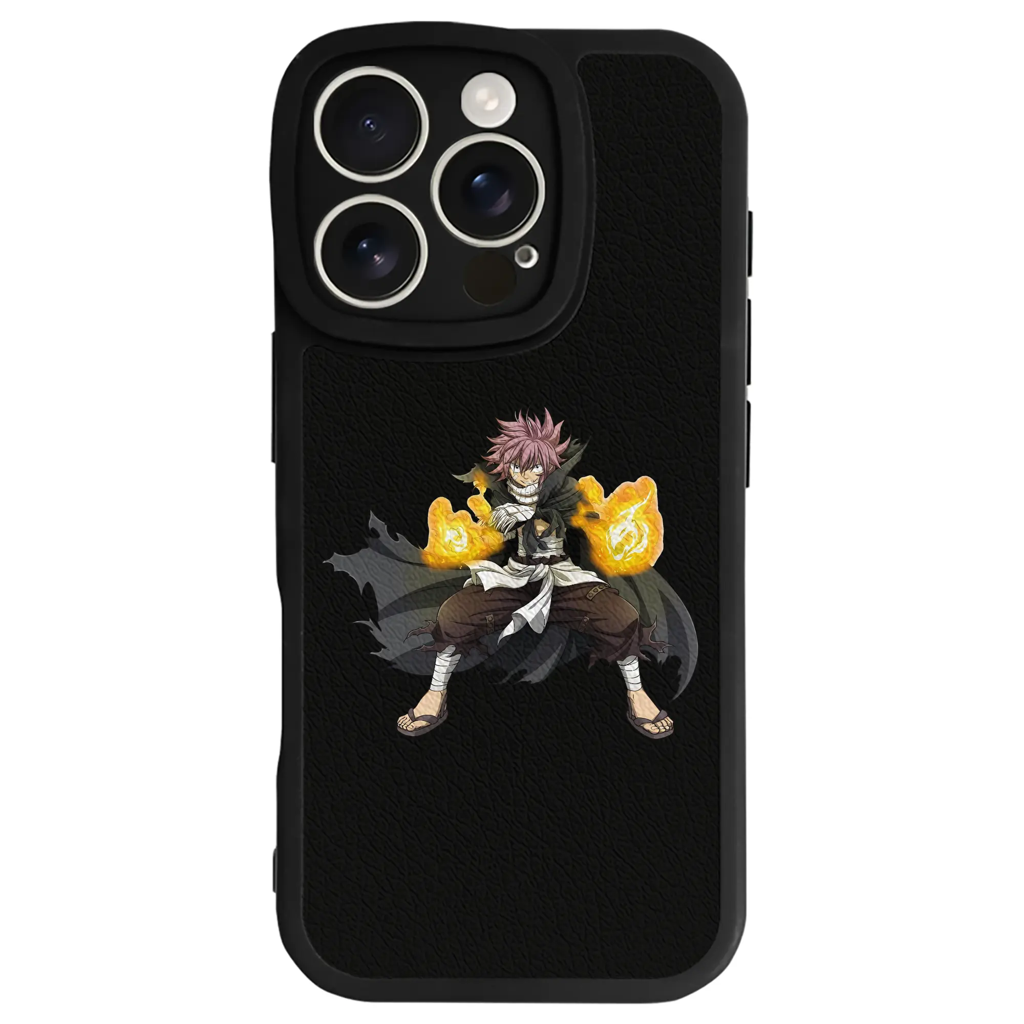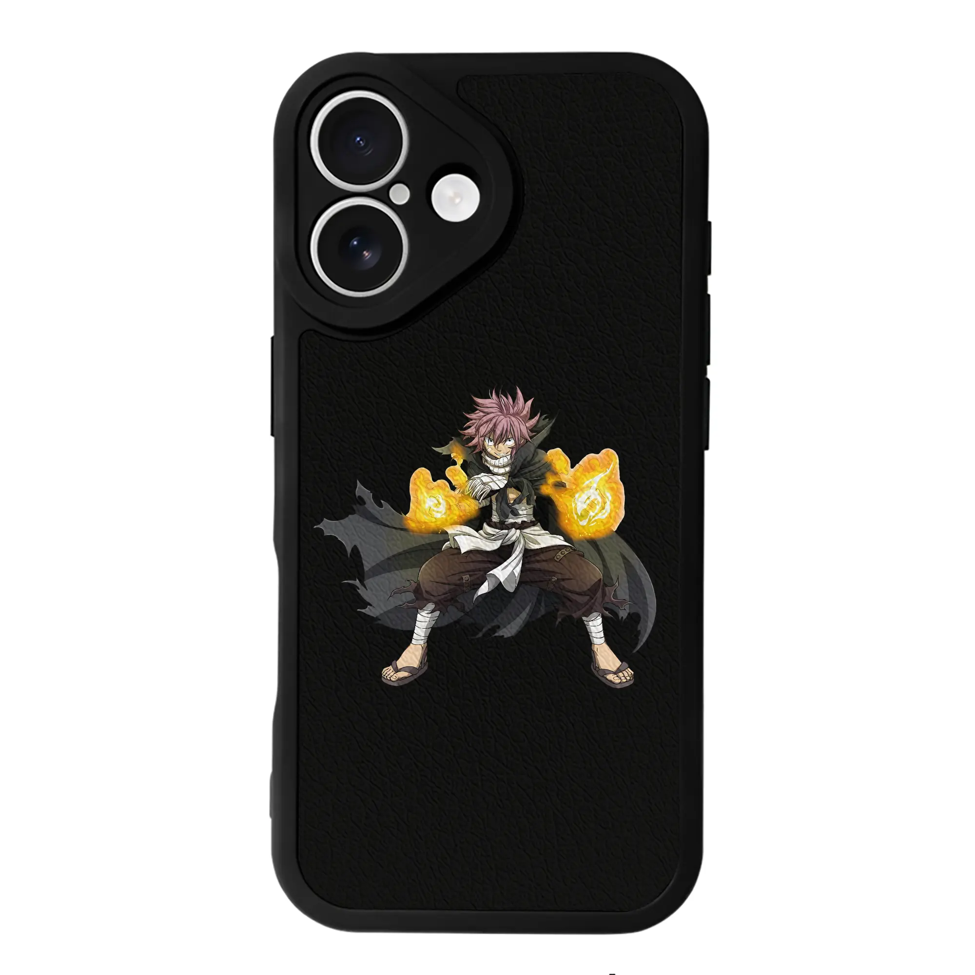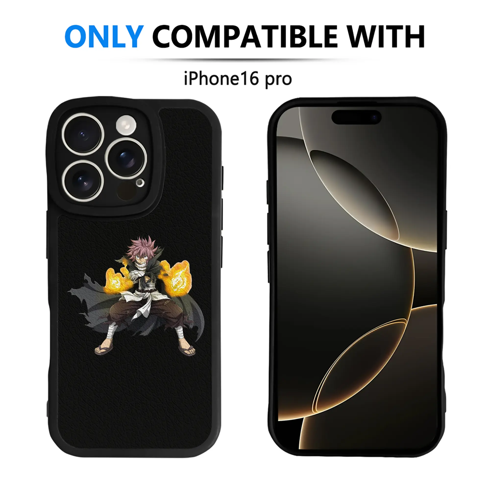 フェアリーテイル グッズ ナツ・ドラグニル - IPhone 16シリーズ対応 ・ シリコンスマホケース ・ レザー調 ・ 高精度フィット ・ 耐衝撃 ・ ワイヤレス充電対応 ・ 精密カット