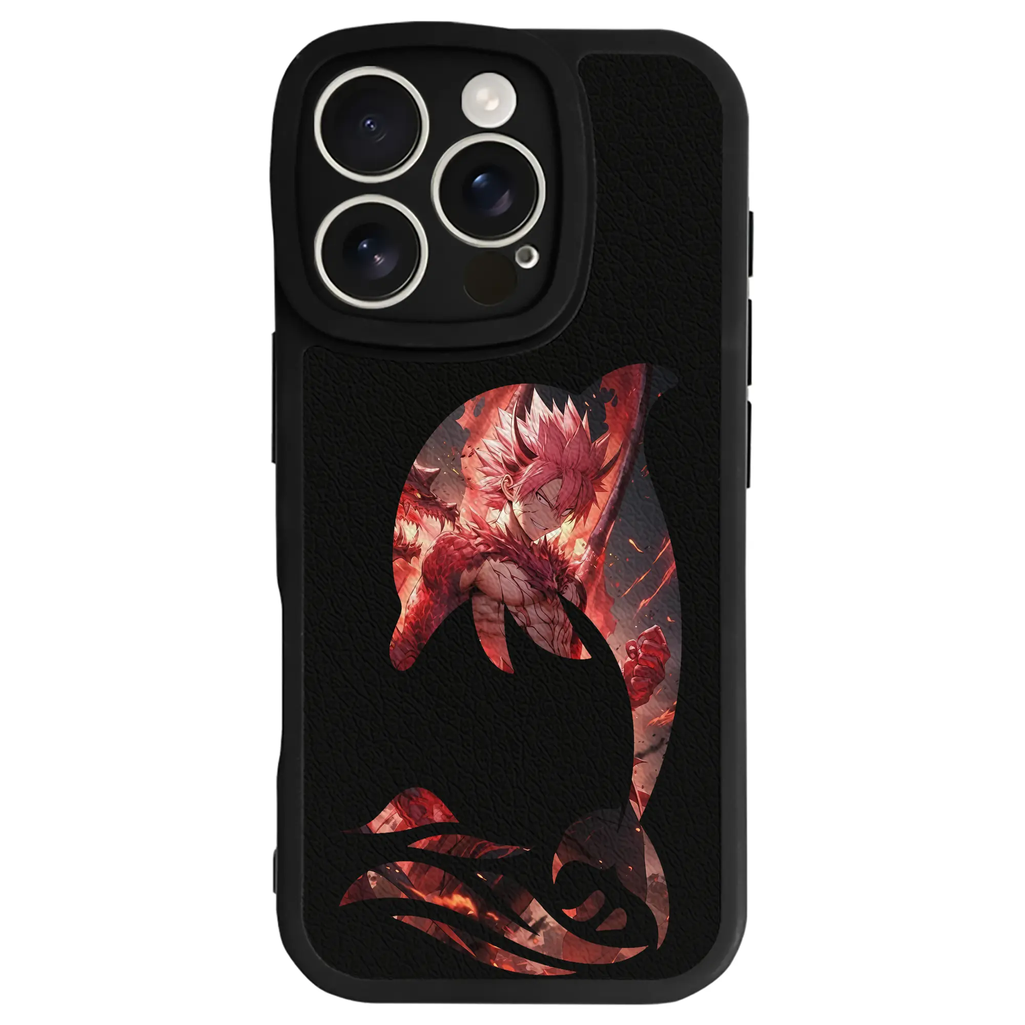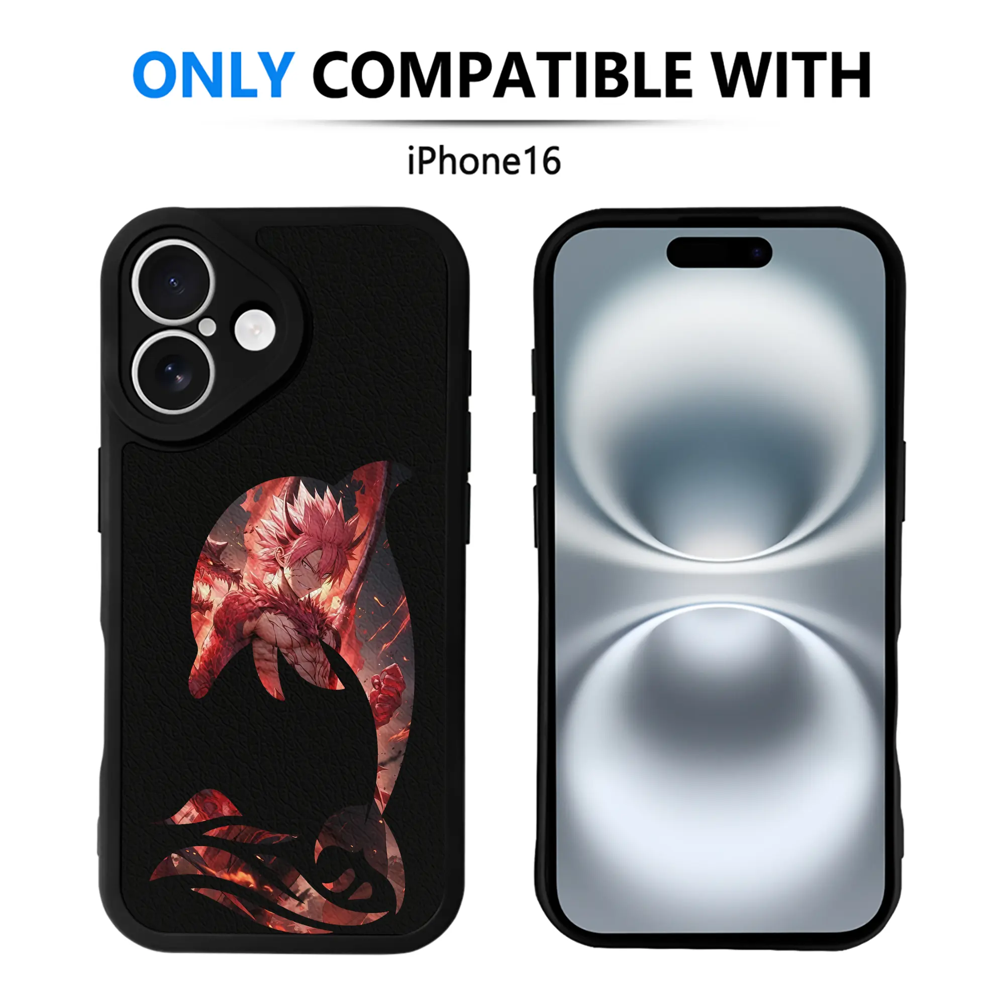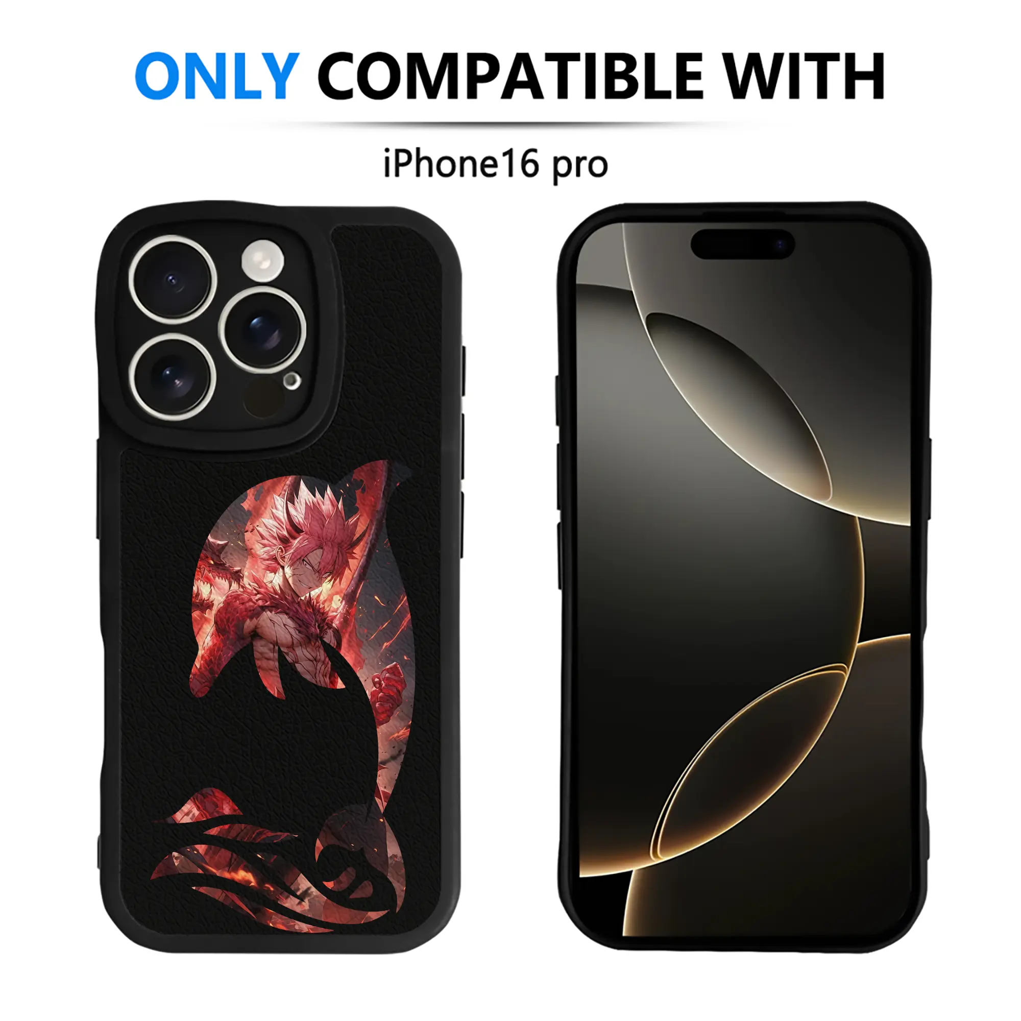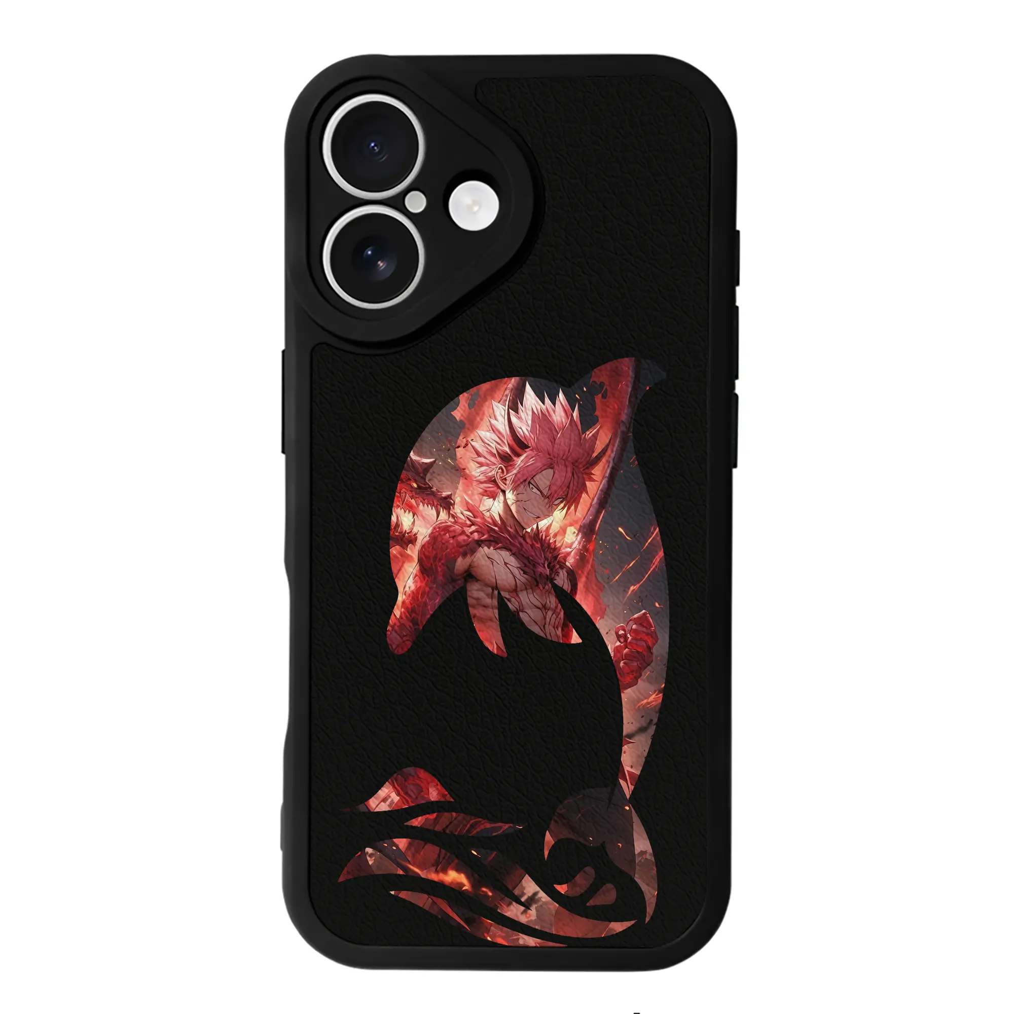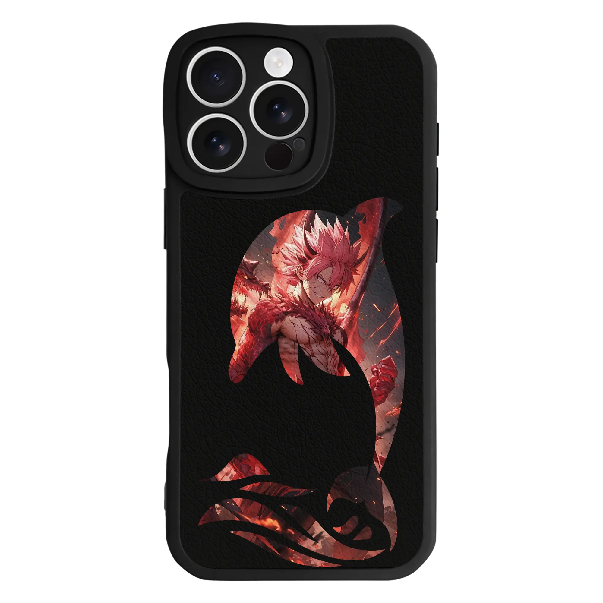 フェアリーテイル グッズ ナツ・ドラグニル - IPhone 16シリーズ対応 ・ シリコンスマホケース ・ レザー調 ・ 高精度フィット ・ 耐衝撃 ・ ワイヤレス充電対応 ・ 精密カット