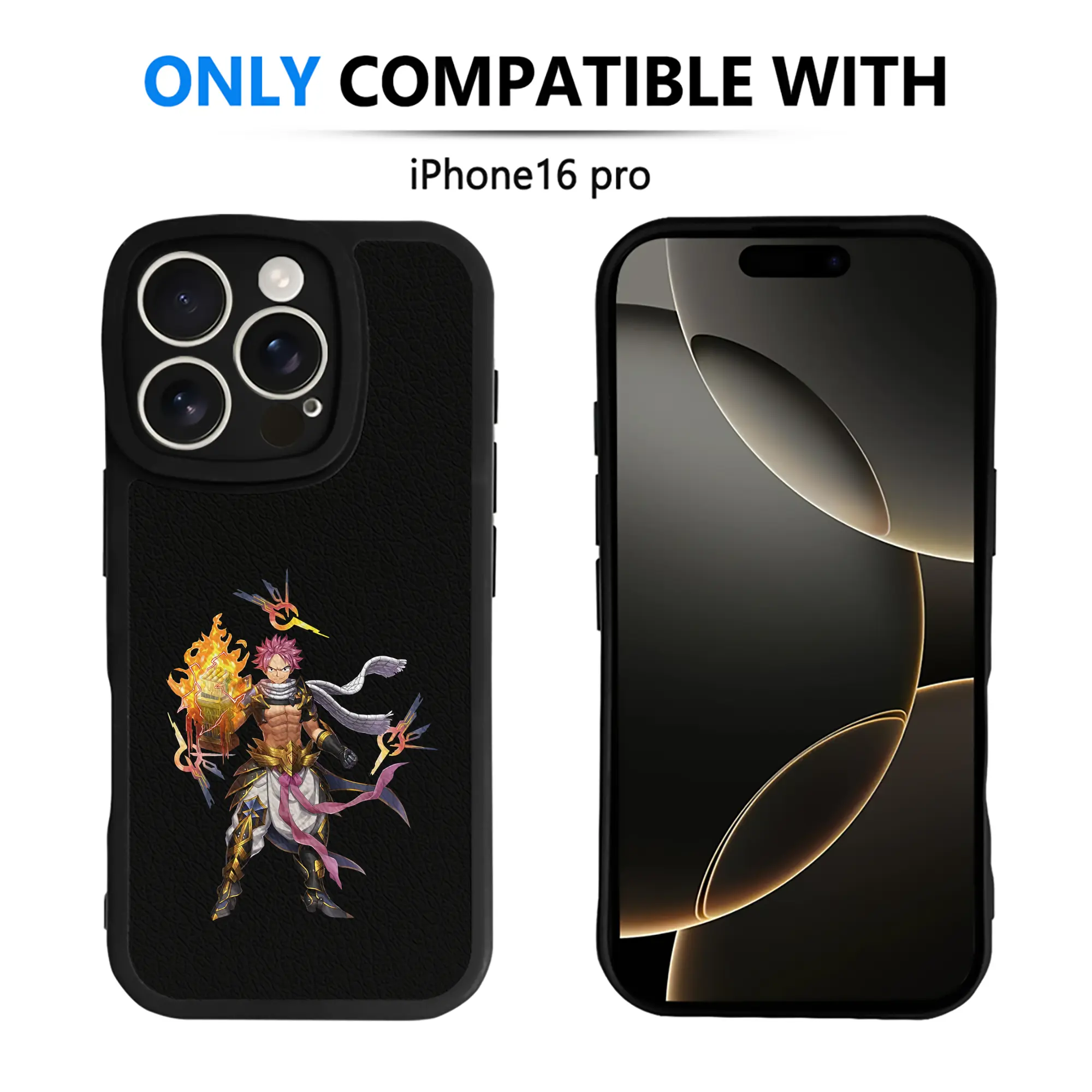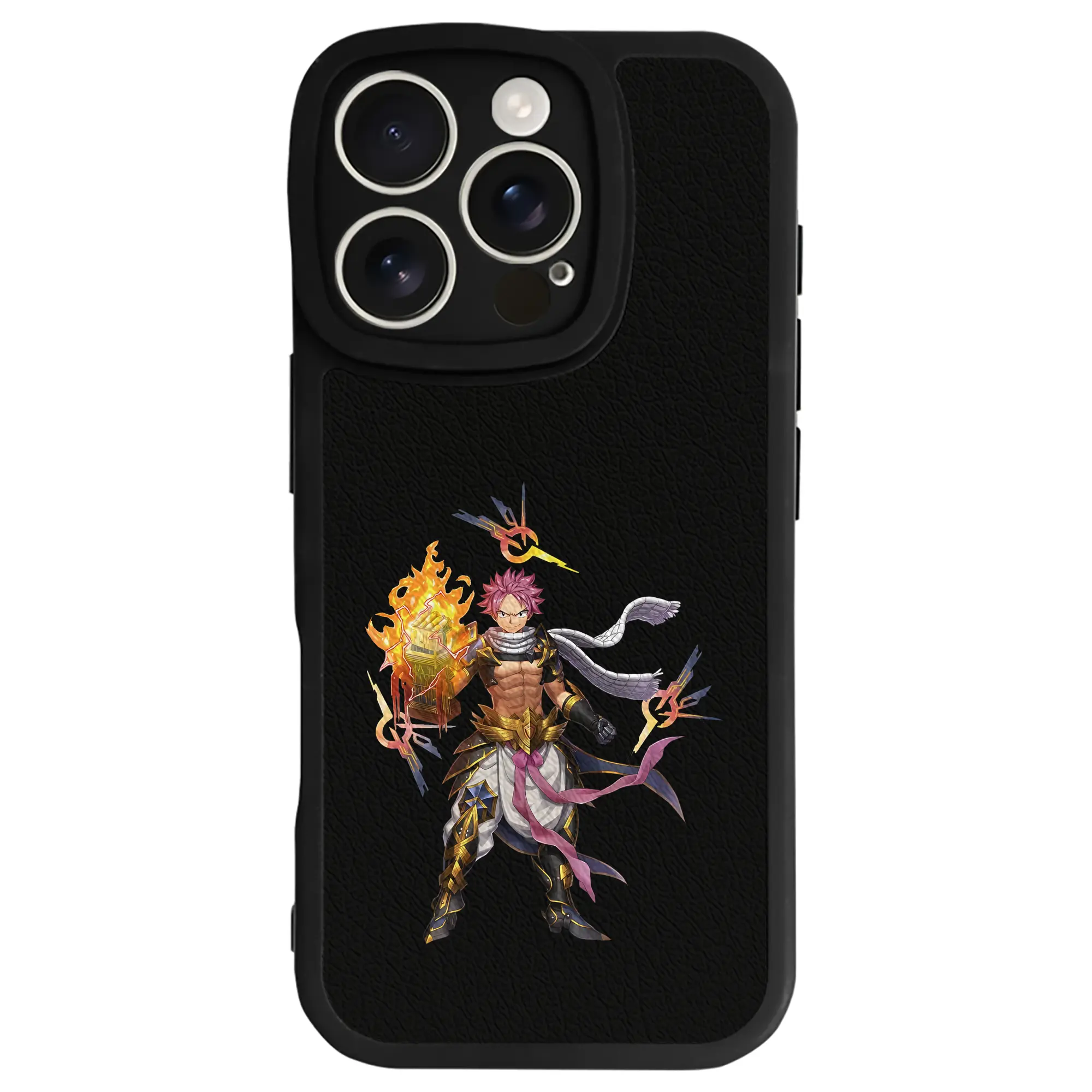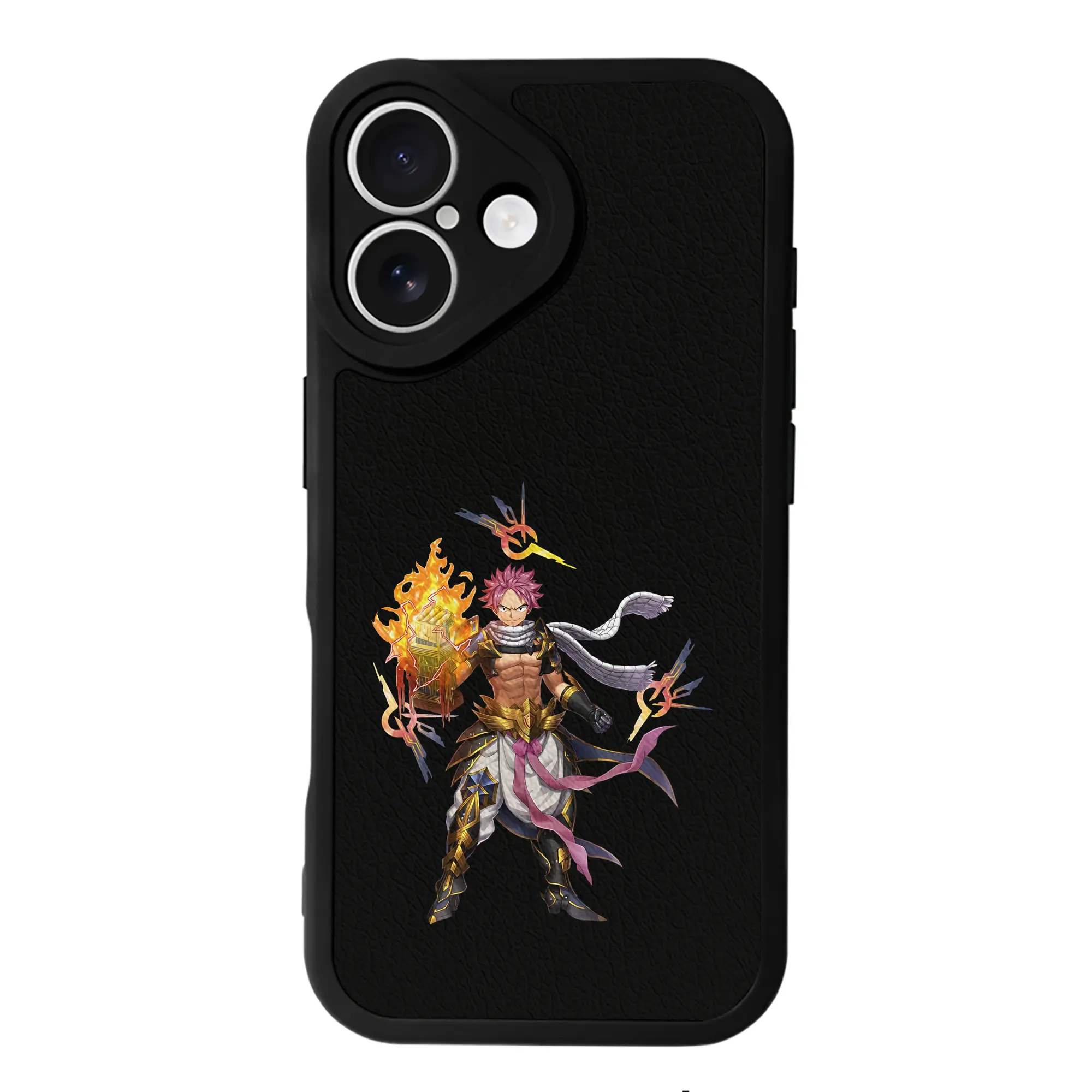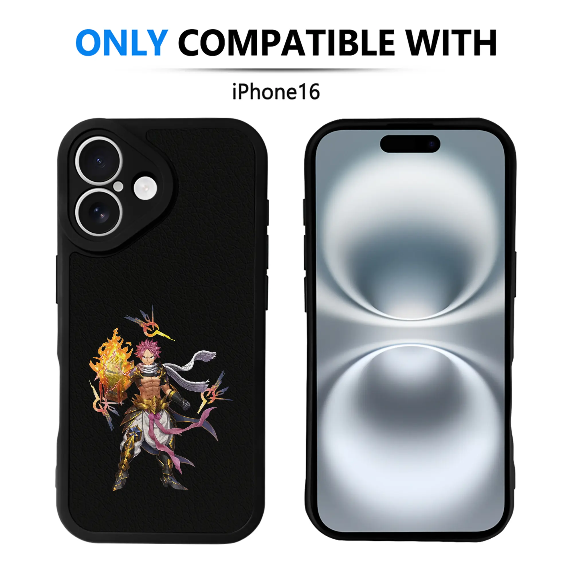 フェアリーテイル グッズ ナツ・ドラグニル - IPhone 16シリーズ対応 ・ シリコンスマホケース ・ レザー調 ・ 高精度フィット ・ 耐衝撃 ・ ワイヤレス充電対応 ・ 精密カット