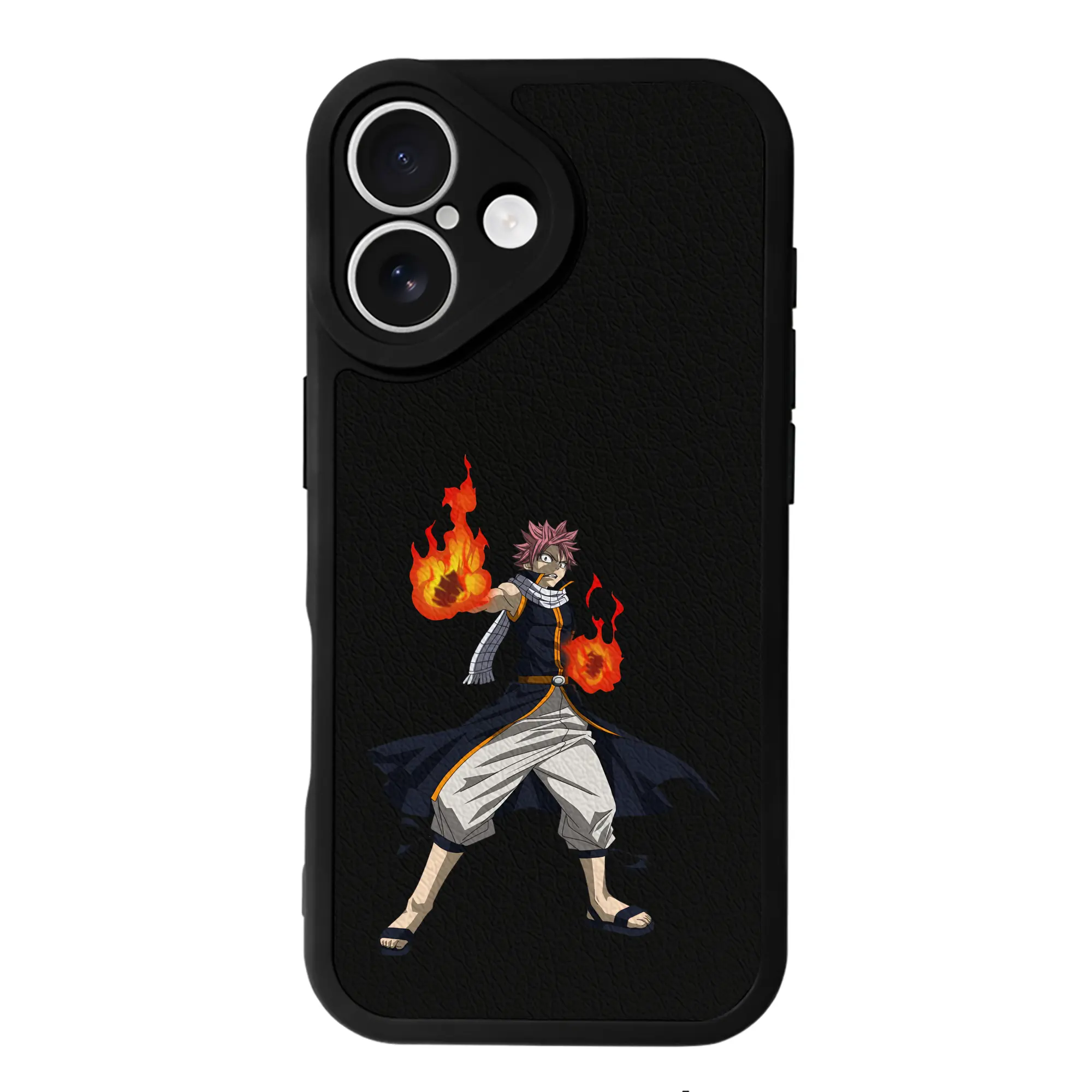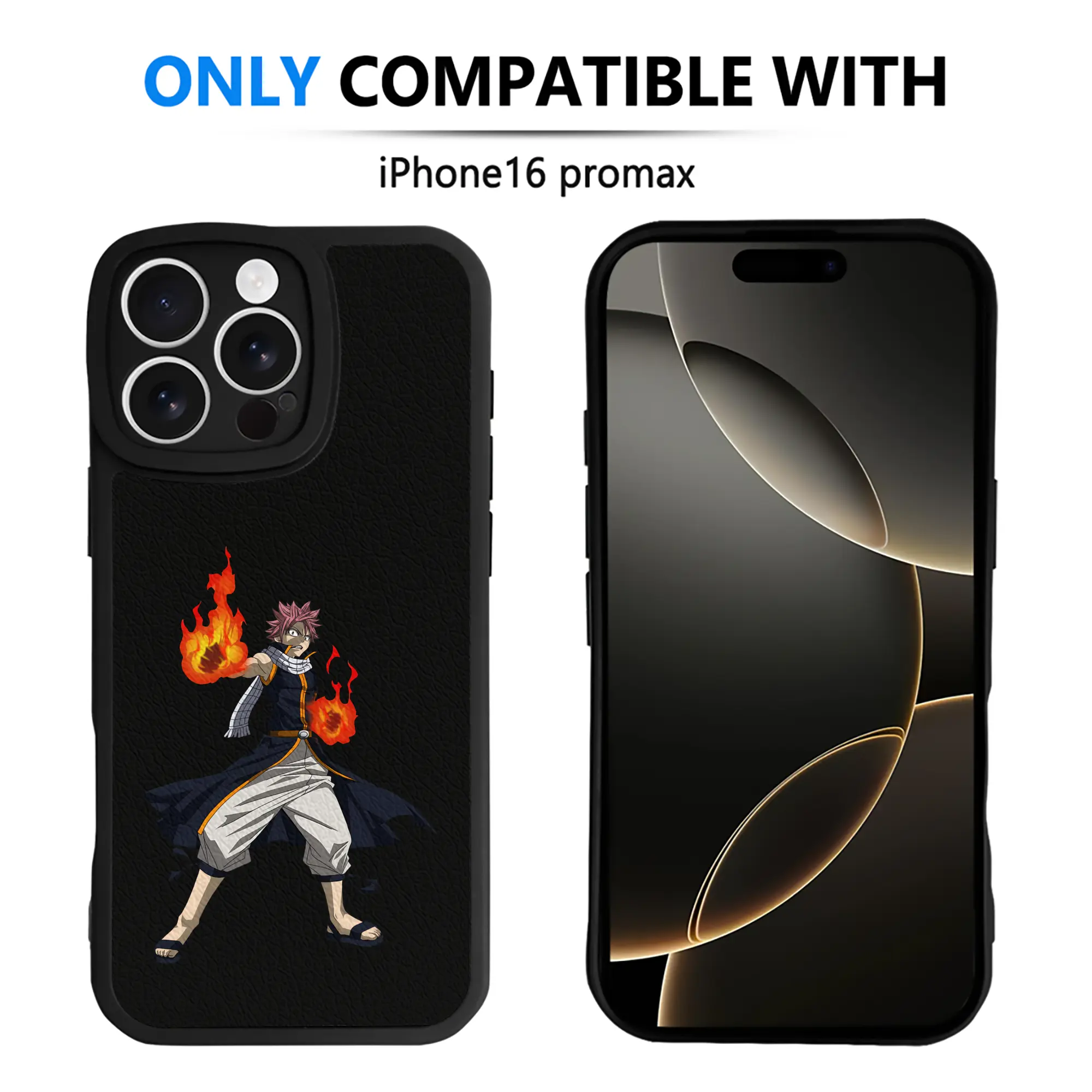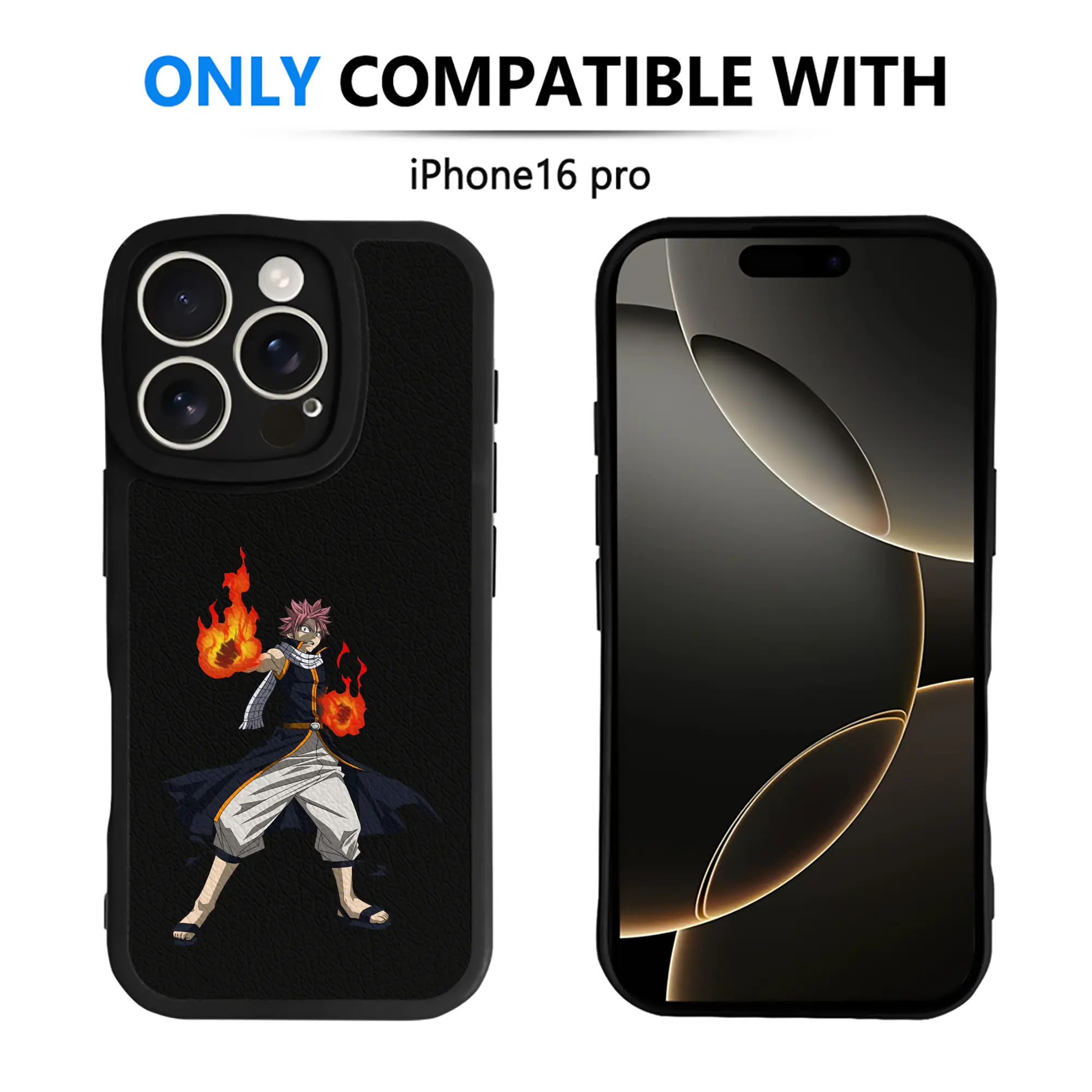 フェアリーテイル グッズ ナツ・ドラグニル - IPhone 16シリーズ対応 ・ シリコンスマホケース ・ レザー調 ・ 高精度フィット ・ 耐衝撃 ・ ワイヤレス充電対応 ・ 精密カット