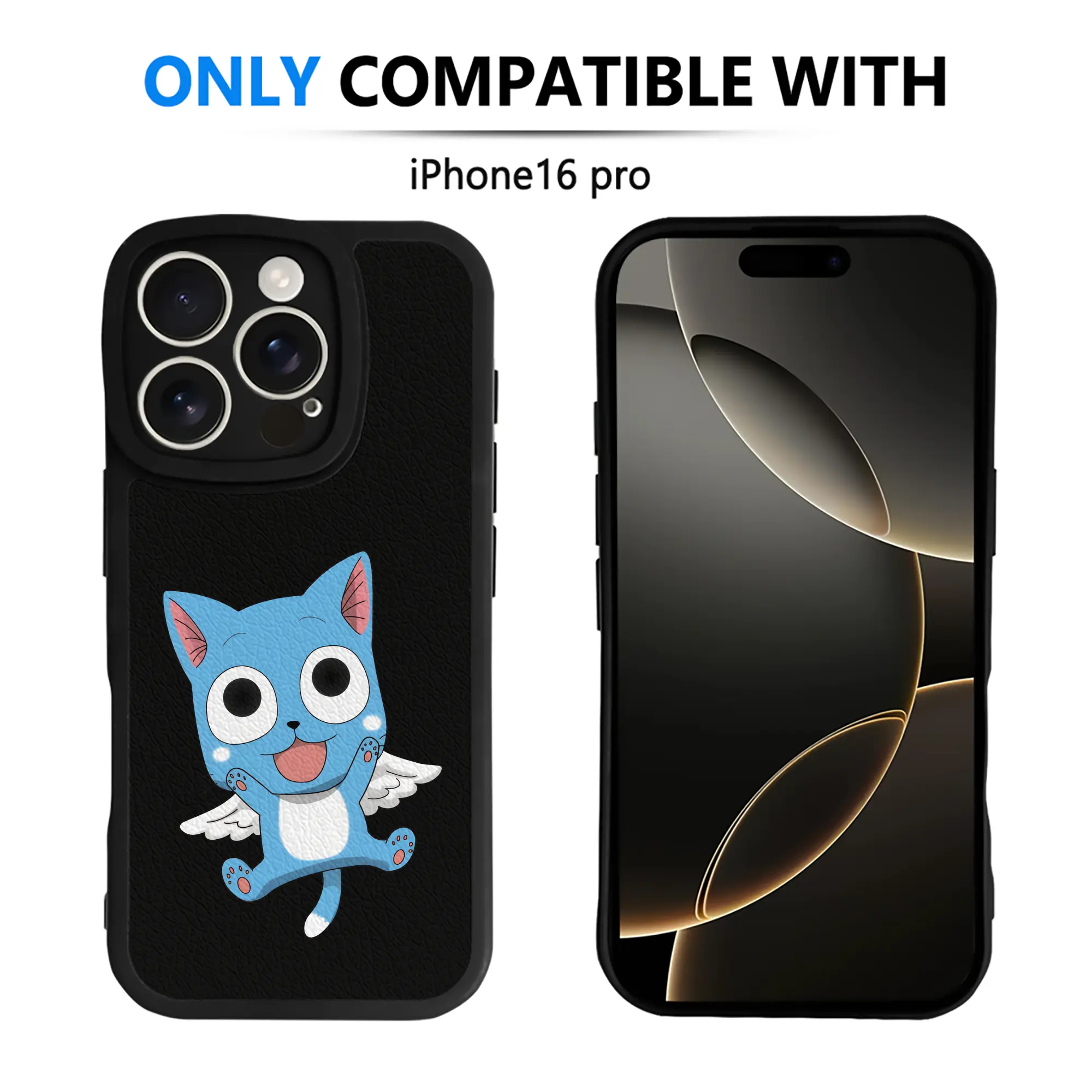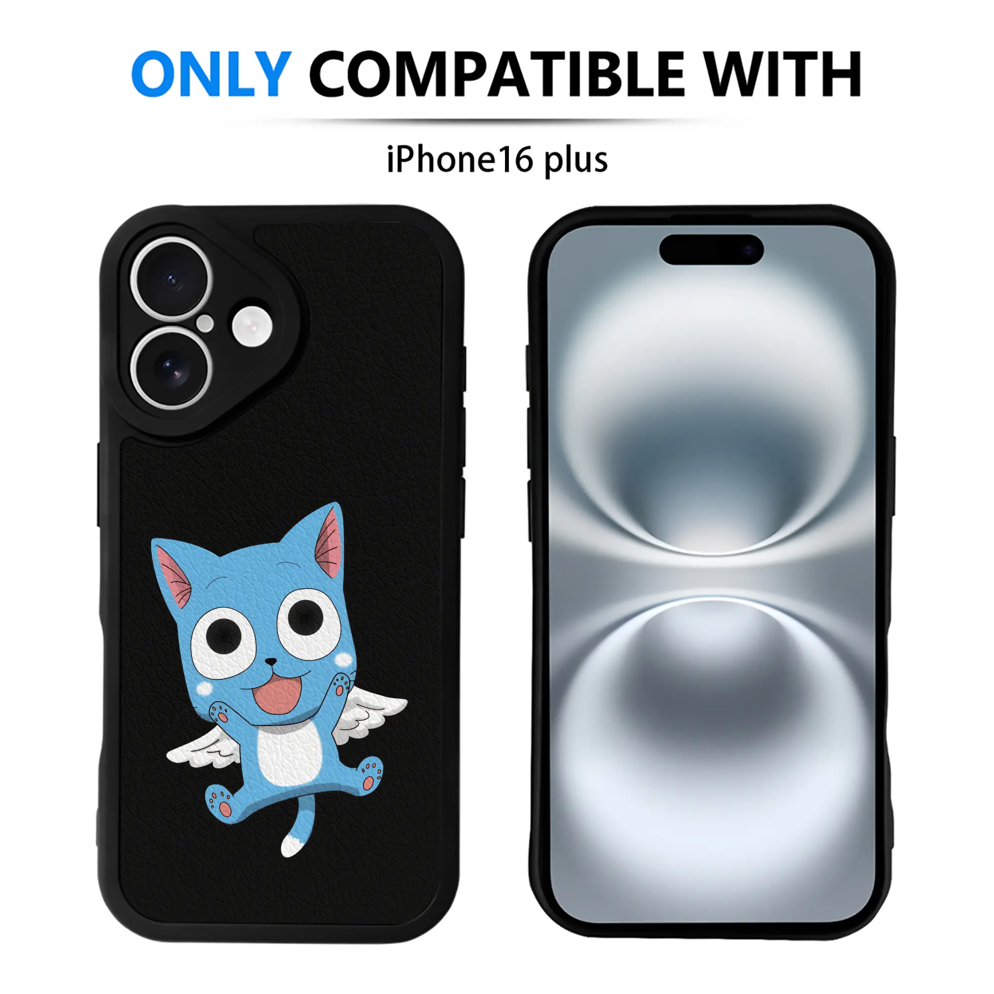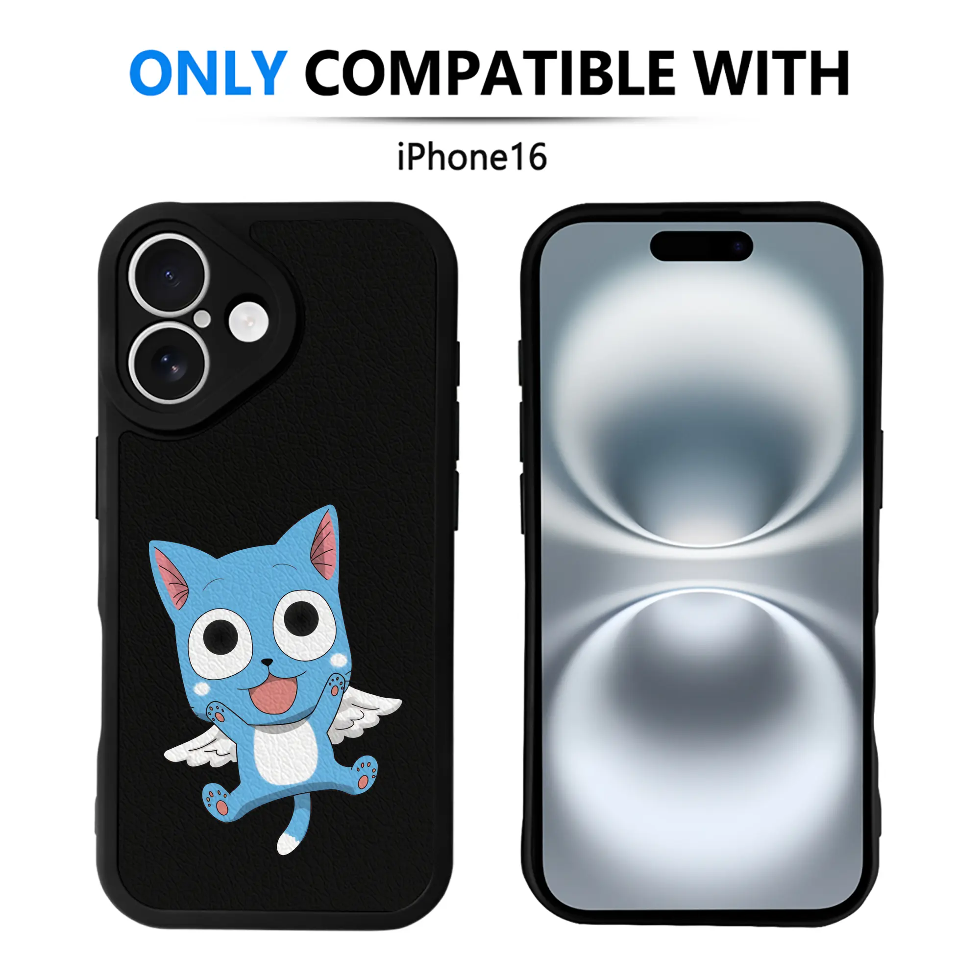 フェアリーテイル グッズ ハッピー - IPhone 16シリーズ対応 ・ シリコンスマホケース ・ レザー調 ・ 高精度フィット ・ 耐衝撃 ・ ワイヤレス充電対応 ・ 精密カット