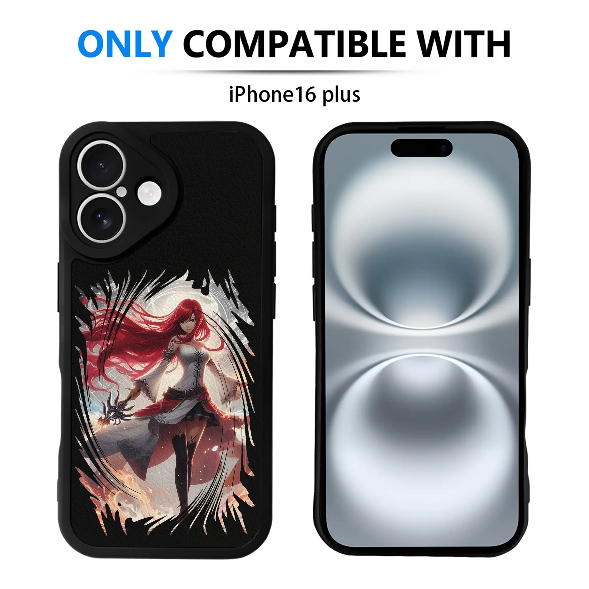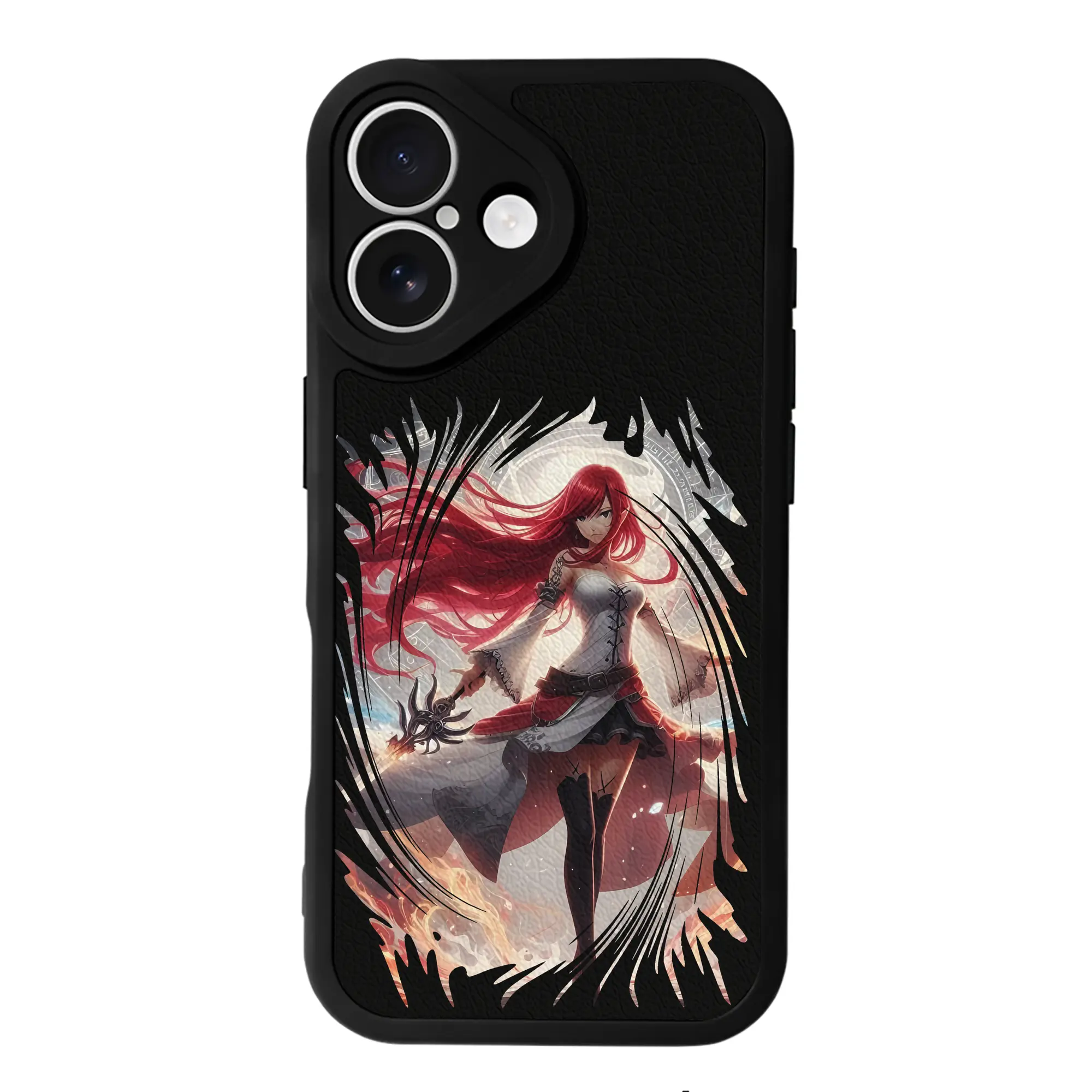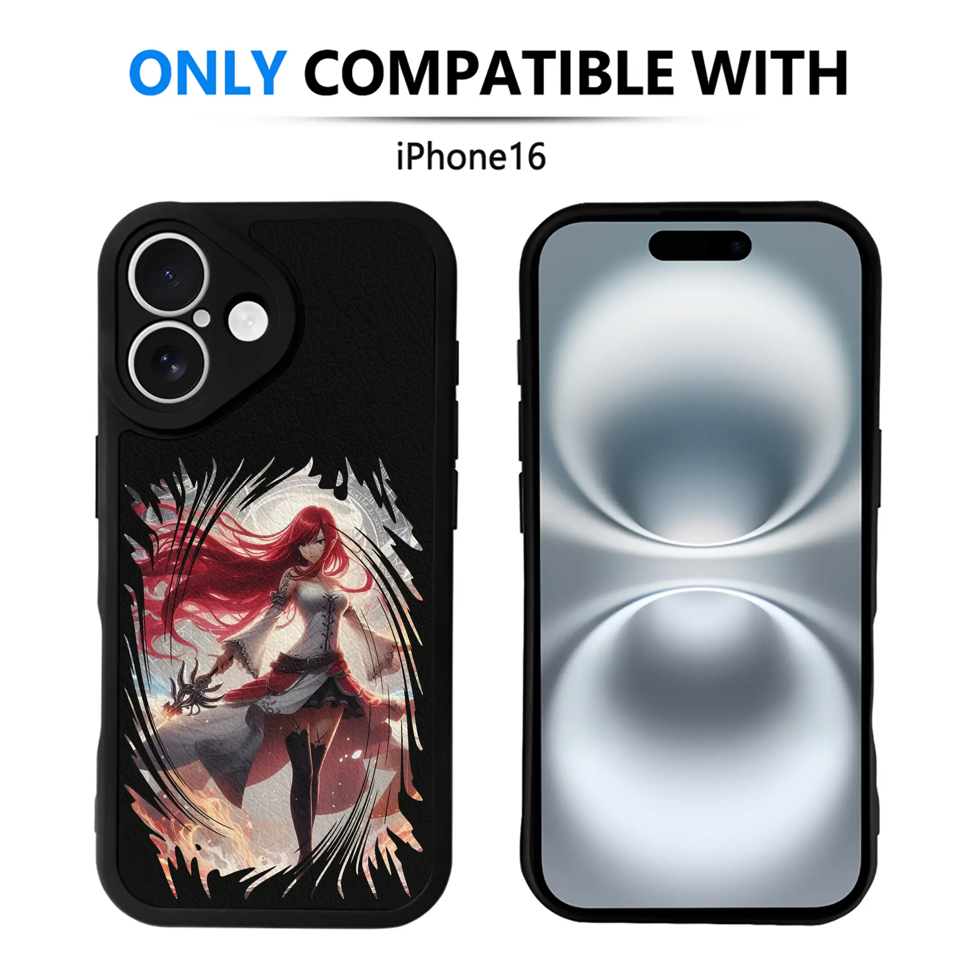 フェアリーテイル グッズ エルザ・スカーレット - IPhone 16シリーズ対応 ・ シリコンスマホケース ・ レザー調 ・ 高精度フィット ・ 耐衝撃 ・ ワイヤレス充電対応 ・ 精密カット