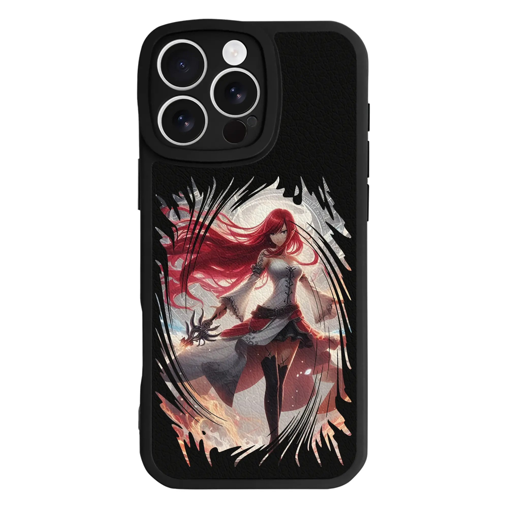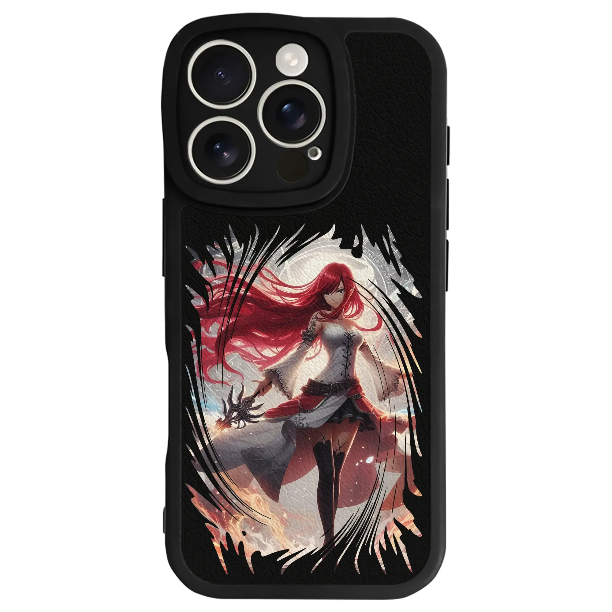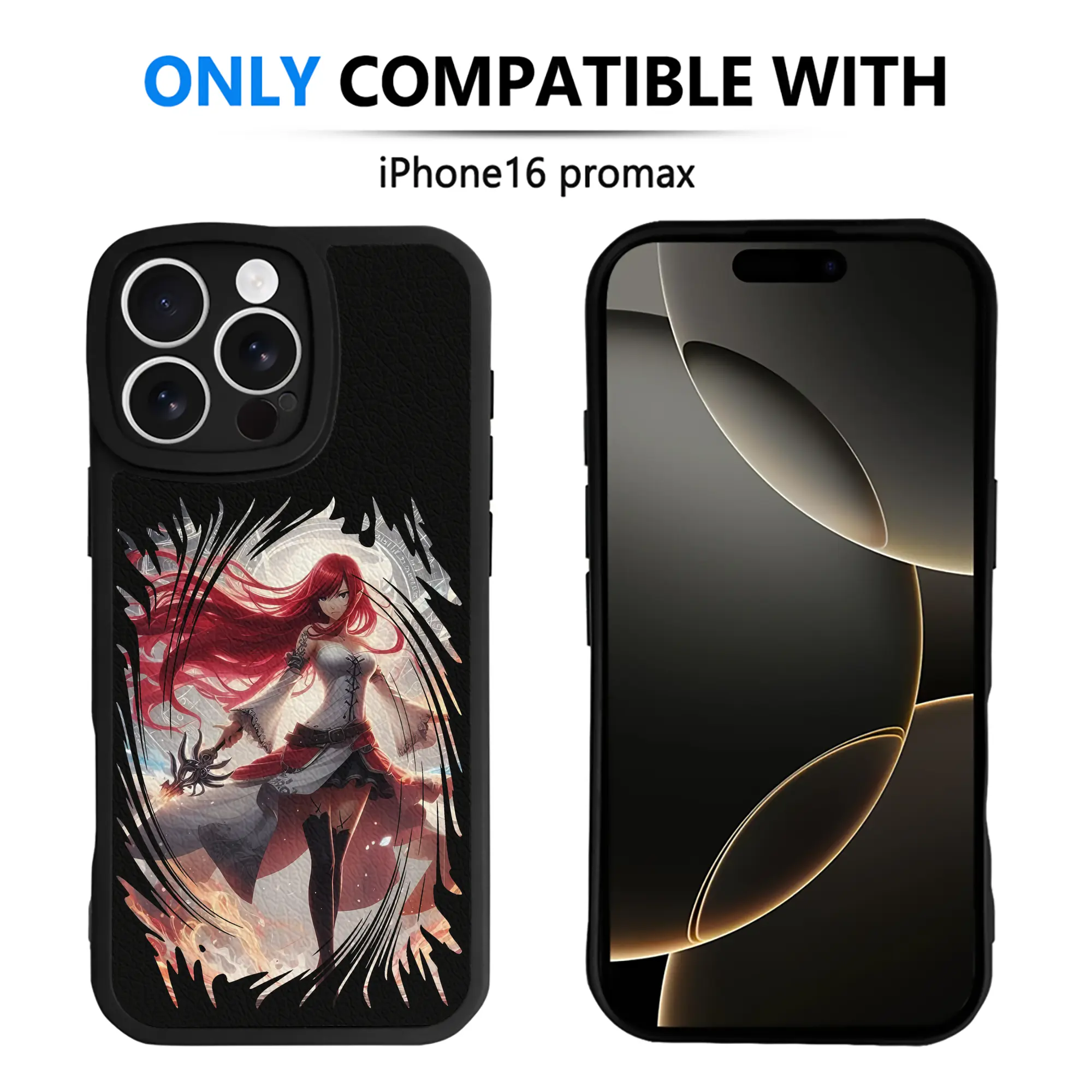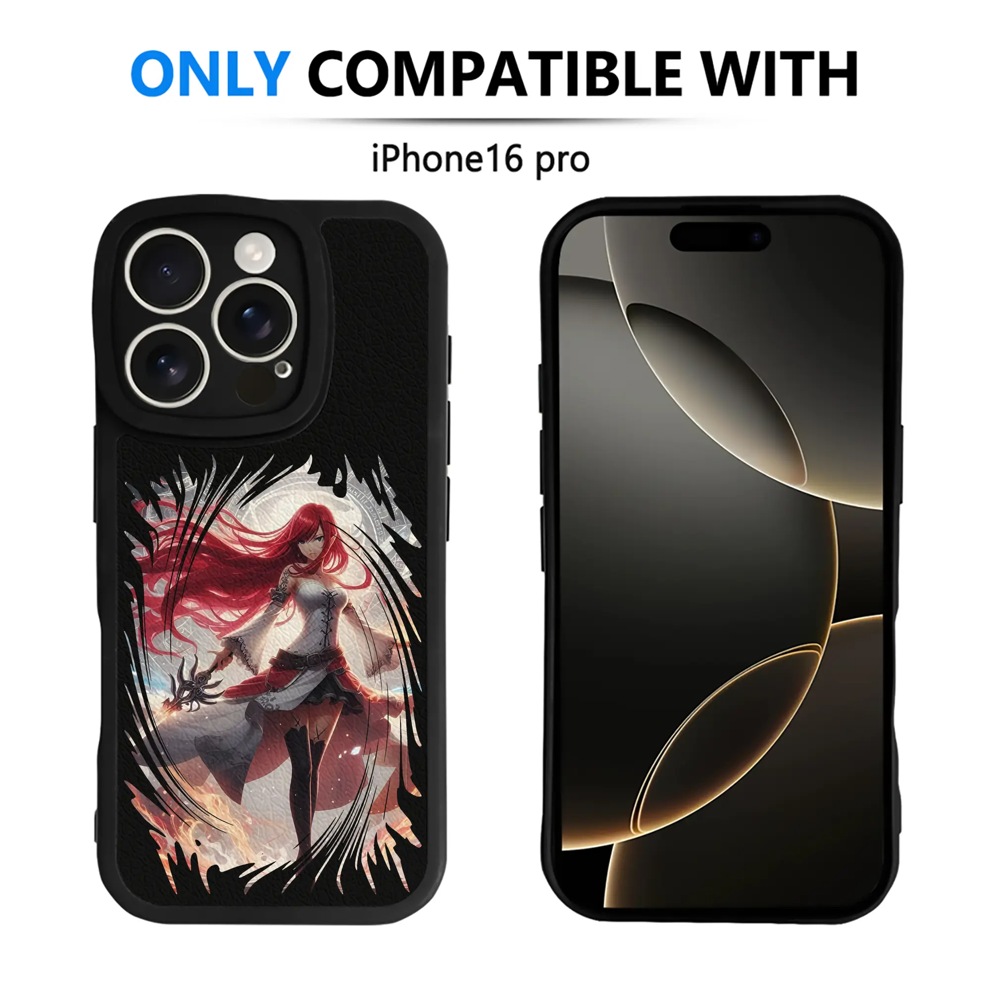 フェアリーテイル グッズ エルザ・スカーレット - IPhone 16シリーズ対応 ・ シリコンスマホケース ・ レザー調 ・ 高精度フィット ・ 耐衝撃 ・ ワイヤレス充電対応 ・ 精密カット