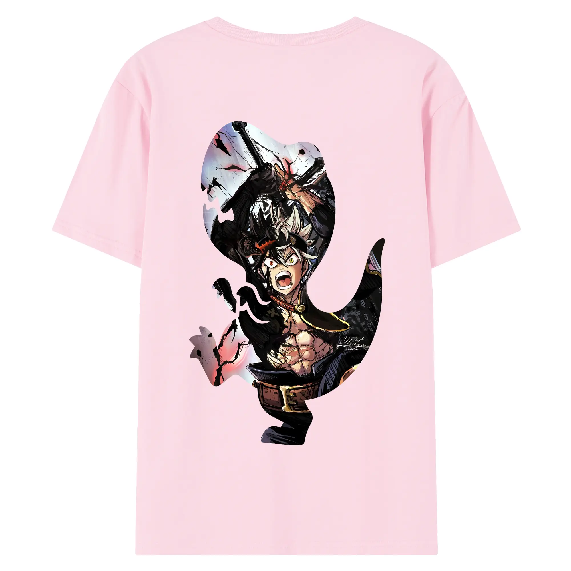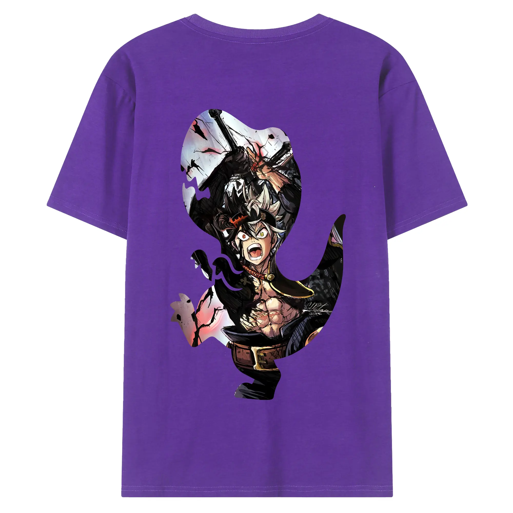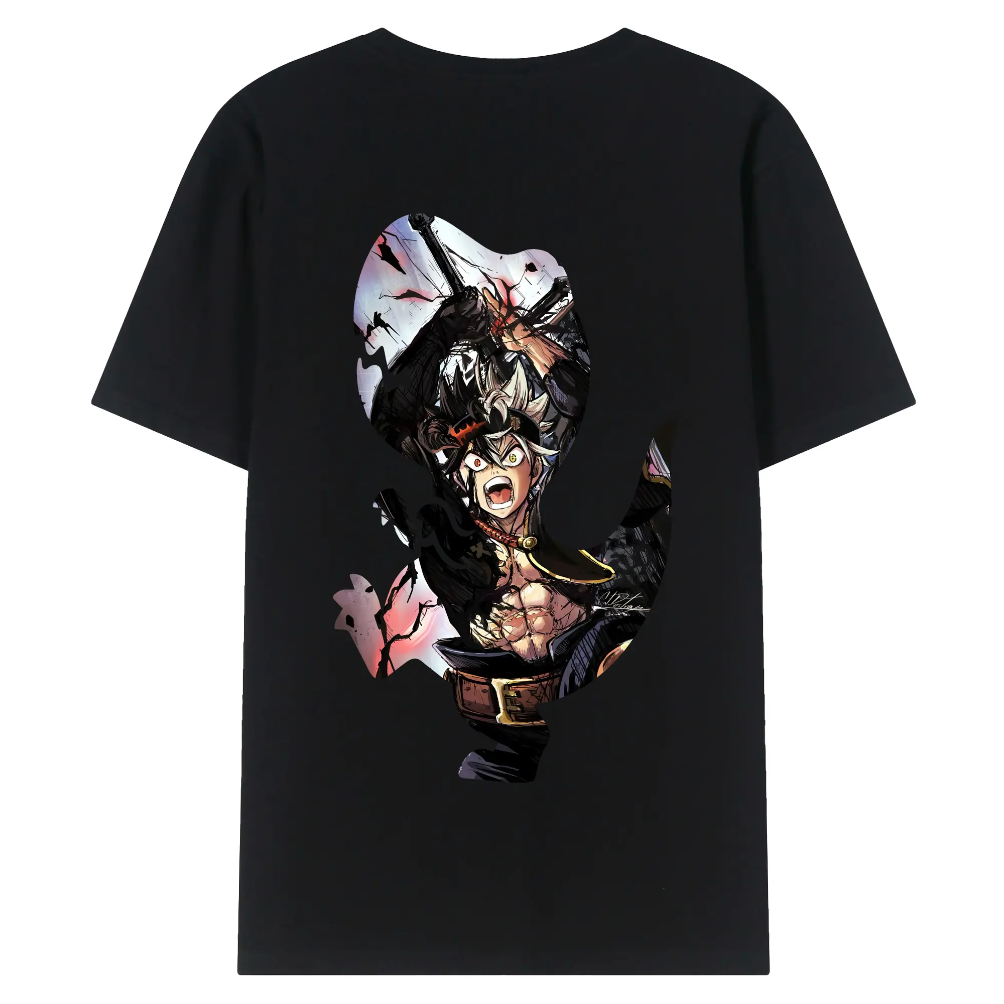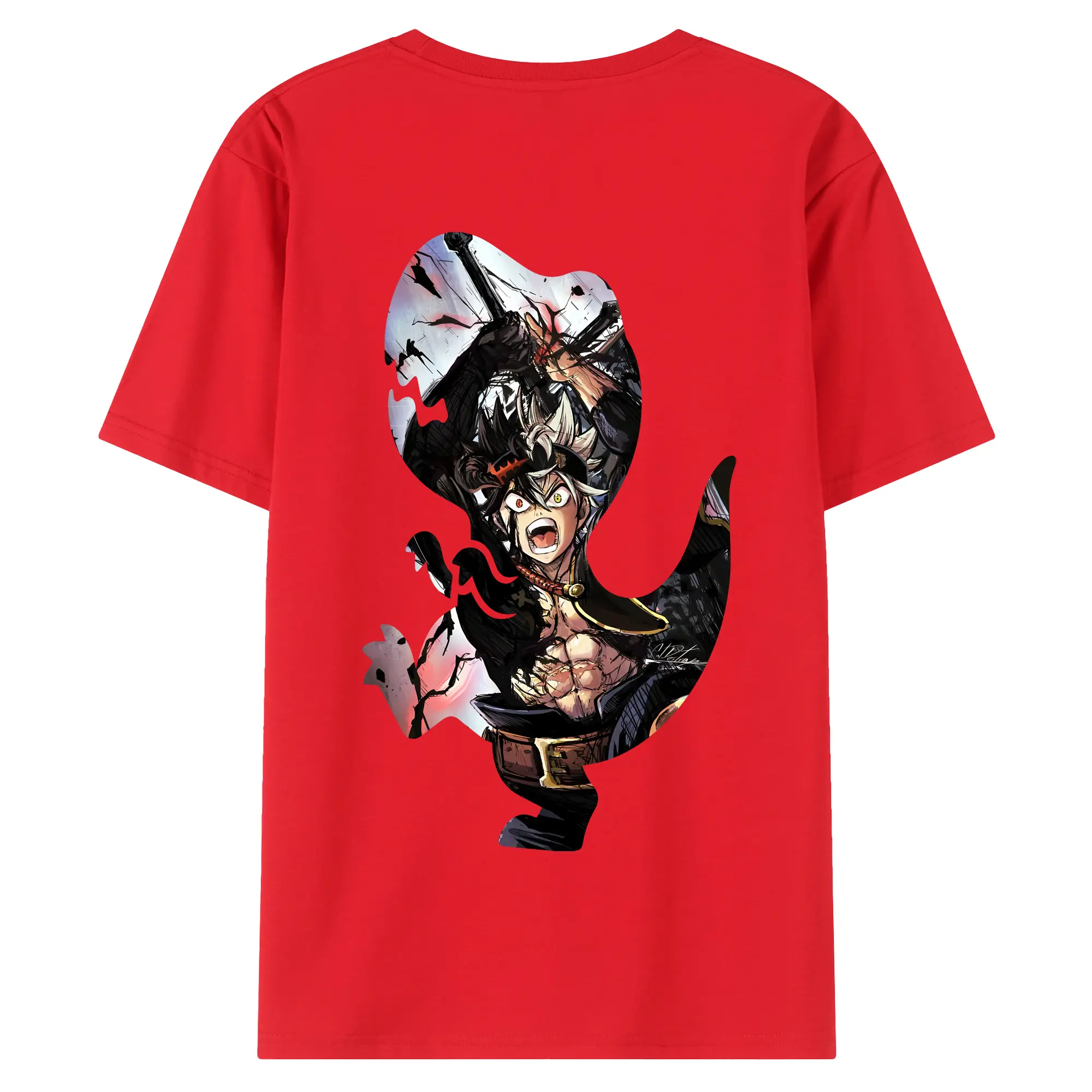 ブラッククローバー グッズ アスタ - 綿100% ヴィンテージ風 半袖Tシャツ ・ 背面プリント ・ 柔らか肌触り ・ 通気性 快適 ・ スポーツ カジュアル 外出用