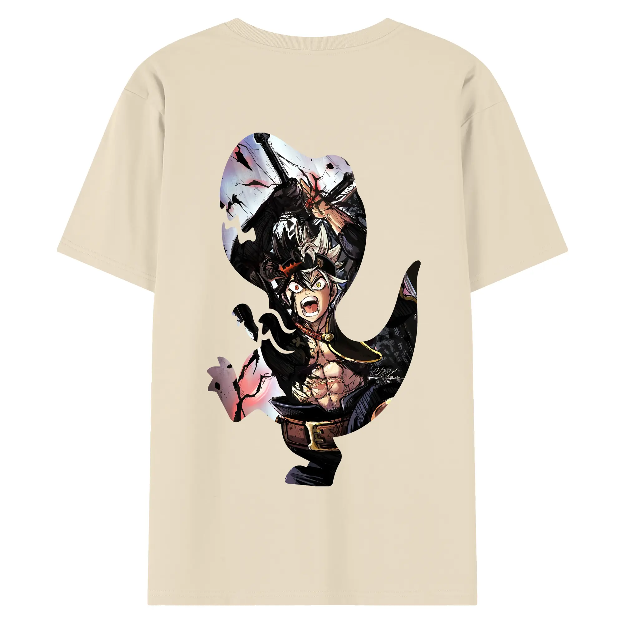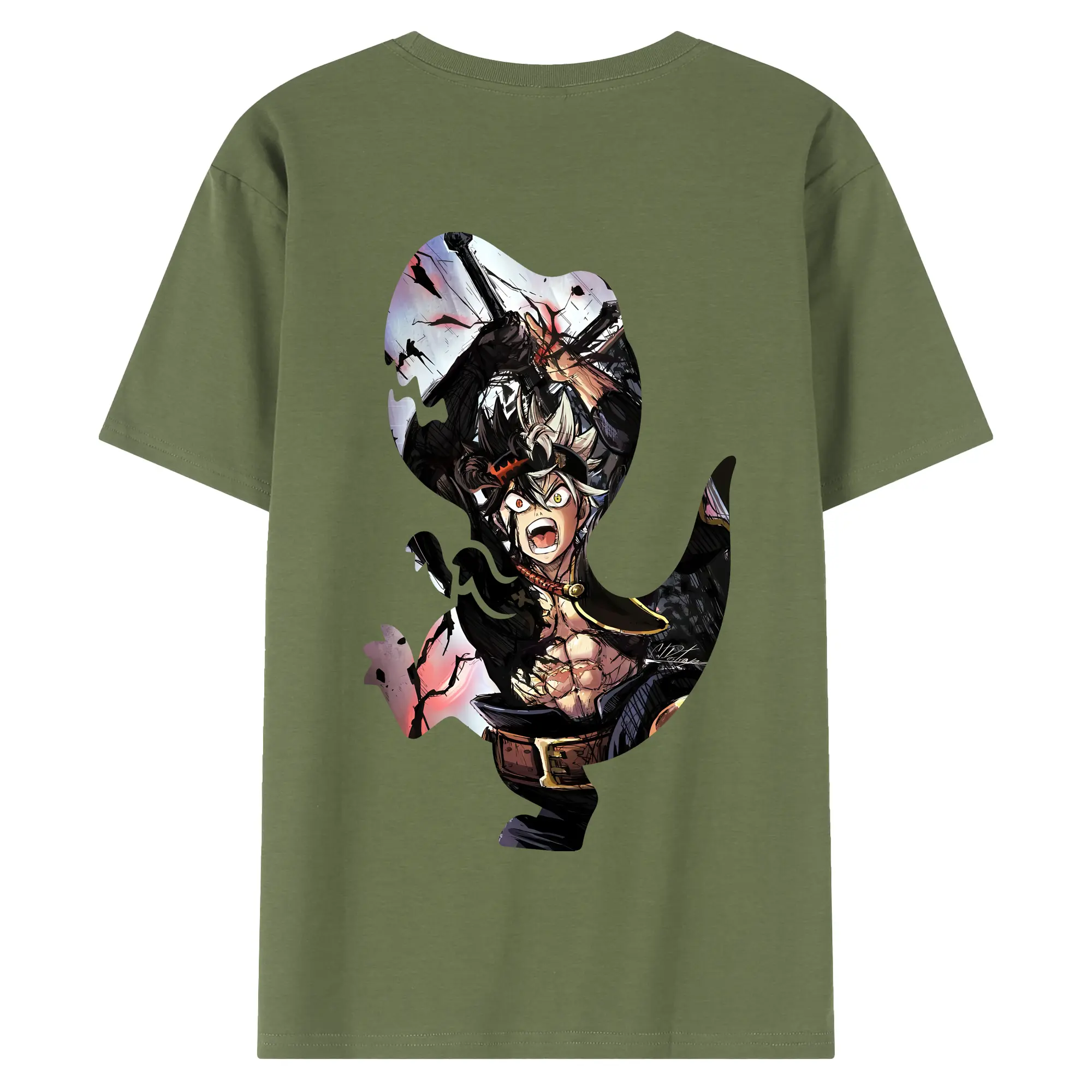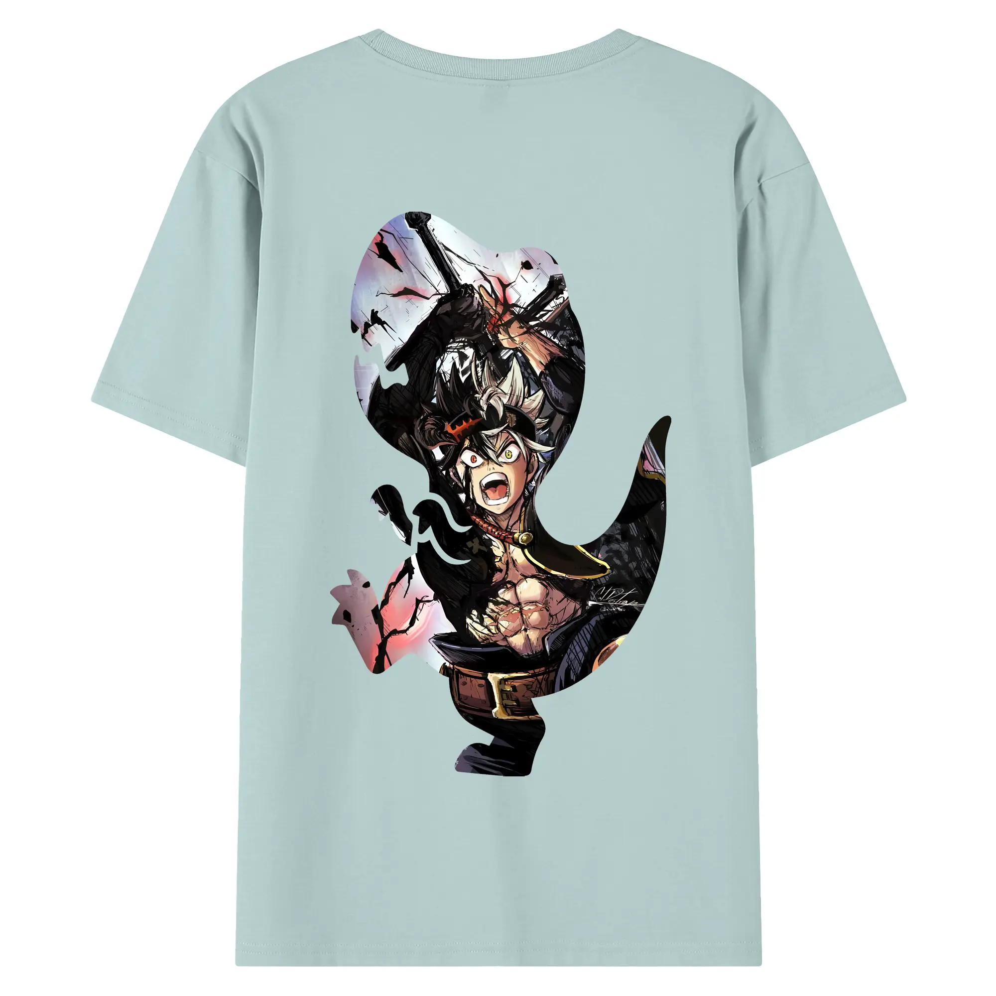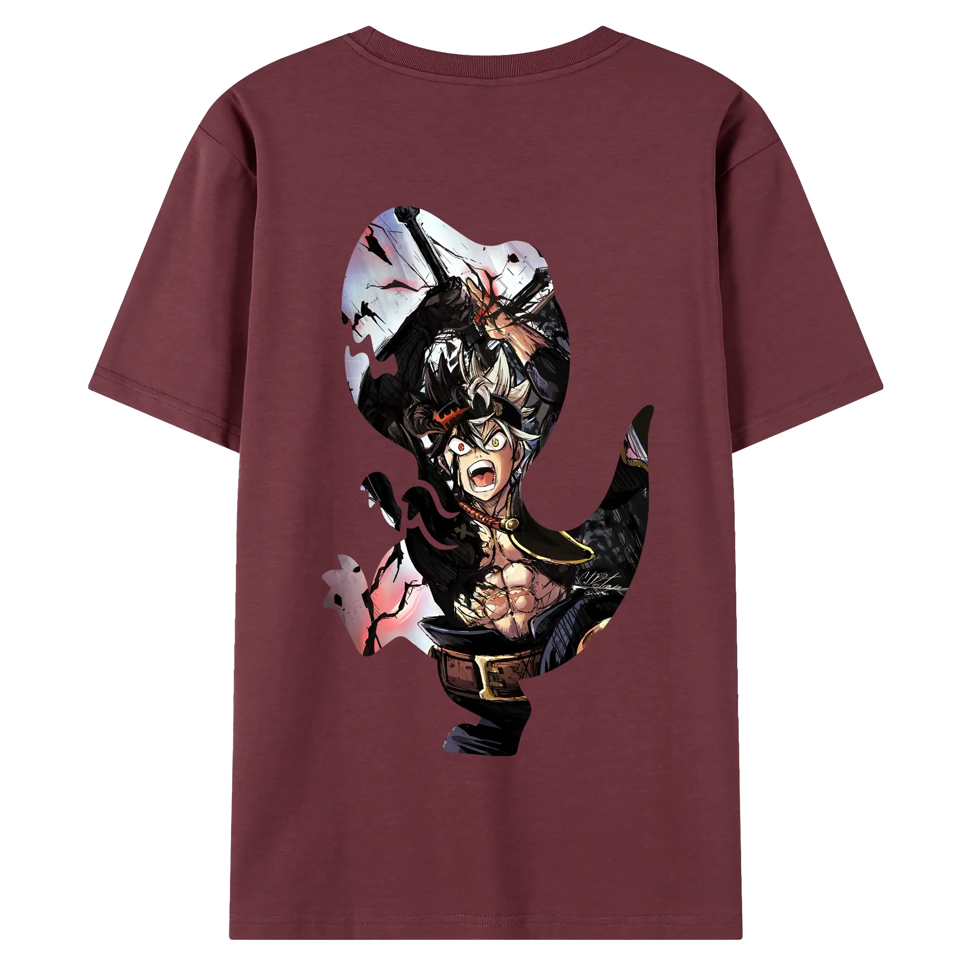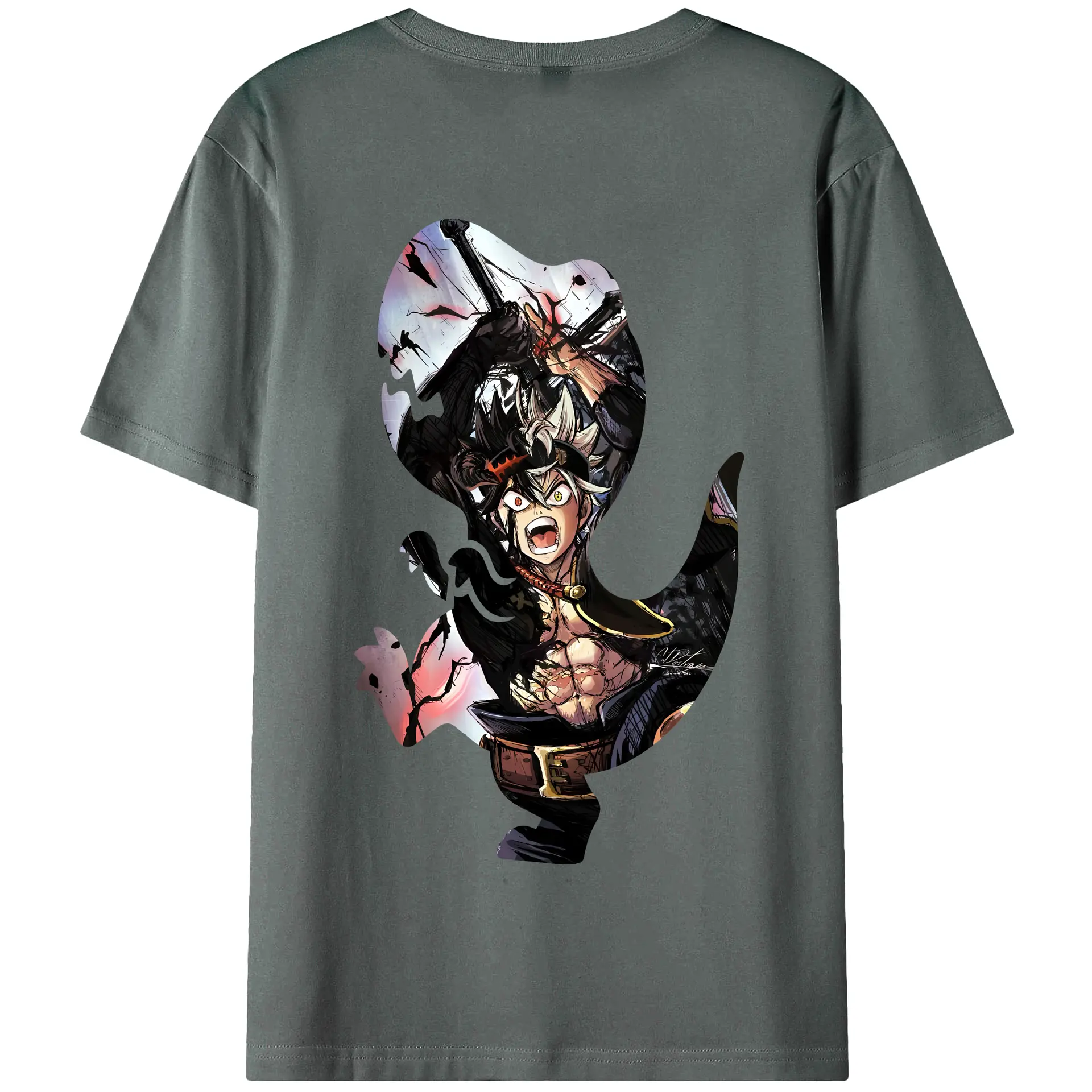 ブラッククローバー グッズ アスタ - 綿100% ヴィンテージ風 半袖Tシャツ ・ 背面プリント ・ 柔らか肌触り ・ 通気性 快適 ・ スポーツ カジュアル 外出用