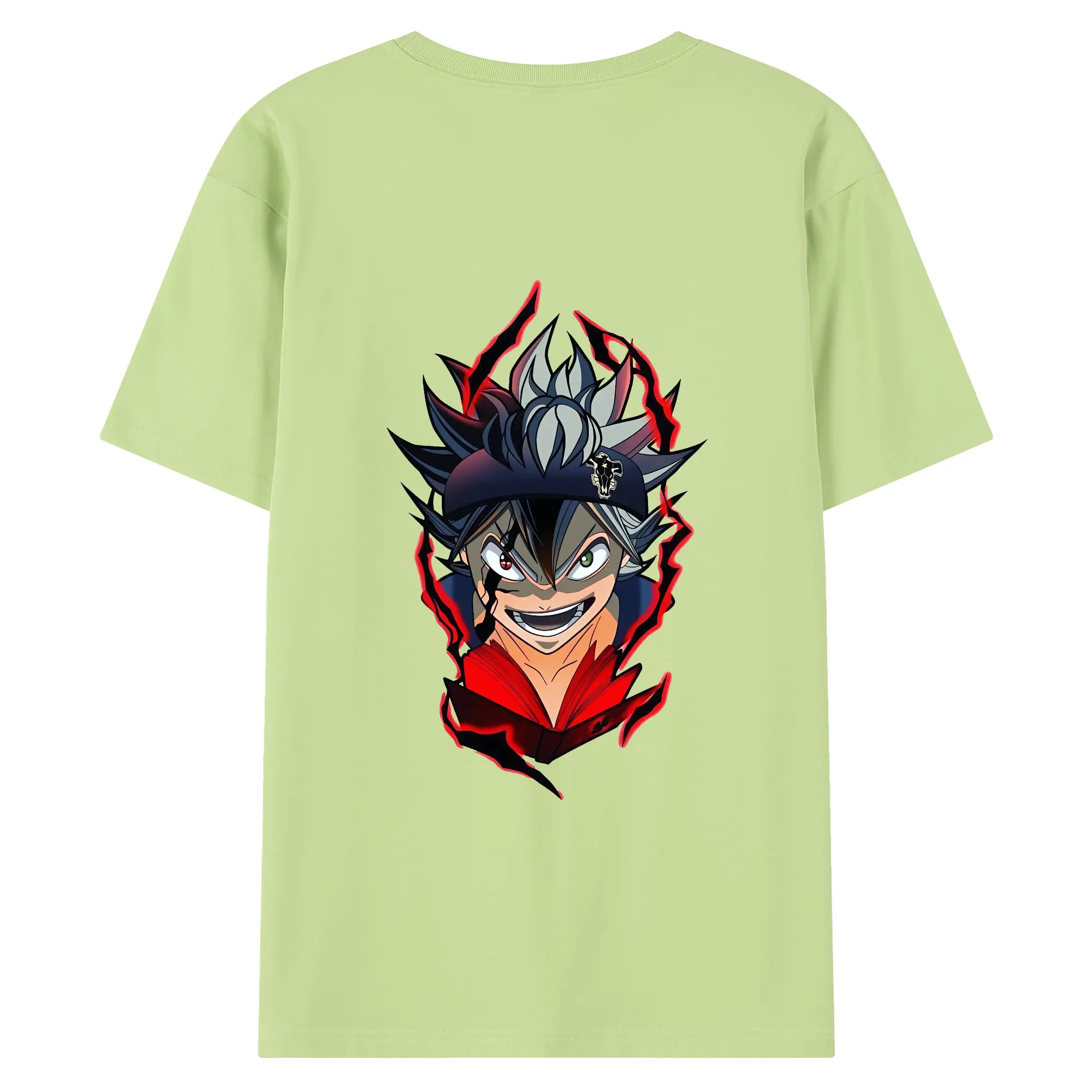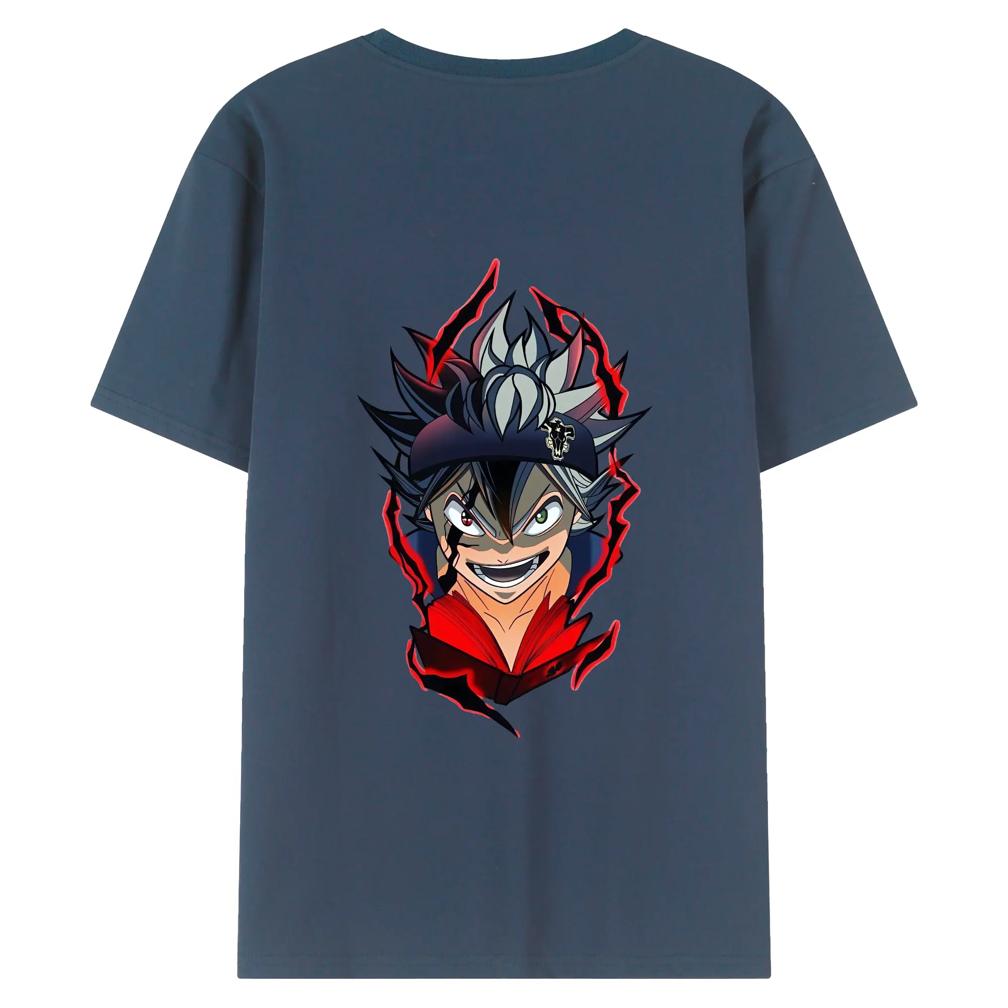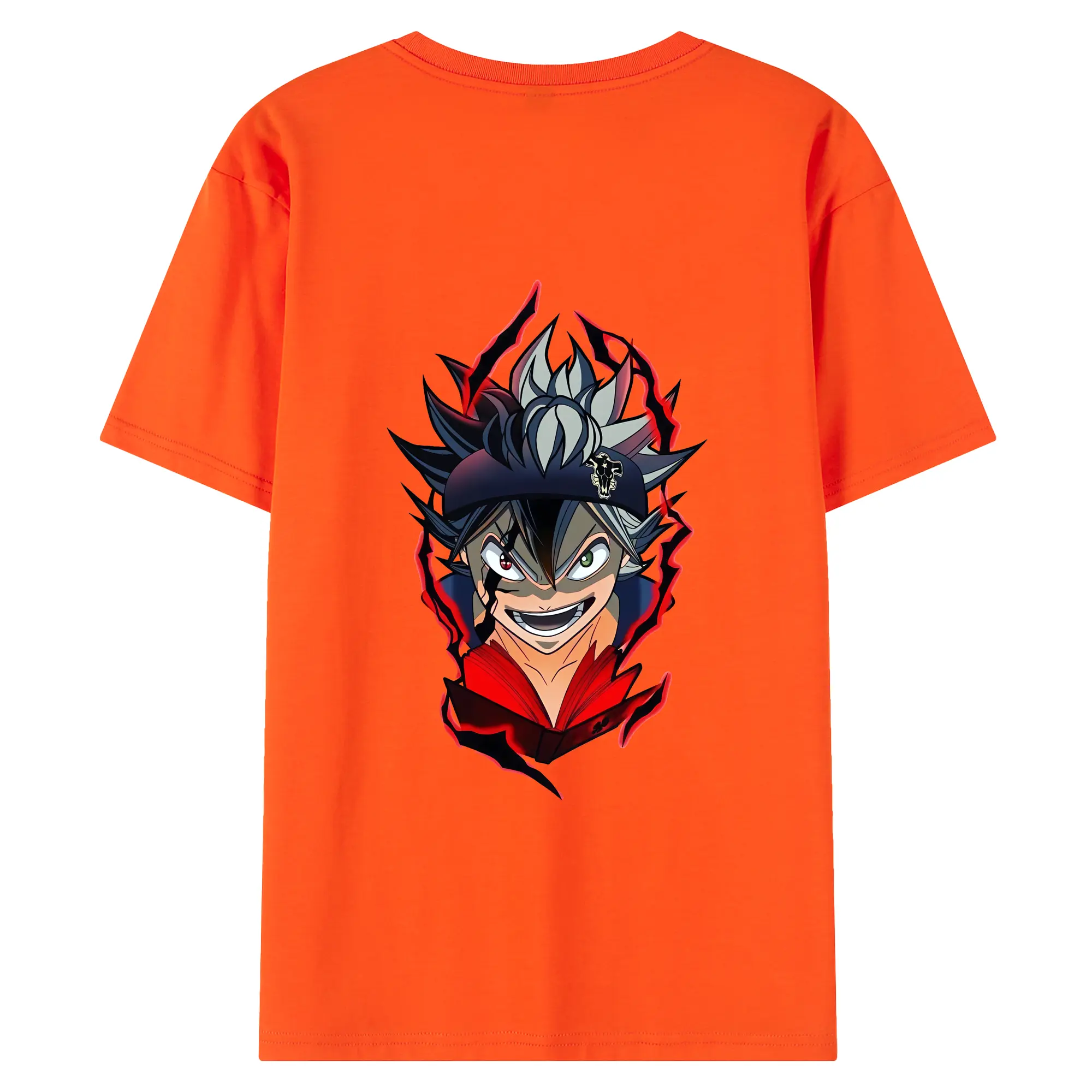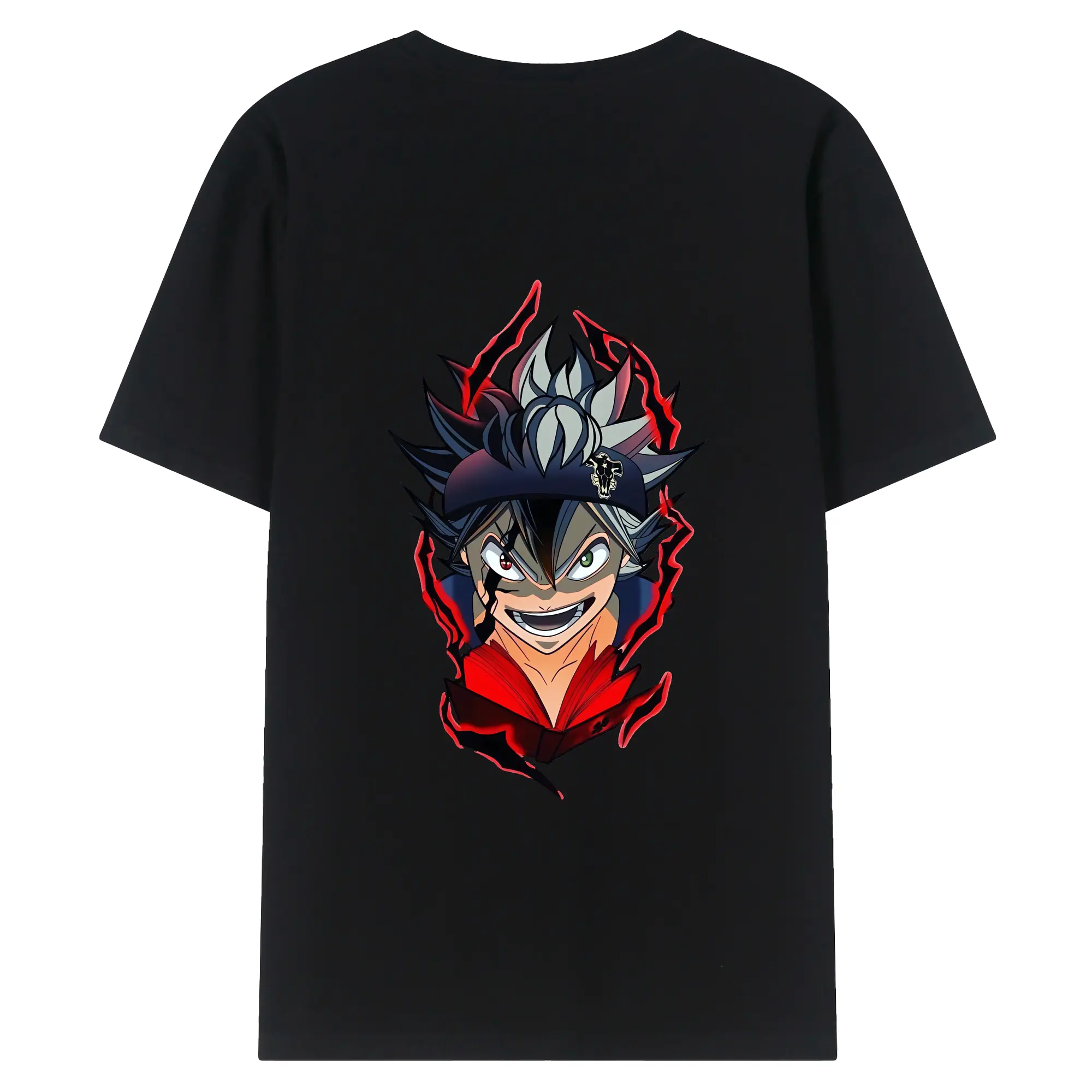 ブラッククローバー グッズ アスタ - 綿100% ヴィンテージ風 半袖Tシャツ ・ 背面プリント ・ 柔らか肌触り ・ 通気性 快適 ・ スポーツ カジュアル 外出用